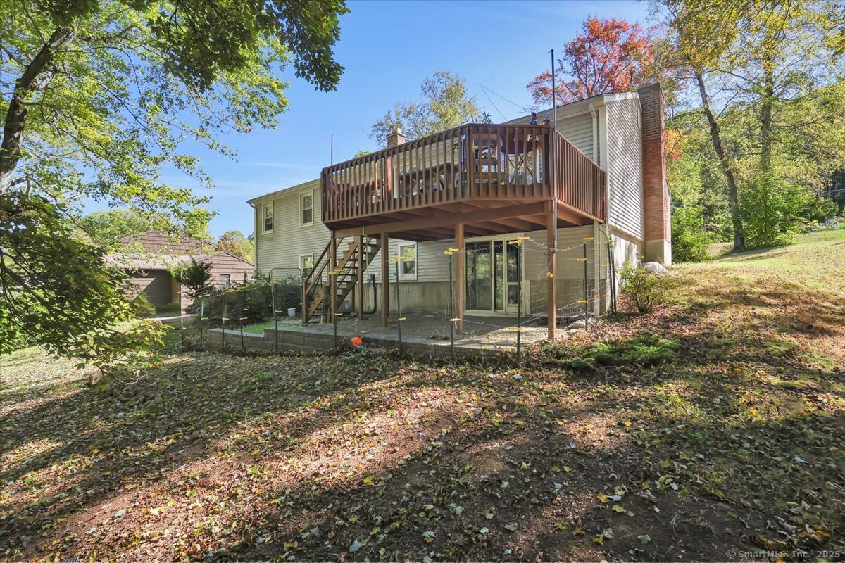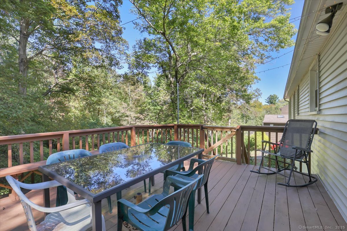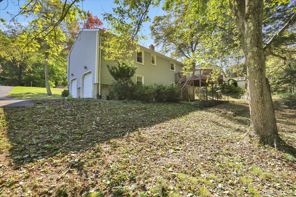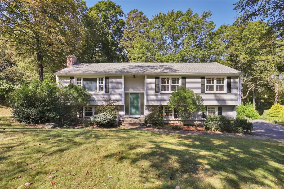 This lovely 3-bedroom Raised Ranch is situated in a wonderful neighborhood in Mt. Carmel on a large half acre lot. This well-maintained home offers so much to love with its cheerful and bright interiors. The open floor plan is ideal for gatherings and includes the family room, dining area and kitchen. From the dining room, take dinner outside through a slider to your elevated deck offering quiet and privacy. The large kitchen is ready for anything with space for an island, or eat-in area. Along the hallway, you'll find 3 well-sized bedrooms and a full guest bathroom. The primary bedroom has a remodeled en-suite bathroom with shower. Check all your boxes with oak hardwood floors, 2-car garage, central A/C, and the low maintenance benefits of vinyl siding, newer doors and windows as well as city water and sewer. The lower level offers potential for an additional 600+/- s.f. of finished space, so finish to suit your needs -recreation, media or play room. A large room is already framed out, and it showcases a wonderful brick wood burning fireplace. There's also a separate storage room with laundry area and a walk-out to the backyard as well as interior access to the 2-car garage. Many updates include new hot water heater (2024), newer roof (2018), repointed chimney, and new insulation. Close to Quinnipiac and Sleeping Giant and convenient commuting location and access to New Haven!