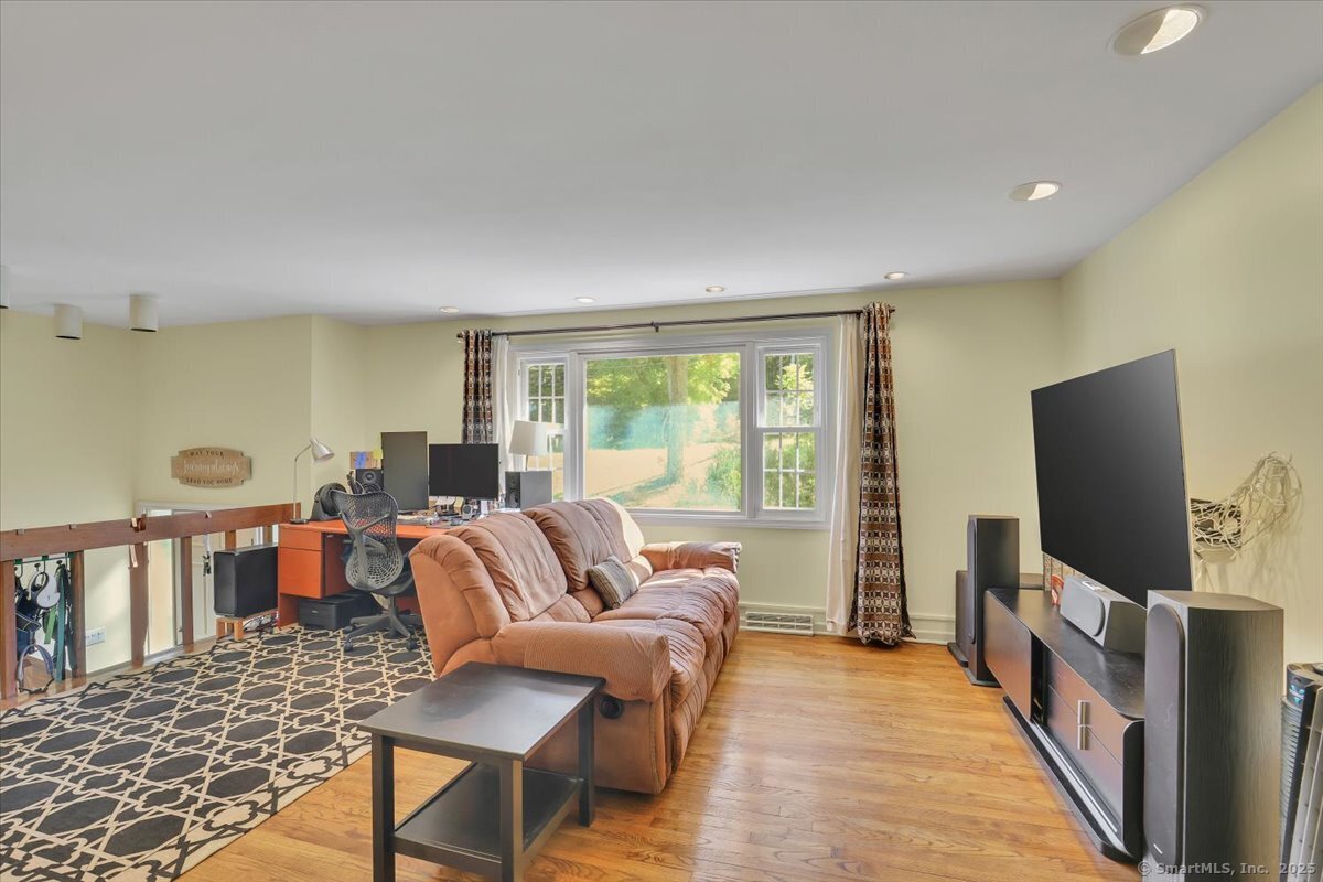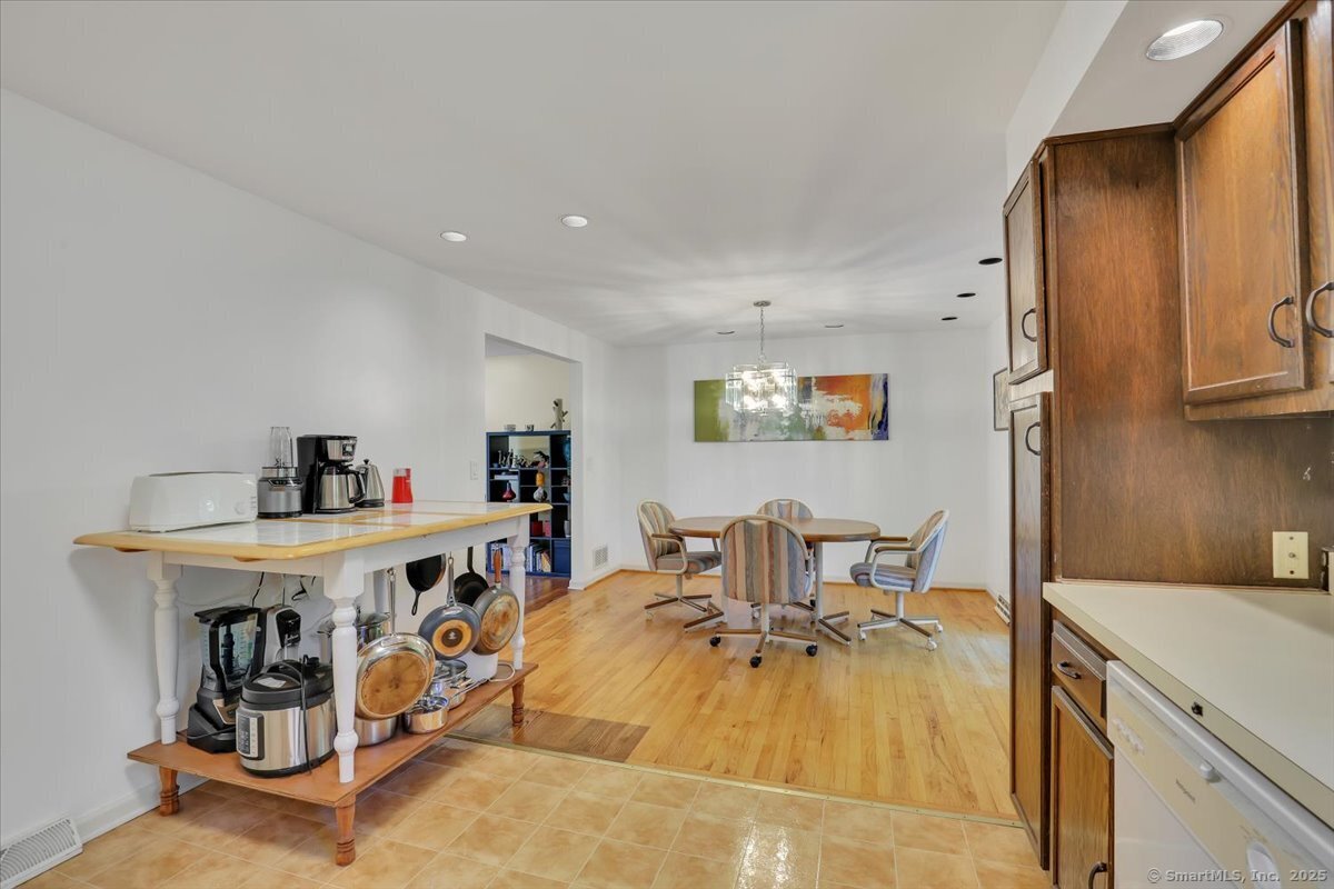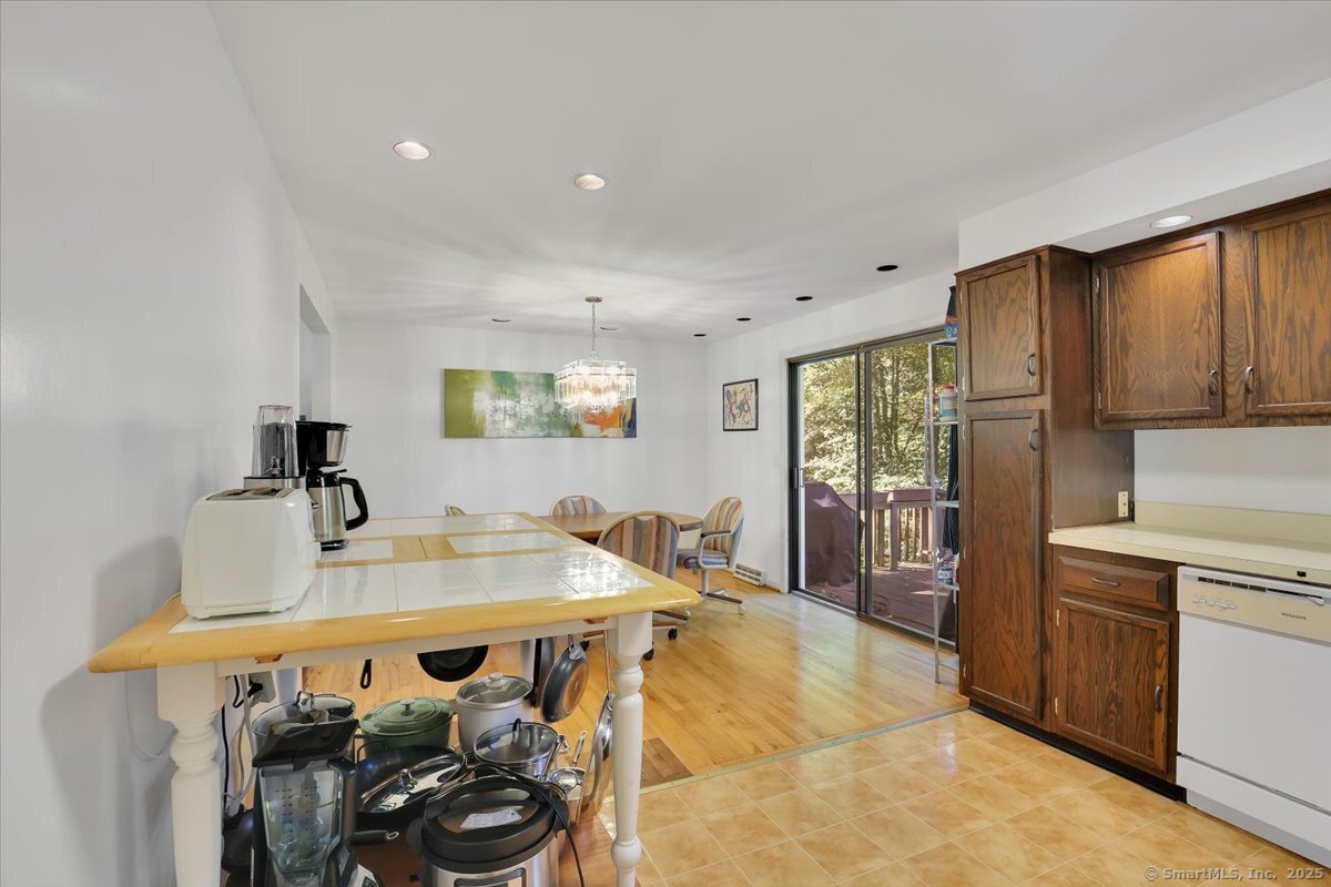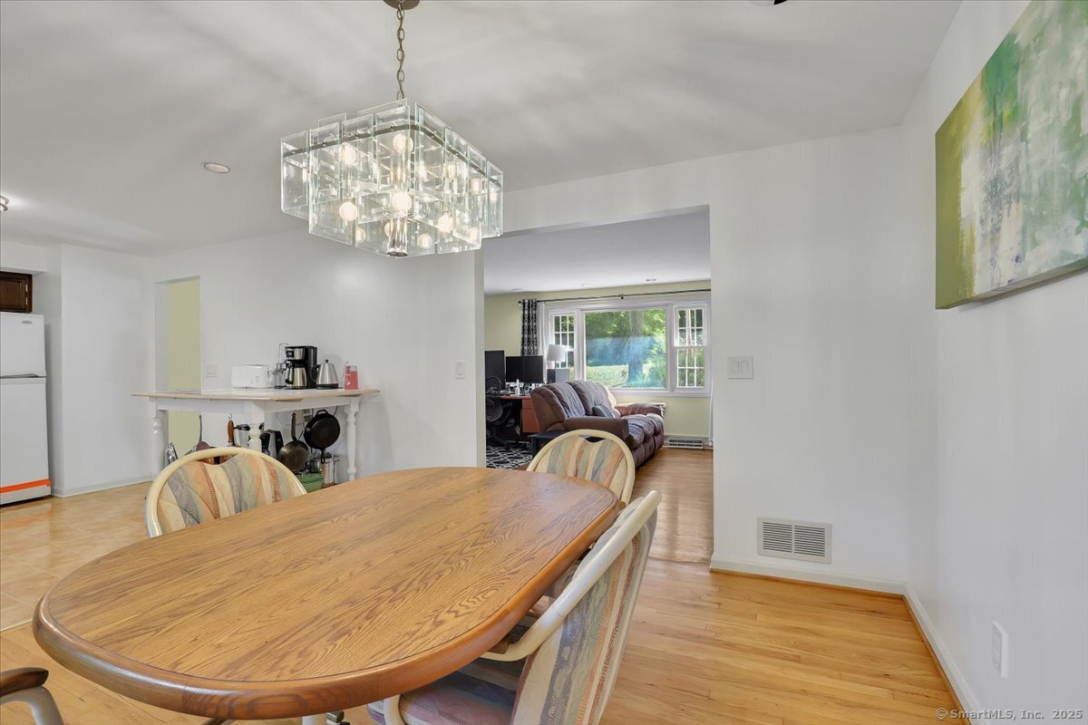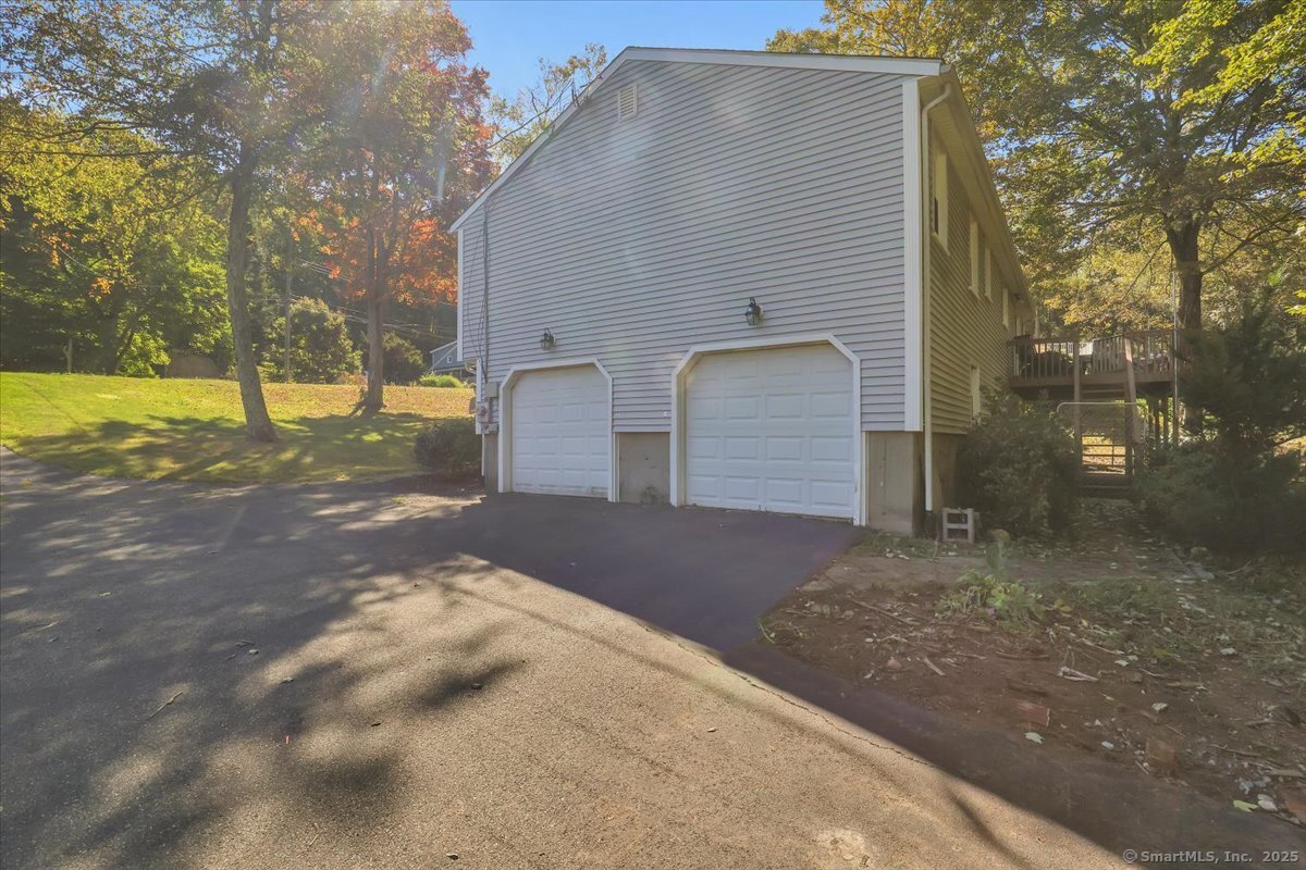 This lovely 3-bedroom Raised Ranch is situated in a wonderful neighborhood in Mt. Carmel on a large half acre lot. This well-maintained home offers so much to love with its cheerful and bright interiors. The open floor plan is ideal for gatherings and includes the family room, dining area and kitchen. From the dining room, take dinner outside through a slider to your elevated deck offering quiet and privacy. The large kitchen is ready for anything with space for an island, or eat-in area. Along the hallway, you'll find 3 well-sized bedrooms and a full guest bathroom. The primary bedroom has a remodeled en-suite bathroom with shower. Check all your boxes with oak hardwood floors, 2-car garage, central A/C, and the low maintenance benefits of vinyl siding, newer doors and windows as well as city water and sewer. The lower level offers potential for an additional 600+/- s.f. of finished space, so finish to suit your needs -recreation, media or play room. A large room is already framed out, and it showcases a wonderful brick wood burning fireplace. There's also a separate storage room with laundry area and a walk-out to the backyard as well as interior access to the 2-car garage. Many updates include new hot water heater (2024), newer roof (2018), repointed chimney, and new insulation. Close to Quinnipiac and Sleeping Giant and convenient commuting location and access to New Haven!
