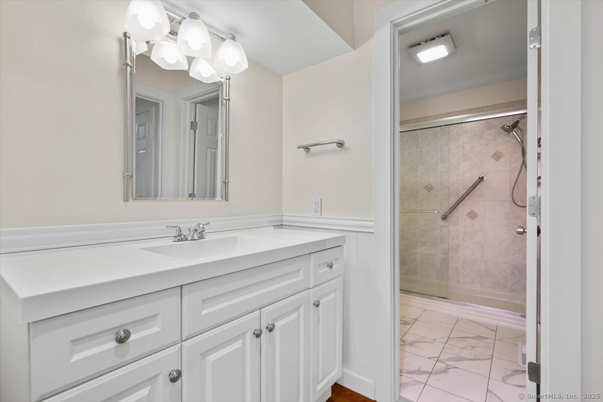 WOW! This AMAZING remodeled 2-bedroom ranch condo is perfect for anyone looking for easy living - complete with a chair lift for added convenience. You'll immediately notice the gleaming hardwood floors and the light-filled, open floor plan. The spacious great room features a cozy gas fireplace and sliders that open to a lovely private deck. The dining area flows effortlessly into the beautifully updated kitchen, which offers plenty of white cabinetry, granite counters, stainless gas stove, dishwasher, & refrigerator. The incredible primary bedroom includes walk-in closets & a full remodeled bath. The second bedroom-with hardwood floors-makes a great guest room or home office with access to a new 1/2 bath. The walk-out lower level, accessible by stairs or the chair lift, offers a stunning family room & den. Also great as a guest suite complete with a new full bath. You'll also find a completely remodeled large laundry room with abundant storage space. A convenient attached garage as well. Enjoy gas heat and central air for year-round comfort. Freshly painted leaves nothing to do but move in! The community offers wonderful amenities, including pools, tennis, and pickle-ball courts. Conveniently located next to phenomenal golf clubs. Nearby Sikorsky, shopping, train and minutes to the hospitals and all major highways. This Thoreau model condo truly combines comfort, style, and convenience in one incredible package. This is an adult over 55 community.
