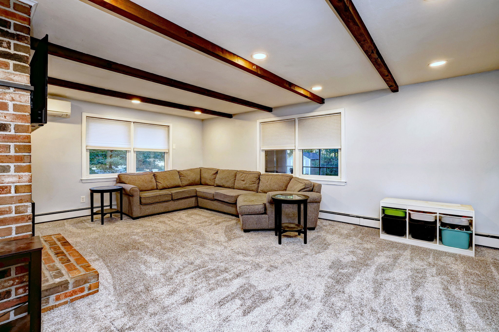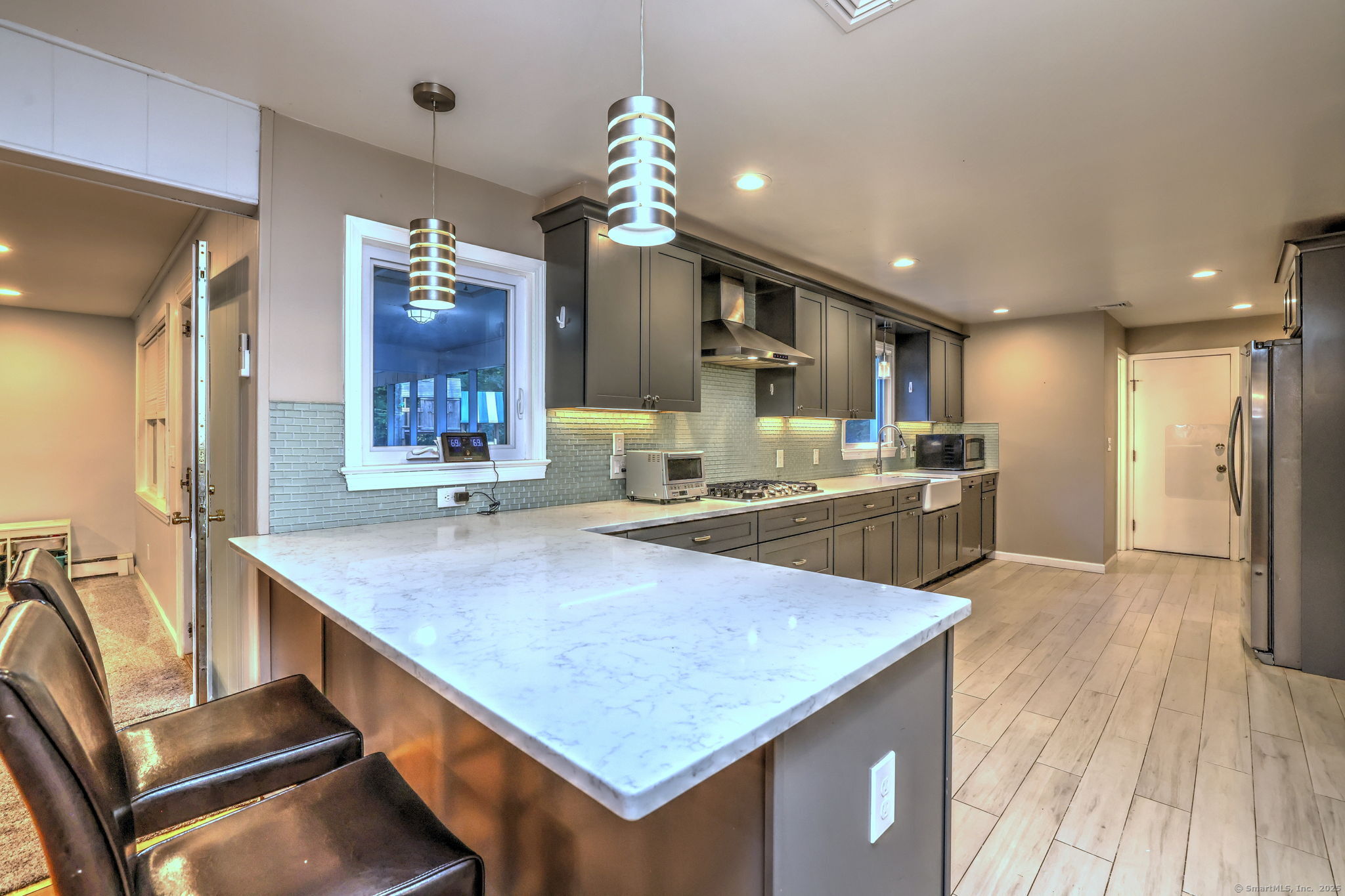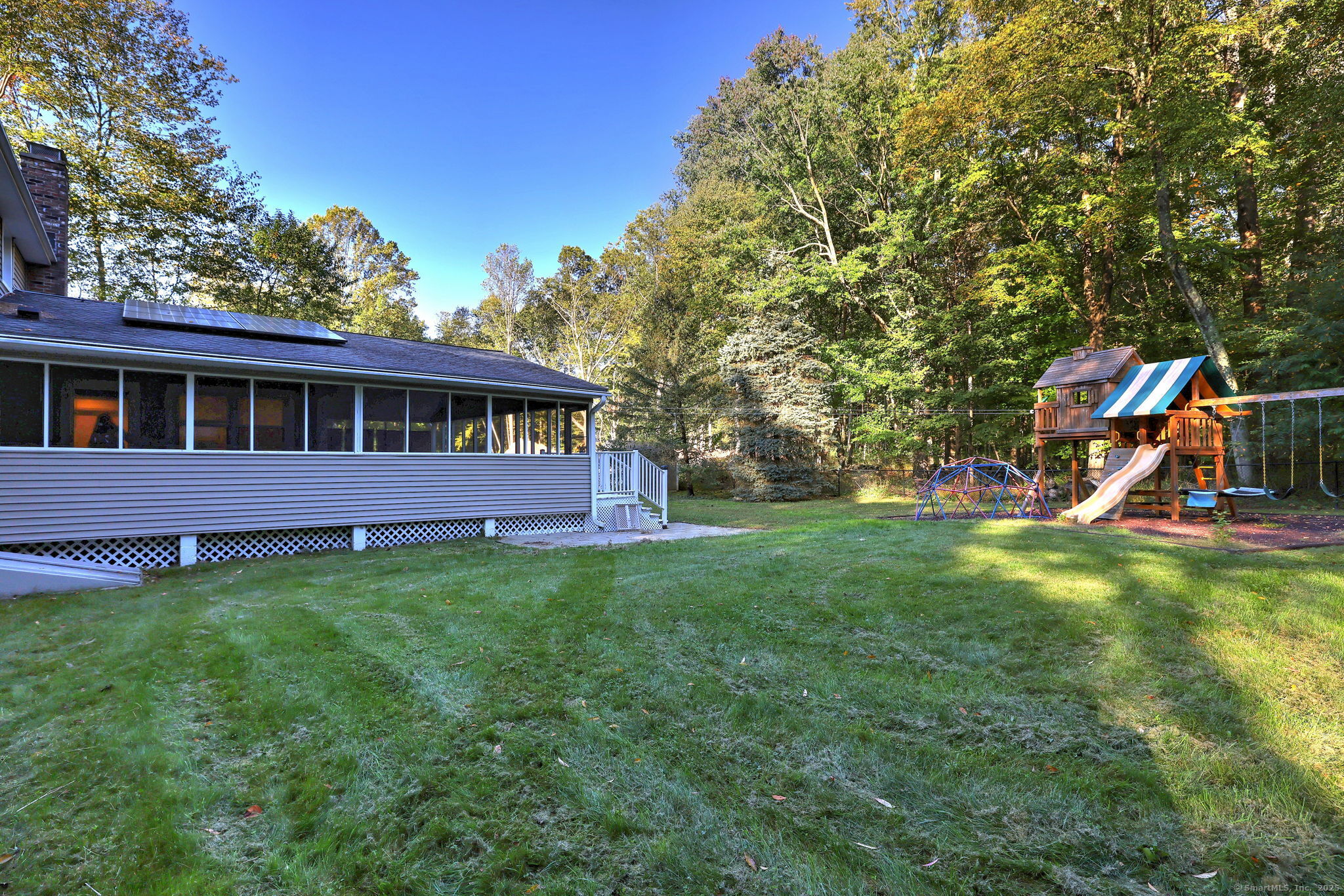 This is the one you've been waiting for! Nestled on a beautiful one-acre lot near the Tashua Knolls Recreation Area-offering pool, tennis, and golf-this spacious home combines comfort, style, and energy efficiency. The open and easy-living floor plan features a stunning remodeled kitchen with stainless steel appliances, quartz countertops, a breakfast bar, abundant cabinetry, and pantry storage. The cozy formal living room is the ideal spot to relax while the dining room flows seamlessly into the kitchen. The spacious family room boasts a gas fireplace insert and provides access to the wrap around screened porch which overlooks a private, fenced backyard-perfect for relaxing or entertaining. A versatile main-level flex room adds extra functionality. Upstairs, you'll find four generously sized bedrooms, including a primary suite with a walk-in closet and full bath with whirlpool tub and stall shower. The finished lower level offers a spacious great room and a dedicated home office. Additional highlights include a two-car attached garage, central air, and solar panels (owned) for enhanced energy efficiency. This home truly has it all!