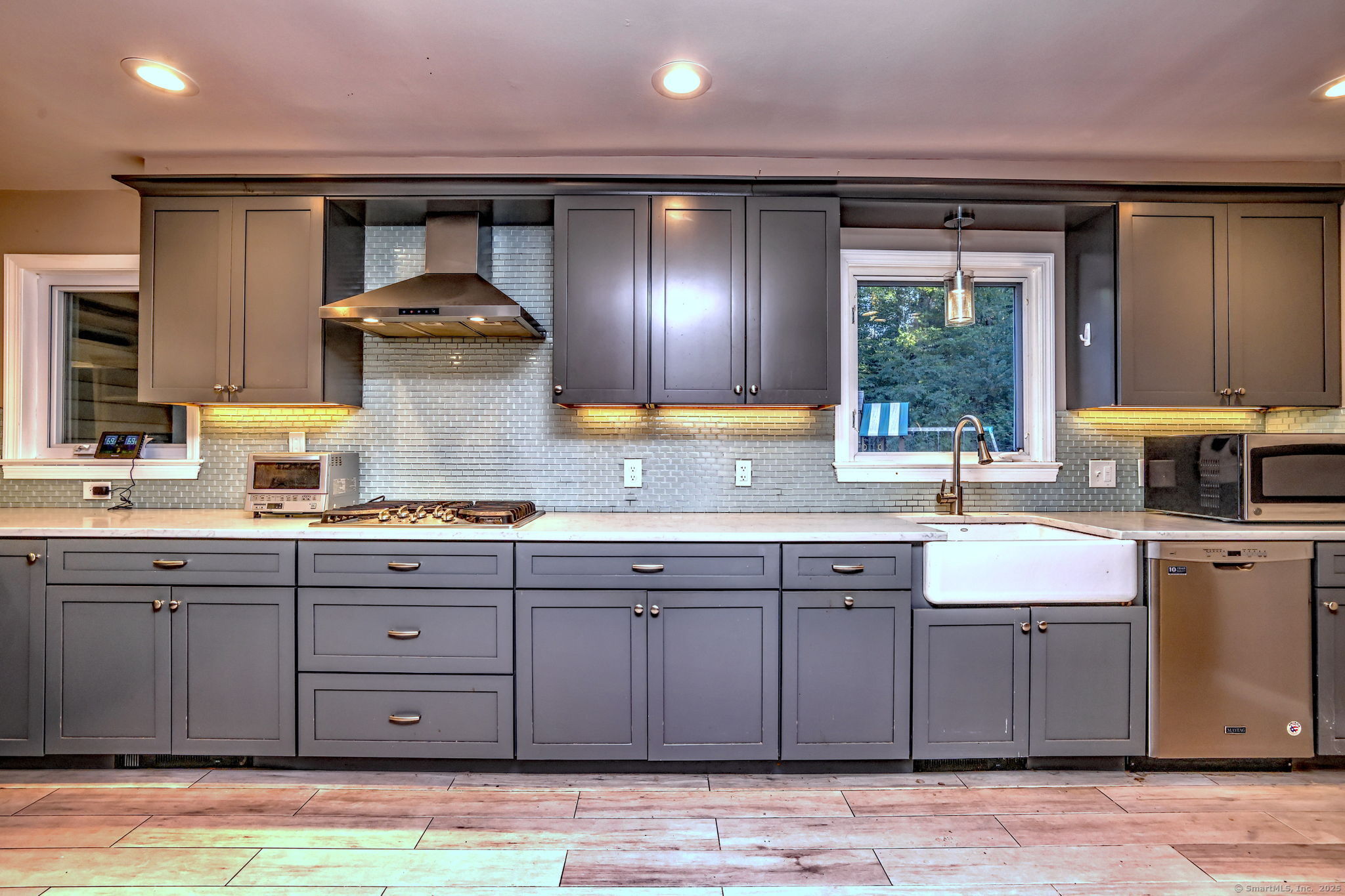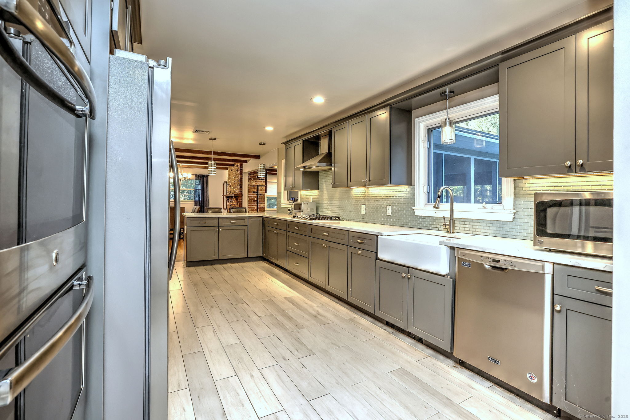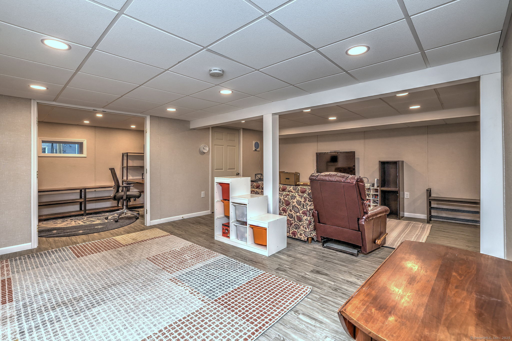 This is the one you've been waiting for! Nestled on a beautiful one-acre lot near the Tashua Knolls Recreation Area-offering pool, tennis, and golf-this spacious home combines comfort, style, and energy efficiency. The open and easy-living floor plan features a stunning remodeled kitchen with stainless steel appliances, quartz countertops, a breakfast bar, abundant cabinetry, and pantry storage. The cozy formal living room is the ideal spot to relax while the dining room flows seamlessly into the kitchen. The spacious family room boasts a gas fireplace insert and provides access to the wrap around screened porch which overlooks a private, fenced backyard-perfect for relaxing or entertaining. A versatile main-level flex room adds extra functionality. Upstairs, you'll find four generously sized bedrooms, including a primary suite with a walk-in closet and full bath with whirlpool tub and stall shower. The finished lower level offers a spacious great room and a dedicated home office. Additional highlights include a two-car attached garage, central air, and solar panels (owned) for enhanced energy efficiency. This home truly has it all!
