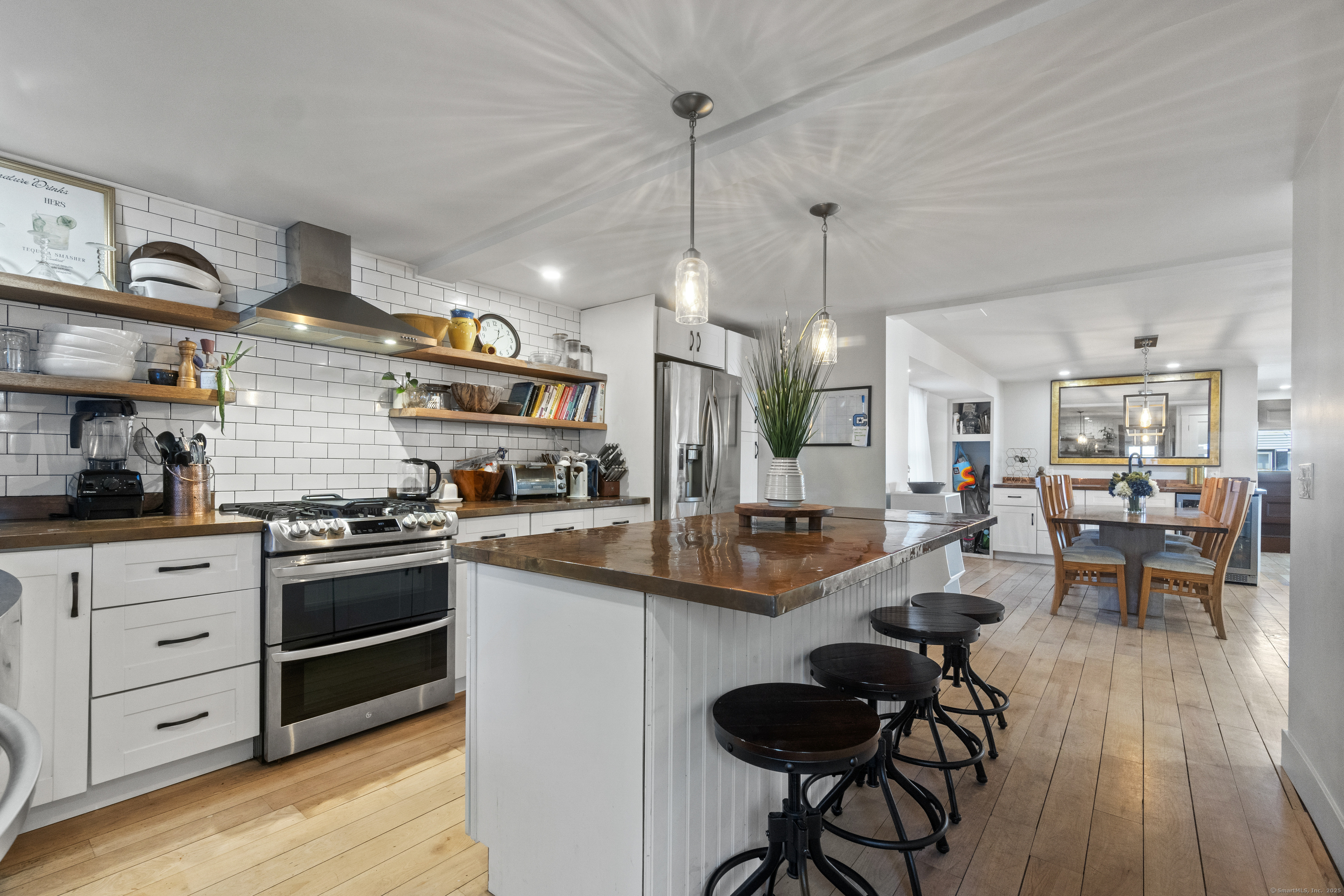 Beautifully remodeled 3 BR, 1.5 BA home in the heart of Historic Noank Village! Nestled on a .13 Acre lot with a NEW paved driveway for Private Off Street parking. Bedrooms include two Bedrooms on second floor and one bedroom on the first floor. Renovated in 2020, this home offers an open-concept layout with many features including custom interior doors, copper kitchen countertops, on-demand hot water, high-efficiency systems with two Zones and central A/C. Fabulous and spacious second floor media-family room and 3rd level loft. Village living at it's best. Enjoy a perfect blend of old-world charm and modern amenities. Relax on the classic front porch and watch the 4th of July parade pass by. Short distance to yacht clubs, seasonal seafood restaurants, waterfront, tennis courts, basket ball court, play ground and dog park. Close to Haley Farm, Esker Point Beach, Noank beach area and just 10 minutes to Historic Downtown Mystic. Ideal as a primary residence or vacation getaway. Coastal living at its finest!