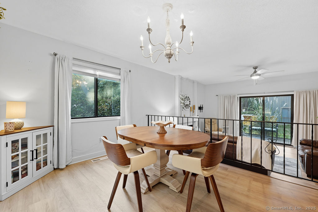 Step inside this inviting condo nestled in a peaceful Southington neighborhood surrounded by trees, walking paths, and serene ponds that make daily strolls a joy. The split-level layout creates a warm flow between the living and dining areas, enhanced by large glass doors that allow sunshine to brighten nearly every corner of the home. The living room offers a cozy spot to unwind by the fireplace or step through the sliding doors to a private back patio overlooking the greenery. The kitchen features stainless steel appliances, butcher block countertops, and plenty of cabinet space, opening nicely to the dining area-perfect for casual meals or gatherings. Upstairs, the primary suite and 2nd bedroom include a balcony where you can enjoy your morning coffee in peace. Spring Lake Village is a 55+community with lots of amenities such as pool, bocce, clubhouse, tennis and pickleball. Convenience is all around with nearby shops, restaurants, medical offices, and the hospital just minutes away, offering a comfortable balance of nature and accessibility.