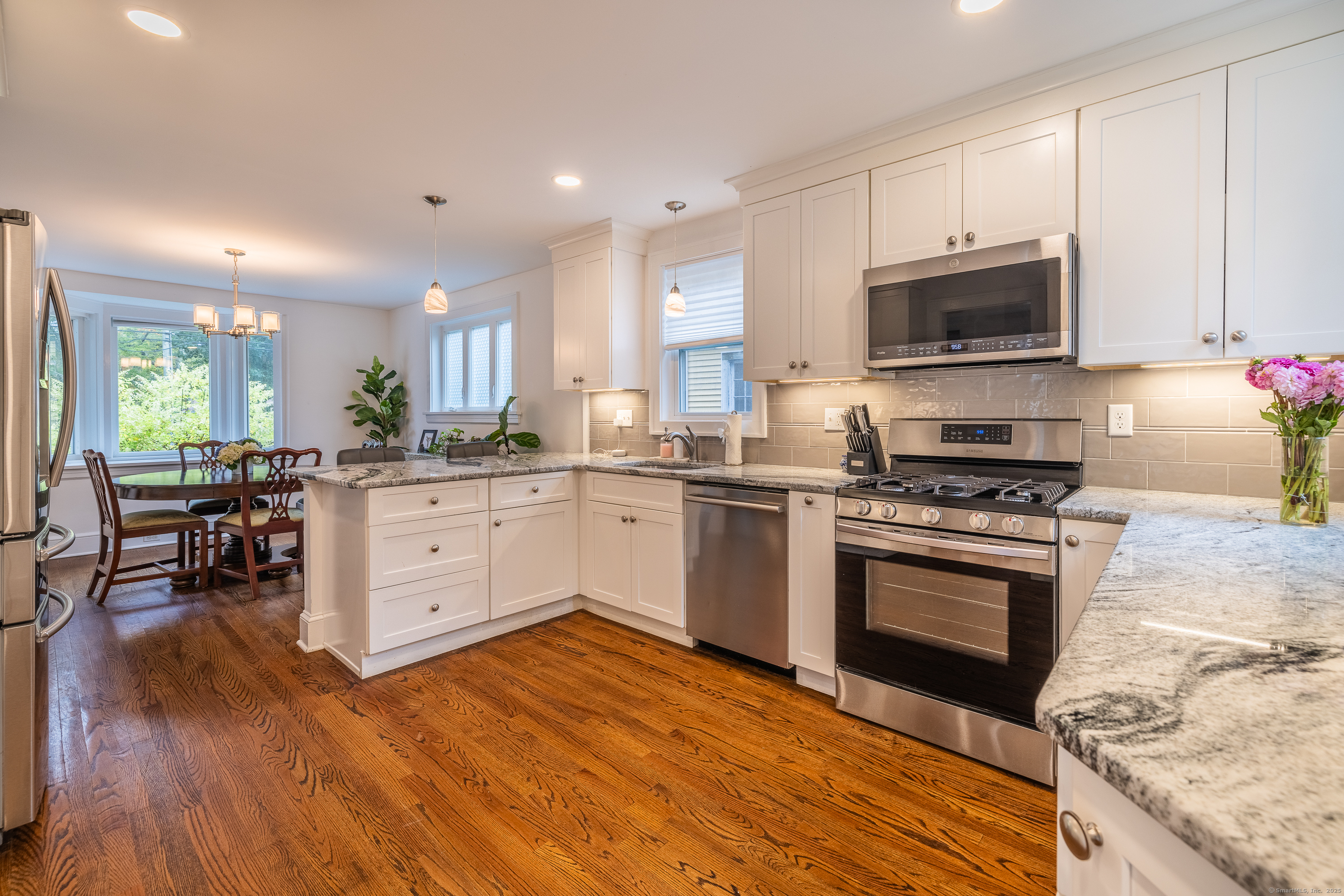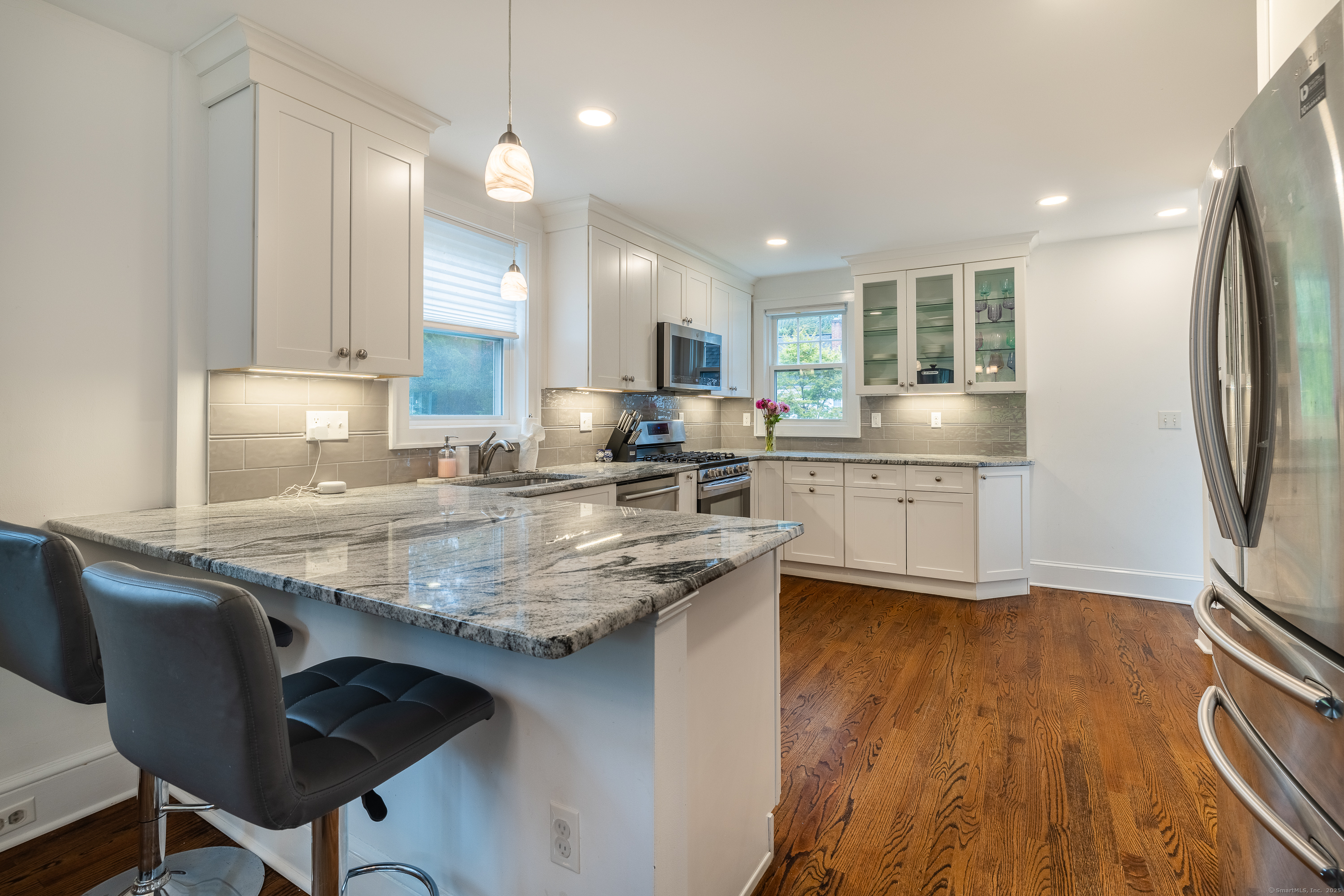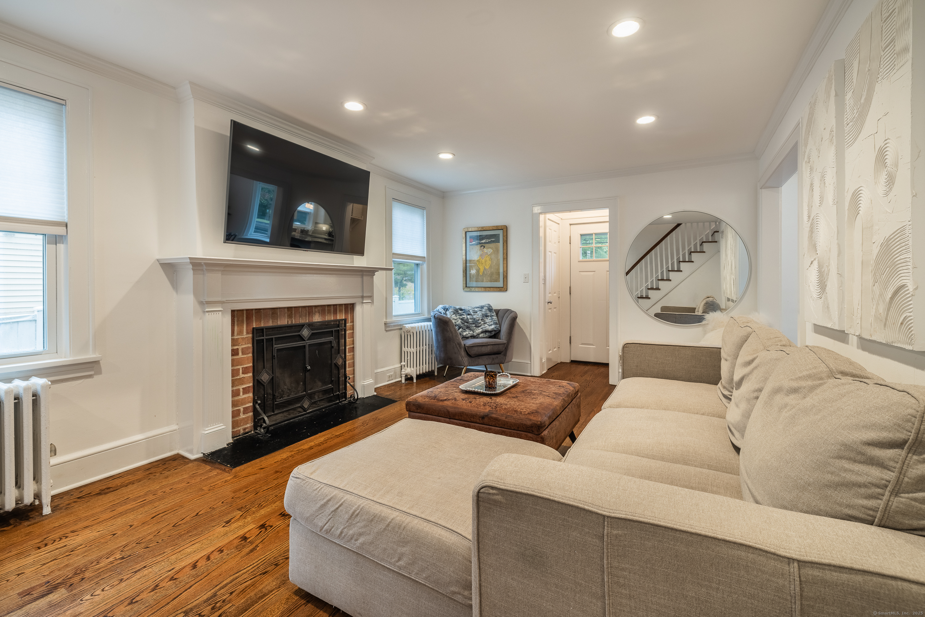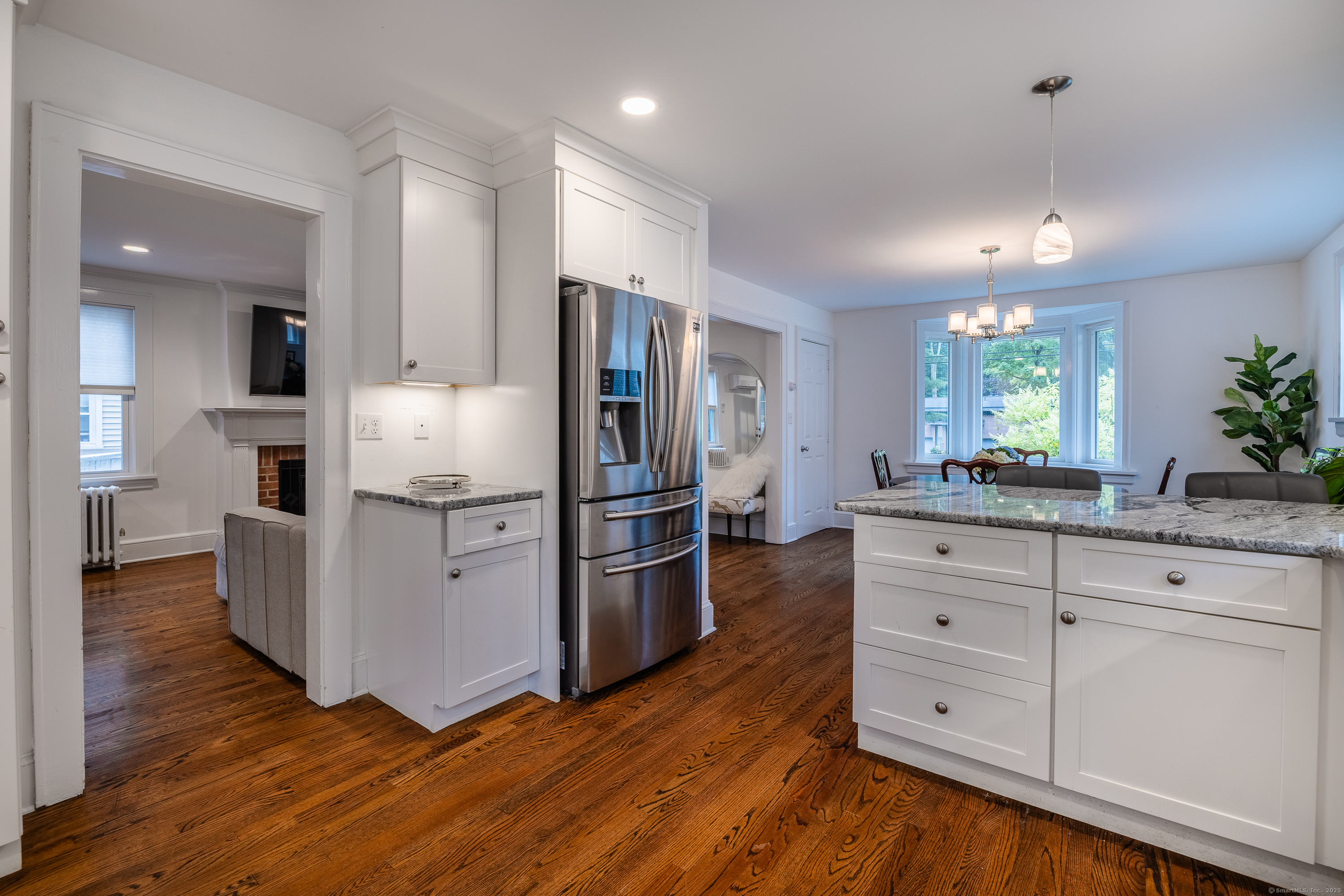Step through the door and instantly feel the charm of 1346 Stratfield Road-a beautifully updated 3-bedroom, 1.5-bath Colonial. Renovated in 2020, this home combines classic charm with thoughtful, modern upgrades throughout. The main level features refinished hardwood floors, a bright, spacious white kitchen with granite countertops, a classic tile backsplash, and stainless steel appliances. The cozy living room offers a wood-burning fireplace, and the dining area is anchored by a light-filled bay window. Just off the back is a breezy three-season porch-perfect for morning coffee or evening unwinding. Upstairs, you'll find three spacious bedrooms and an updated full bathroom. Each level is equipped with ductless split air conditioning, and the home also offers gas heat for year-round comfort. The full basement and attic provides ample storage or future finishing potential. Outside, enjoy a private, fenced-in backyard, a detached one-car garage, and plenty of parking tucked away in the rear. Location is everything-and this one can't be beat. Just minutes to downtown Fairfield, Black Rock Turnpike, the Merritt Parkway, I-95, and Lake Mohegan. Fairfield's renowned amenities are all nearby: beautiful beaches, a town marina, golf courses, parks, shops, and two Metro-North train stations for easy commuting. Whether you're buying your first home, looking to simplify, or searching for a place with timeless character-this one checks all the boxes.