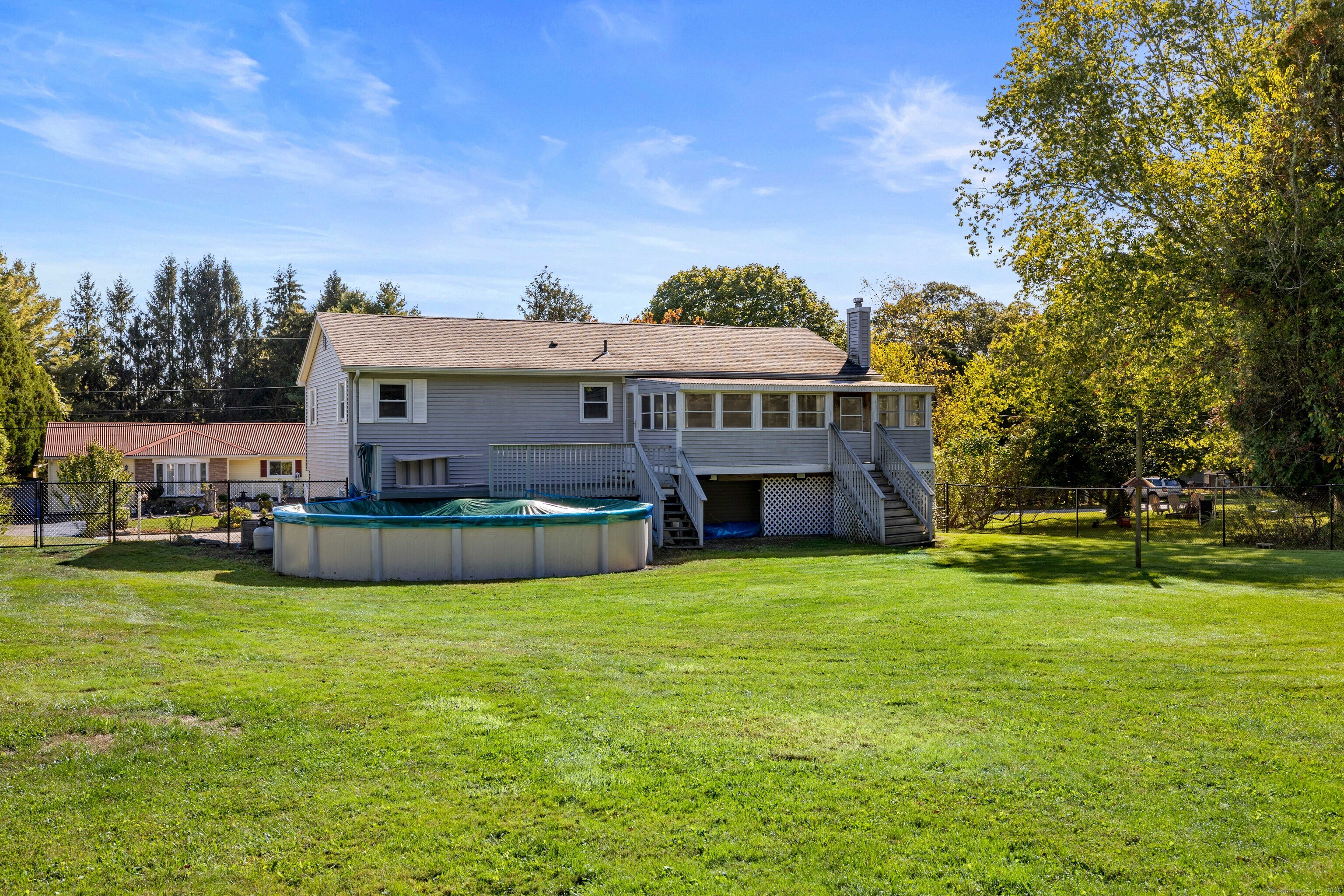 Welcome to this inviting 1200 sq ft raised ranch, offering 3 bedrooms and 1.5 bath. Enjoy the beautifully updated kitchen featuring sleek granite countertops and nice hardwood floors throughout the main floor. Living area has a large open floor plan for entertaining family and friends. The partially finished basement offers extra space for entertaining and storage. Stay comfortable year round with a newly installed central airconditioning and heat pump for heat. The fenced in yard with large above ground pool is located on a quiet cul-de-sac and offers the perfect place for fun outdoor gathering and play. Don't miss out on this perfect blend of comfort and style.