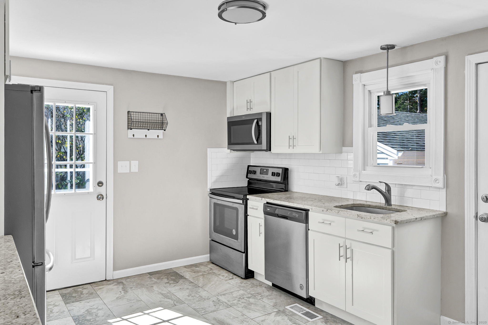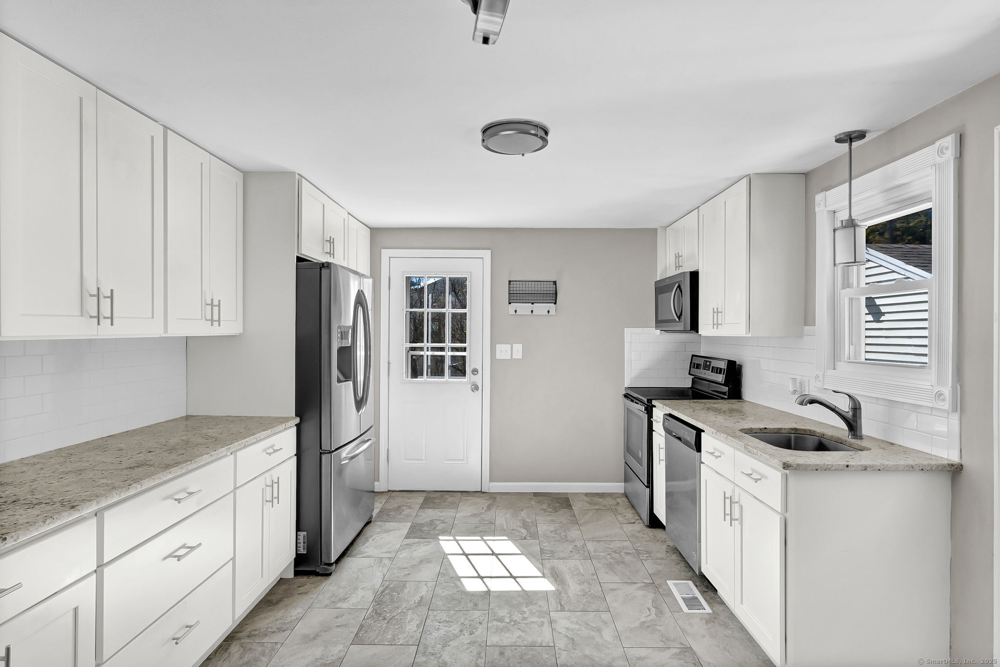 **HIGHEST AND BEST DUE BY MONDAY 10/13 BY 8PM** Welcome to this beautifully updated ranch that perfectly blends warmth, functionality, and style. From the moment you arrive, the curb appeal shines - a brand-new roof, clean lines, and a level yard set the stage for easy living. Inside, you're greeted by a bright, open living area anchored by a cozy fireplace, where natural light pours through oversized windows and highlights the gleaming hardwood floors. The updated kitchen features stainless steel appliances, modern cabinetry, and plenty of prep space - the perfect spot for weeknight dinners or weekend entertaining. The home offers three comfortable bedrooms and one full bath, each thoughtfully refreshed for today's lifestyle. Downstairs, the partially finished lower level adds flexibility for a playroom, home office, or media space. Step outside to a private backyard complete with a custom patio and built-in firepit - ideal for summer gatherings or quiet evenings under the stars. A large shed with electricity provides great storage or hobby workshop potential. Located just minutes from Route 6, local restaurants, and shopping, this move-in-ready home combines modern updates with everyday convenience.