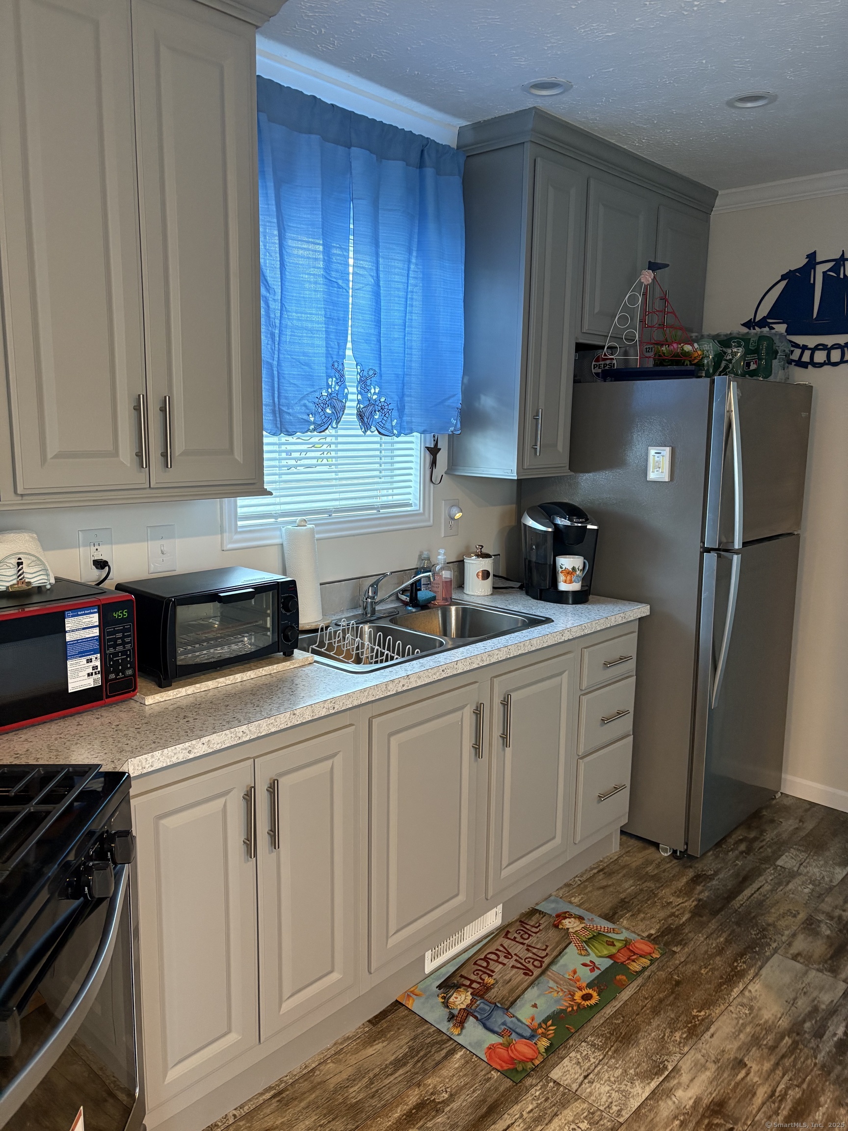 Live like a tourist in MYSTIC! Walk to restaurants and shops. This location is in one of Mystic's historic neighborhoods. A charming and beautiful area with so much to offer. Here is your chance! A lovely like new home in this established family park. This home offers 924 sf, 2 full baths, 2 bedrooms (one on each end of home) attractive vinyl plank flooring and a gorgeous kitchen. THIS UNIT IS ON THE FRONT ROW OF THE PARK. Your only view in front of you is beautiful distant views of the Mystic river, and distant views of Mystic Seaport. NOT TO MENTION AMAZING SUNRISES. This is definitely affordable living at its best! This won't last. Make your appointment today!
