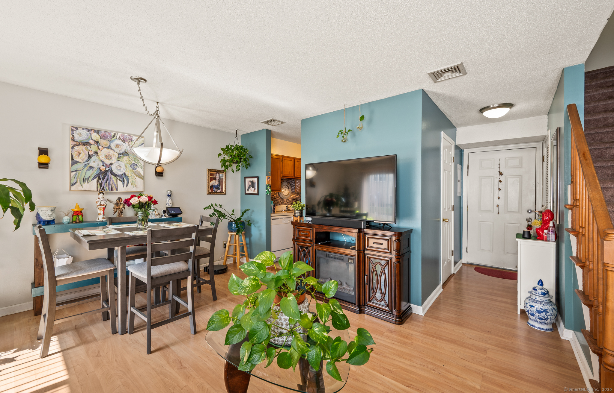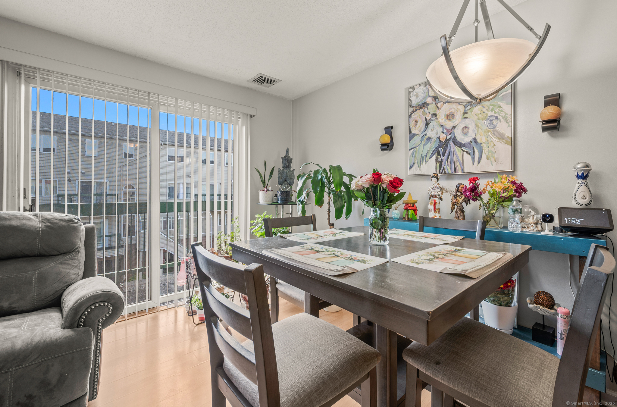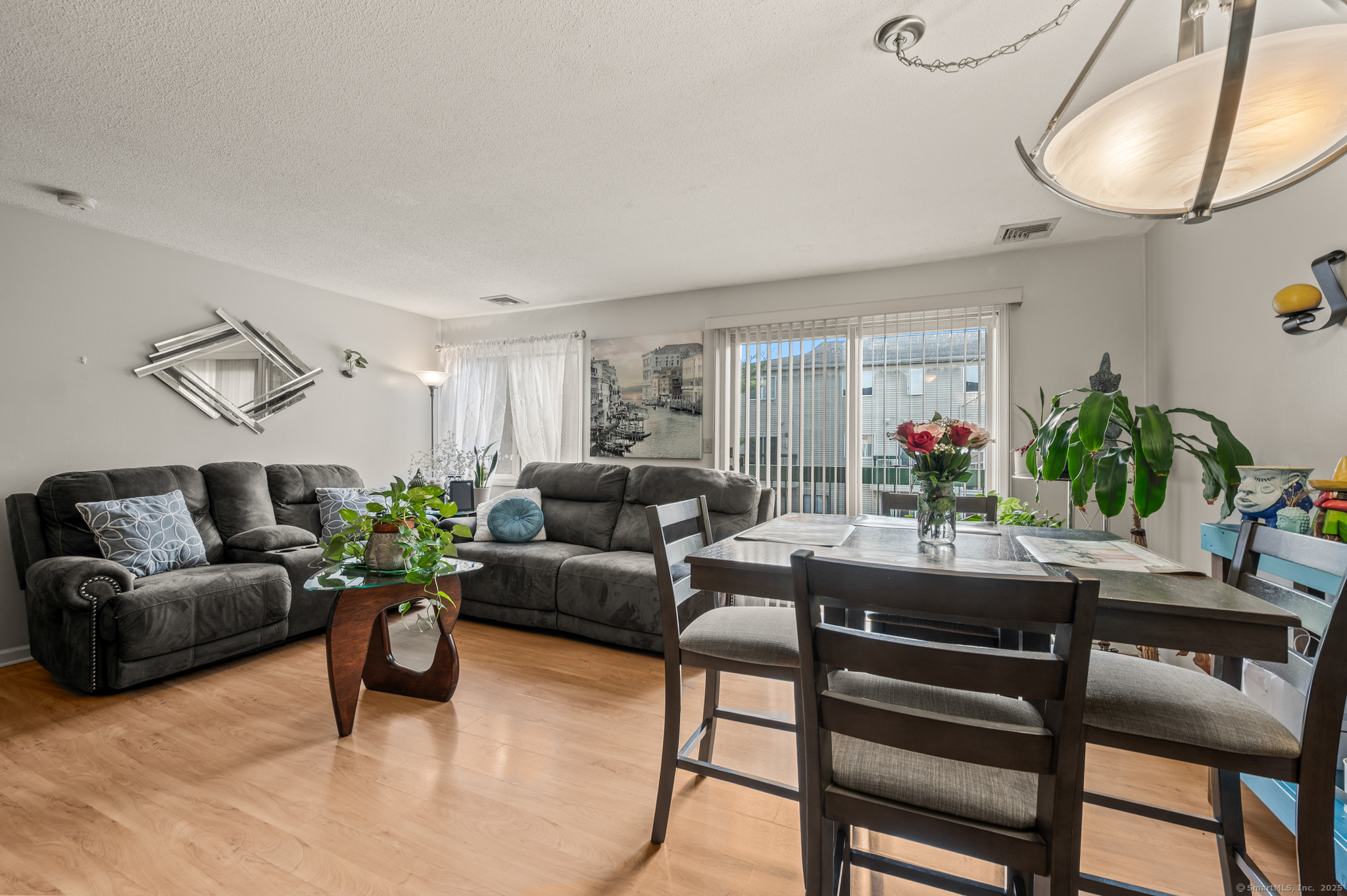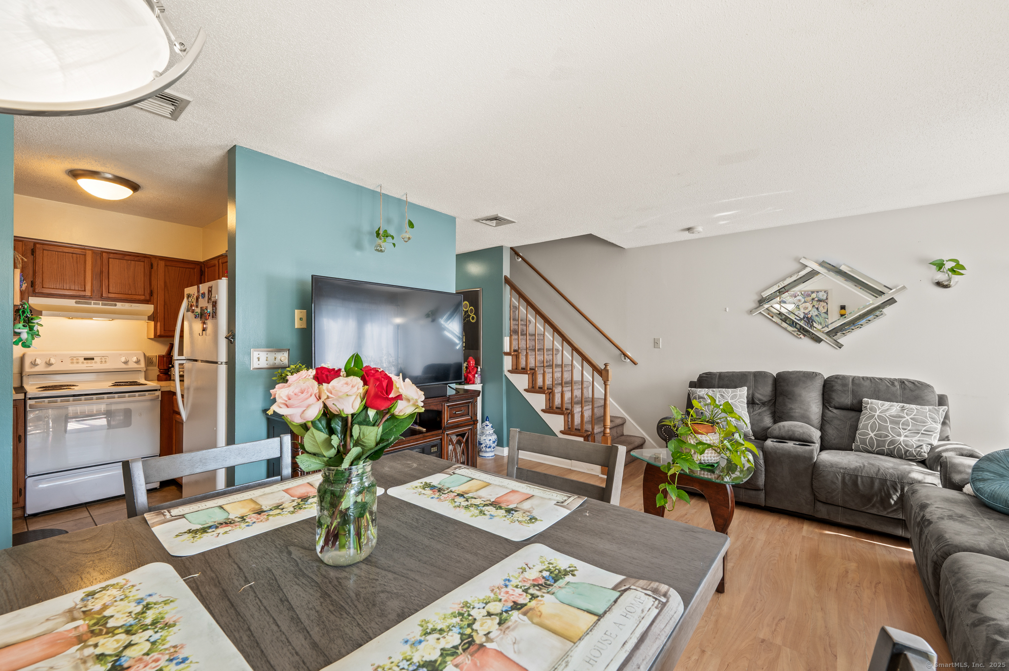 Turnkey and move-in ready, this multi-level condo offers 2 bedrooms, 1.5 baths, and a bright, open layout. The main level features a living/dining room combination, a well-appointed kitchen, and a half bath. A sliding door opens to your private balcony, filling the space with natural light. Upstairs, the primary bedroom includes a walk-in closet, with a second generous bedroom nearby. The full bath and convenient in-unit washer/dryer hookup are also on this level. Additional highlights include central A/C, private storage on the garage level, and a dedicated parking space. Located right on the Meriden/Wallingford line, this home puts you close to shopping, dining, and commuter routes including the Merritt Parkway, I-91, and I-84.