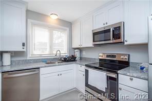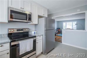 This incredible 2 bedroom, 1 bathroom, 825 square foot rental condo has sparkling hardwood floors throughout, including both bedrooms. Granite countertops and new stainless steel appliances in the spacious kitchen, washer and dryer in unit, and detached garage parking! In the heart of West Hartford's famous Bishop's Corner shopping area - restaurants, grocery shopping, banking, and more are just across the street. This condominium building is centrally located, near 84 East and West highways, 91 North and South highways, and in close proximity to Blue Back Square and West Hartford Center. Pets are welcome with a one time nonrefundable pet fee. One additional parking space in the lot. Secure storage is available in the lower level. Credit check is required. One year minimum lease. Available 11/1/25. Cabinets in this unit are Maple in color, not white as in photos. Pictures are of a similar unit in same complex.