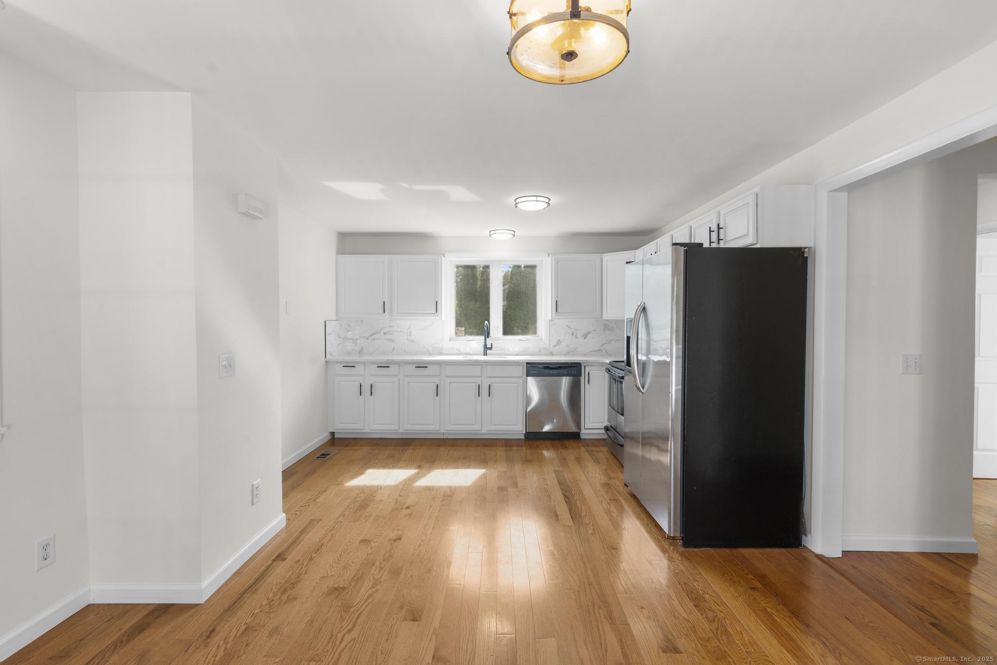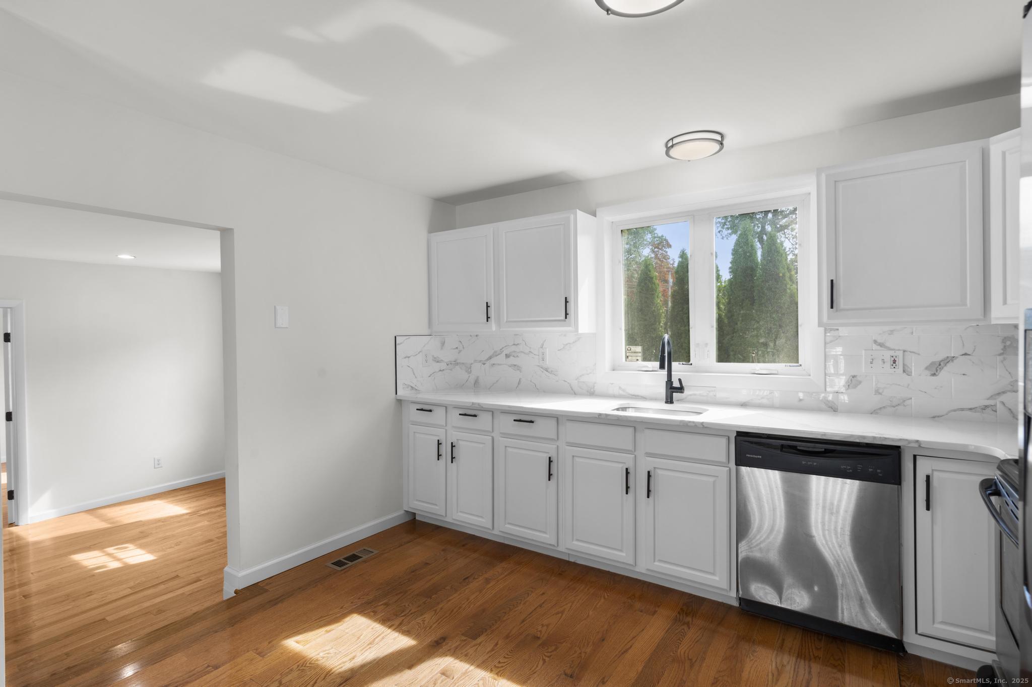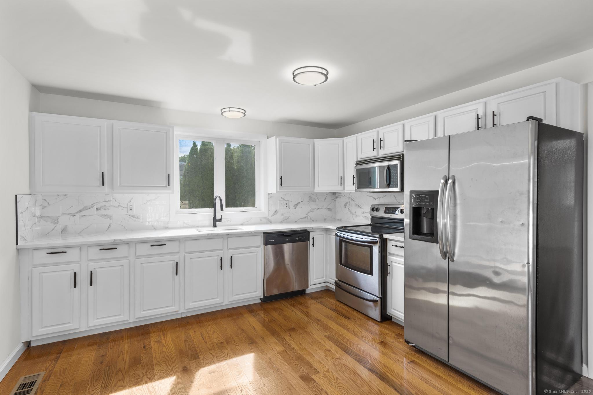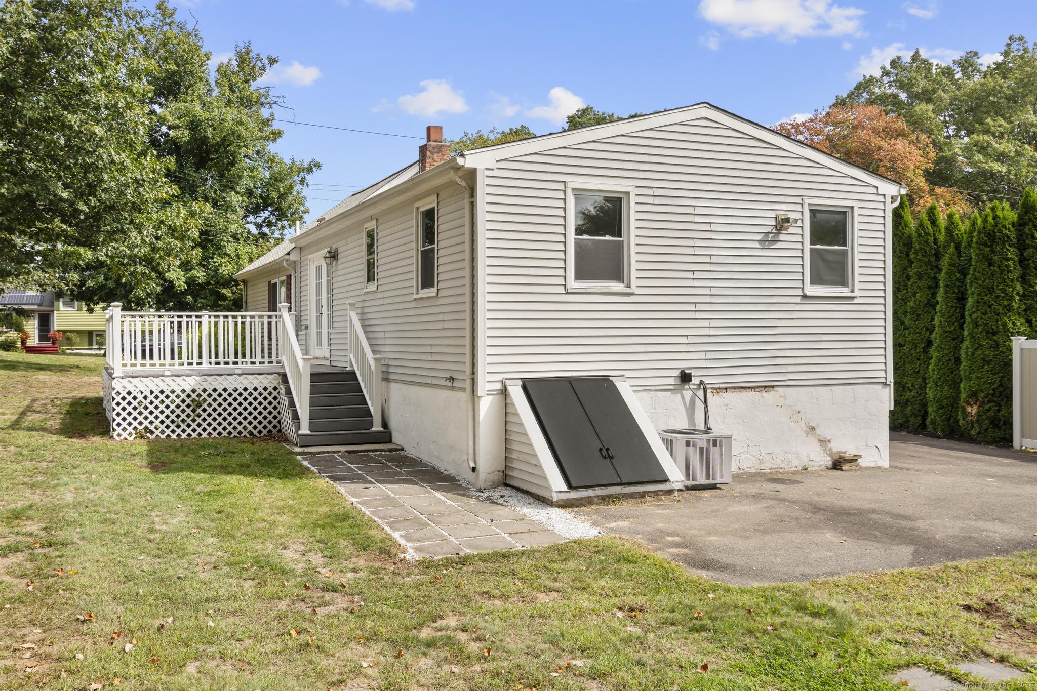 NEW BEGINNINGS in great location in North Haven completely renovated one level living ranch style home. This 3 bedroom, 2 bath ranch sports a new granite and stainless kitchen, dining area with hardwood floors and access to new large deck. A primary bedroom with sleek tiled full bath. An additional updated tiled full bath that is centrally located. Refinished hardwood floors throughout. A comfortable flow allows for easy access to to outdoors and deck entry from newly installed doors in kitchen dining area. New Central Air system added for your comfort. The lower unfinished 1080 SQFT is equipped with new stackable washer/dryer, is clean and dry providing opportunity for additional living space to accommodate your lifestyle needs. A large level back yard with lots of possibility for recreational activity or just relaxing. Property is conveniently located for easy access to highways, town center, shopping, 20 minutes from Yale University and hospitals. MOTIVATED SELLER!! (Come see it, love it, buy it!
