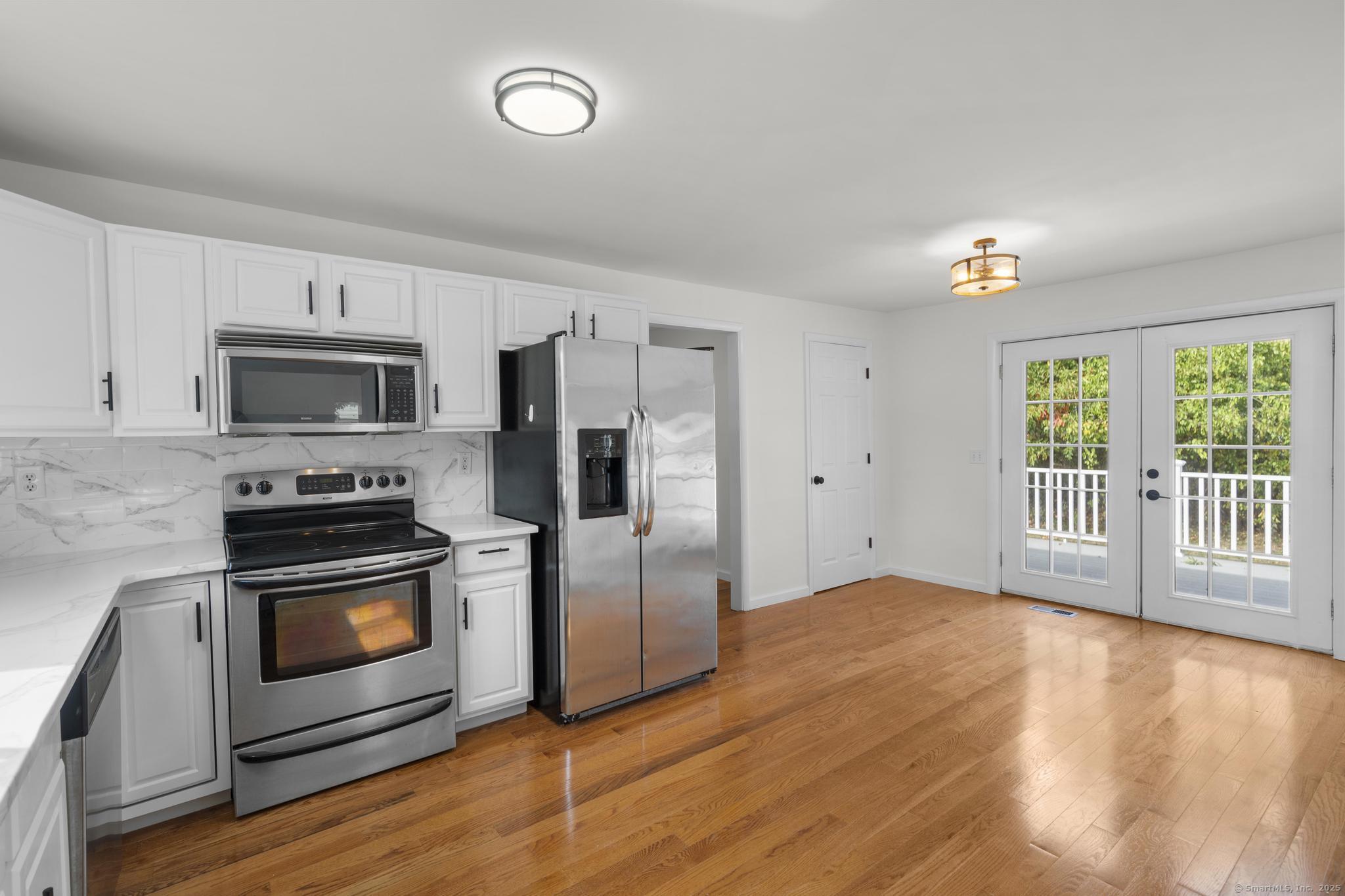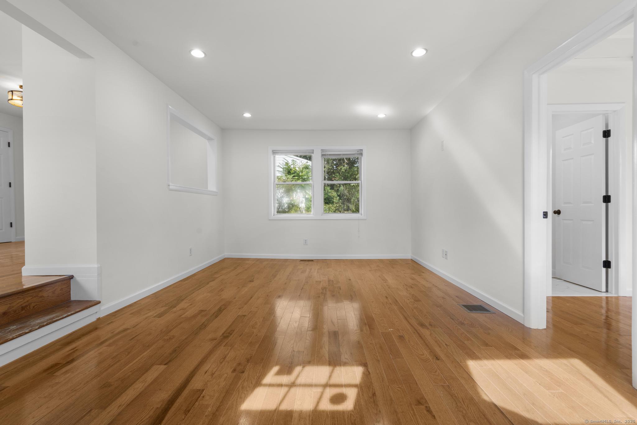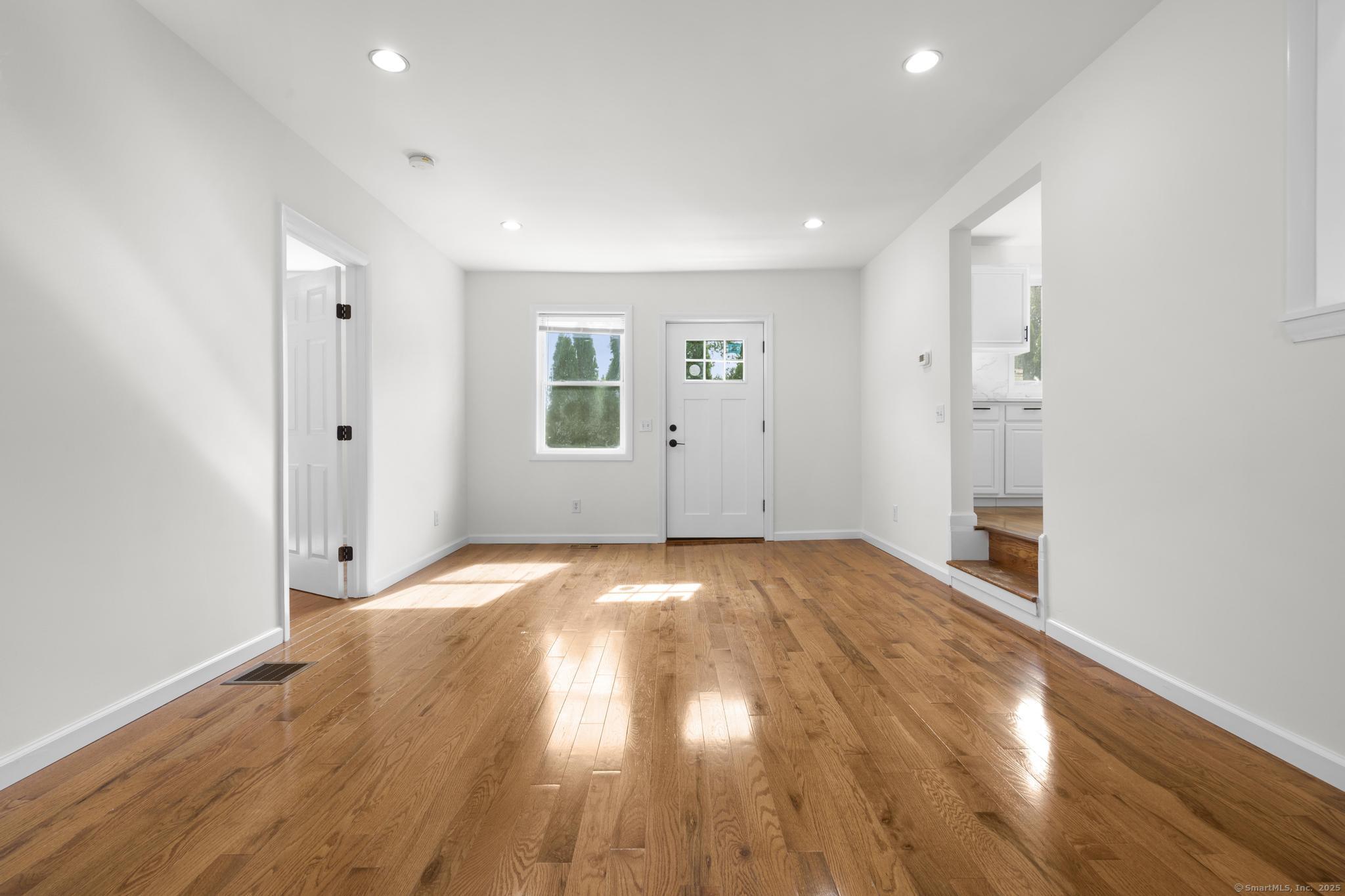 NEW BEGINNINGS in great location in North Haven completely renovated one level living ranch style home. This 3 bedroom, 2 bath ranch sports a new granite and stainless kitchen, dining area with hardwood floors and access to new large deck. A primary bedroom with sleek tiled full bath. An additional updated tiled full bath that is centrally located. Refinished hardwood floors throughout. A comfortable flow allows for easy access to to outdoors and deck entry from newly installed doors in kitchen dining area. New Central Air system added for your comfort. The lower unfinished 1080 SQFT is equipped with new stackable washer/dryer, is clean and dry providing opportunity for additional living space to accommodate your lifestyle needs. A large level back yard with lots of possibility for recreational activity or just relaxing. Property is conveniently located for easy access to highways, town center, shopping, 20 minutes from Yale University and hospitals. MOTIVATED SELLER!! (Come see it, love it, buy it!