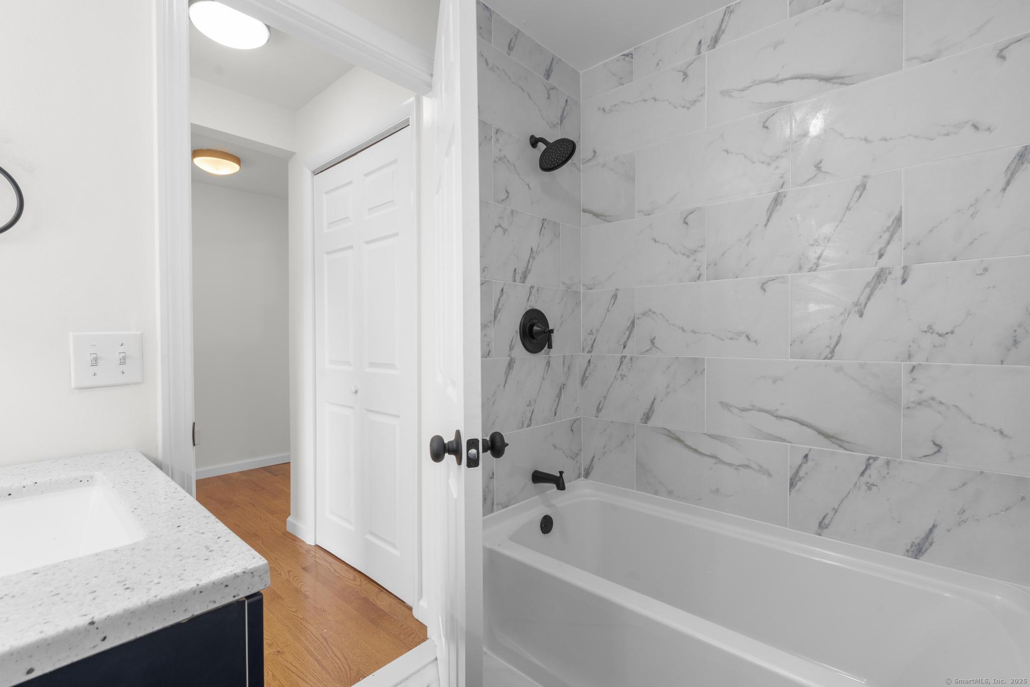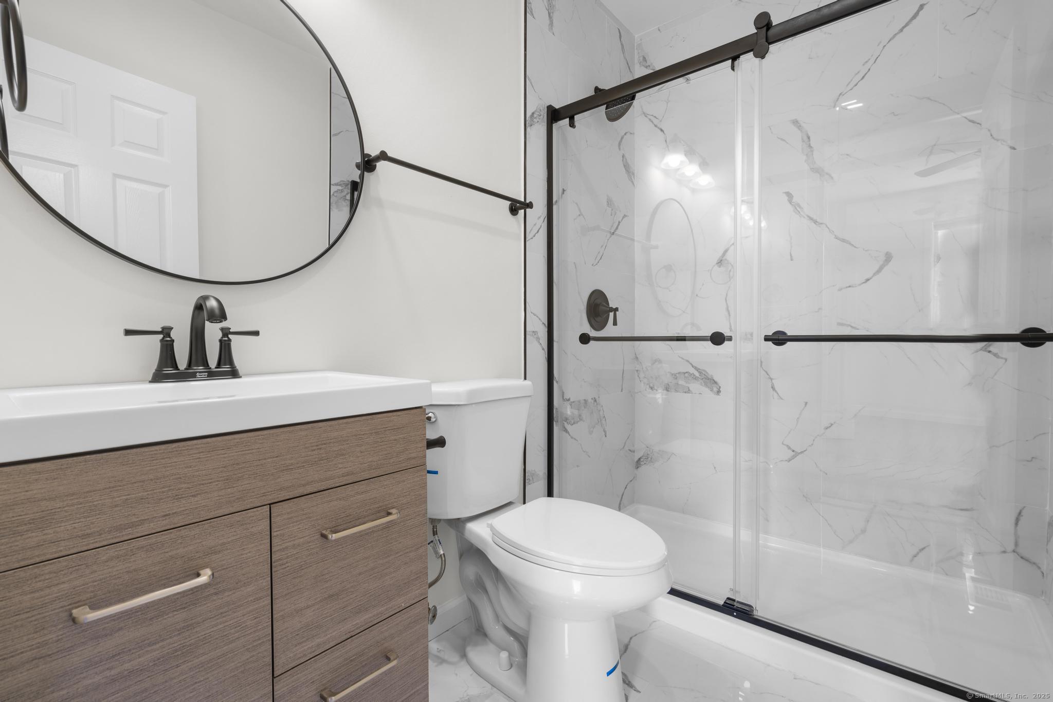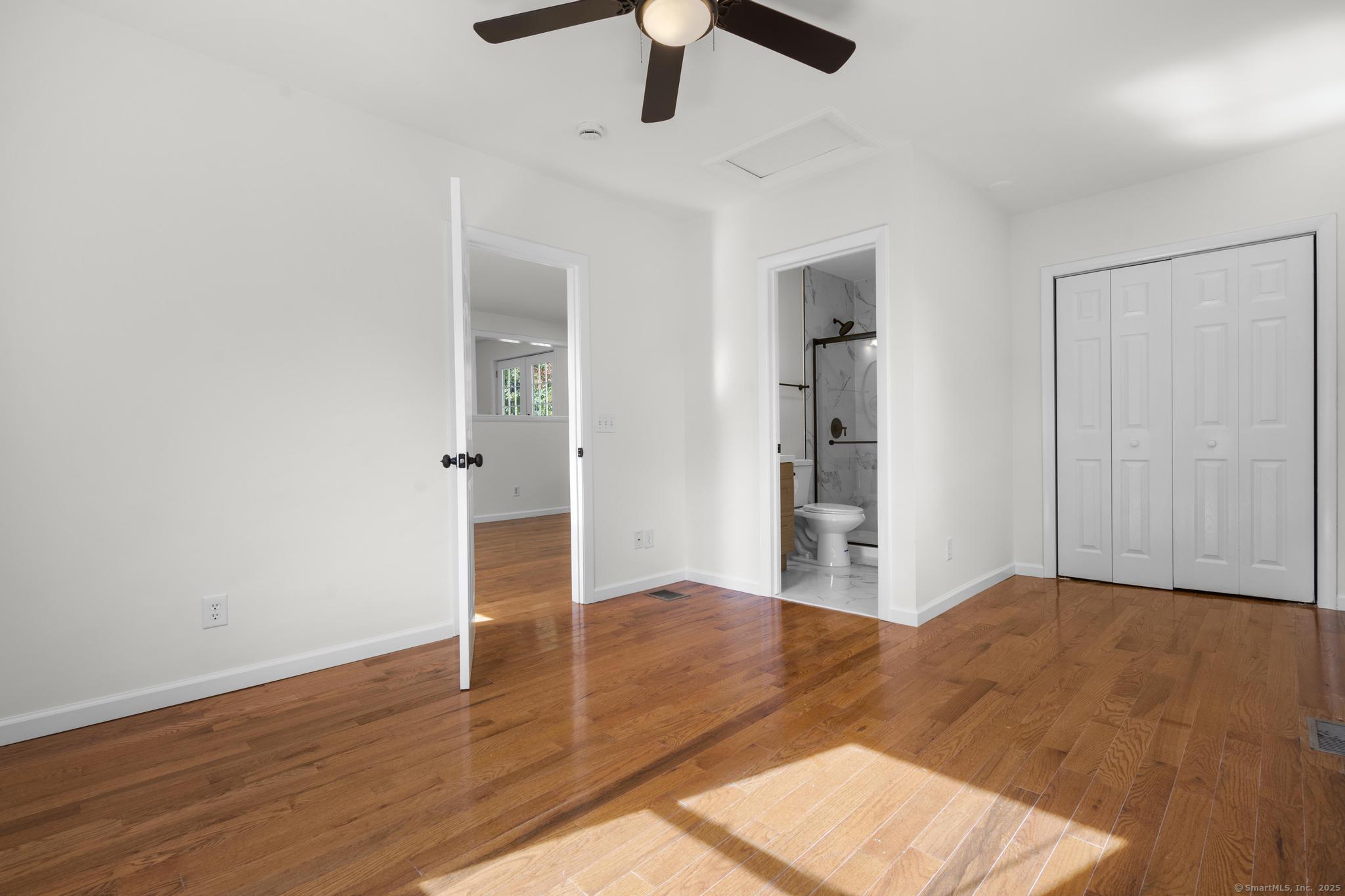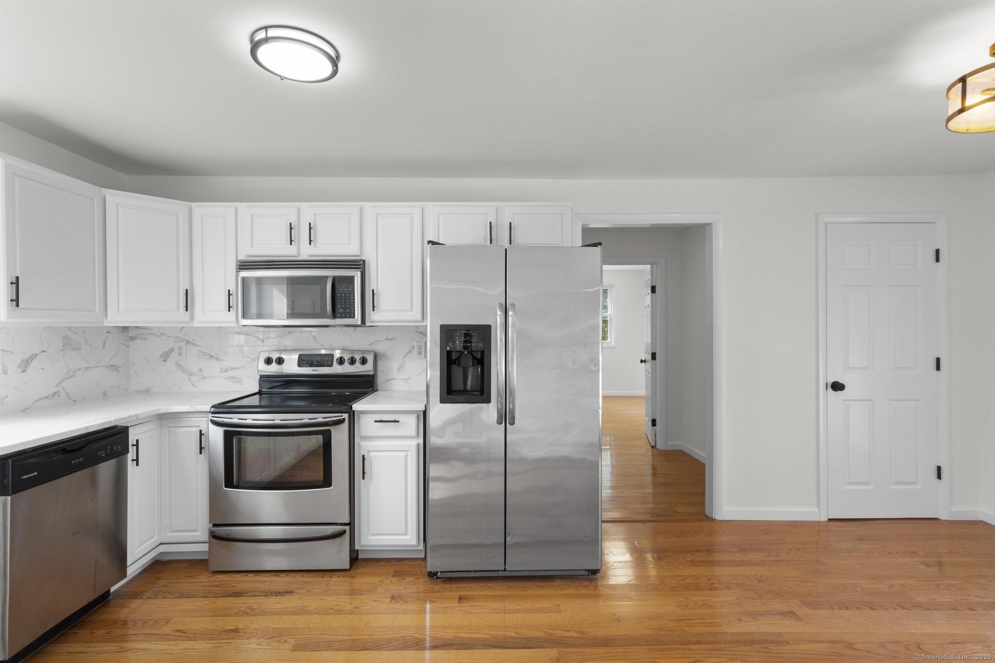 NEW BEGINNINGS in great location in North Haven completely renovated one level living ranch style home. This 3 bedroom, 2 bath ranch sports a new granite and stainless kitchen, dining area with hardwood floors and access to new large deck. A primary bedroom with sleek tiled full bath. An additional updated tiled full bath that is centrally located. Refinished hardwood floors throughout. A comfortable flow allows for easy access to to outdoors and deck entry from newly installed doors in kitchen dining area. New Central Air system added for your comfort. The lower unfinished 1080 SQFT is equipped with new stackable washer/dryer, is clean and dry providing opportunity for additional living space to accommodate your lifestyle needs. A large level back yard with lots of possibility for recreational activity or just relaxing. Property is conveniently located for easy access to highways, town center, shopping, 20 minutes from Yale University and hospitals. MOTIVATED SELLER!! (Come see it, love it, buy it!