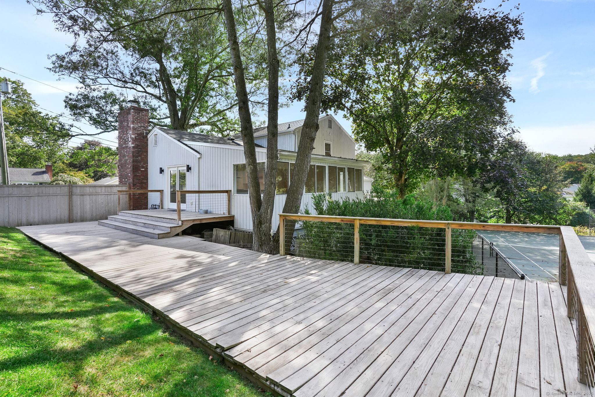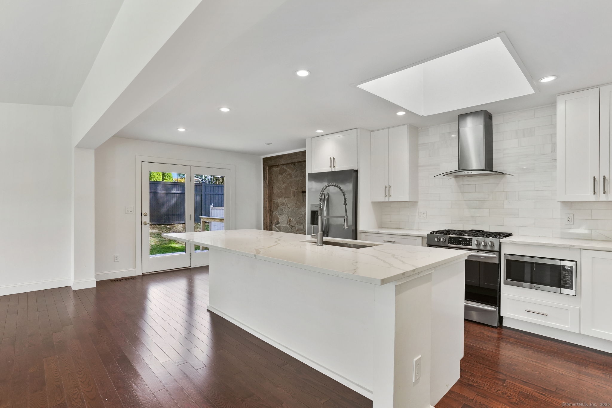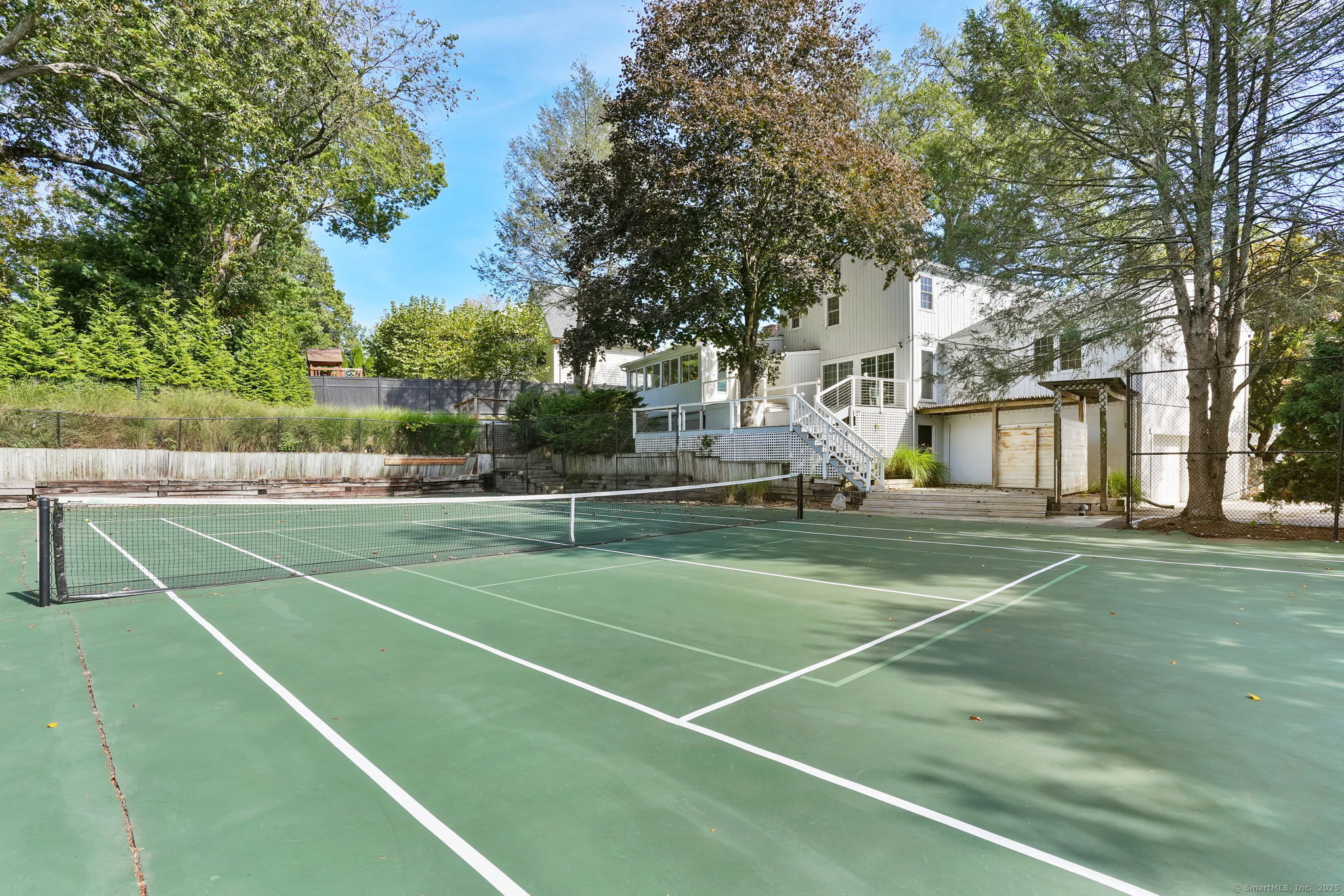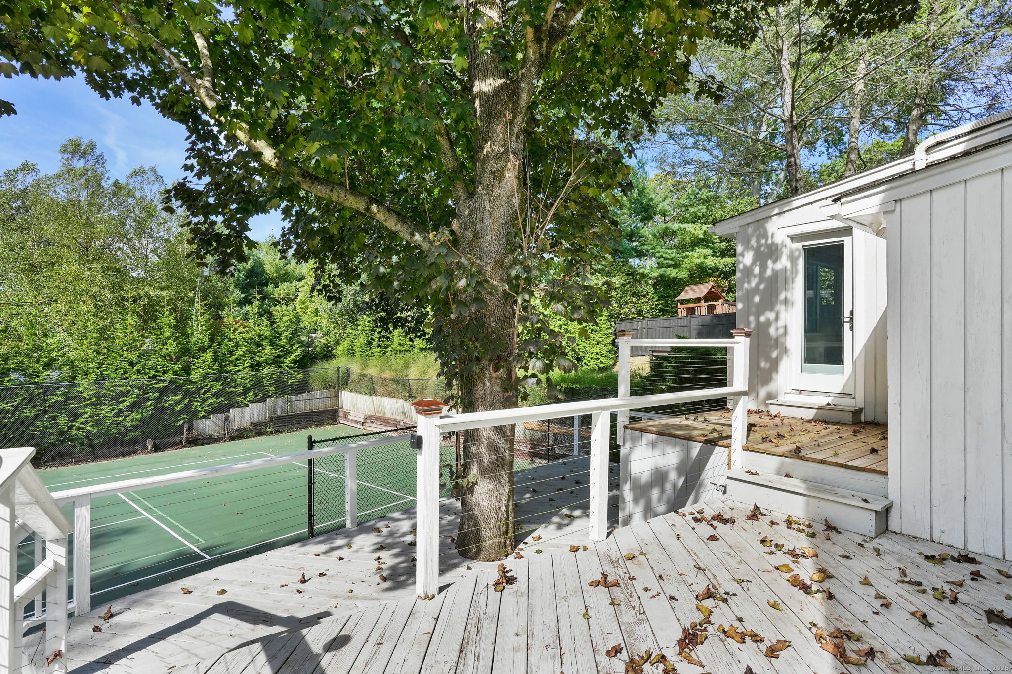Charming and Updated Split-Level Colonial ~ Pet-Friendly ~ Walk-to-Town: This 4-5 bedroom, 3.5 bath split-level Colonial is perfectly situated in a desirable walk-to-town neighborhood. Sun-filled rooms and hardwood floors create an open, inviting floor plan ideal for everyday living and entertaining. The eat-in kitchen features quartz countertops, a center island, and stainless steel appliances with easy access to the main living spaces. Relax in the cozy living room with gas fireplace or gather in the spacious family room with sliders that open to an expansive deck overlooking the private tennis court and generous backyard. Main level highlights include a large primary suite with ensuite bath and walk-in closet, plus a laundry room with full-size washer and dryer. Upstairs are 3 additional bedrooms and a full hall bath with tub/shower. The finished walk-out lower level is heated and air-conditioned, offering a huge recreation room, a full bath, and an extra room ideal for a home office or a fifth bedroom. Outdoor living features multiple decks and patios surrounded by mature plantings for privacy-perfect for entertaining or relaxing-and a fabulous tennis court. Tenant is responsible for all utilities and grounds maintenance. Available now.