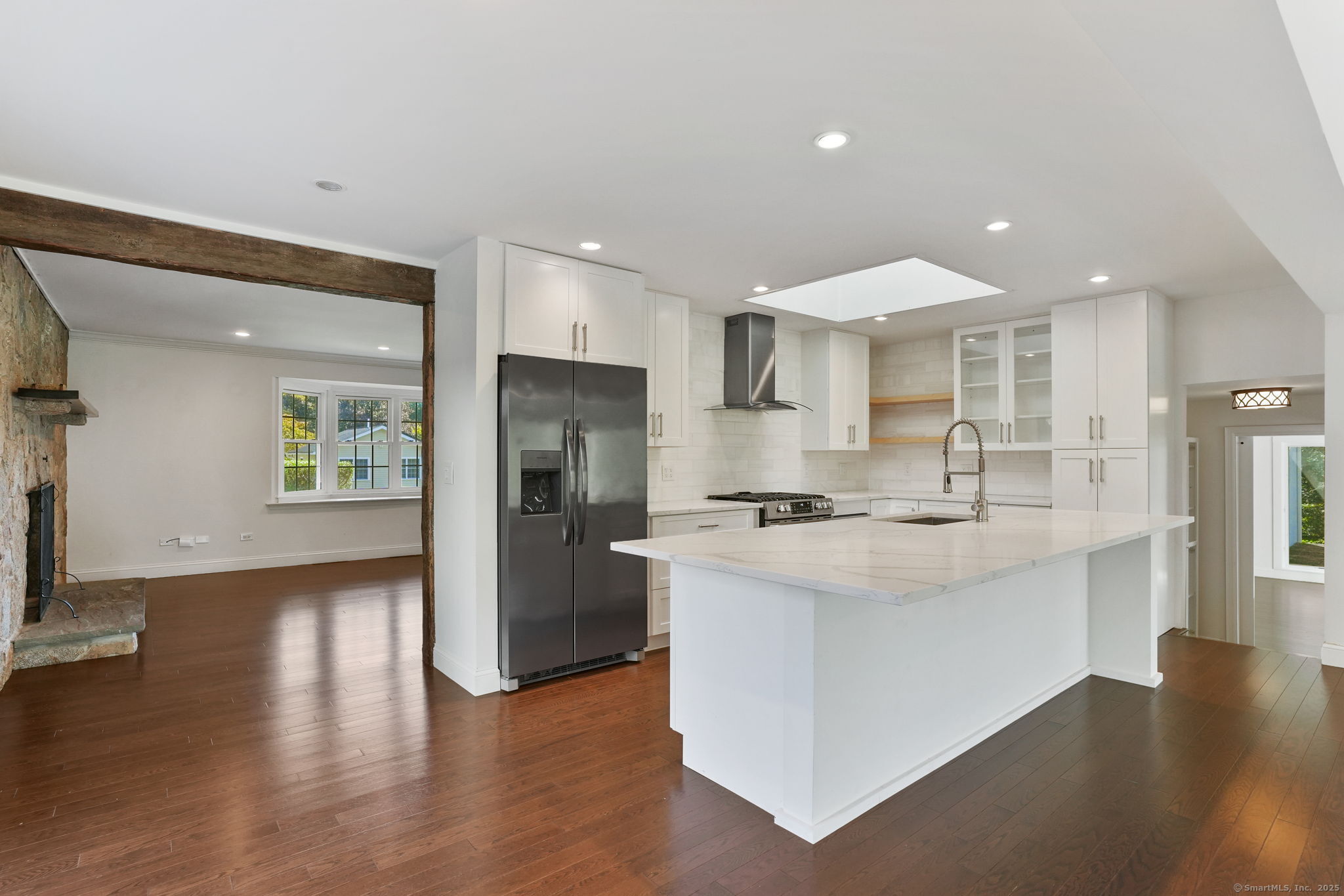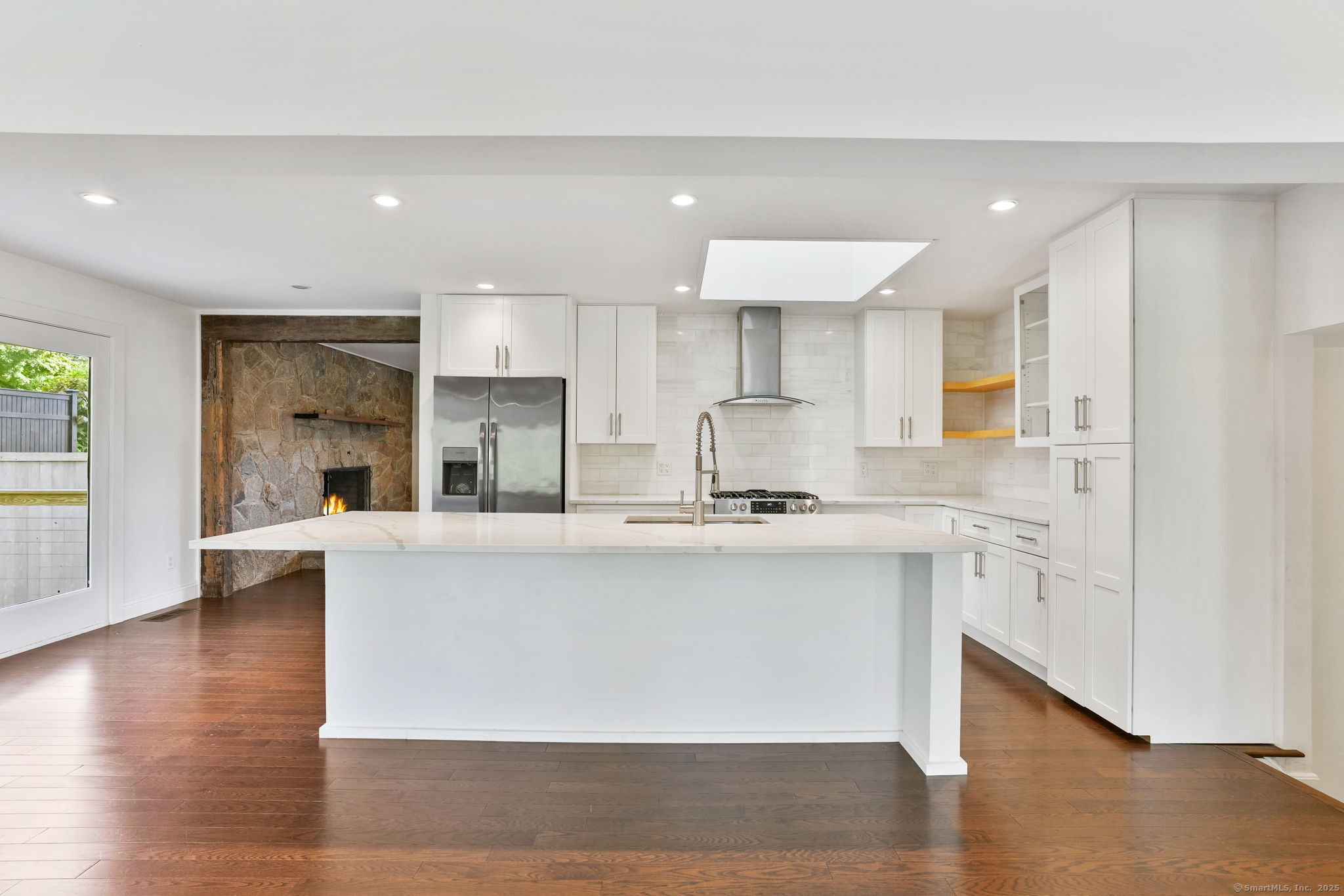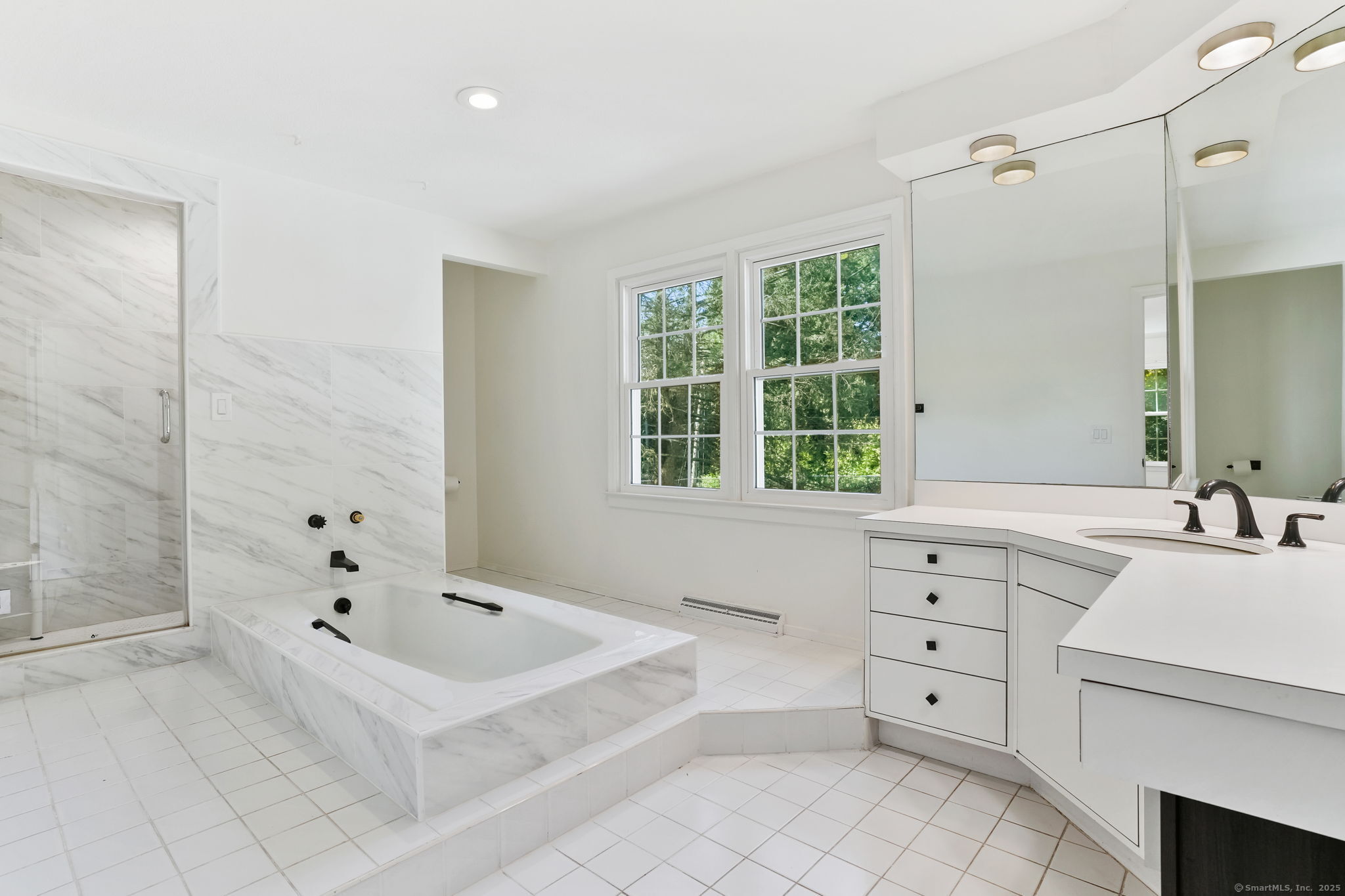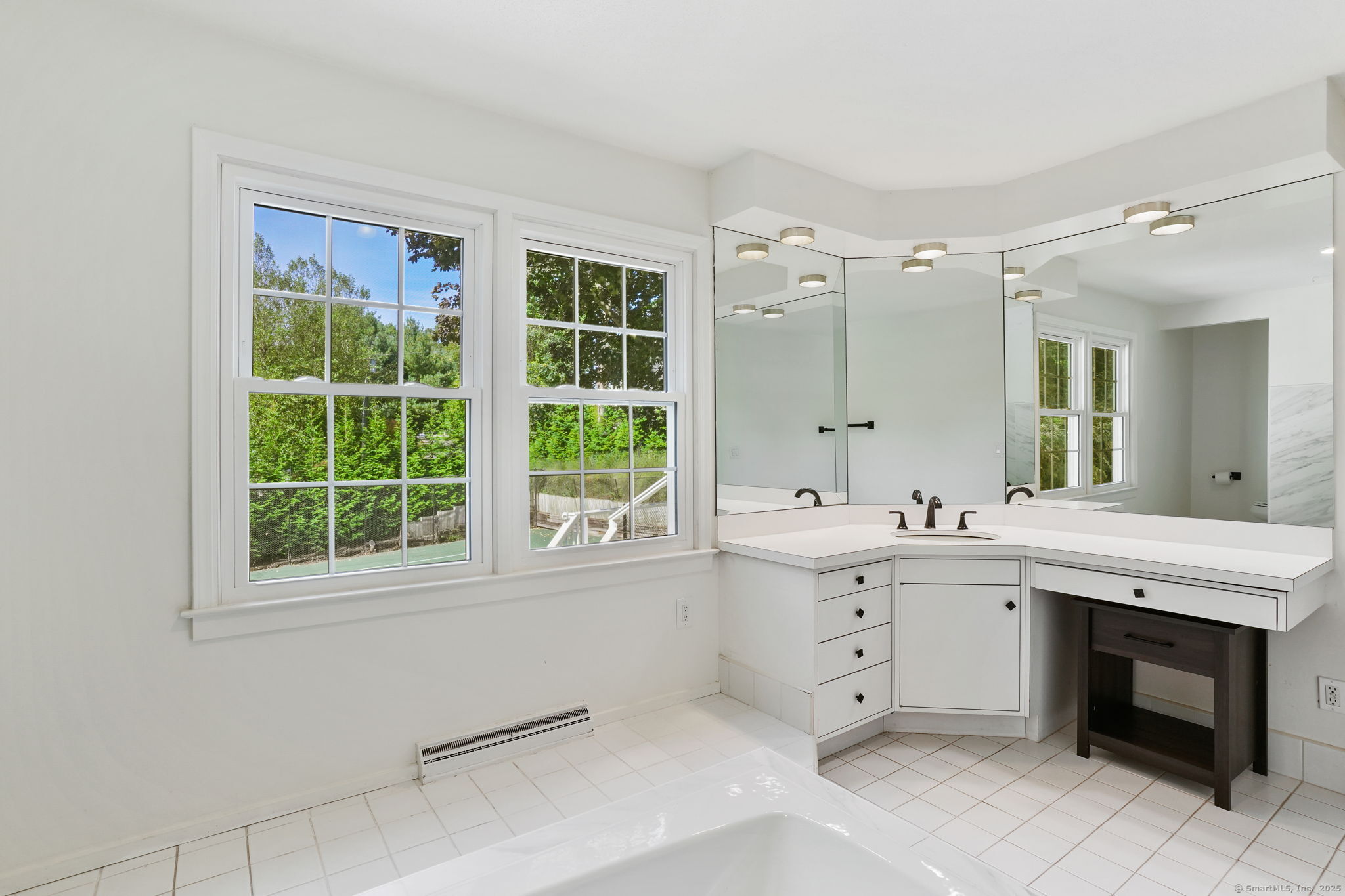 Charming and Updated Split-Level Colonial ~ Pet-Friendly ~ Walk-to-Town: This 4-5 bedroom, 3.5 bath split-level Colonial is perfectly situated in a desirable walk-to-town neighborhood. Sun-filled rooms and hardwood floors create an open, inviting floor plan ideal for everyday living and entertaining. The eat-in kitchen features quartz countertops, a center island, and stainless steel appliances with easy access to the main living spaces. Relax in the cozy living room with gas fireplace or gather in the spacious family room with sliders that open to an expansive deck overlooking the private tennis court and generous backyard. Main level highlights include a large primary suite with ensuite bath and walk-in closet, plus a laundry room with full-size washer and dryer. Upstairs are 3 additional bedrooms and a full hall bath with tub/shower. The finished walk-out lower level is heated and air-conditioned, offering a huge recreation room, a full bath, and an extra room ideal for a home office or a fifth bedroom. Outdoor living features multiple decks and patios surrounded by mature plantings for privacy-perfect for entertaining or relaxing-and a fabulous tennis court. Tenant is responsible for all utilities and grounds maintenance. Available now.
