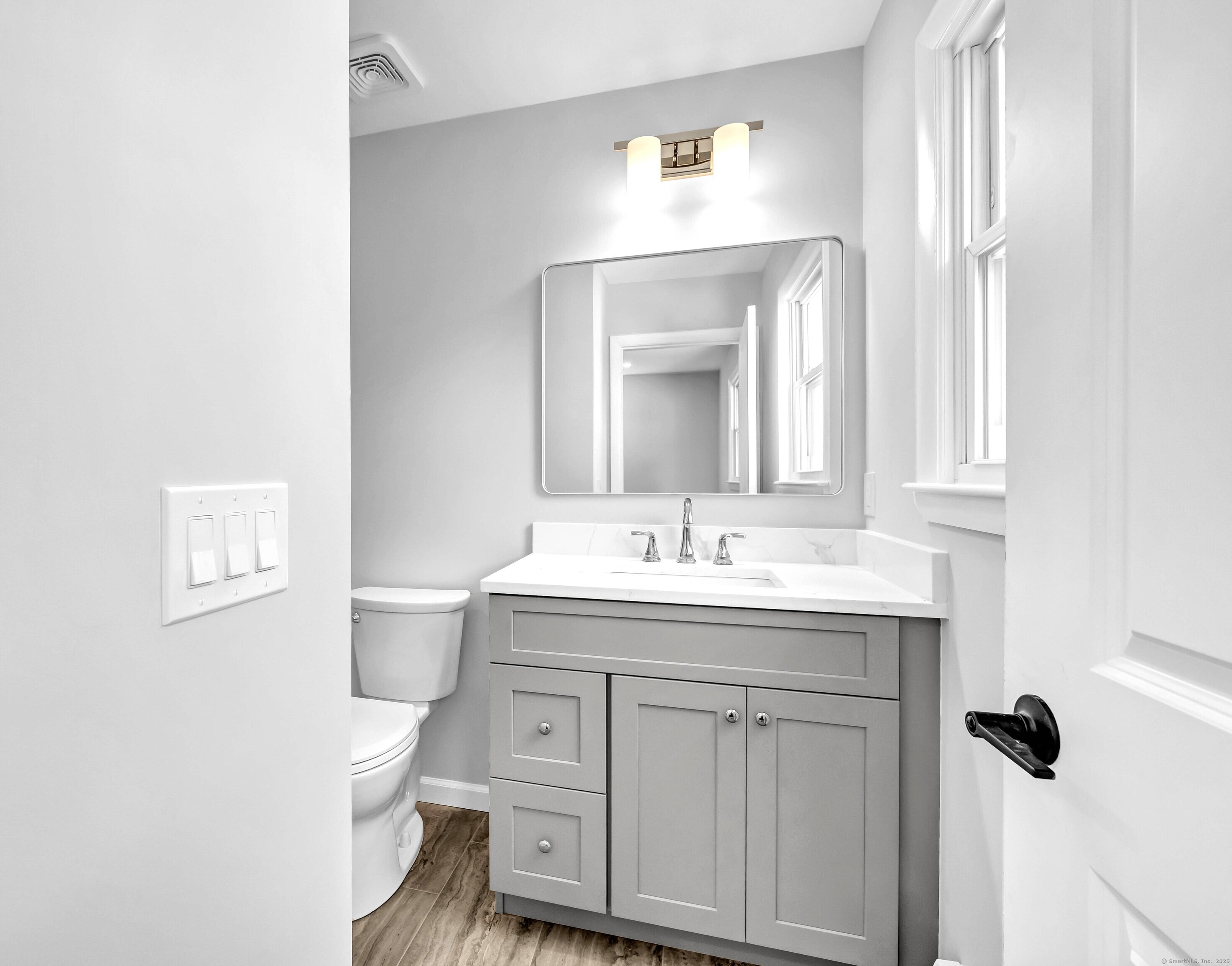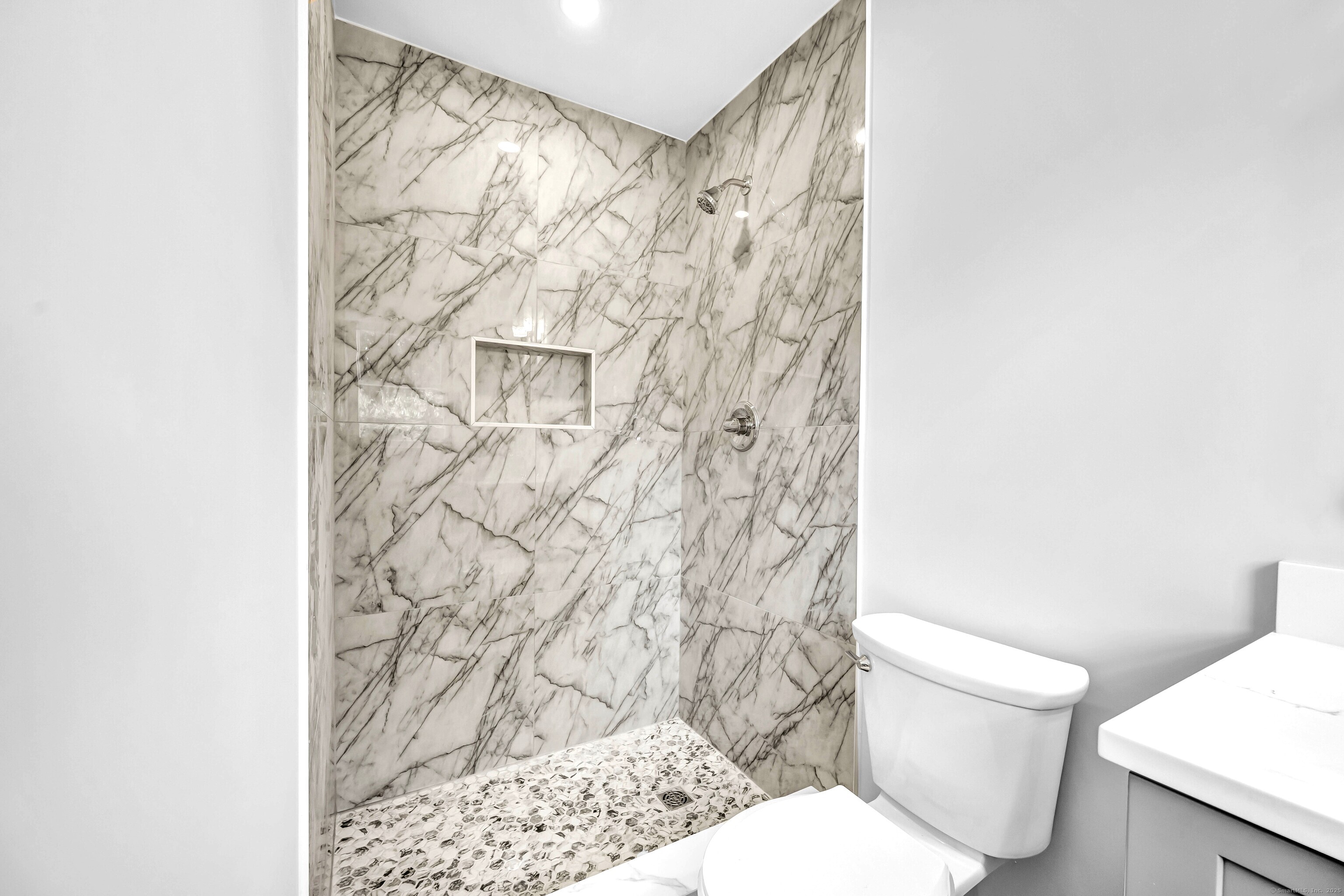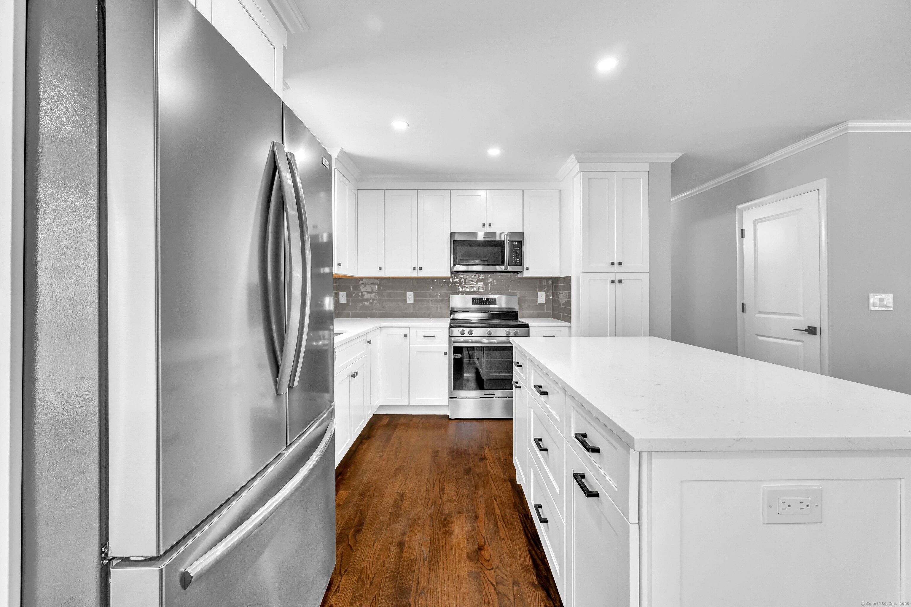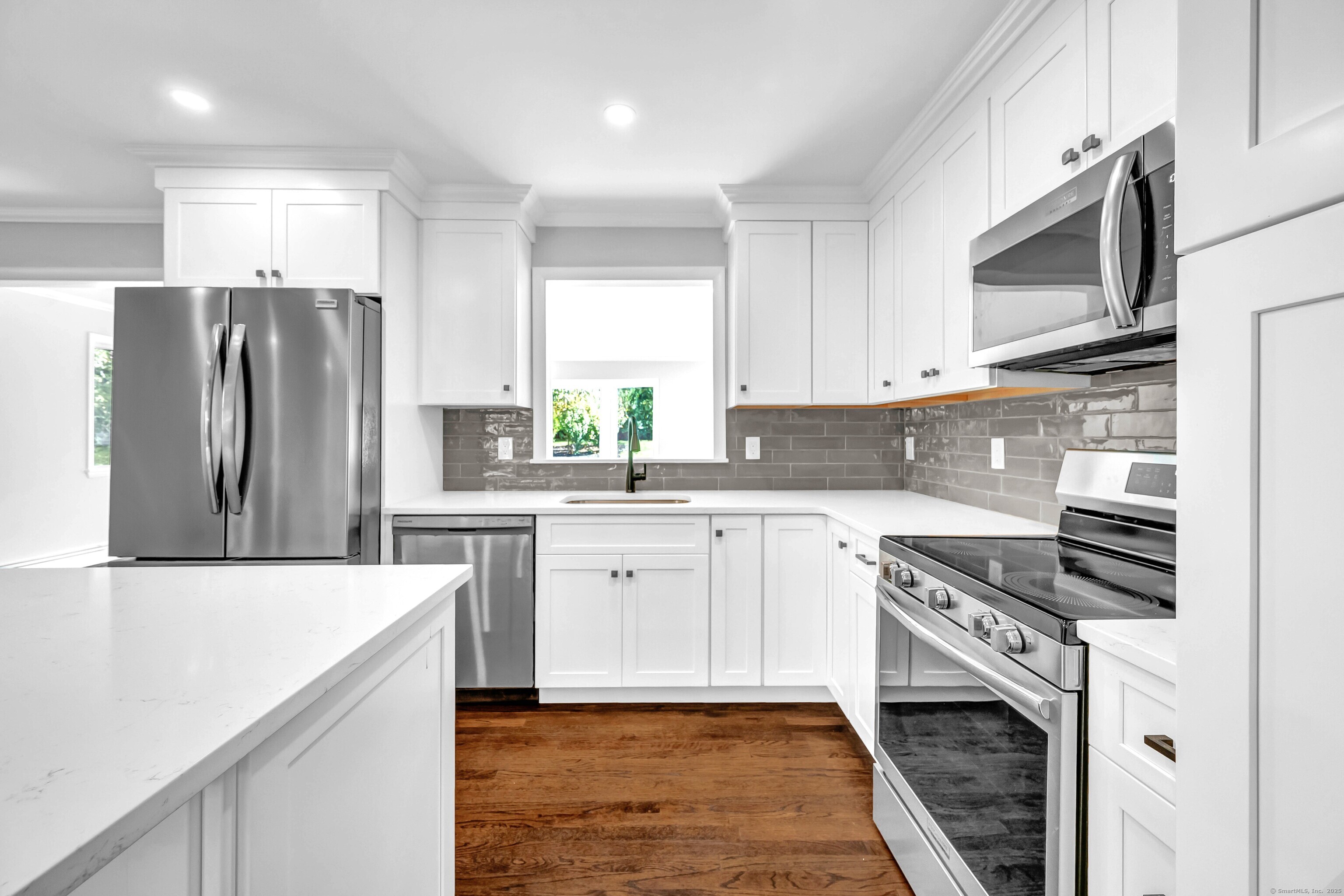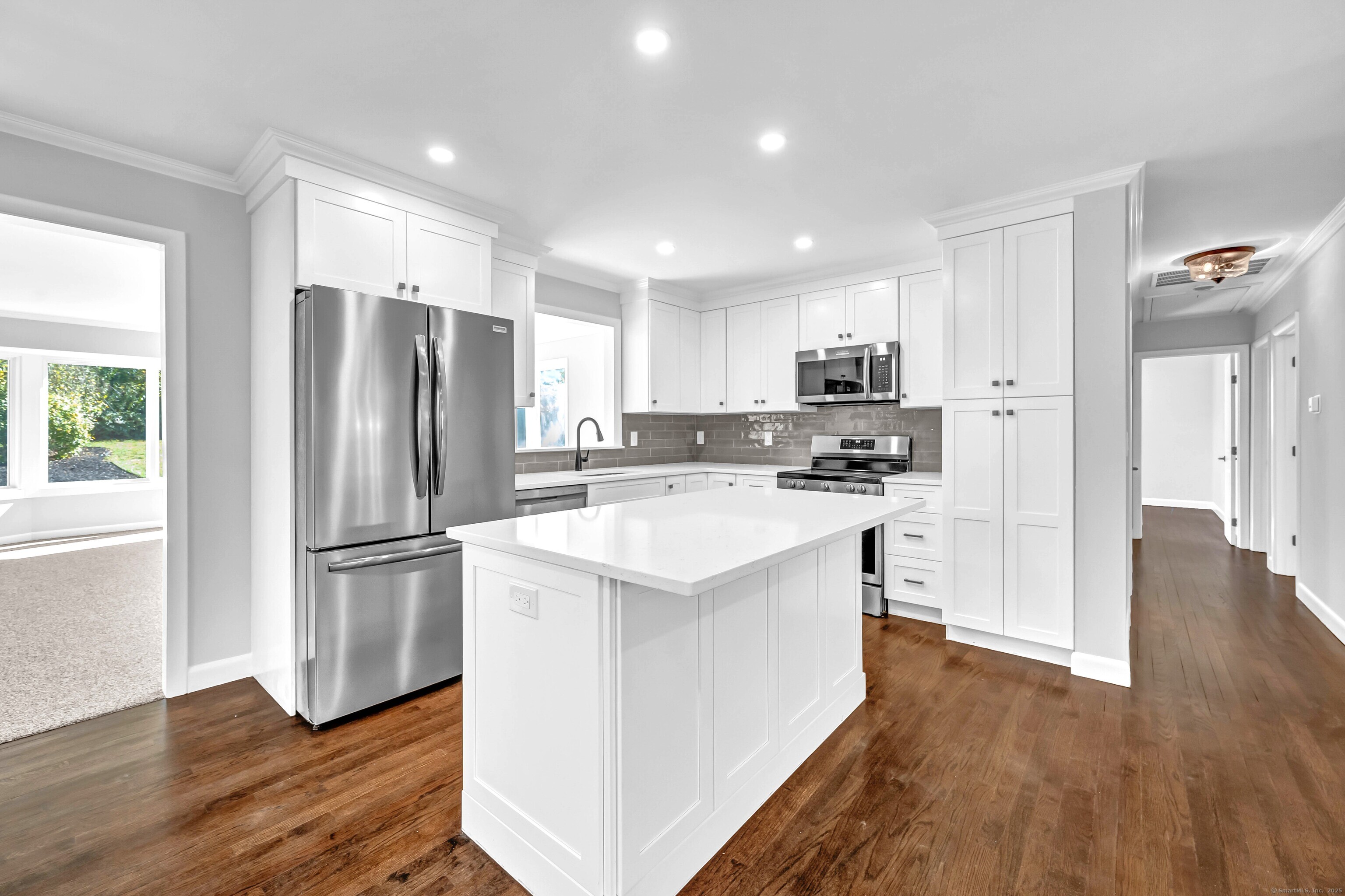 Move right into this totally renovated light and bright home in Charcoal Ridge area of southwestern New Fairfield. Features include new open floor plan, new white Shaker style cabinets with center island, quartz countertops and stainless-steel appliances. Two new fully tiled baths including main bath with double sinks, new recessed lighting and lighting fixtures throughout, refinished hardwood floors on main level (except family room), all new interior doors, crown molding, new central air on main level. 22'x17' main level family room with brand new walk-in bay window overlooking lovely private back yard. Sun deck, new roof 2025 and new boiler 2023. Completely gutted and refinished lower-level recreation room with fireplace, laundry/utility room, new 200 AMP service and new panel box, oversized two car garage with new openers new front walk, steps and retaining walls, new paved driveway with extra parking area. Excellent commute location to Westchester County. Minutes to Lake Candlewood, shopping and restaurants. This turn-key property is priced to sell !!!