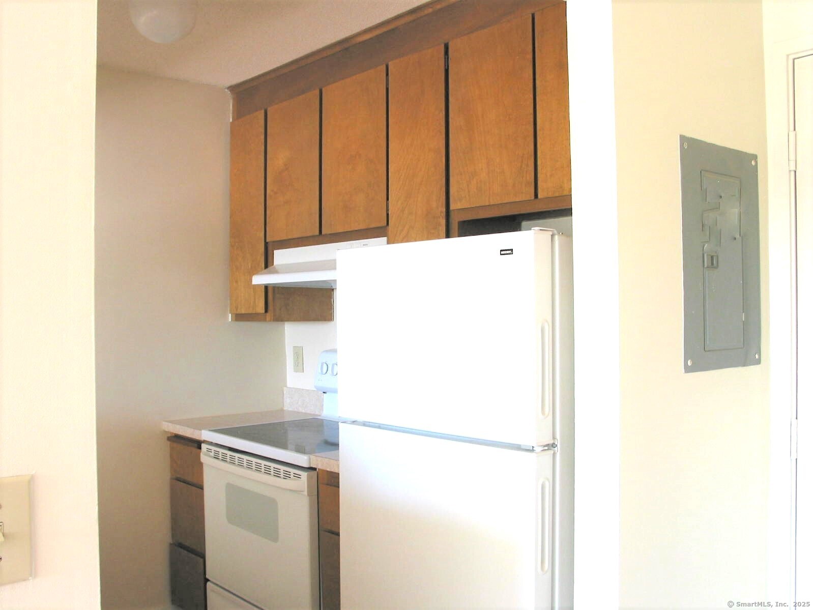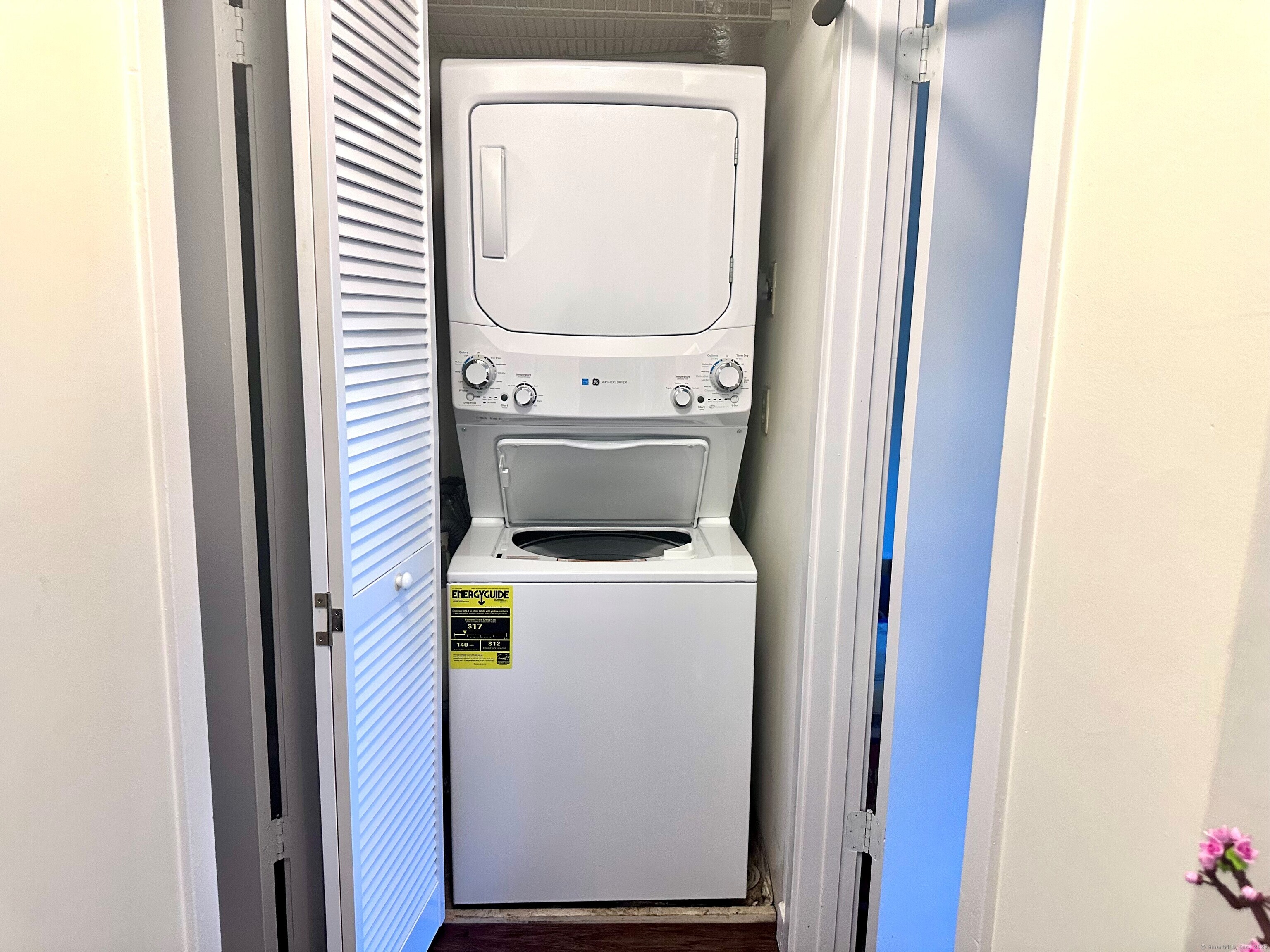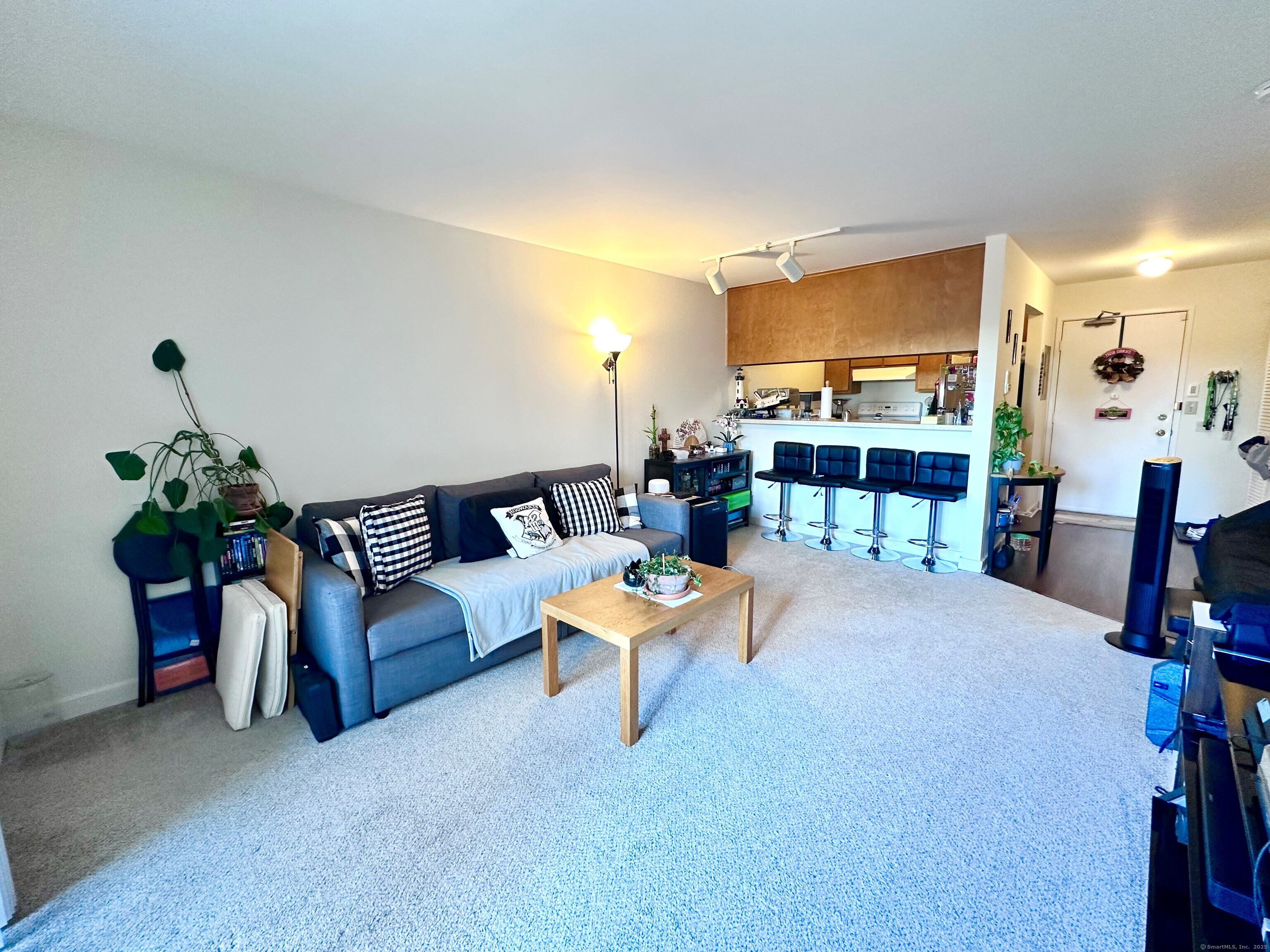 Popular, conveniently located complex, well maintained,close to everything incl I84, Danbury Mall, Trains stations, walking distance to Rogers and TerryWile Parks, shopping, Dunkin Donuts, downtown, and more. Updates in 2019 included new tile floors in Kitchen & Bath, new bath vanity with granite counter, new tub/shower in 2024, newer hard floors/Duromax in foyer and hall,these are grandfathered,newer kitchen counters and appliances, newer fixtures,HWH in 2022 w/12 yr warranty.Unit features efficient heat pump w/central air, security/intercom entrance,assigned garage parking space,#90,open outdoor parking for 2nd vehicles&visitors-never a shortage, storage cage in basement under smaller building, convenient garbage chutes on every floor,open floor plan offering tons of natural light; kitchen w/breakfast bar opens to living room/dining room combo with sliders out to a sunny, front facing deck overlooking distant views&island gardens, nice size bedroom w/walk in closet,convenient washer/dryer in hall closet. WATER,SEWER,TRASH AND GARAGE PARKING are included in condo fees. Some pictures were taken before current tenant moved in, others are current. Updated pictures coming after tenant vacates. Please excuse any clutter, current tenant in process or packing. Broker/Owner. Building elevator being replaced starting in December. See agent remarks for BOMK reason-nothing to do with condo, inspections or financing.