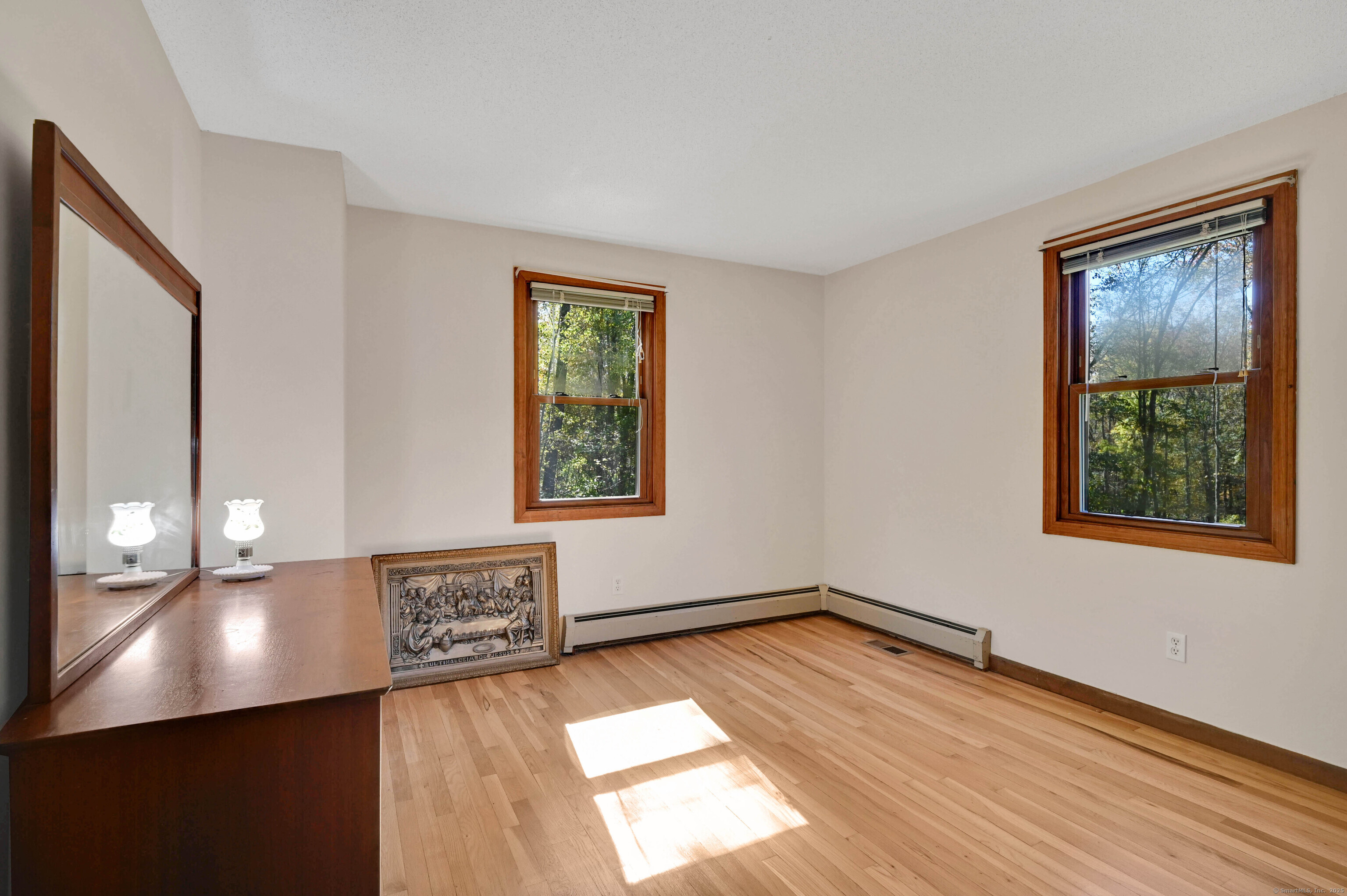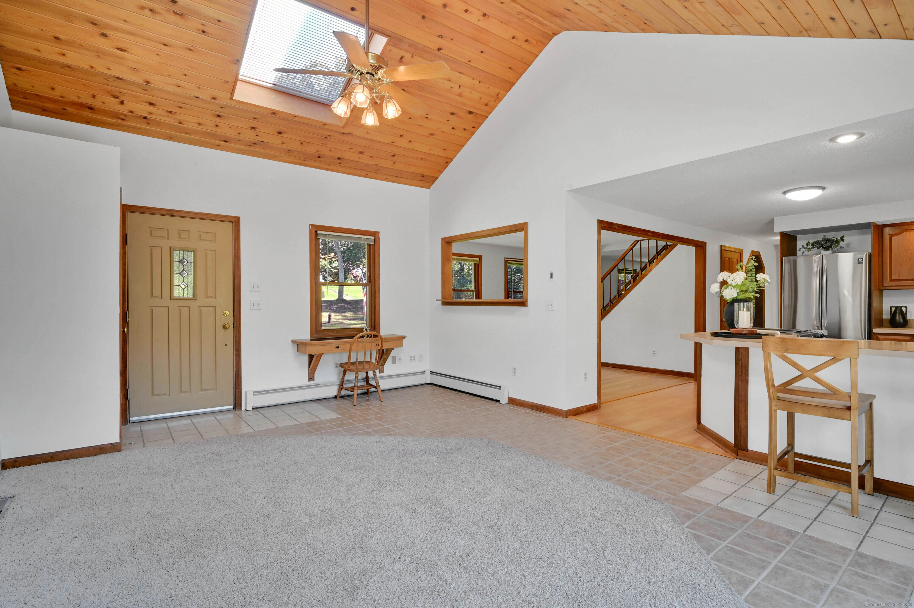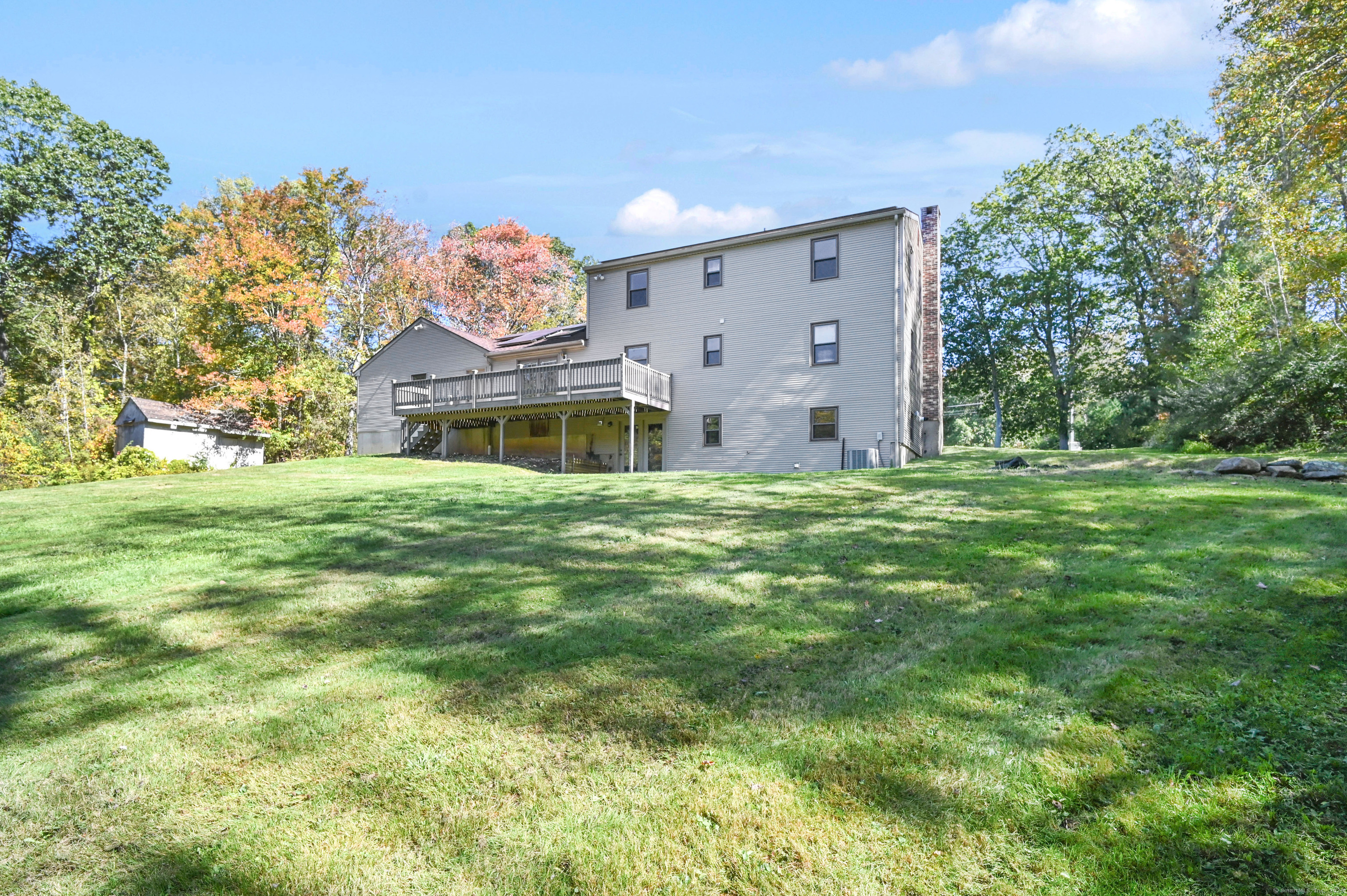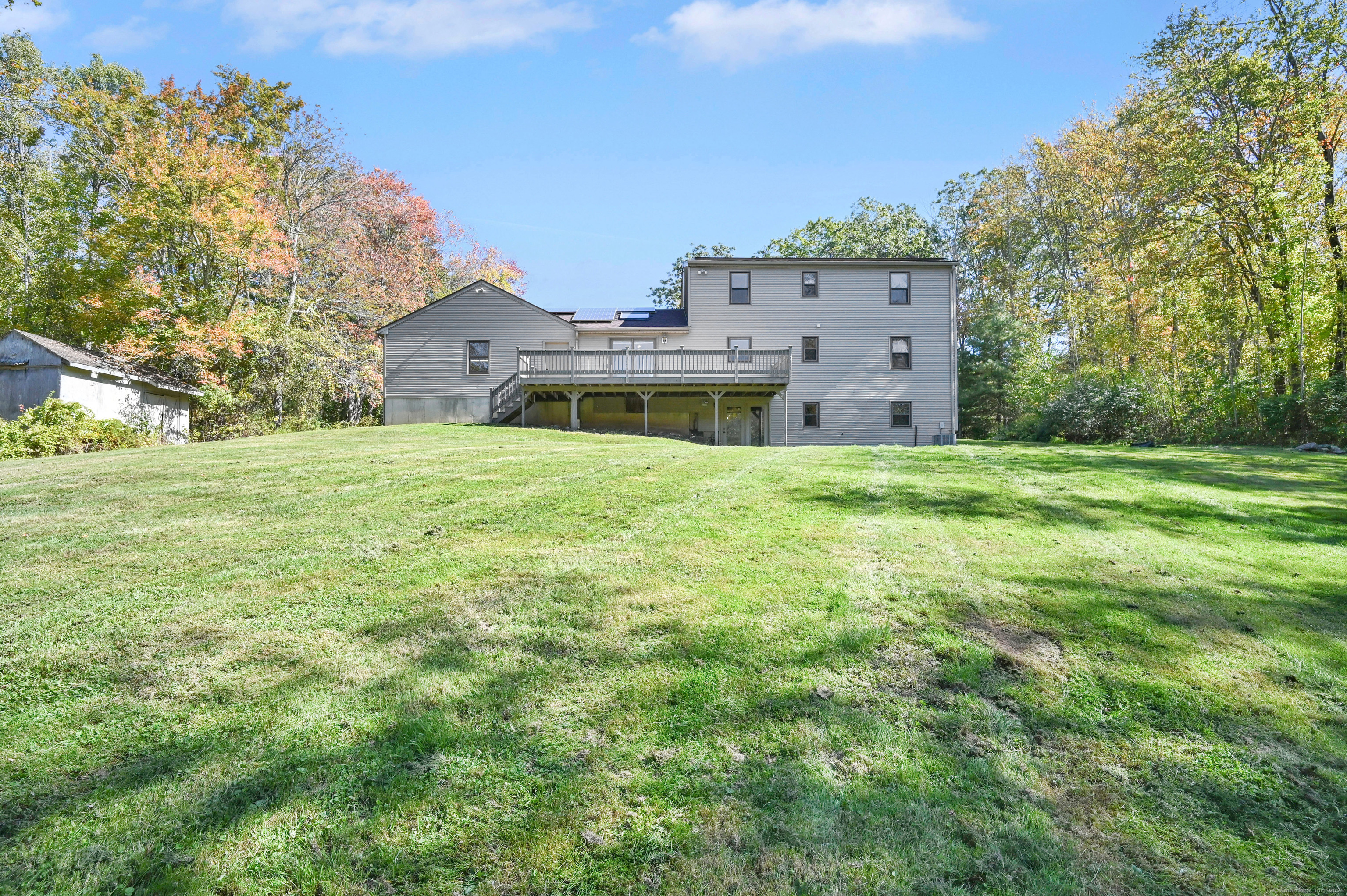 Welcome to this classic four-bedroom, 2.1 bath Gambrel Colonial in the heart of the picturesque town of Bolton! Situated on a beautifully landscaped 1.24 lot, inside you will find a spacious and functional layout. The inviting sun filled family rm. w/vaulted wood ceiling, skylight and french doors to deck open to the kitchen perfect for entertaining. The kitchen offers newer stainless refrigerator, dishwasher, and electric grill/oven with plenty of counter space. Open to the dining room w/ hardwood floors, new lighting. The living room offers more living space w/ hardwood floors, fireplace and a wood burning stove. A convenient 1st floor bedroom w/ hardwood floors and full bath w/ double sinks/stand-up shower. Also perfect for a home office or playroom. Go upstairs to find the primary suite w/ attached jack & jill style bath featuring a soaking tub, stand up shower w/plenty of storage. Two more spacious bedrooms on 2nd floor w/ plenty of closet space. The walkout basement features a half bath and room to expand your living space. This home has been upgraded w/natural gas heating, on demand hot water, central air, generator hookup and solar making the home very economical. Walk up attic for storage, oversized 2 car garage w/ workshop area, room for lawncare and parking your vehicles. Relax on your back deck, overlook the park like backyard with room for gardens and more. Maintained by the original owner since 1976, this home is ready for a new chapter! Must see home!