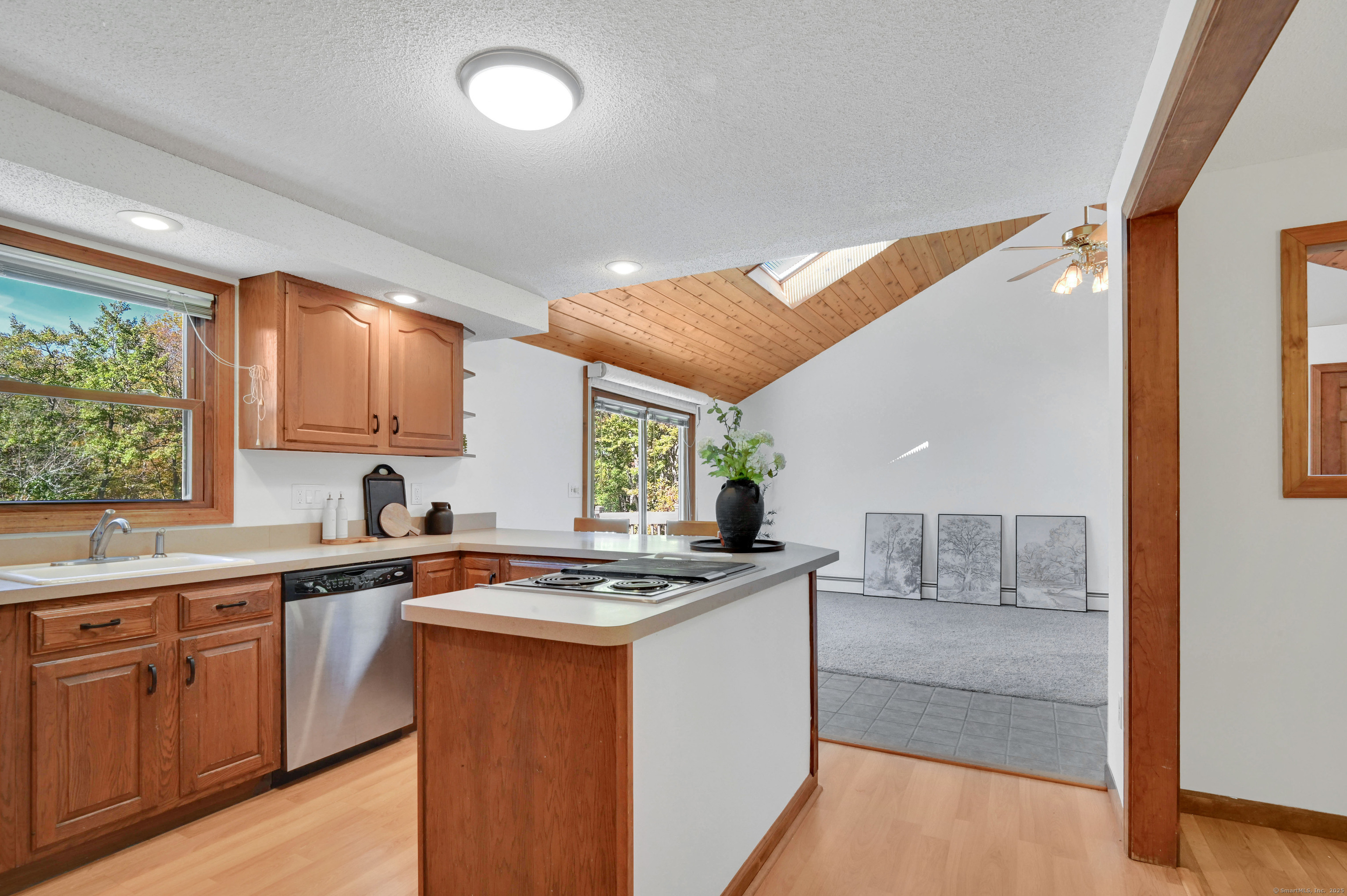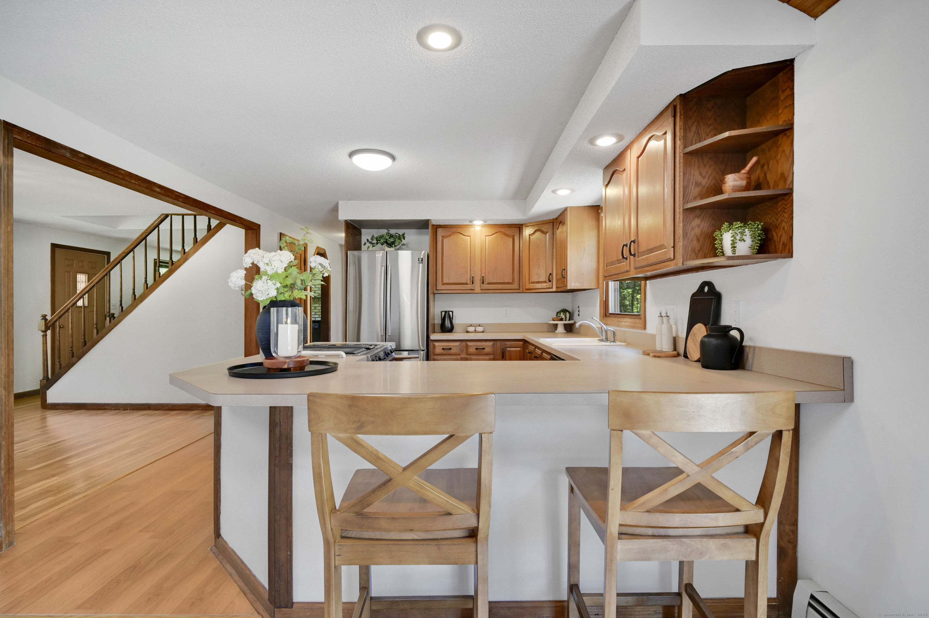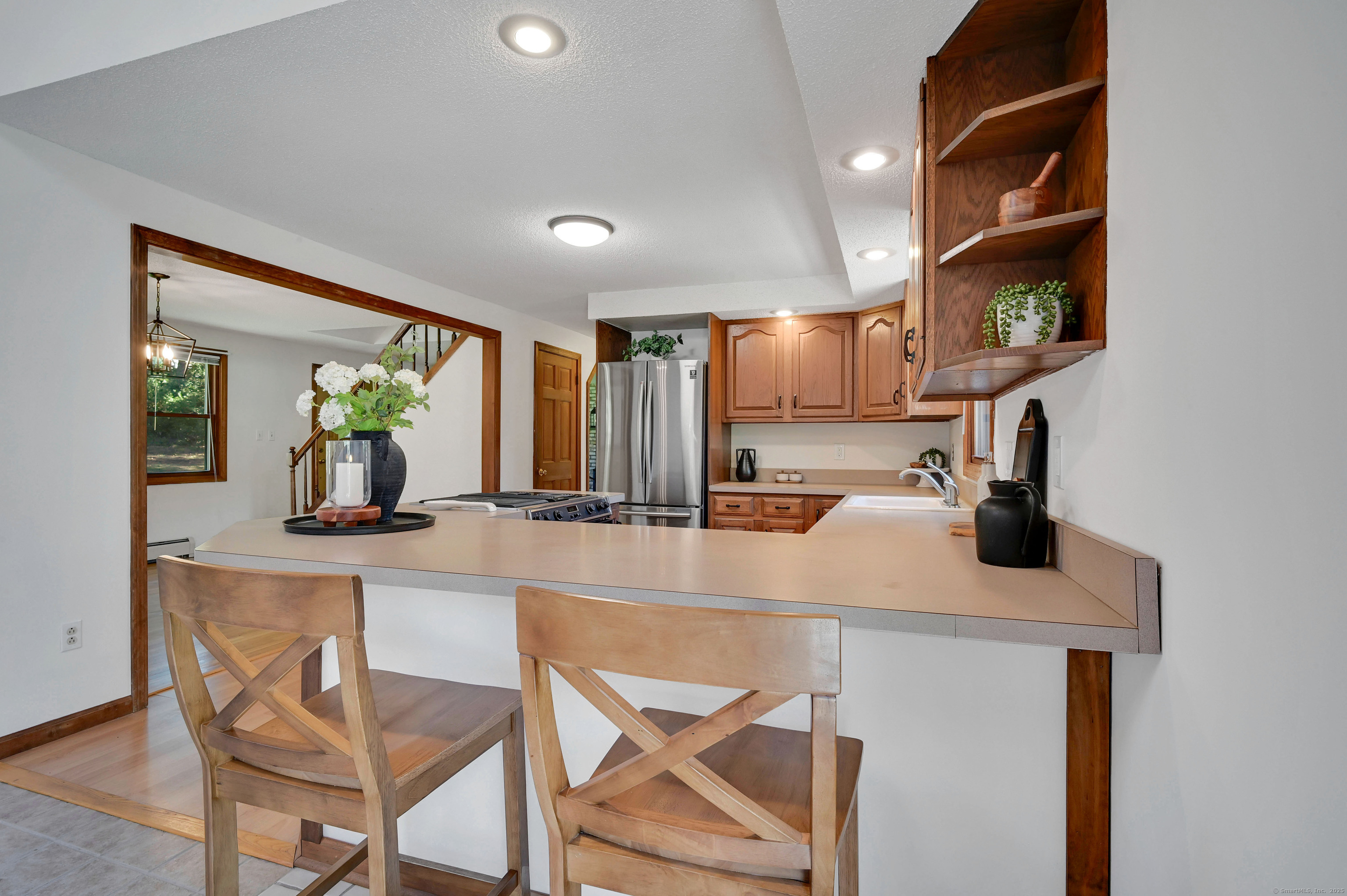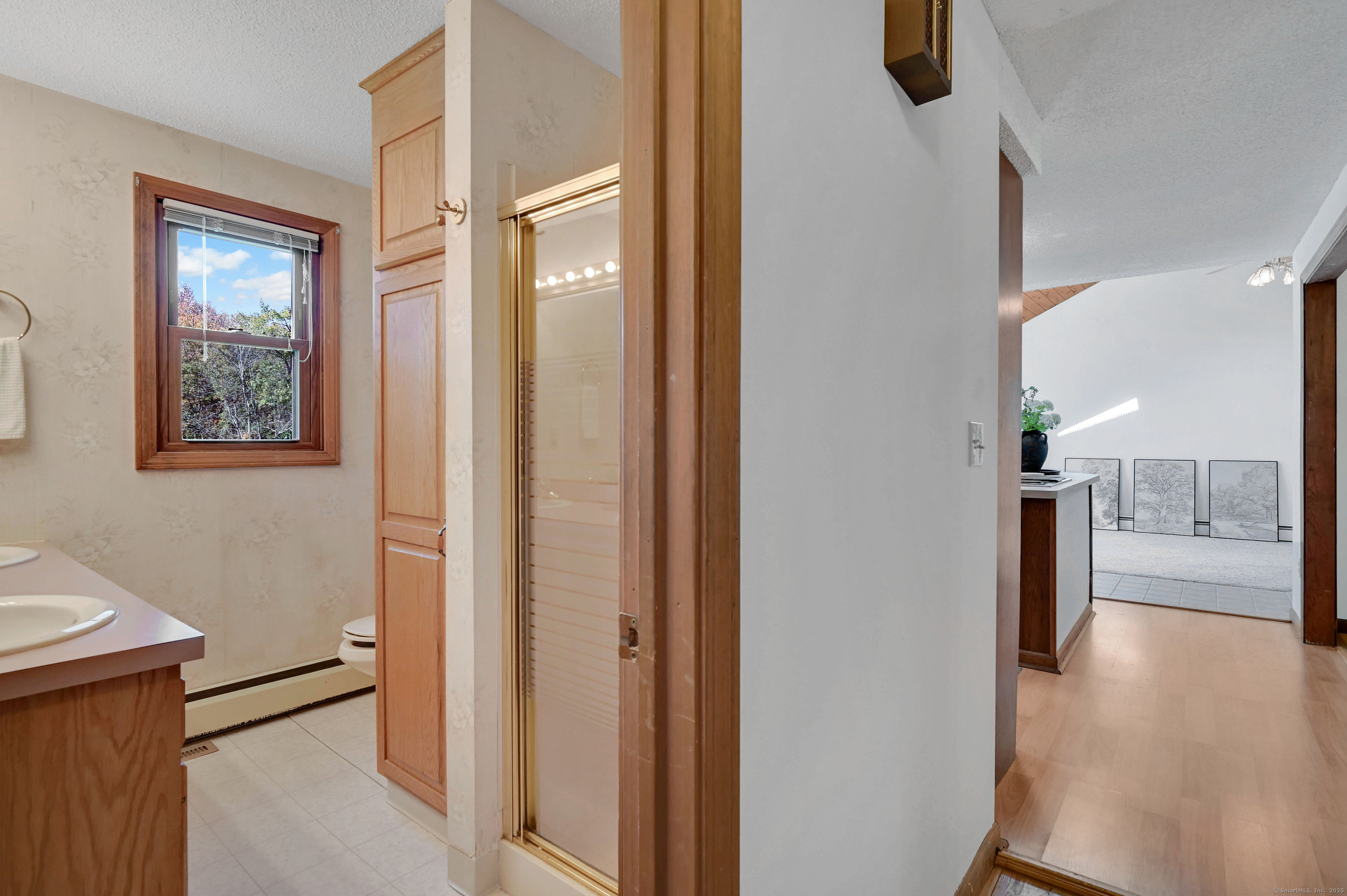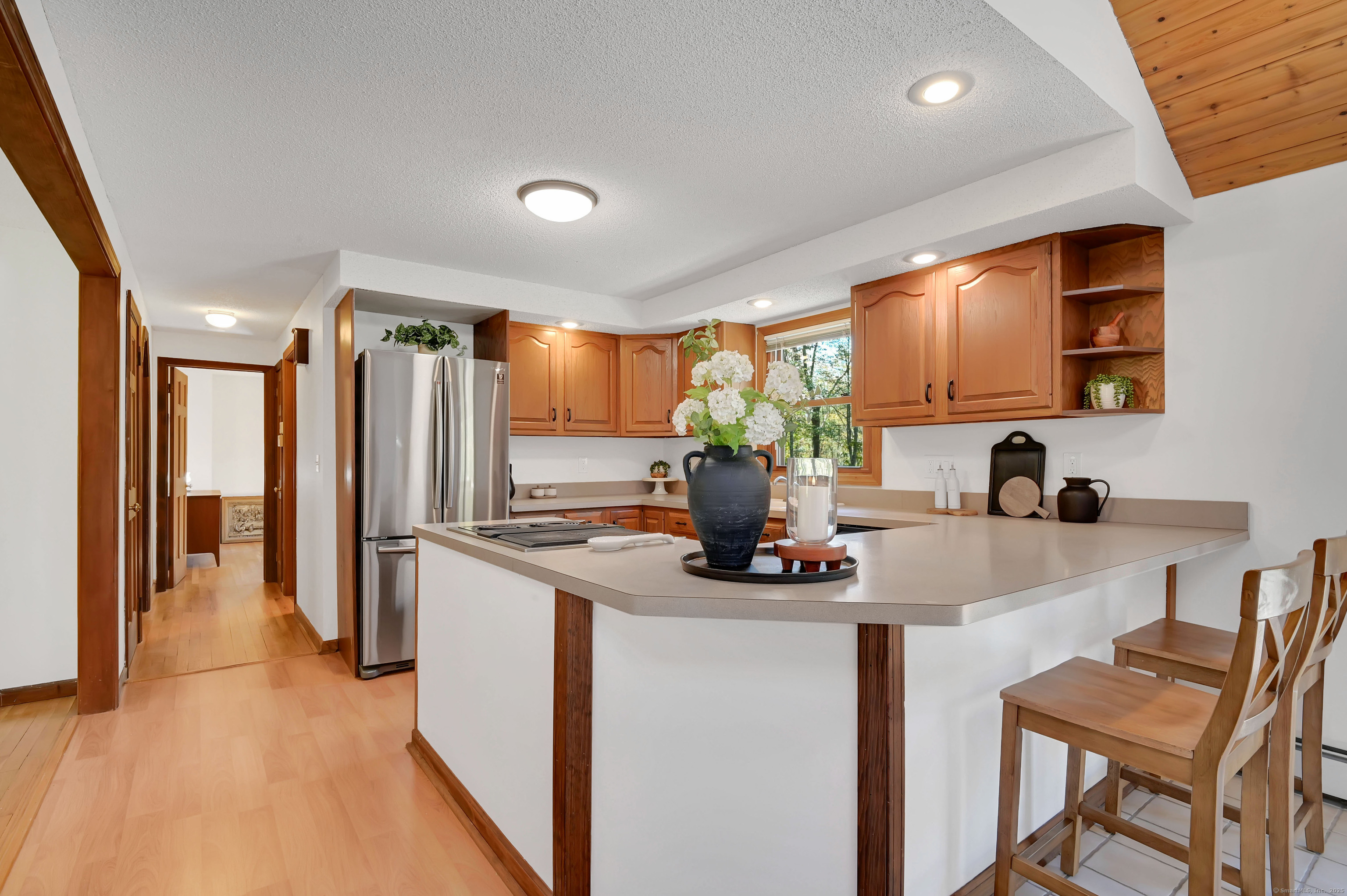 Welcome to this classic four-bedroom, 2.1 bath Gambrel Colonial in the heart of the picturesque town of Bolton! Situated on a beautifully landscaped 1.24 lot, inside you will find a spacious and functional layout. The inviting sun filled family rm. w/vaulted wood ceiling, skylight and french doors to deck open to the kitchen perfect for entertaining. The kitchen offers newer stainless refrigerator, dishwasher, and electric grill/oven with plenty of counter space. Open to the dining room w/ hardwood floors, new lighting. The living room offers more living space w/ hardwood floors, fireplace and a wood burning stove. A convenient 1st floor bedroom w/ hardwood floors and full bath w/ double sinks/stand-up shower. Also perfect for a home office or playroom. Go upstairs to find the primary suite w/ attached jack & jill style bath featuring a soaking tub, stand up shower w/plenty of storage. Two more spacious bedrooms on 2nd floor w/ plenty of closet space. The walkout basement features a half bath and room to expand your living space. This home has been upgraded w/natural gas heating, on demand hot water, central air, generator hookup and solar making the home very economical. Walk up attic for storage, oversized 2 car garage w/ workshop area, room for lawncare and parking your vehicles. Relax on your back deck, overlook the park like backyard with room for gardens and more. Maintained by the original owner since 1976, this home is ready for a new chapter! Must see home!