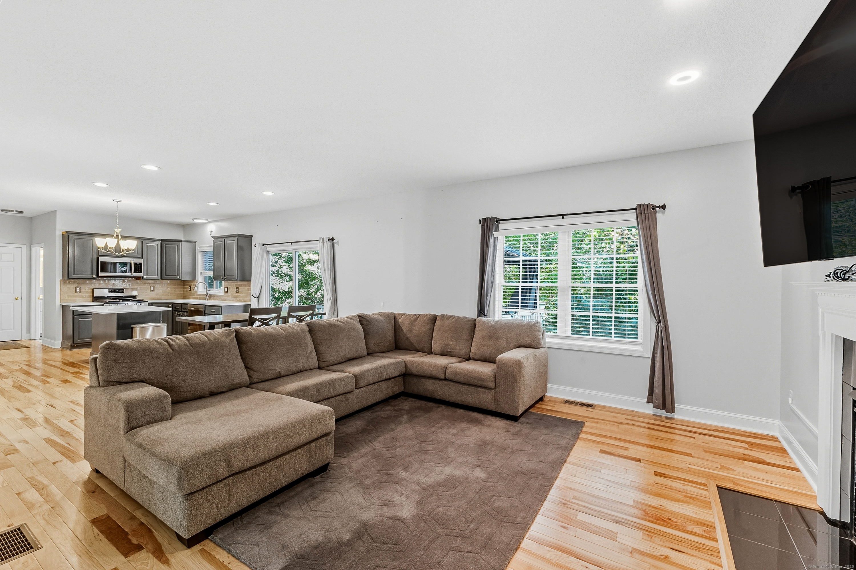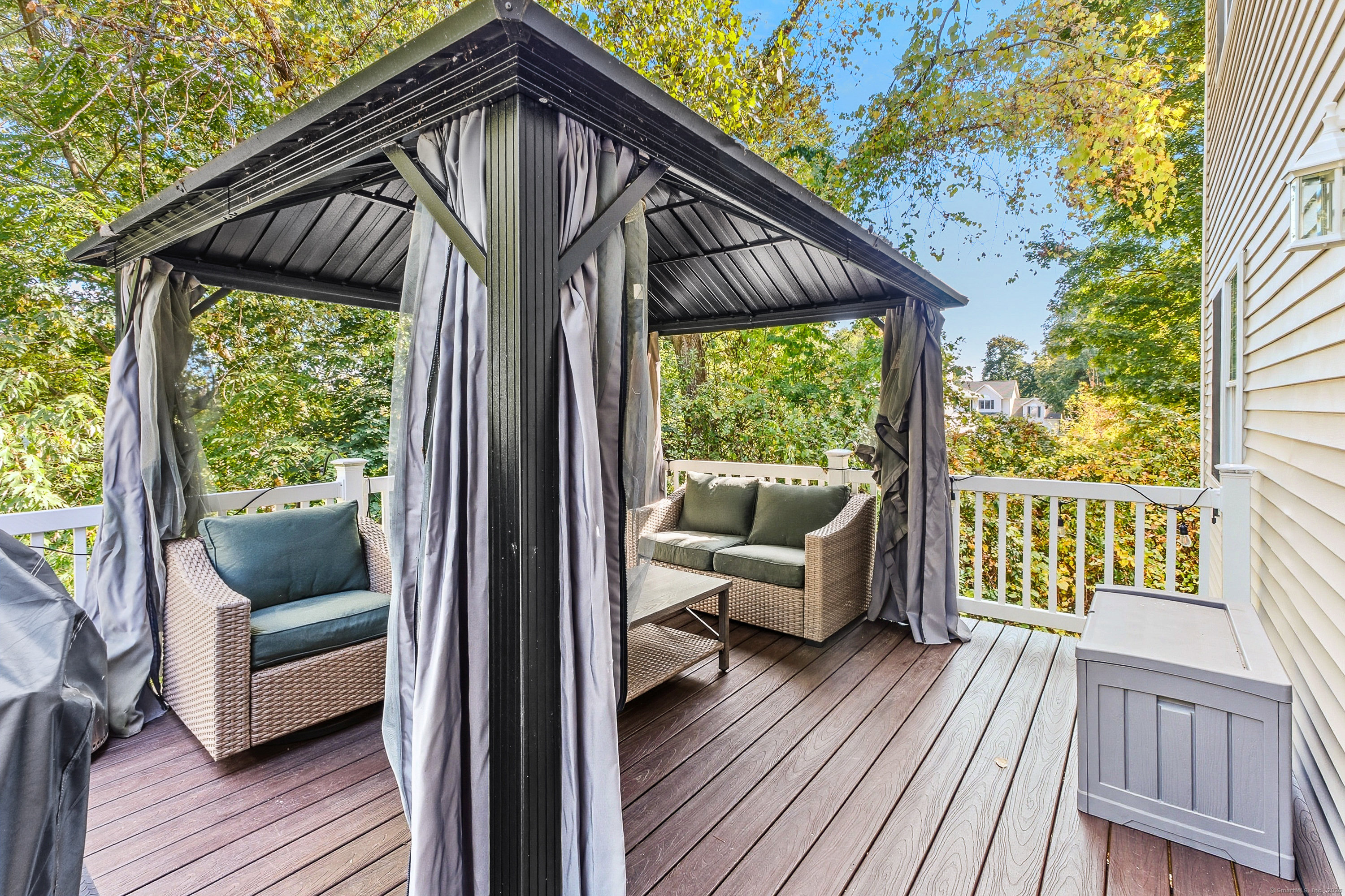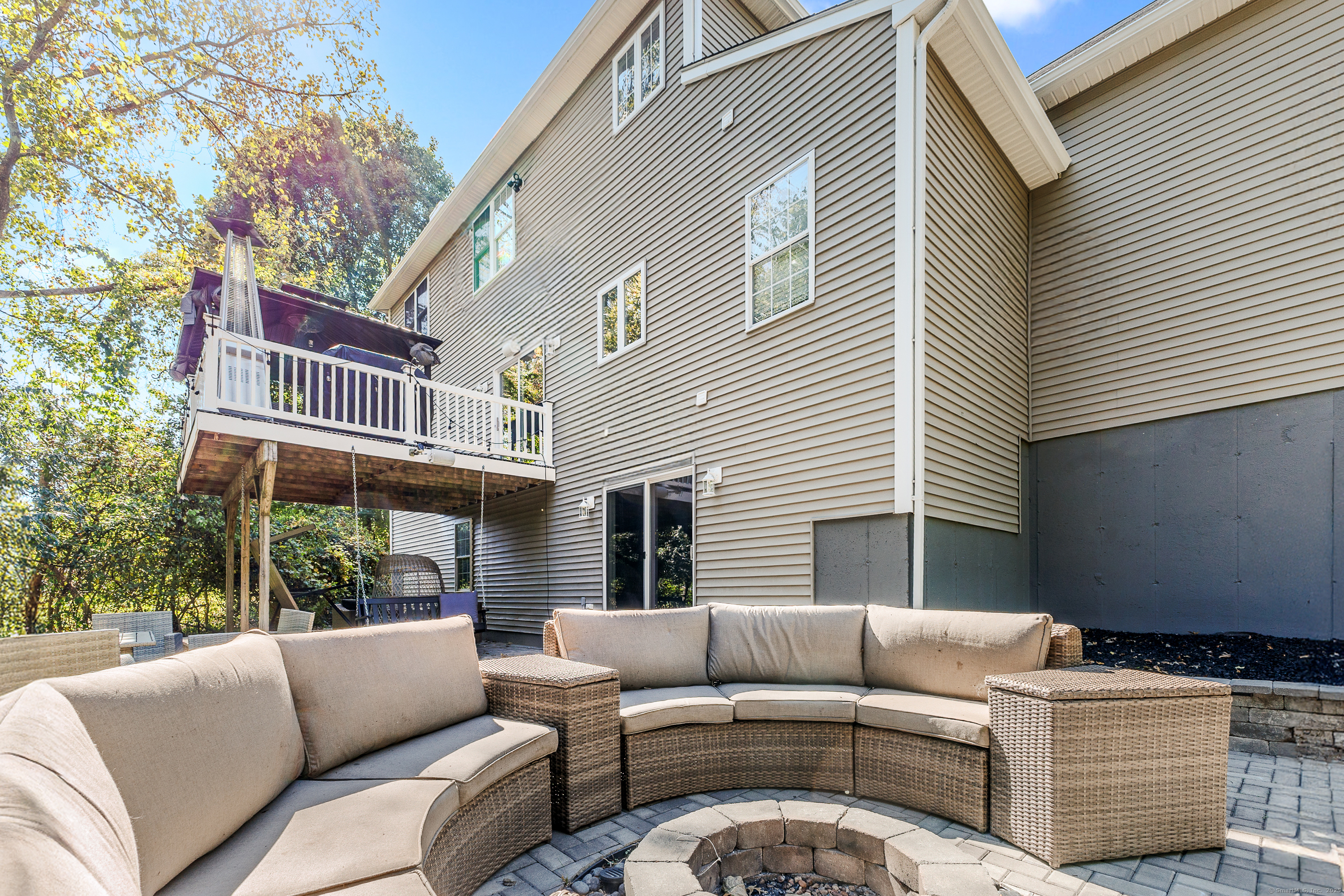 Introducing this lovely four-bedroom, two-and-a-half-bath Colonial offering over 2500 sq ft, with an additional 1,222 sq feet in the finished lower level. The large kitchen, featuring stainless steel appliances, offers an open-concept design with the living room, making entertaining effortless and enjoyable. The living room showcases a beautiful fireplace, while the full, walk-out basement is completely finished and includes a possible theater room , bedroom, and and great room with a full-size bar-ideal for entertaining or relaxing in style. This home features numerous upgrades, including gleaming hardwood floors, tile, newer carpeting, fresh paint, updated kitchen counters, and refurbished cabinets. Additionally, there's a custom workbench in the garage, a brand-new deck, and a newly added patio with firepit-perfect for outdoor entertaining. Situated on a private interior lot, this home provides a tranquil setting with ample privacy. Conveniently located close to schools, shopping, restaurants, medical facilities, parks, and major highways, this home combines comfort, style, and accessibility in one perfect package.