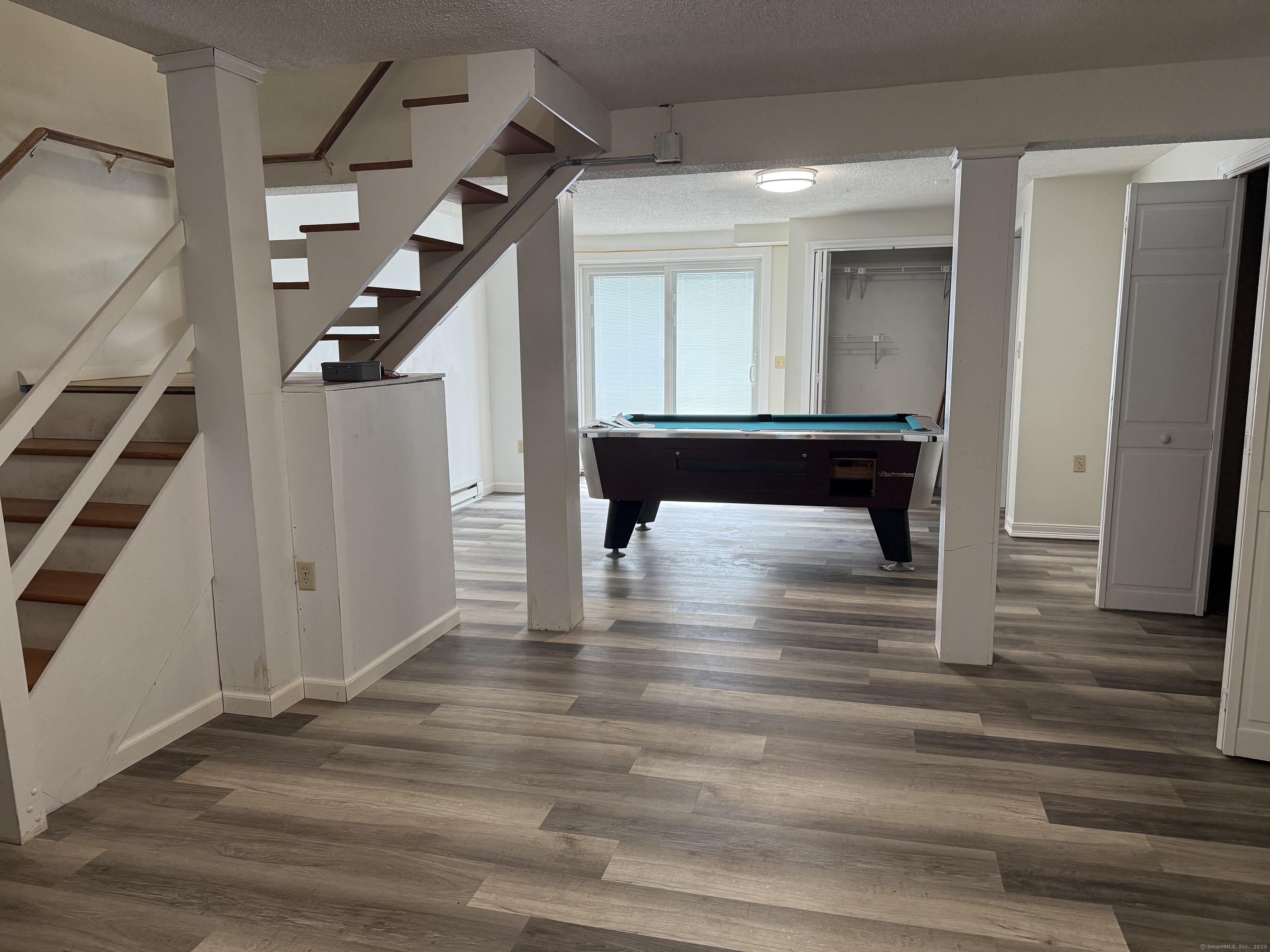 This property is an end unit condo with vaulted ceilings. It has 2 bedroom and 2 full bathroom. The primary bedroom is located on the first floor with a full bath. The second floor has a bedroom with a balcony and a bathroom. The kitchen is newly updated with new appliances. The newly finished lower level provides extra 500+ sqft of space, can be used as extra space and is also a walkout basement with a deck, making this condo a three story unit in total. It includes a pool table, a washer, and a dryer. 2 parking spaces in front of the property. Walking distance to Eastbrook Mall, short drive to UConn Storrs campus, and ECSU. (agent/owner)
