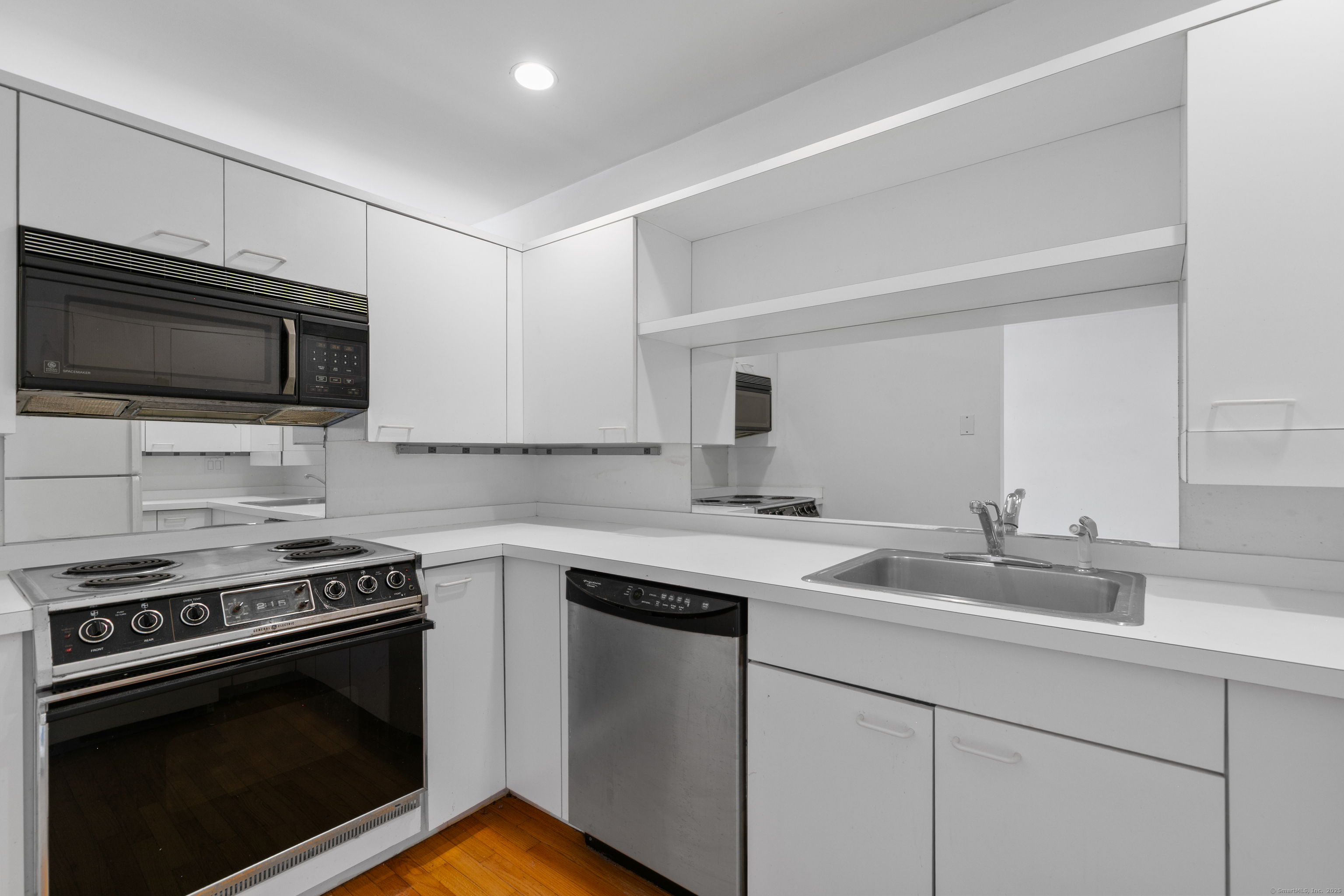 Watch the seabirds and oyster boats cruise up the Quinnipiac River and enjoy views of Front St Park from this beautiful condo. 8 Front St is a 1 bedroom, 2 full bath condo in the Rivercrest complex. With an open floor plan living area, private balcony and a large lower level bedroom that opens onto a hidden garden patio - this may be one of the best spots in Fair Haven! From the parking lot (with a designated spot), there is a covered stone walkway leading to the main entry into the first floor. You're immediately bathed in natural light flooding through the floor to ceiling windows, reflecting off the hardwood floors. The bedroom features exceptional closet space and a beautiful attached full bath with jacuzzi tub and heat lamps. There's also a stacked washer/dryer. Rivercrest was designed by famous architect Vincent Amore. Enjoy the vintage styling, or use your imagination to add some updates. Just minutes from Downtown, Yale, highways, restaurants, etc.