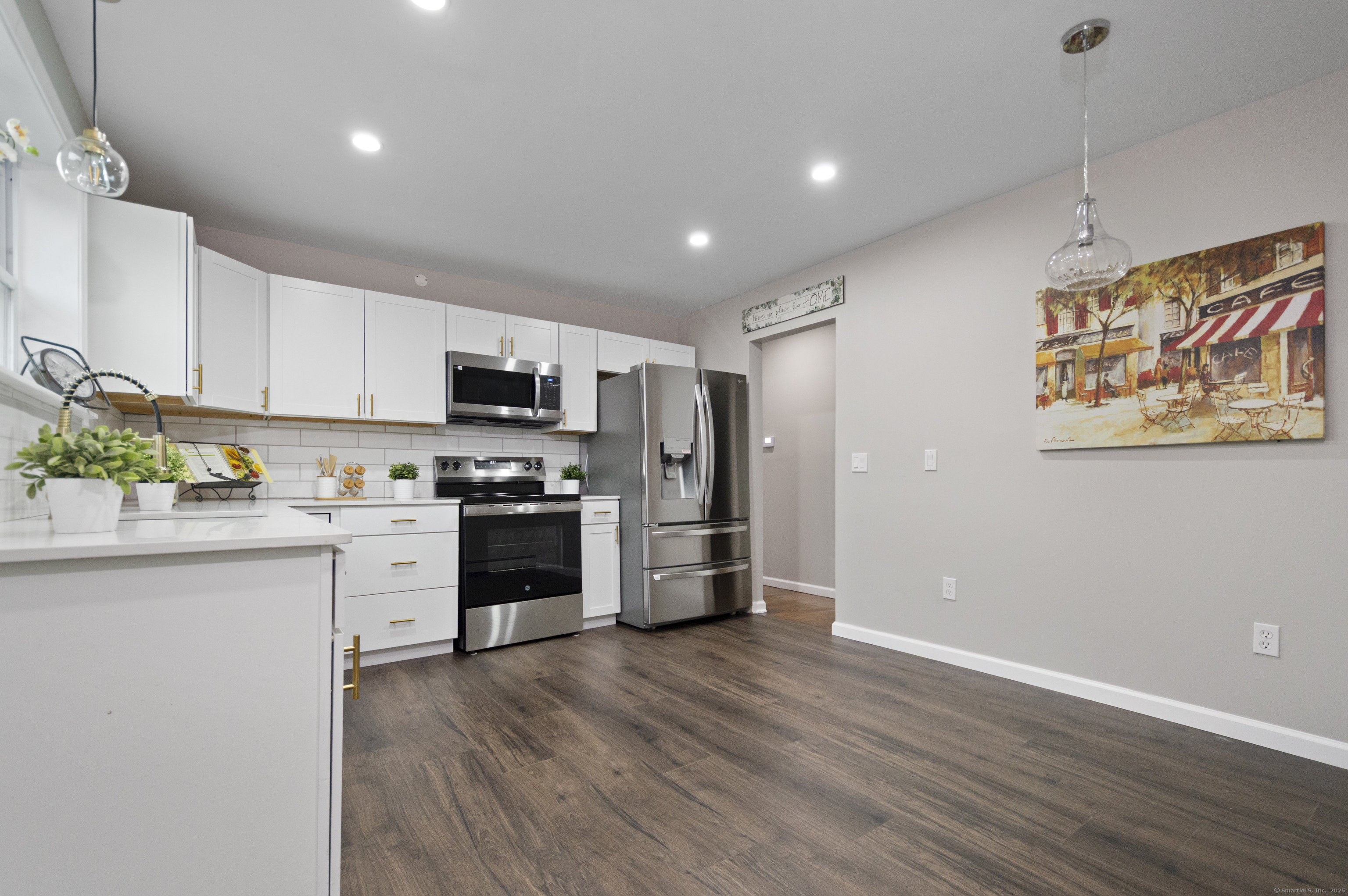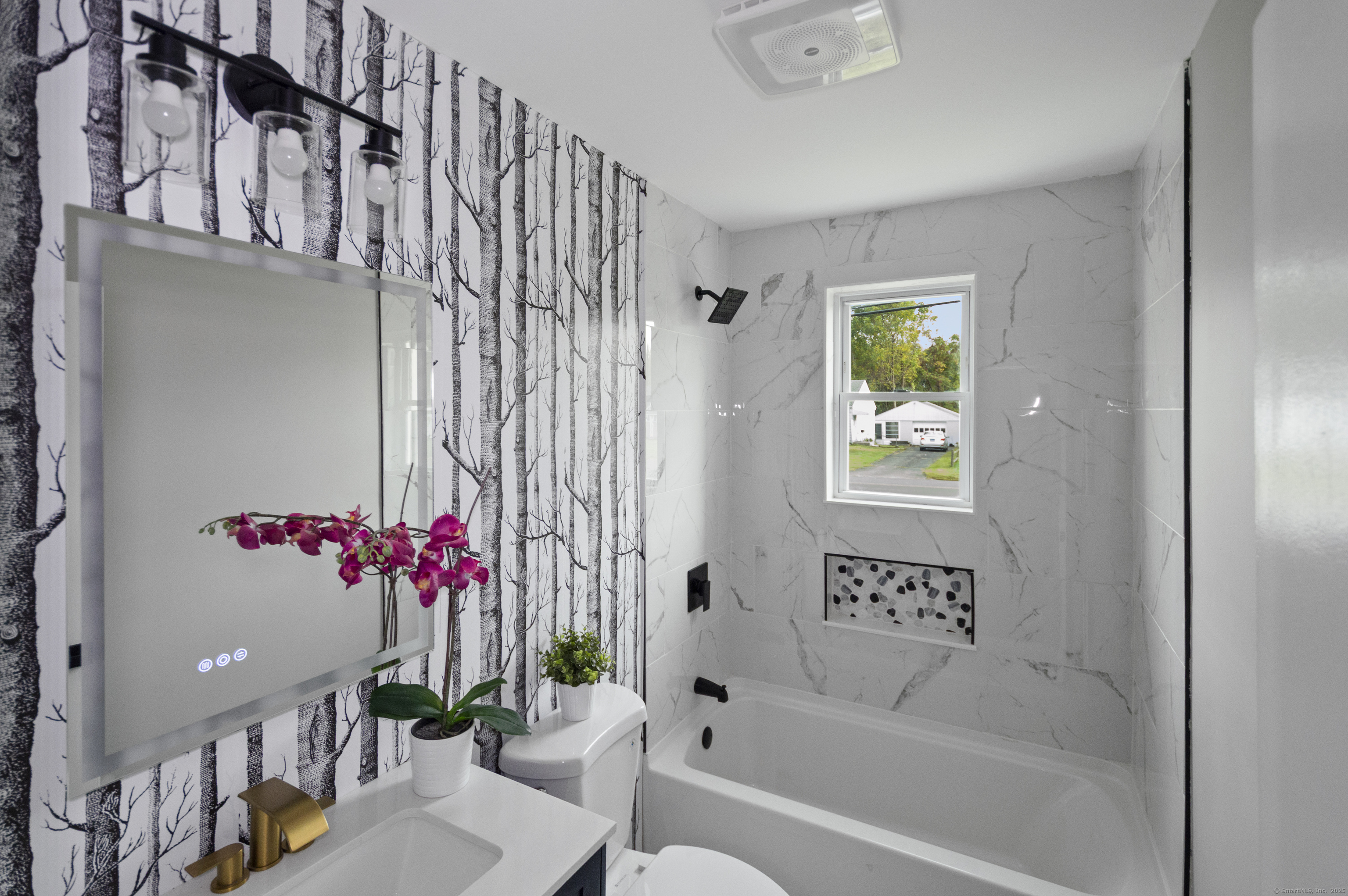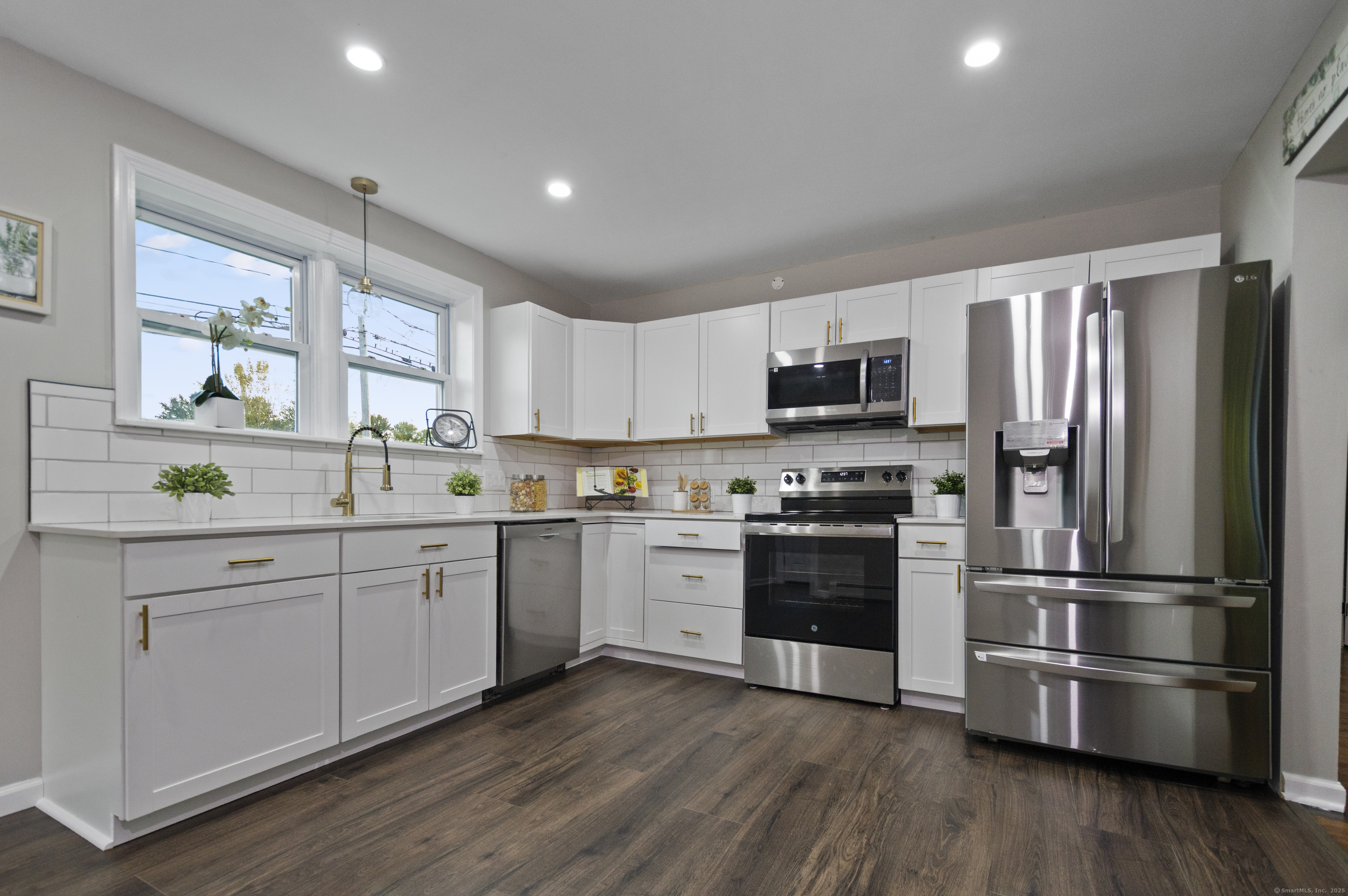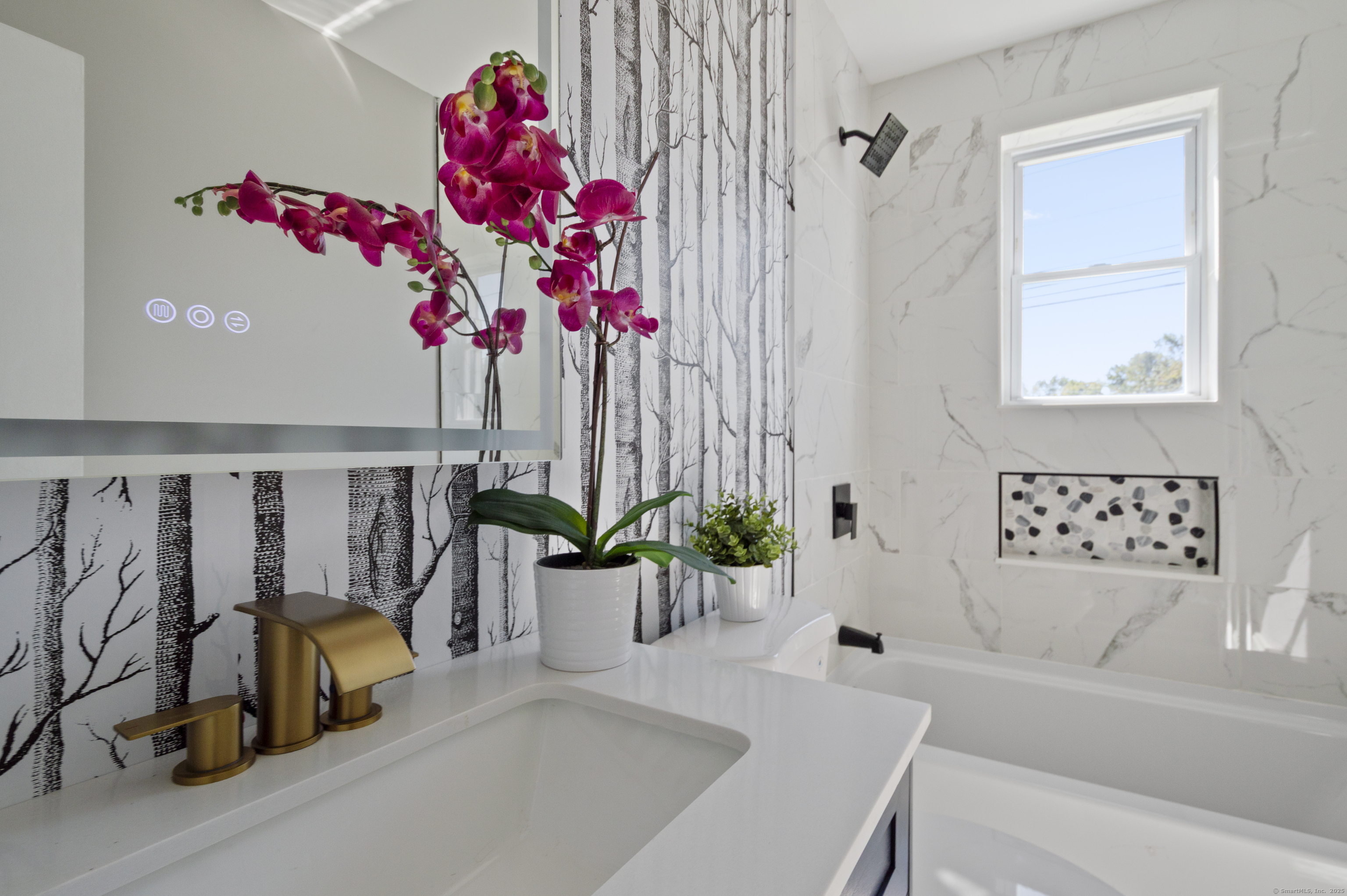 Welcome to this move in ready ranch located on the west hartford line, walking distance from the elementary school. The home features a very large open living room with a fireplace, large windows, newly refinished hardwood floors and freshly painted. The updated bathroom has a soaker tub, great for unwinding after a long day, color changing led ceiling fan light combo.. Modern vanity light mirror and new vanity with updated hardware. The kitchen is located near the driveway and has all new shaker white cabinetry. The countertop is quartz stone, new back splash and stainless steel appliances. Along the hallway leads to the 3 bedrooms, that have all been remodelled and freshly painted with gleaming hardwood floors and recess lighting. The home has a gas boiler and hot water heater which require less maintenance and a new sump pump was installed. The home is within proximity to I-84, Westfarms Mall as well as West Hartford Center. Be prepared to fall in love with this welcoming home!