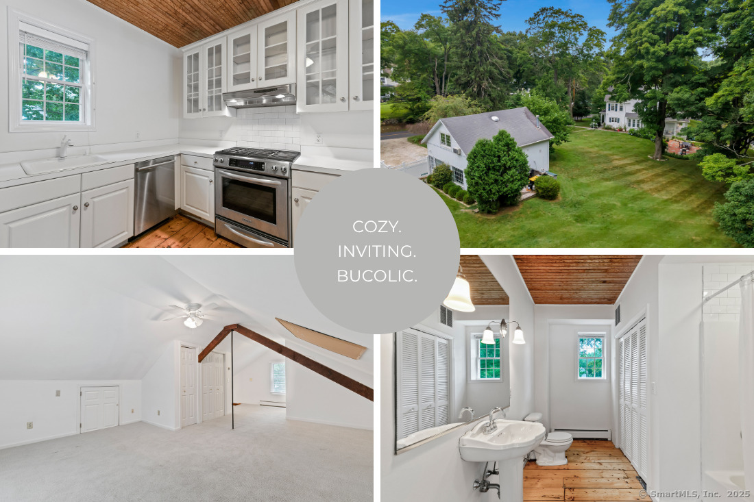 Charming Carriage House nestled into Greenfield Hill's bucolic landscapes, close to Greenfield Hill's shopping center complete with farmer's market, dining, grocery... You will love the character-filled open floor plan and wide board floors. The fully-equipped kitchen overlooks the great room and dining with high ceilings and French doors to the rear yard. Full bath and laundry on main level with spacious loft bedroom and half bath above. Recent updates. Sited away from the main house for privacy, with a wide stone driveway and fenced area, its a rare opportunity to enjoy this sought after area. Close to downtown, take advantage of the proximity to train, your favorite restaurants, endless shopping opportunities, five beaches, libraries, History Museum, movies, theater and more! Small lap dog or cat may be considered. Separate utilities.