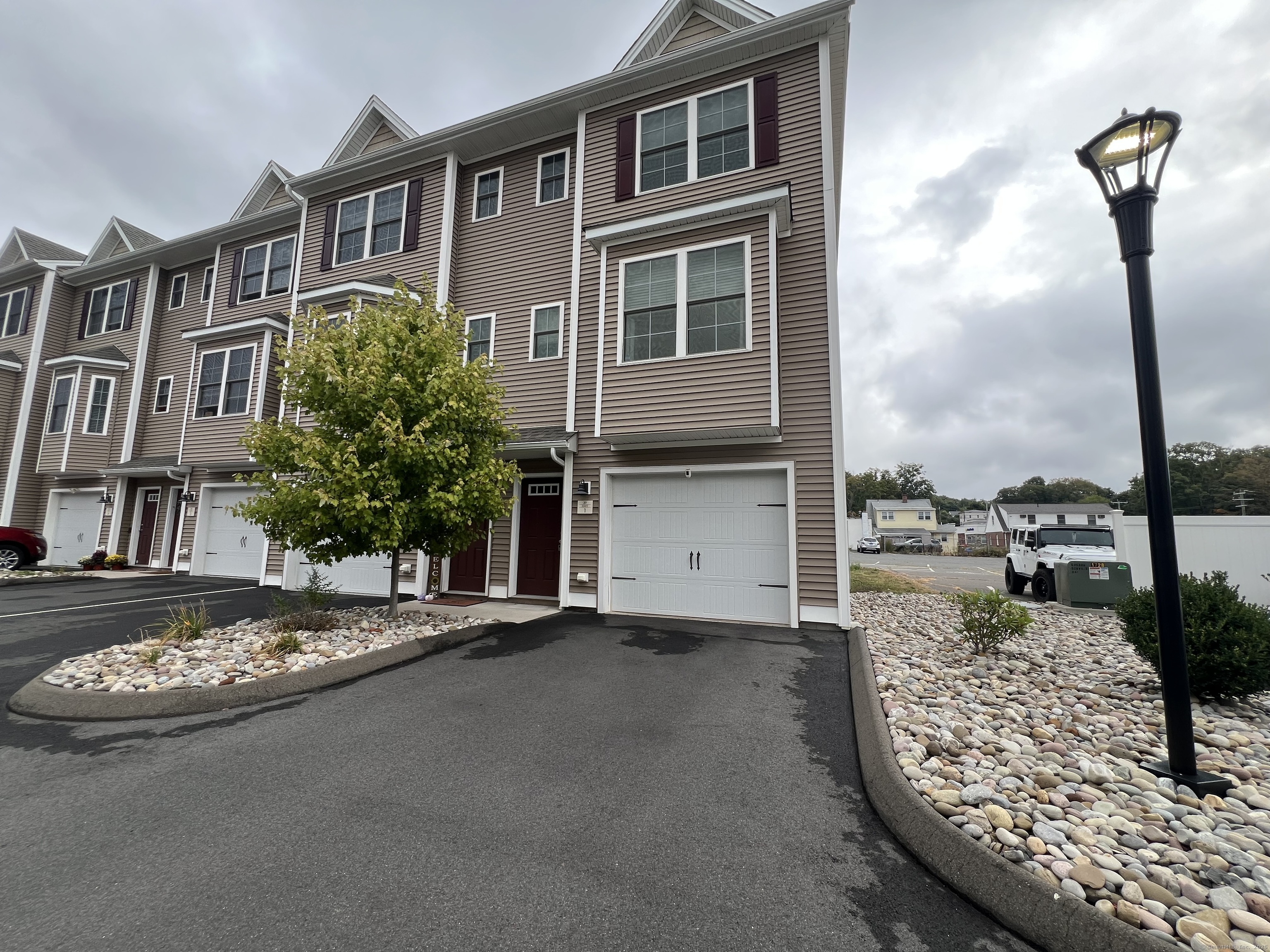 Modern end-unit offers the perfect mix of comfort and convenience. The main level features an open layout with high ceilings, large windows, and a full bath. The kitchen comes equipped with stainless steel appliances, ample cabinet space, and connects seamlessly to the living area, great for everyday living or entertaining. Upstairs, you'll find two bedrooms, both with brand new hardwood flooring, a full bathroom with double sinks and a walk-in shower, plus laundry for added ease. The primary bedroom includes a spacious walk-in closet. Additional highlights include central air, an oversized garage with extra storage, and access to a private patio and green space. The community is well-maintained, professionally managed, and offers easy access to major highways. Enjoy all that downtown Southington has to offer, local cafes, parks, seasonal events, and more right outside your door.