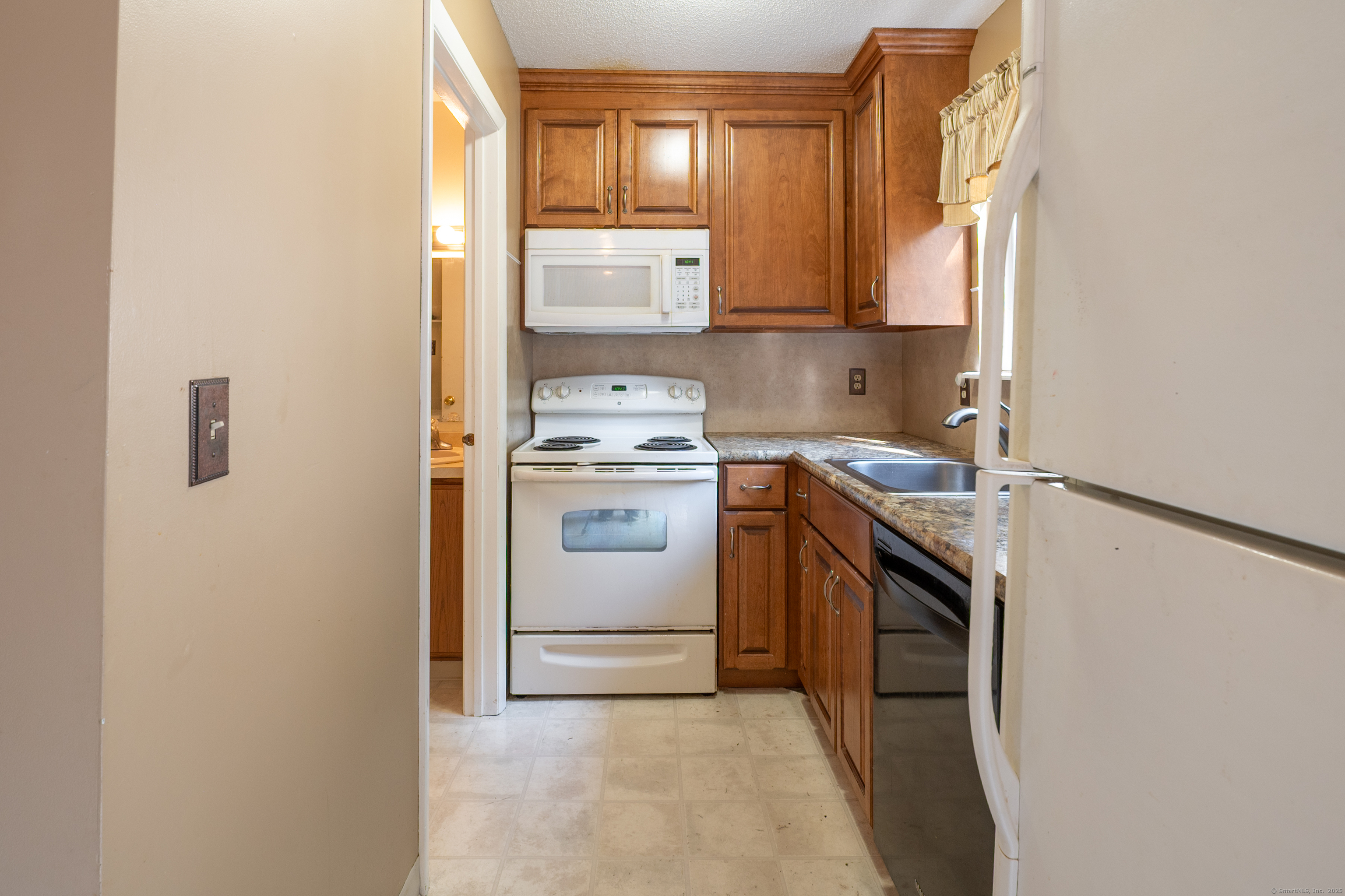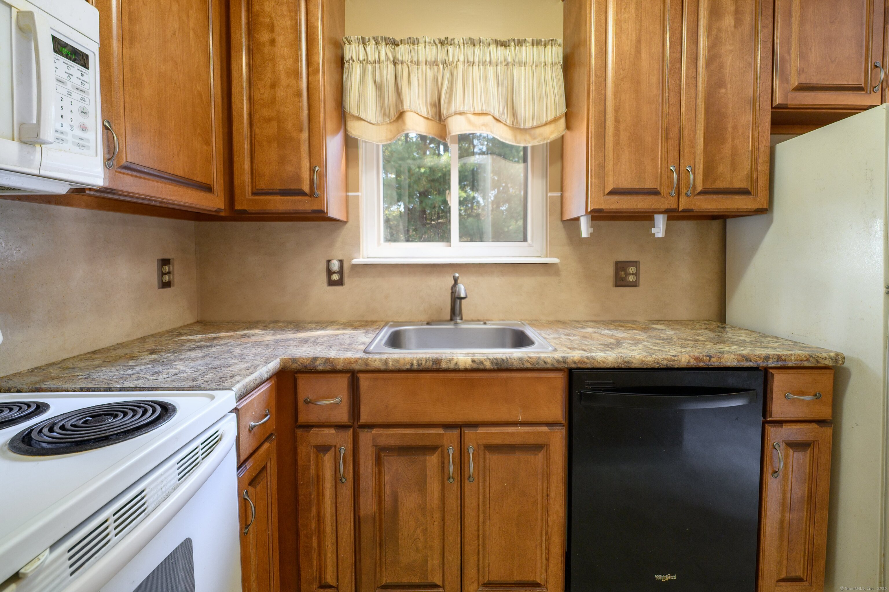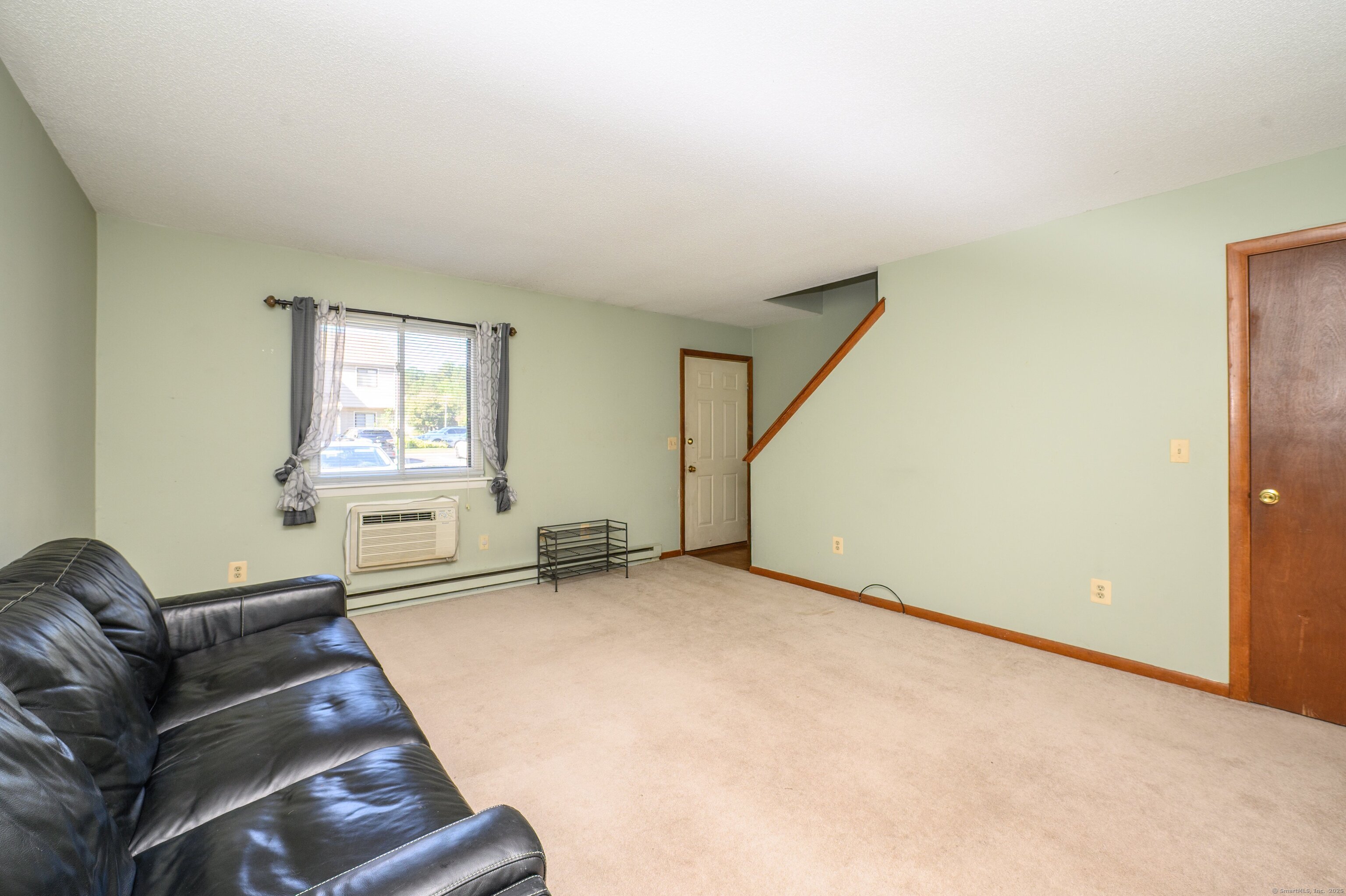 Beautiful End-Unit Townhouse in Sandpiper Woods! Welcome home to this bright and inviting 2-bedroom, 1.5-bath townhouse offering comfort and convenience in a desirable location. The spacious living room is perfect for relaxing or entertaining, and the eat-in kitchen features a built-in microwave and slider to a private patio-ideal for morning coffee or outdoor dining. A convenient half bath with washer and dryer is located on the main level. Upstairs, you'll find a perfectly sized primary bedroom with ample closet space, a second bedroom also with abundant storage, and a full bath with a linen closet. Additional features include pull-down attic storage and three included air conditioning units. Enjoy low condo fees and a great location just minutes from Lake Compounce, ESPN, restaurants, shopping, and major highways. Don't miss this fantastic opportunity to own in Sandpiper Woods!