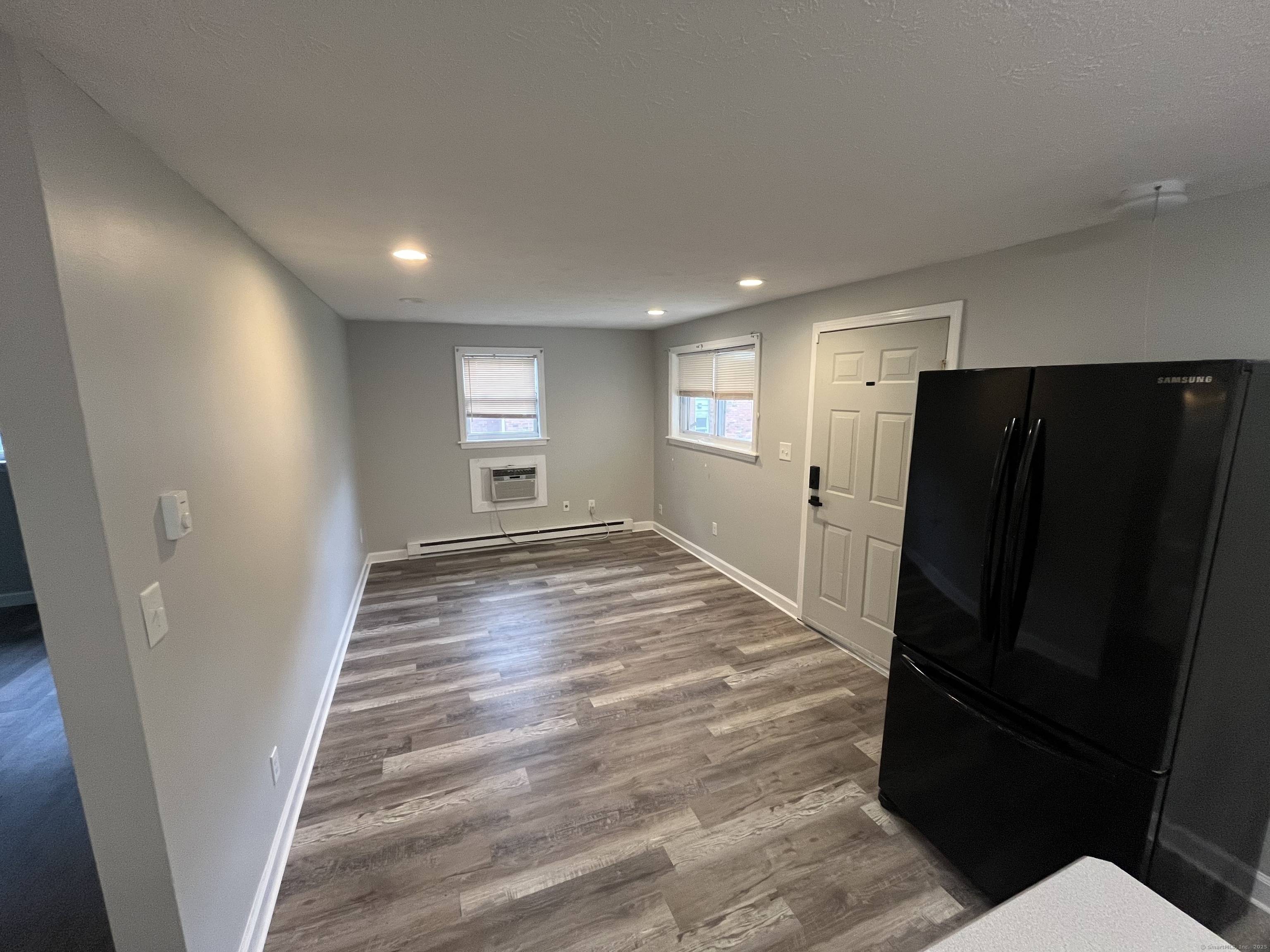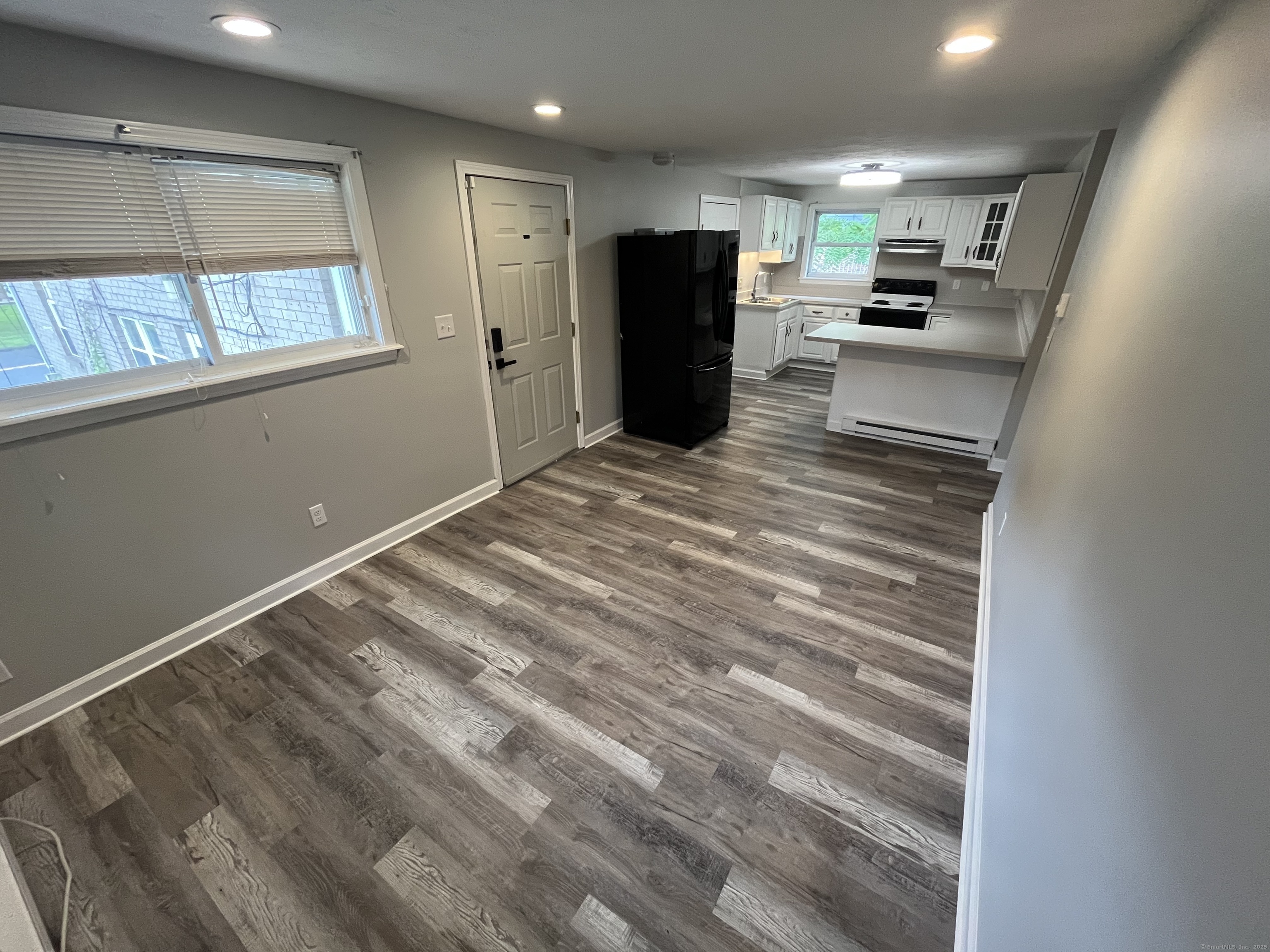 Renovated 2 bedroom apartment available immediately. Kitchen has plenty of counter space and cabinet storage. Freshly painted and new flooring throughout. Storage unit with laundry hook-ups in the basement. Convenient location, close to ESPN and highway access. 1 car garage and plenty of off street parking. No pets. No smoking. Credit, background, and eviction check through Softscreen.