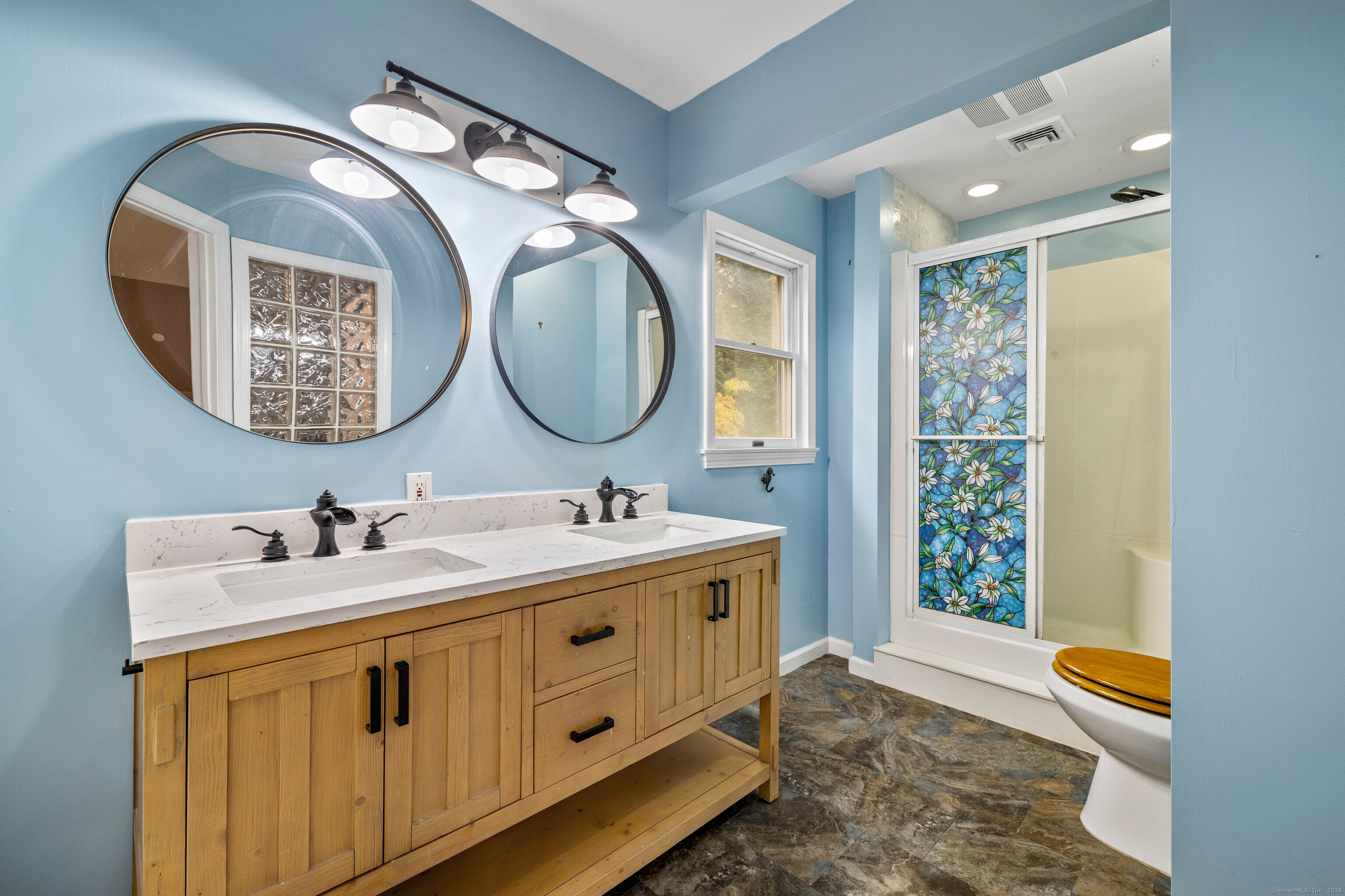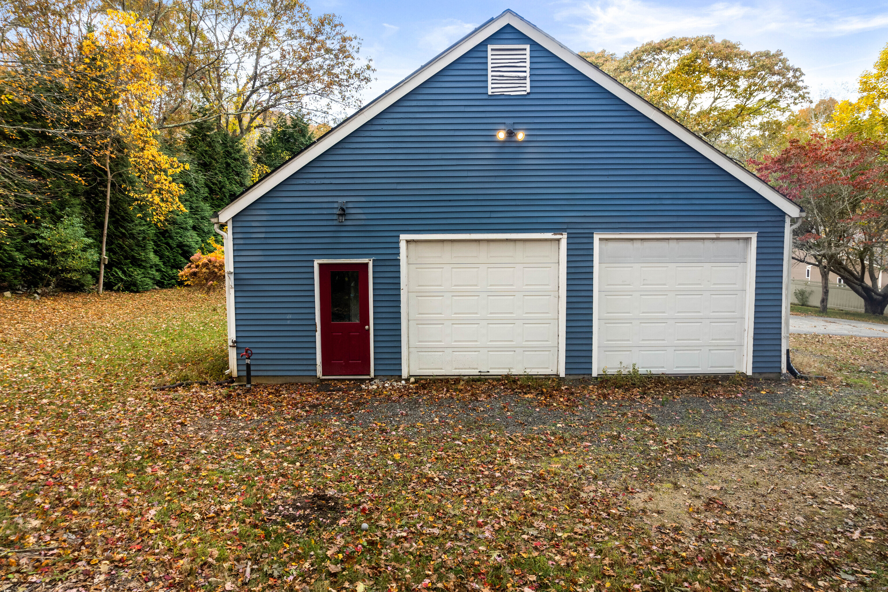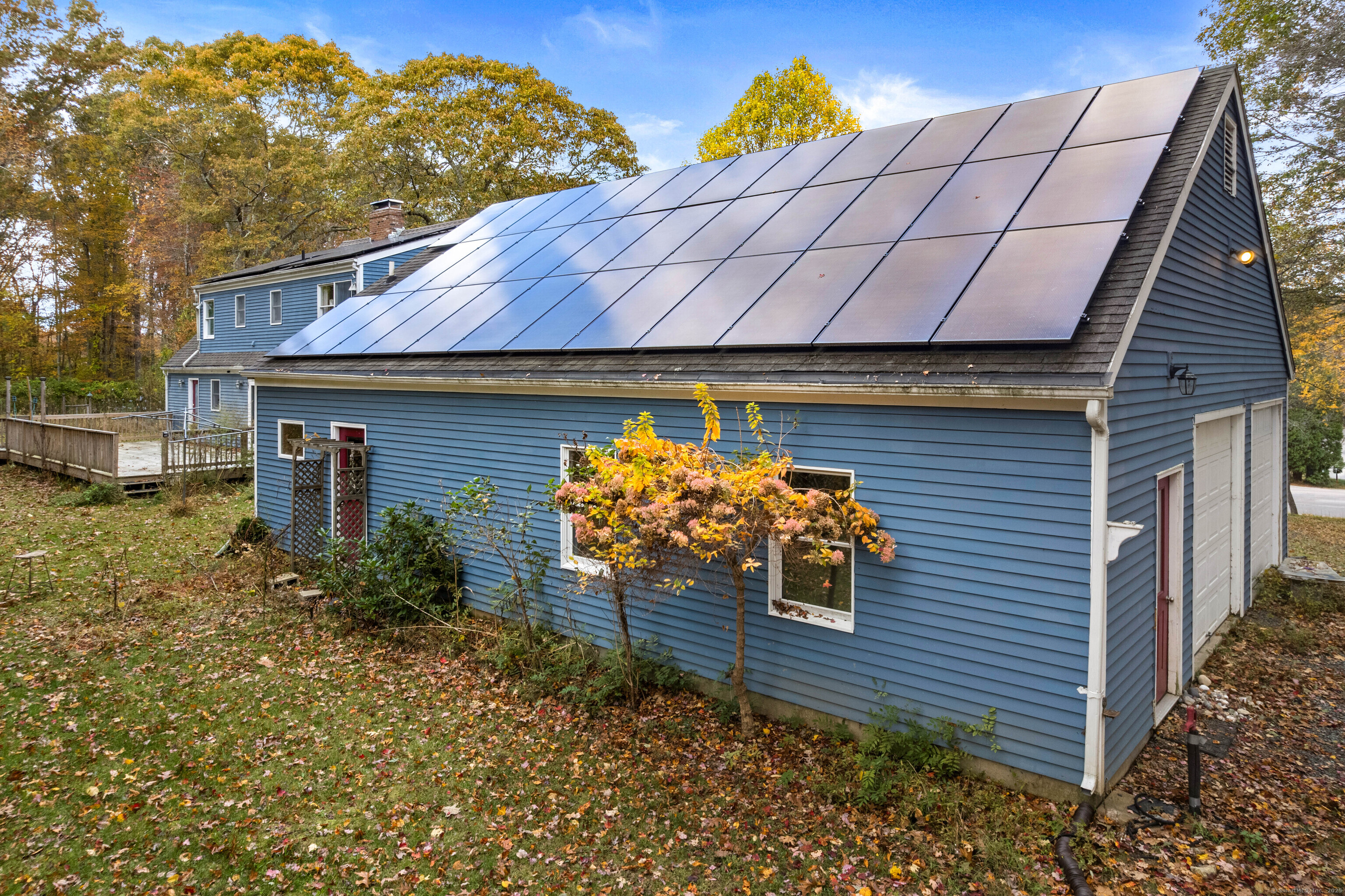 Welcome to 7 Briarwood Court in Gales Ferry - a warm, versatile home tucked at the end of a cul-de-sac in a quiet neighborhood. A stunning ornamental cherry blossom tree greets you each spring, surrounded by a beautifully landscaped yard with fruiting bushes, plum, apple, and Bartlett pear trees, and a flourishing garden with 15 raised beds and a tranquil fish pond. Enjoy mature azaleas, rhododendrons, forsythia, and a fragrant lilac near the fire pit, all complemented by a spacious deck ideal for relaxing or entertaining. Inside, this thoughtfully designed home combines charm and practicality. Benefit from solar panels, central air on the first floor, and a heat pump system upstairs. The rare four-car garage with floor drains offers incredible versatility, featuring custom shelving and separate spaces that offer functionality, while two private office or workshop areas, one with its own entrance, provide flexibility for remote work or hobbies. The primary suite offers a cozy fireplace and walk-in closet, while the finished lower level includes two additional bedrooms perfect for guests or extended family. With three fireplaces, a second-floor laundry room, and a large fenced area for pets or recreation, this property perfectly blends efficiency, comfort, and community in one of Gales Ferry's most inviting settings.