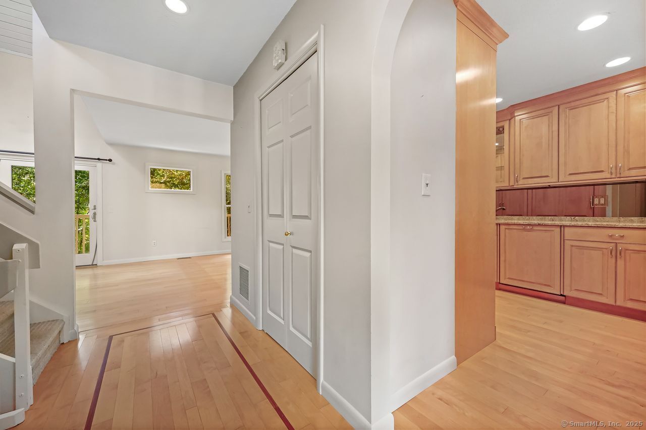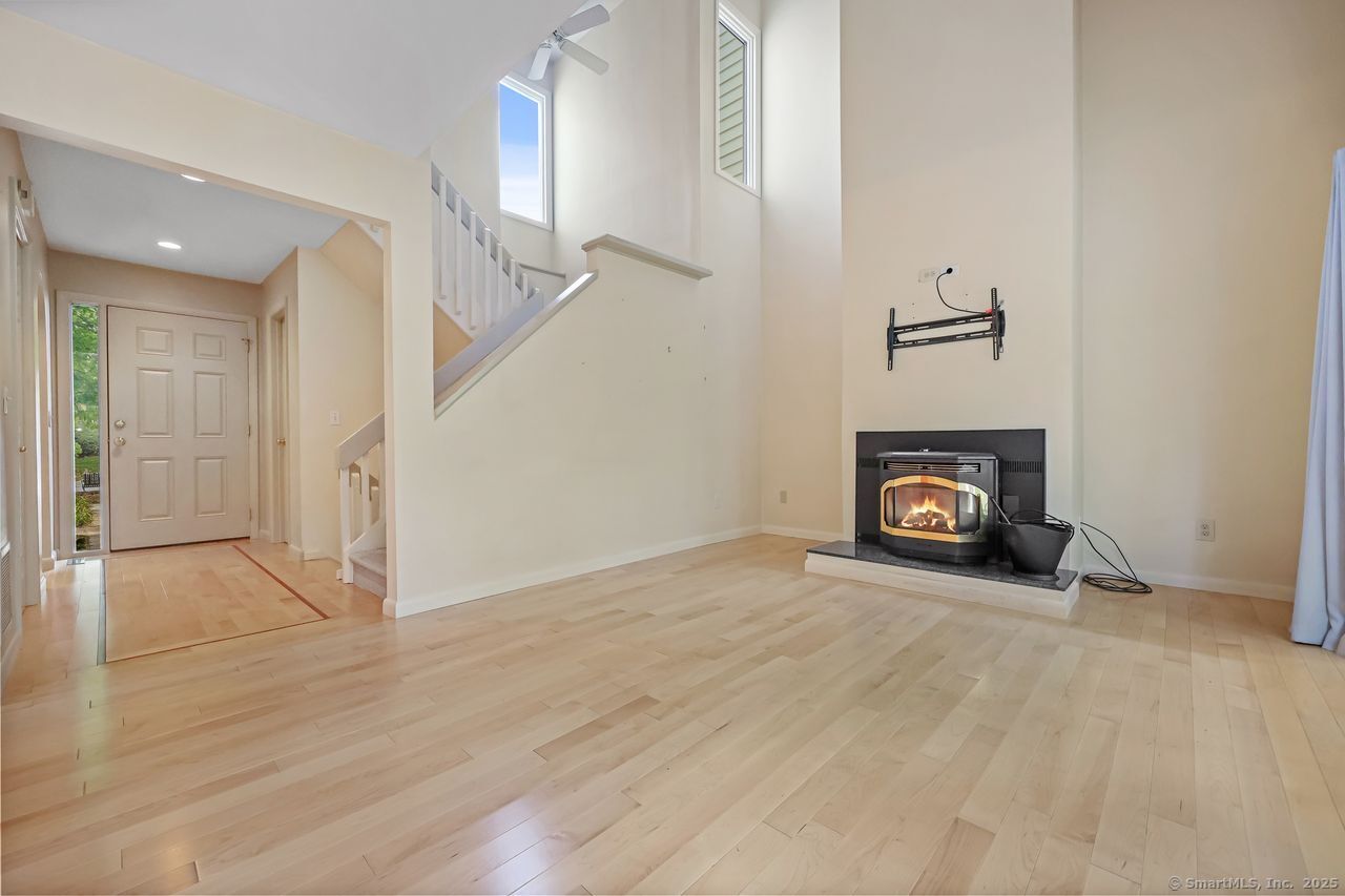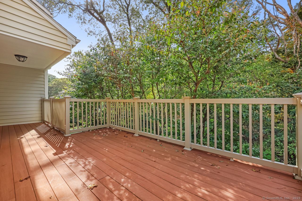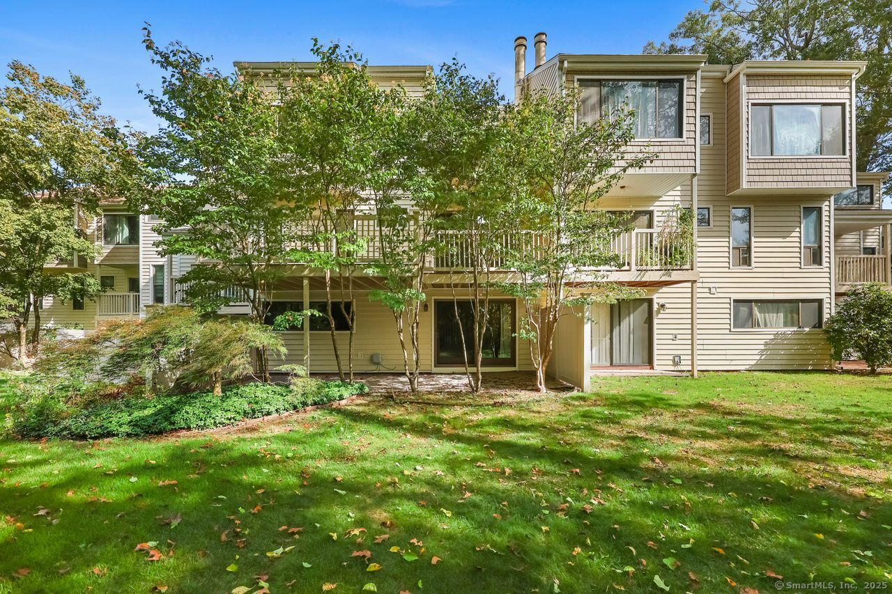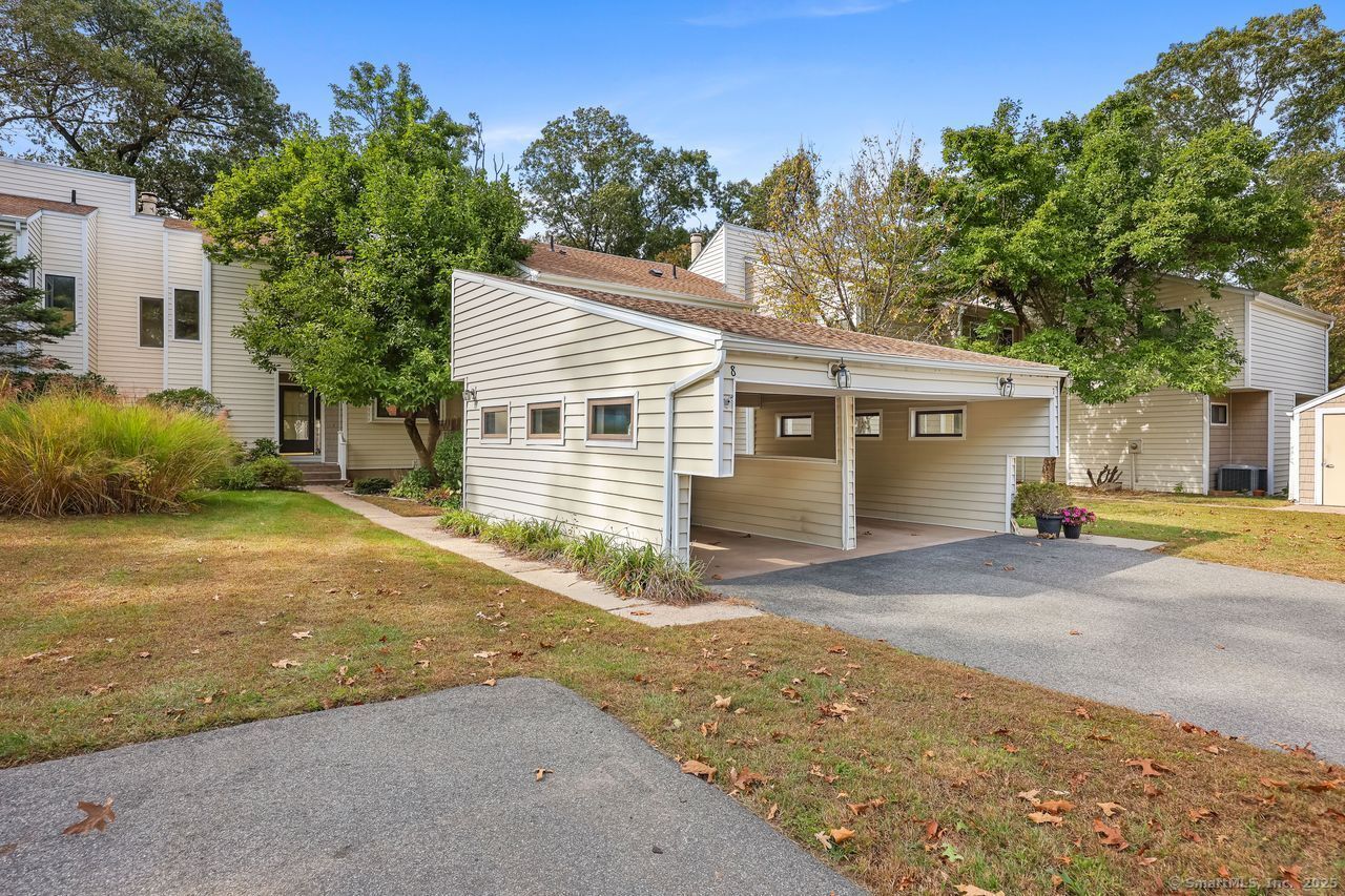 Nestled in the sought-after Currier Woods community, this 2 bedroom, 1.5 bath, condo offers a harmonious blend of elegance, warmth, and functionality. Step into the inviting living room, where a high vaulted tongue-and-groove ceiling creates a sense of spaciousness and is also complemented by a pellet stove for cozy charm and light hardwood floors that flow throughout the first floor. A large slider opens to a private deck surrounded by mature trees-perfect for relaxation. The remodeled kitchen showcases sophistication. Upstairs, custom built-in cabinetry in the bedrooms and full bath provides abundant storage. For convenience, the laundry room is near the bedrooms. The finished walk-out lower level offers versatile space for a home office, rec room, gym, or guest suite, and a cedar closet for added storage. Ensure peace of mind for years to come with a new roof and recently replaced hot water heater and Central AC/Heat system. Residents of Currier Woods enjoy a pool and playground, fostering a vibrant and active lifestyle. Located just minutes from the charming shops and restaurants in Cheshire's town center and the exciting new Shops at Stonebridge, this home also has easy access to 84 and 691. The brand-new Barnum Elementary School, scheduled to open in September 2026, is around the corner from the condo complex (school district to be determined by Cheshire BOE). This condo is a rare find-offering comfort and style in one of Cheshire's desirable neighborhoods