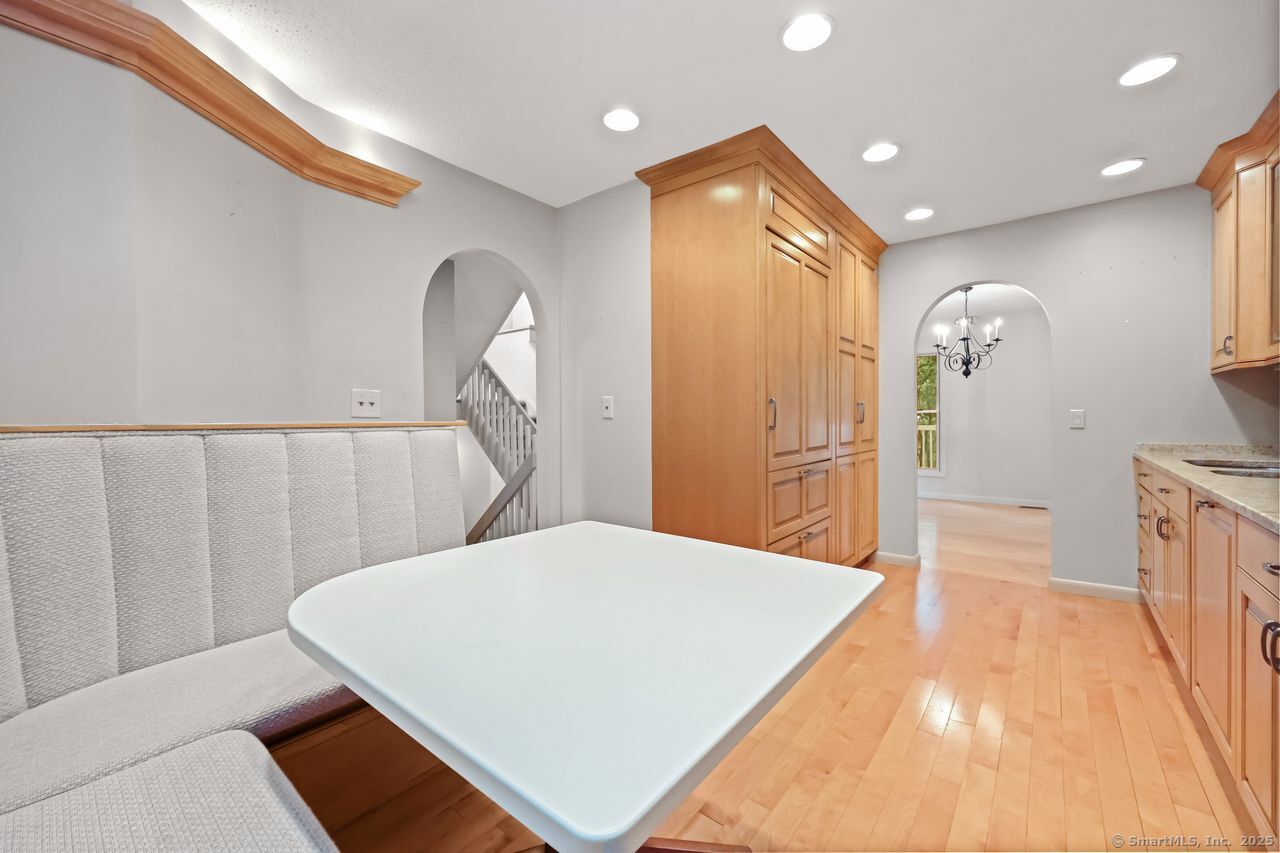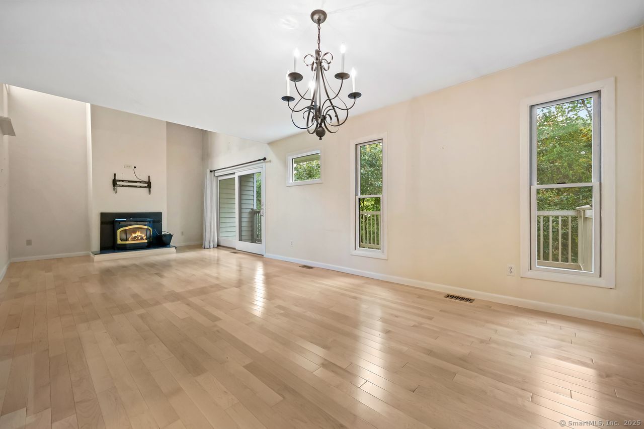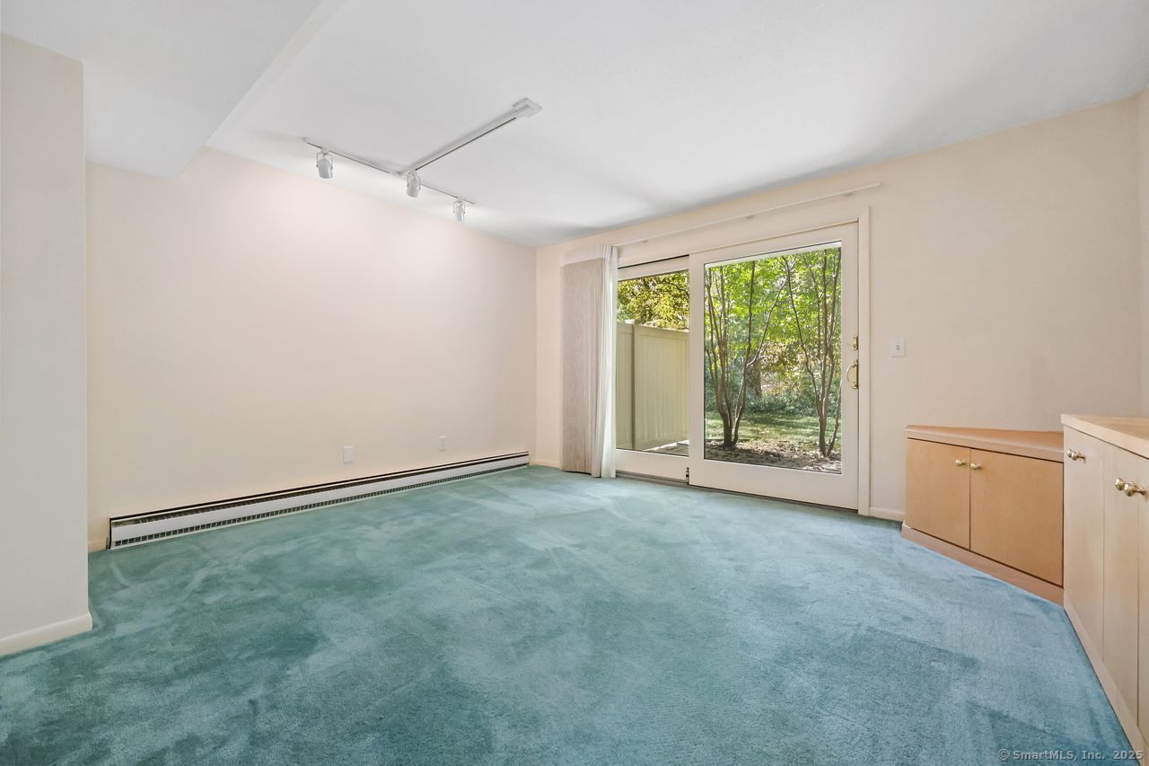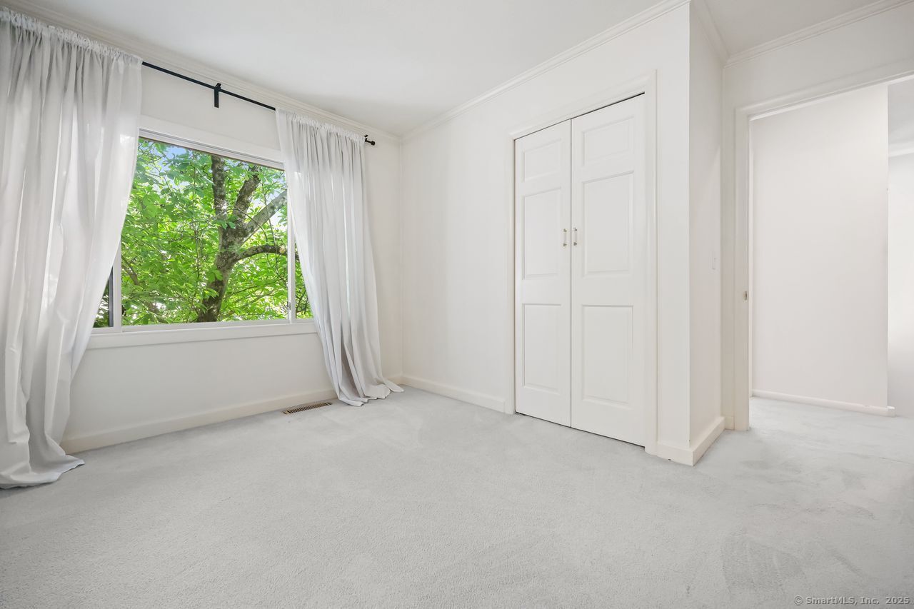 Nestled in the sought-after Currier Woods community, this 2 bedroom, 1.5 bath, condo offers a harmonious blend of elegance, warmth, and functionality. Step into the inviting living room, where a high vaulted tongue-and-groove ceiling creates a sense of spaciousness and is also complemented by a pellet stove for cozy charm and light hardwood floors that flow throughout the first floor. A large slider opens to a private deck surrounded by mature trees-perfect for relaxation. The remodeled kitchen showcases sophistication. Upstairs, custom built-in cabinetry in the bedrooms and full bath provides abundant storage. For convenience, the laundry room is near the bedrooms. The finished walk-out lower level offers versatile space for a home office, rec room, gym, or guest suite, and a cedar closet for added storage. Ensure peace of mind for years to come with a new roof and recently replaced hot water heater and Central AC/Heat system. Residents of Currier Woods enjoy a pool and playground, fostering a vibrant and active lifestyle. Located just minutes from the charming shops and restaurants in Cheshire's town center and the exciting new Shops at Stonebridge, this home also has easy access to 84 and 691. The brand-new Barnum Elementary School, scheduled to open in September 2026, is around the corner from the condo complex (school district to be determined by Cheshire BOE). This condo is a rare find-offering comfort and style in one of Cheshire's desirable neighborhoods