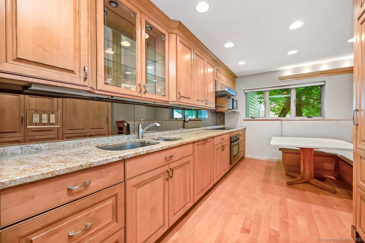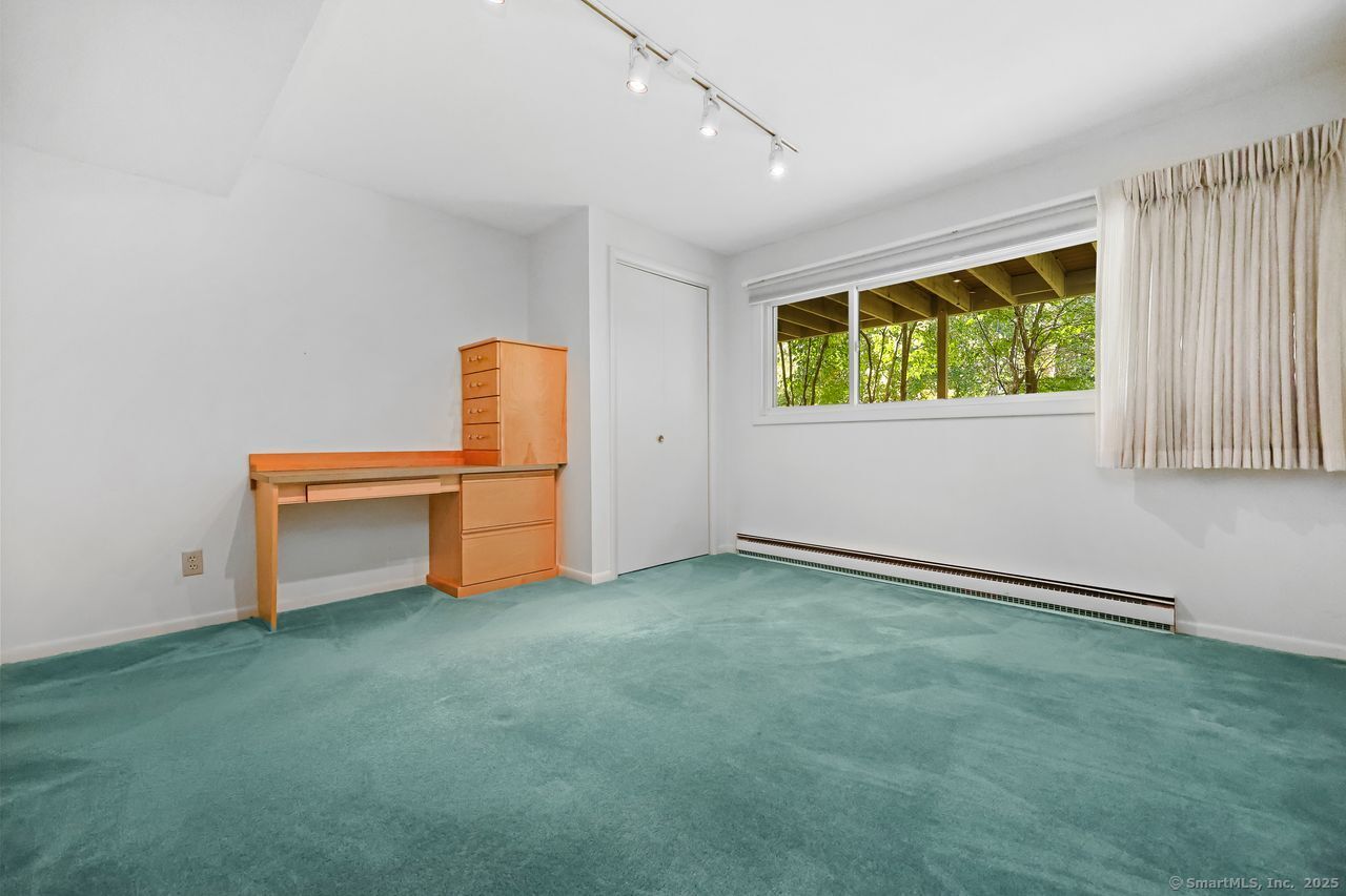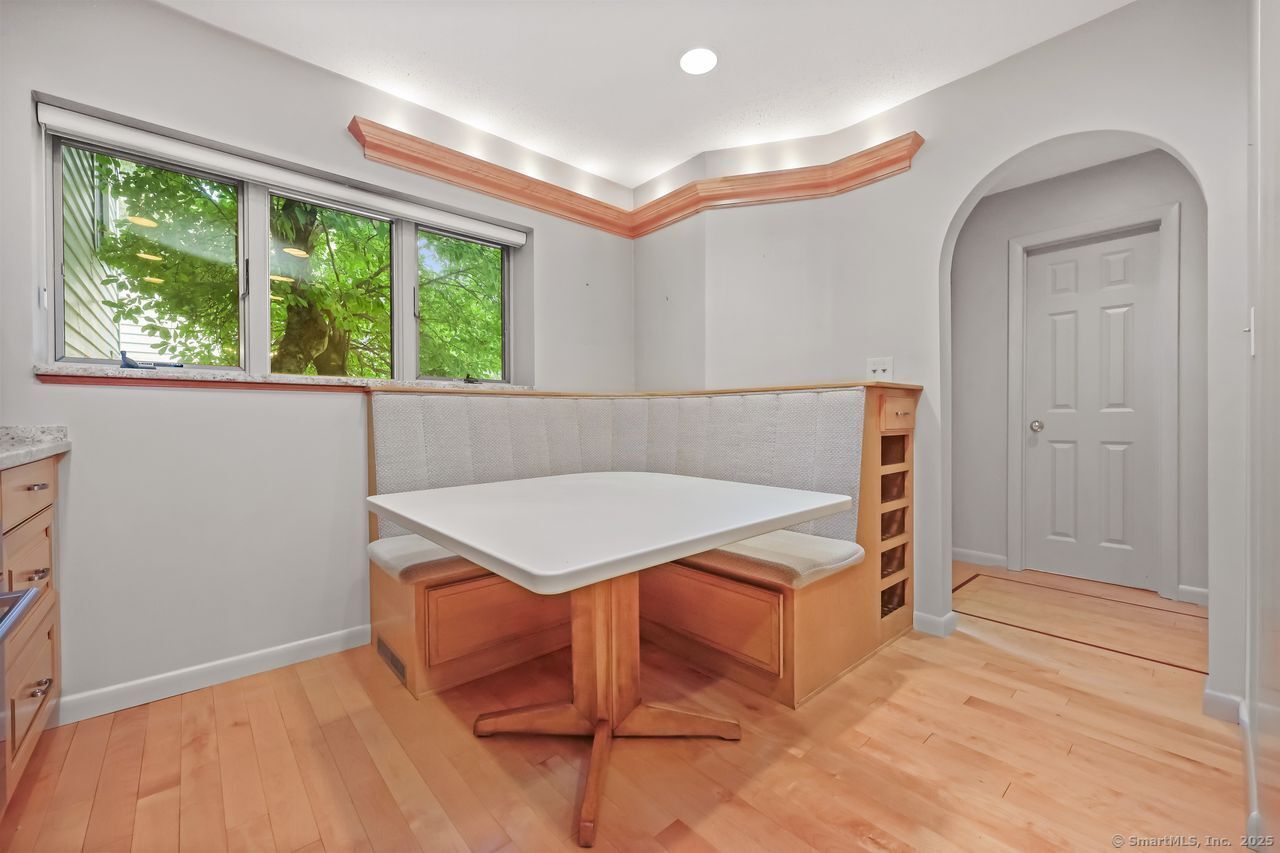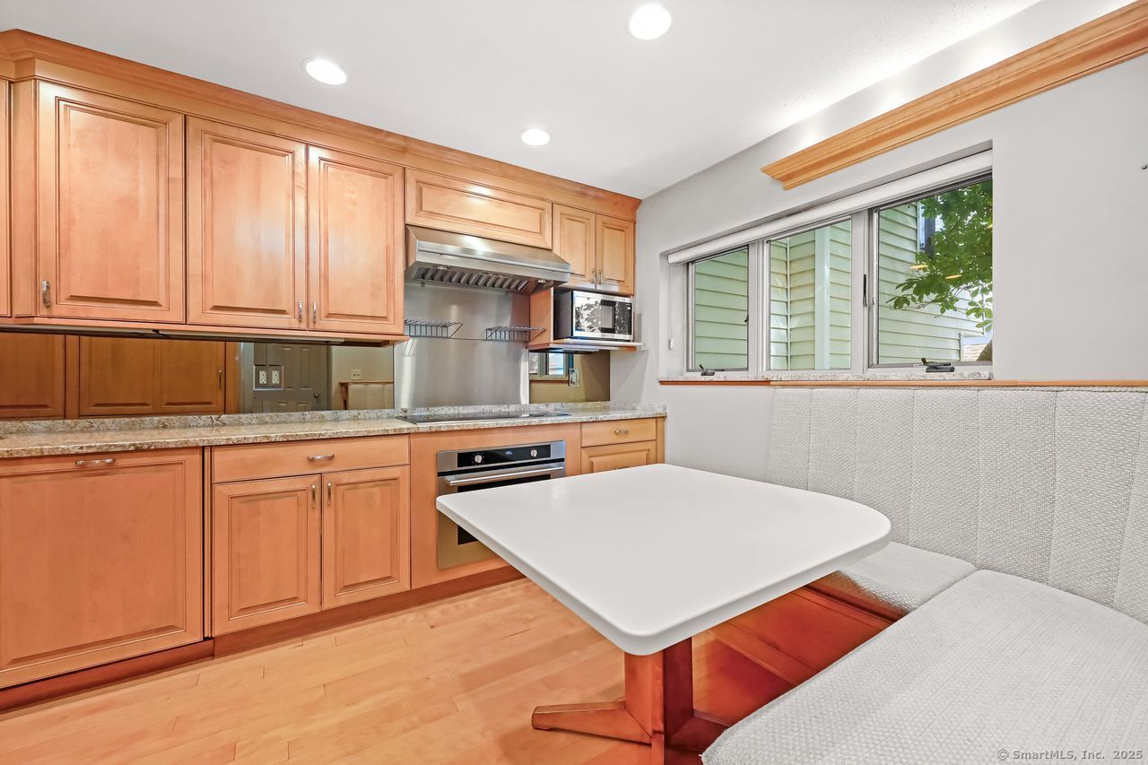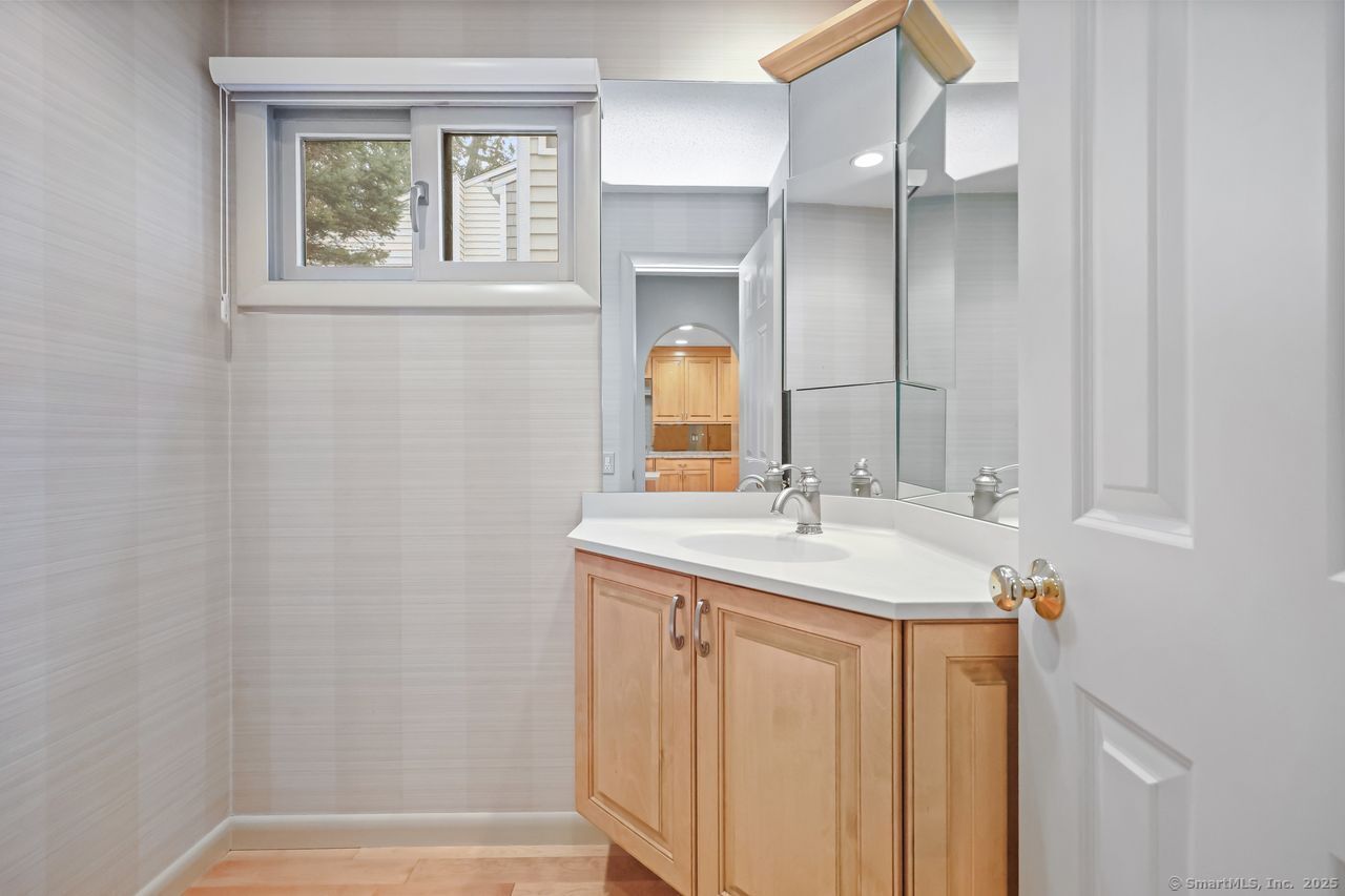 Nestled in the sought-after Currier Woods community, this 2 bedroom, 1.5 bath, condo offers a harmonious blend of elegance, warmth, and functionality. Step into the inviting living room, where a high vaulted tongue-and-groove ceiling creates a sense of spaciousness and is also complemented by a pellet stove for cozy charm and light hardwood floors that flow throughout the first floor. A large slider opens to a private deck surrounded by mature trees-perfect for relaxation. The remodeled kitchen showcases sophistication. Upstairs, custom built-in cabinetry in the bedrooms and full bath provides abundant storage. For convenience, the laundry room is near the bedrooms. The finished walk-out lower level offers versatile space for a home office, rec room, gym, or guest suite, and a cedar closet for added storage. Ensure peace of mind for years to come with a new roof and recently replaced hot water heater and Central AC/Heat system. Residents of Currier Woods enjoy a pool and playground, fostering a vibrant and active lifestyle. Located just minutes from the charming shops and restaurants in Cheshire's town center and the exciting new Shops at Stonebridge, this home also has easy access to 84 and 691. The brand-new Barnum Elementary School, scheduled to open in September 2026, is around the corner from the condo complex (school district to be determined by Cheshire BOE). This condo is a rare find-offering comfort and style in one of Cheshire's desirable neighborhoods