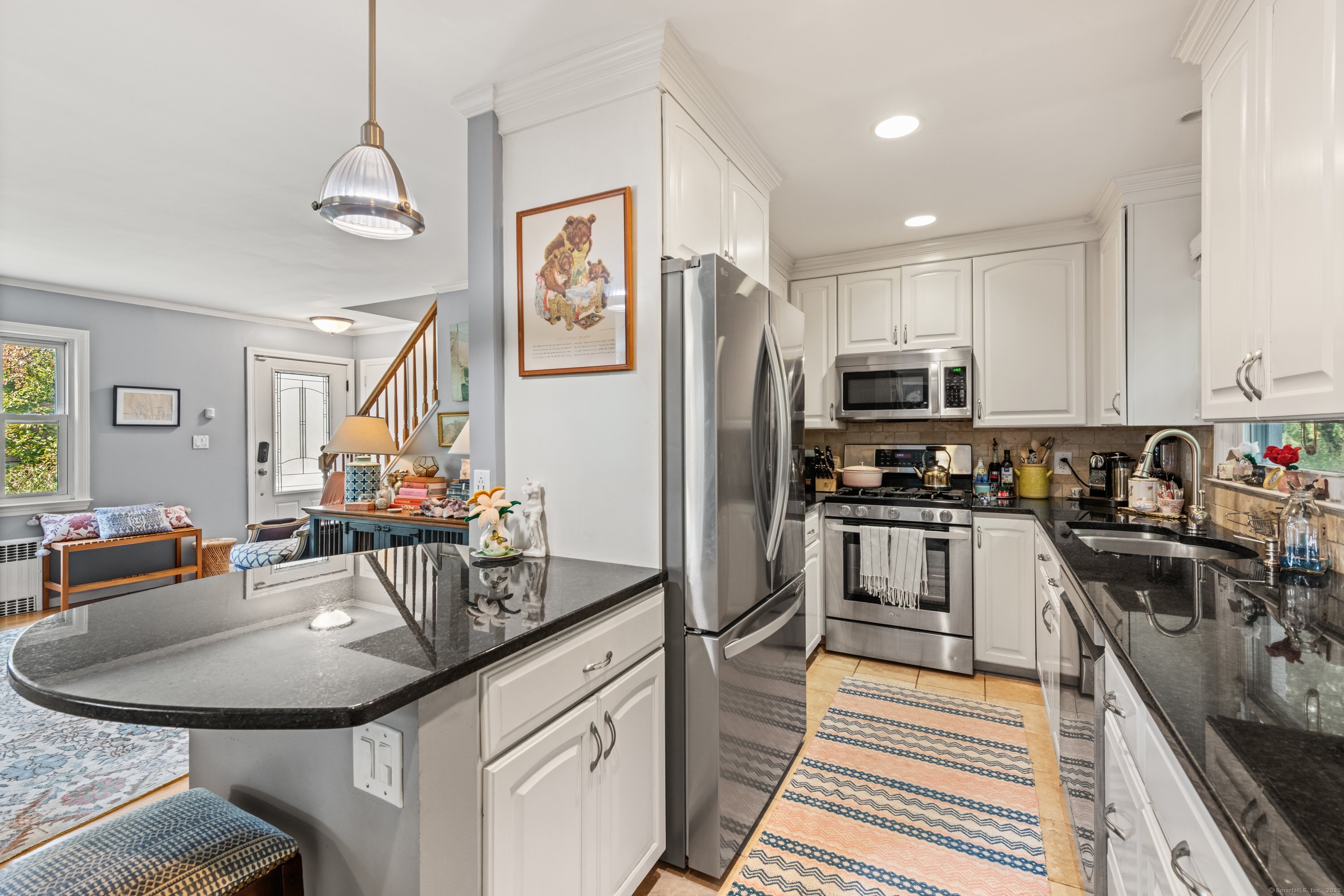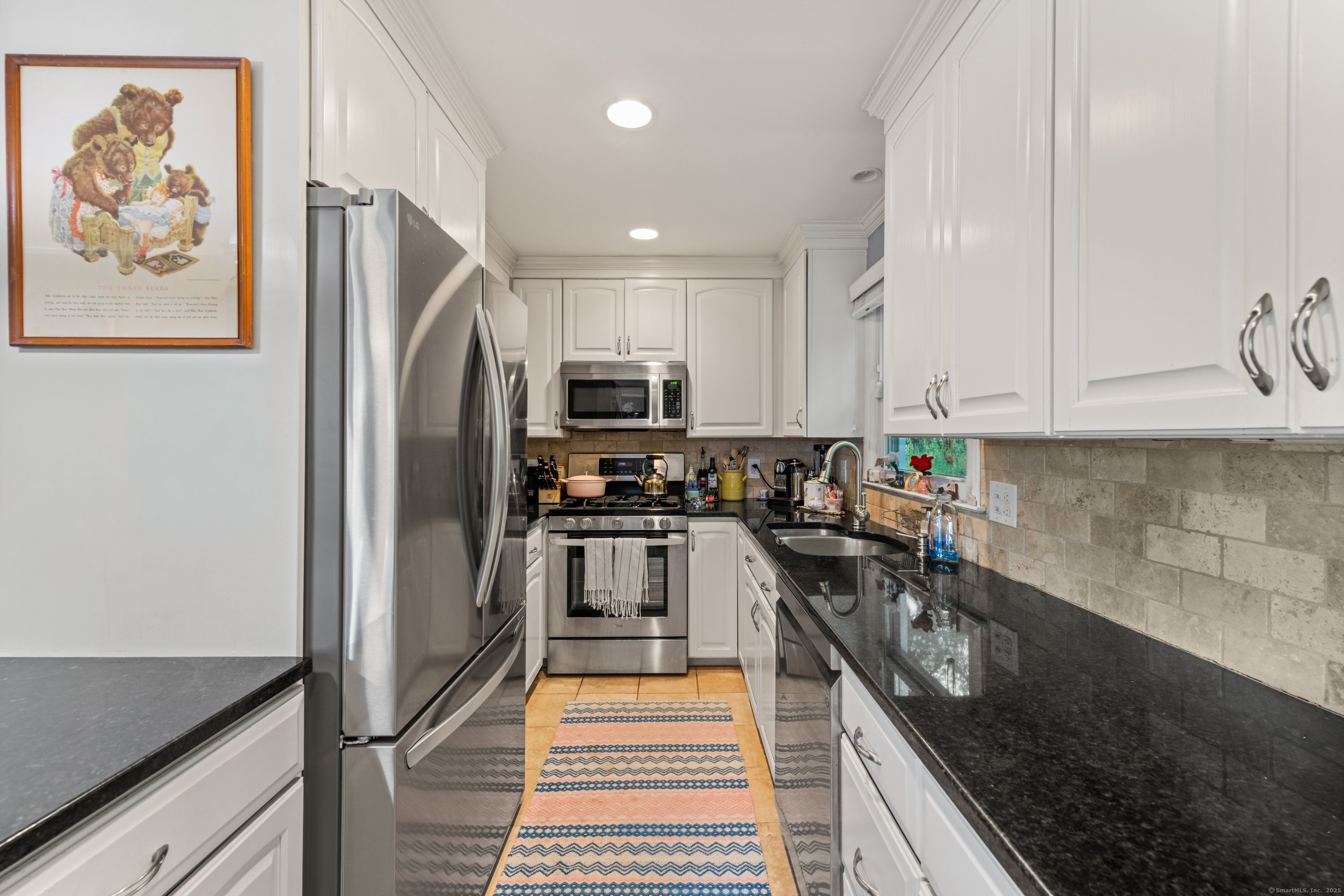 Situated on a secluded cul de sac in Greenwich this renovated Cape combines comfort, style, and opportunity. Sunlit living and dining rooms pair with a refreshed kitchen, while hardwood floors add warmth throughout. The finished lower level provides 900+ sq. ft. of additional flexible space beyond the listed square footage, ideal for media, play, or entertaining. One main-level bedroom now serves as a generous walk-in closet but can be easily converted back. Outdoor spaces include a private patio, upper deck, and stone-accented entry that add curb appeal. Situated in the R-6 zone, the property may offer two-family potential, making it as practical as it is charming-just minutes to schools, shops, parks, and train connections.