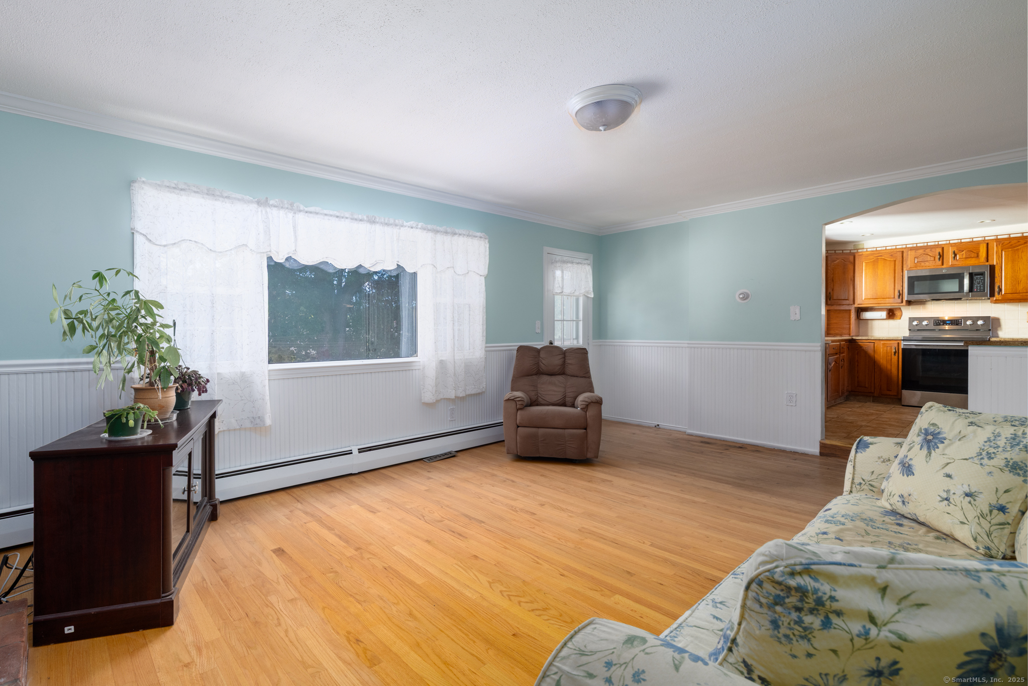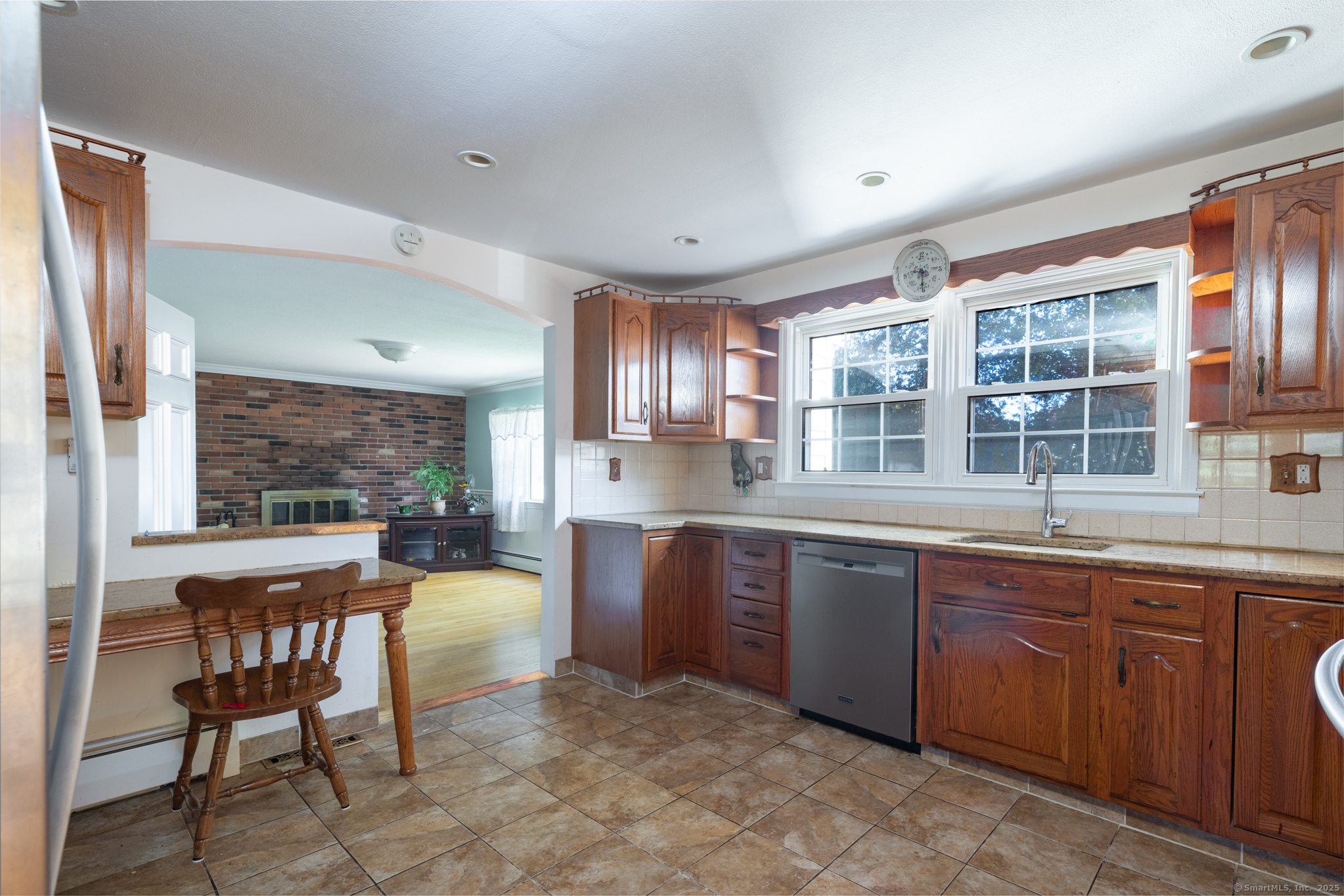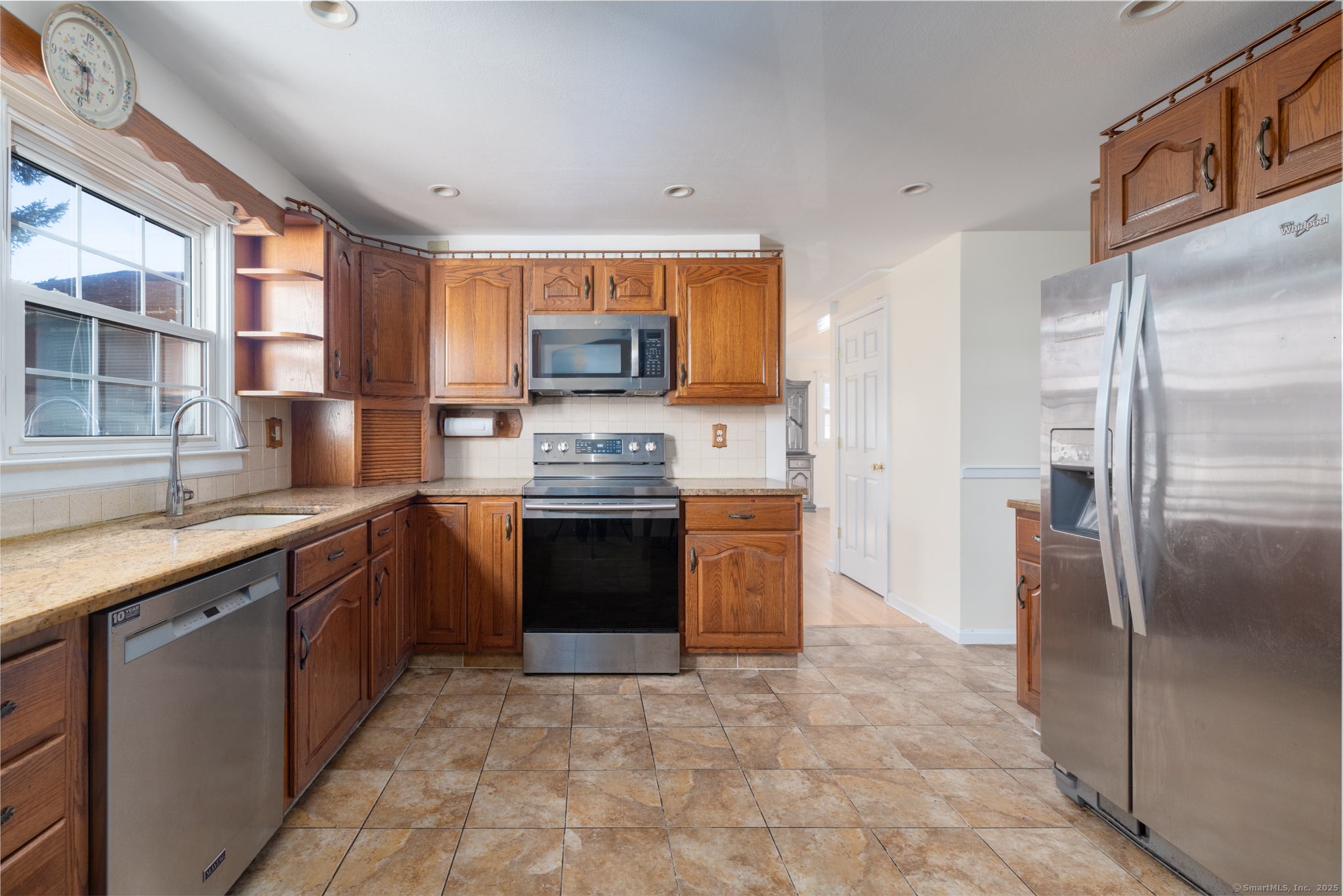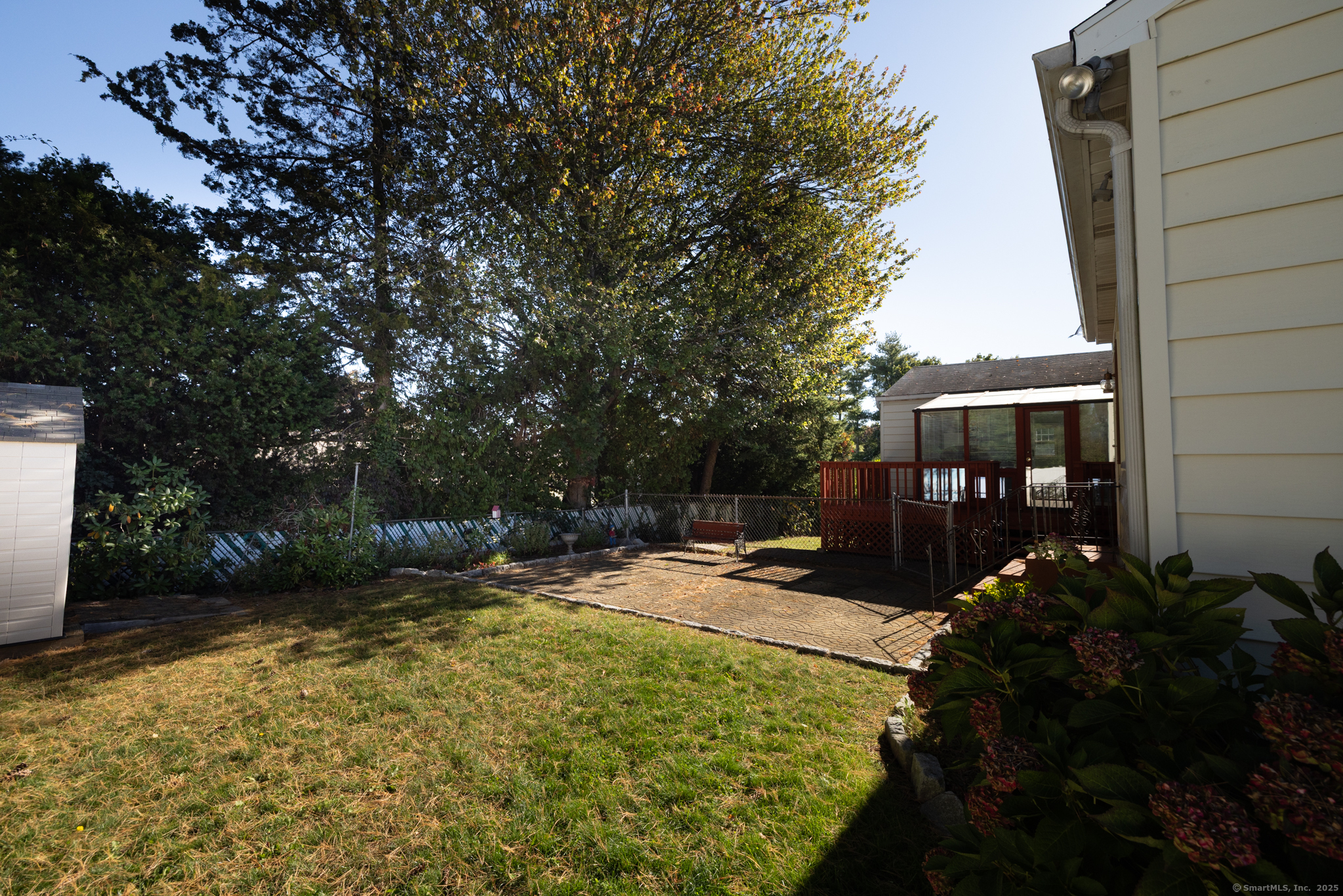 Beautifully maintained West Haven Colonial featuring a very spacious and functional layout. Light and bright throughout. The main level offers a large family room with hardwood floors, wainscot, and a wood burning fireplace. Oversized formal living room and separate dining room big enough for all gatherings. The huge eat-in-kitchen includes granite countertops, a breakfast bar, ample cabinet and counter space, and stainless steel appliances. Generously sized,first floor primary bedroom features sliders leading to a bright sunroom, overlooking the fenced-in backyard. Upstairs you'll find 4 additional bedrooms. Full bath with walk-in shower on both levels. Dry unfinished basement with tons storage space. Additional features include a newer furnace, central air, deck, shed, and an attached 2-car garage. Very desirable and convenient location; just a few minutes to the beach. This lovely home has so much to offer, and checks off all the boxes in your home search!