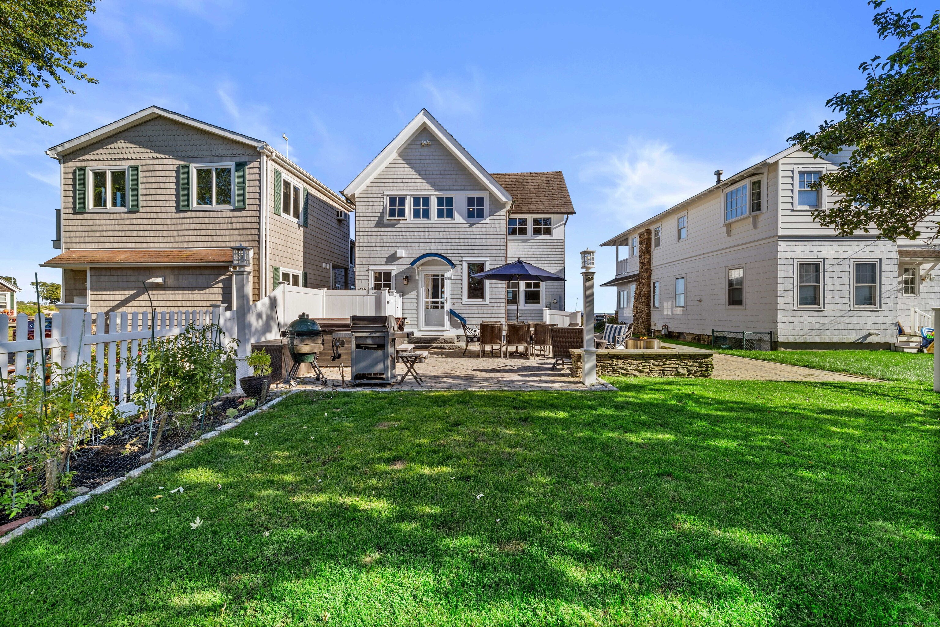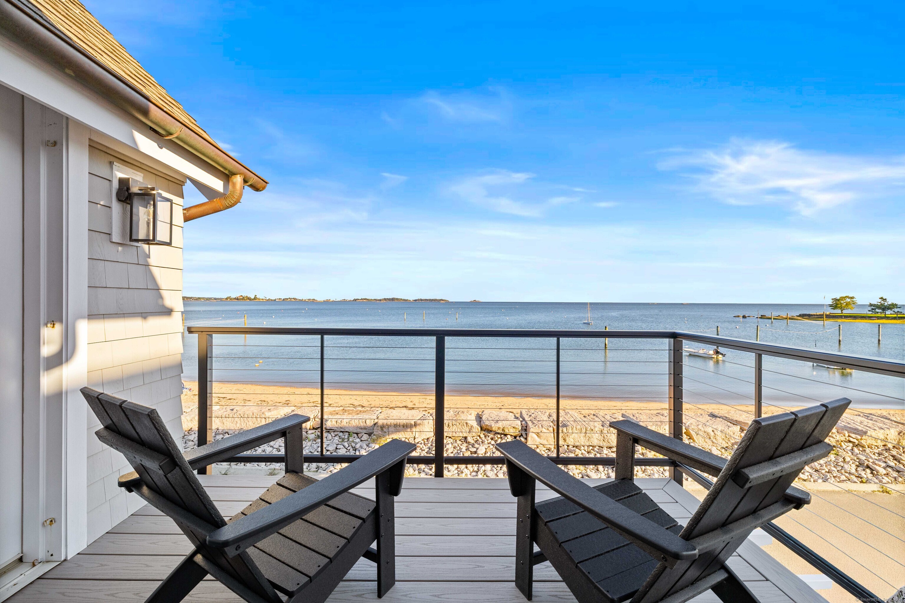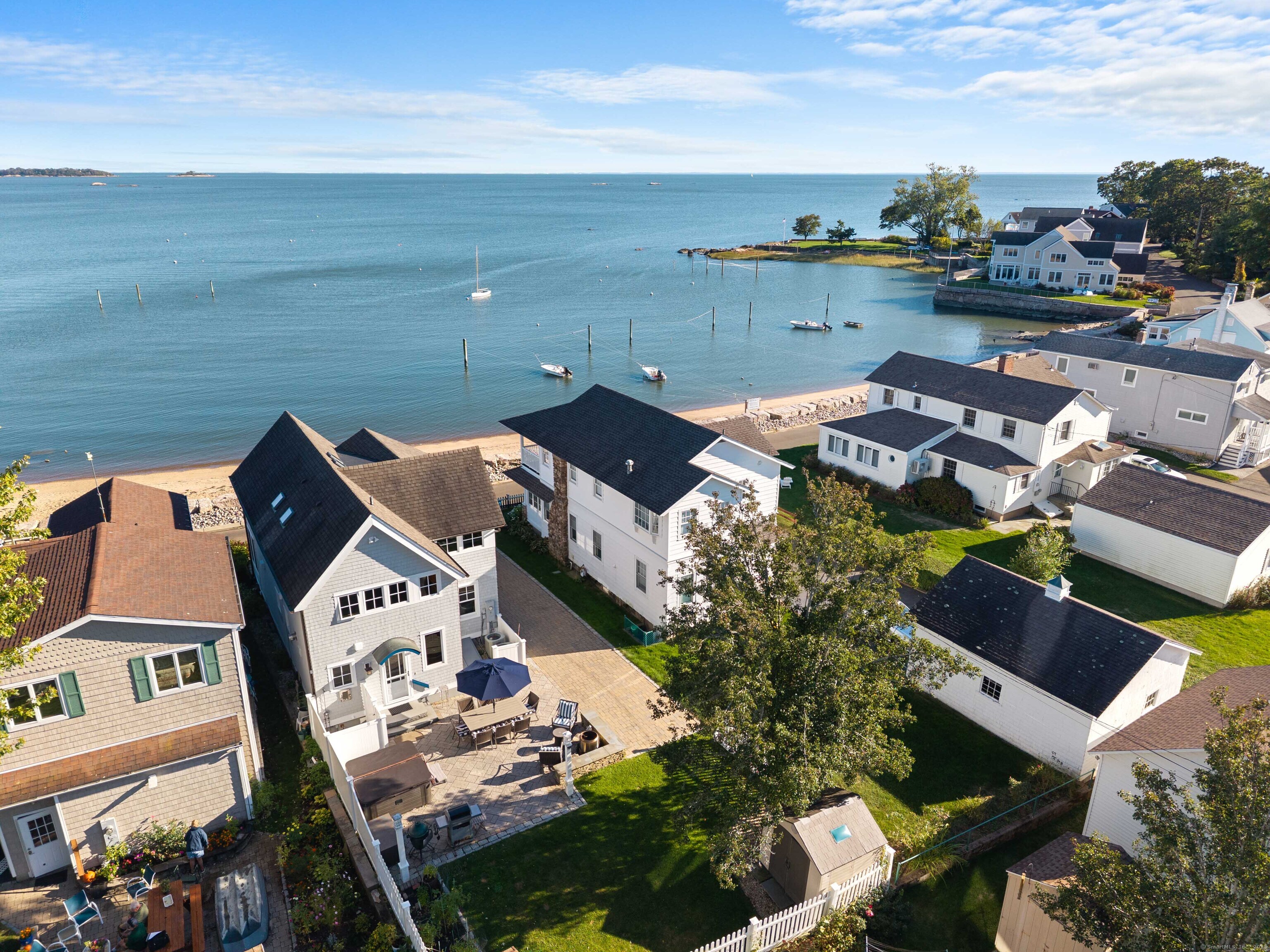 CT. Shoreline at its absolute best! Welcome to 29 Seaview Ave. in the Hotchkiss Grove area of Branford - expansive beach and views at your every glance! This 3BR contemporary home offers over 2,000 square feet of open, easy flowing living - perfect for entertaining & day to day life! The kitchen boasts plenty of cabinets, granite counter for the chef to do prep work while visiting with friends in the dining area or at the breakfast bar. Relax later by the fire in the living room or watch something on the home projector. The 2nd floor primary bedroom has vaulted ceiling, great natural light & unbelievable views - you can see for miles! Walk in closet area and full bath with jetted tub and separate shower. You also have access to a delightful deck for morning coffee or a nightcap! The 2nd BR also has deck access and vaulted ceiling, the 3rd BR, family bath, laundry area and attic access complete the upper level. Step outside to the rear yard and patio area - read by the firepit, rinse off in the outdoor shower or soak in the hot tub after a day at the beach. There is a basement area and shed for extra storage. New hurricane windows installed 2024, upper deck & doors replaced 2024, new shingles on front of house as well. Driveway, patio, hot tub and shower approx. 5-7 years - nothing to do but move in & enjoy. For your convenience, there are also 2 electric charging stations