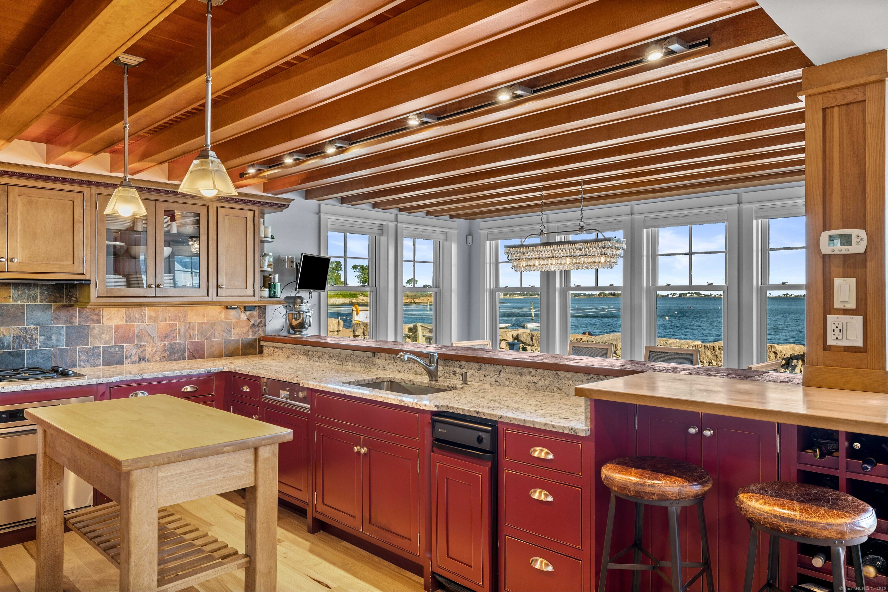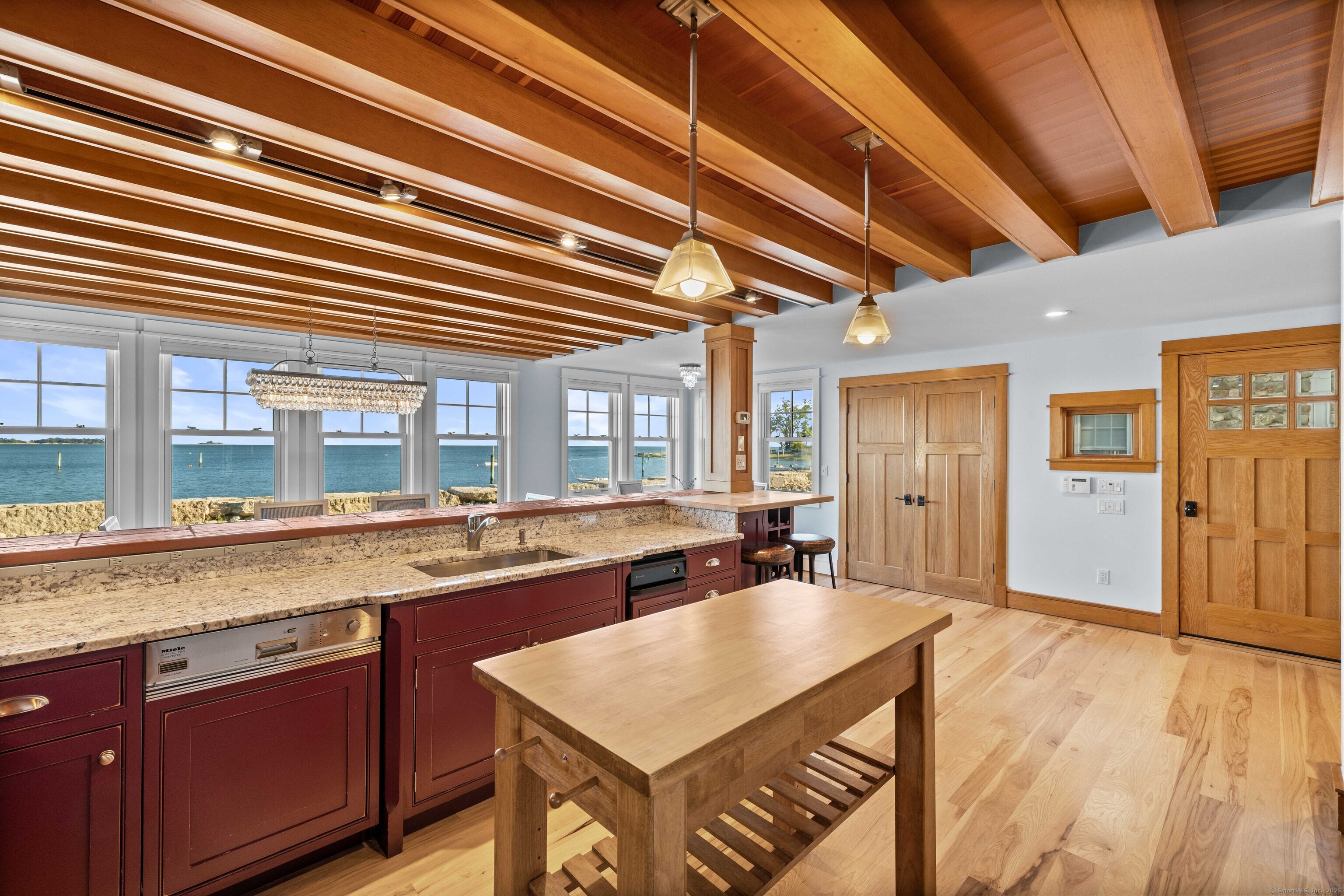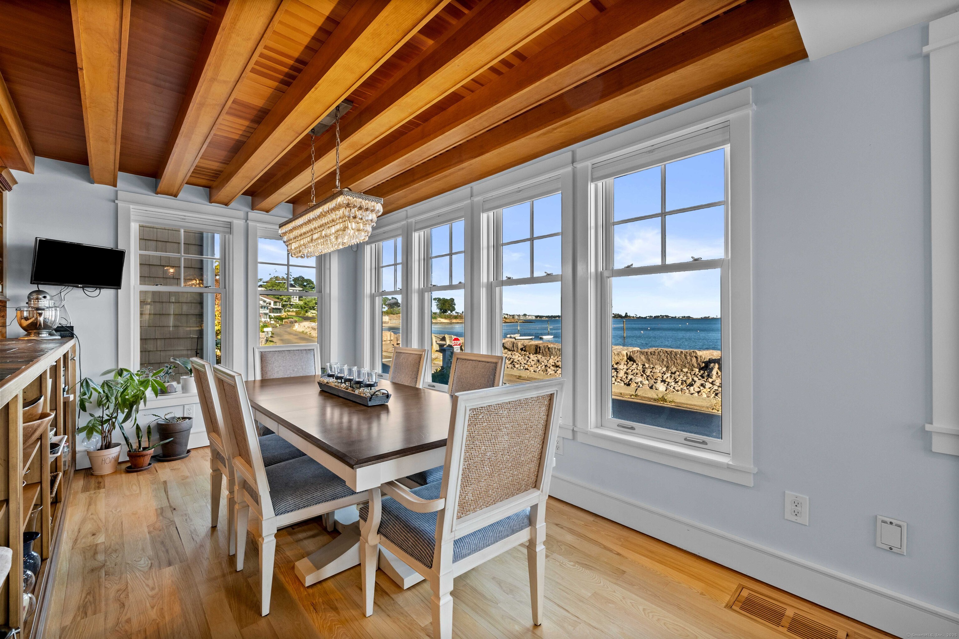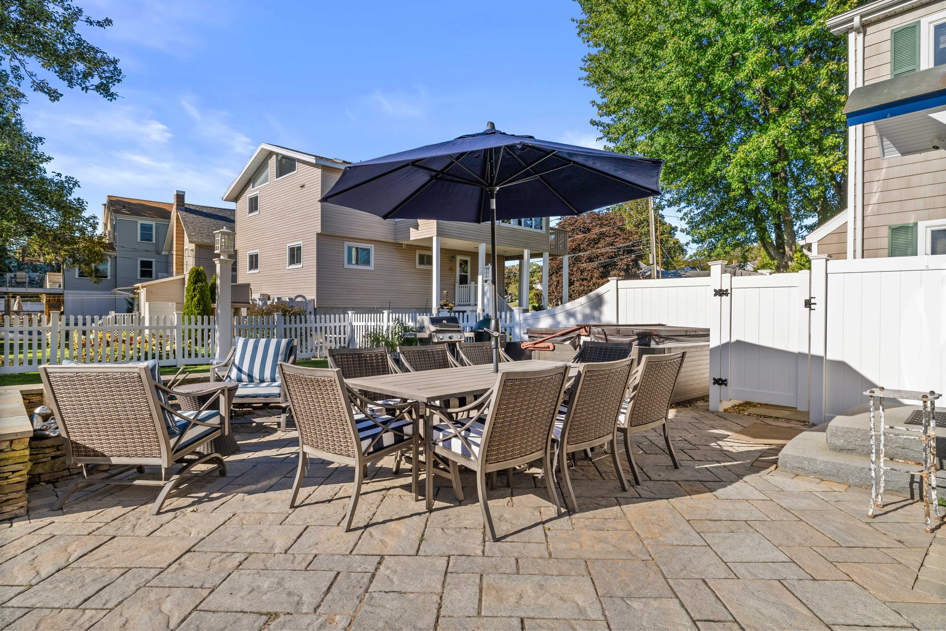 CT. Shoreline at its absolute best! Welcome to 29 Seaview Ave. in the Hotchkiss Grove area of Branford - expansive beach and views at your every glance! This 3BR contemporary home offers over 2,000 square feet of open, easy flowing living - perfect for entertaining & day to day life! The kitchen boasts plenty of cabinets, granite counter for the chef to do prep work while visiting with friends in the dining area or at the breakfast bar. Relax later by the fire in the living room or watch something on the home projector. The 2nd floor primary bedroom has vaulted ceiling, great natural light & unbelievable views - you can see for miles! Walk in closet area and full bath with jetted tub and separate shower. You also have access to a delightful deck for morning coffee or a nightcap! The 2nd BR also has deck access and vaulted ceiling, the 3rd BR, family bath, laundry area and attic access complete the upper level. Step outside to the rear yard and patio area - read by the firepit, rinse off in the outdoor shower or soak in the hot tub after a day at the beach. There is a basement area and shed for extra storage. New hurricane windows installed 2024, upper deck & doors replaced 2024, new shingles on front of house as well. Driveway, patio, hot tub and shower approx. 5-7 years - nothing to do but move in & enjoy. For your convenience, there are also 2 electric charging stations