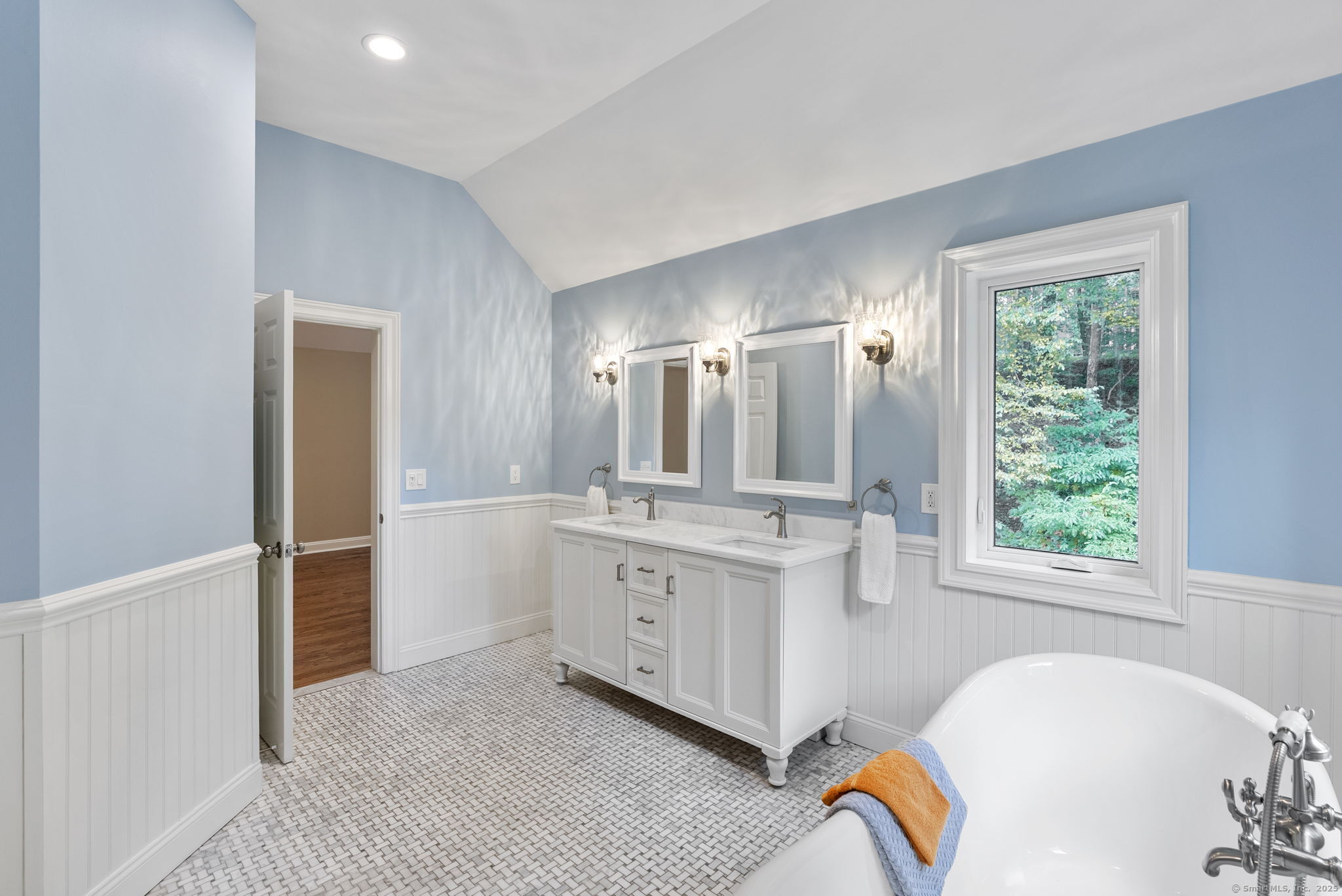 ---- Extensively updated 4 Bedroom, 3.5 Bathroom, 3,820 Sq Ft home with an oversized 3-Car Garage ---- Recent seller upgrades and improvements include a new kitchen with Fabuwood semi-custom cabinetry, natural quartz countertops, stainless steel appliances, ceramic tile backsplash, and new hardware; all new bathrooms with updated flooring, tubs/shower pans, lighting, accessories, shower enclosures, vanities, and tile; new Berber carpet in all bedrooms and bonus room; complete interior refinish, including ceilings, trim, and; Refinished hardwood flooring throughout and new hardwood added in kitchen, primary bedroom, and; new LED lighting throughout; new door hardware and knobs; new stone fireplace surrounds and hearths; partial driveway replacement; new front paver walkway and landscaping; 5,000 sq. ft. of new backyard sod; new water heater (2025); new overhead garage door and operator and existing doors and operators serviced. Updates completed 2017 or newer include all-wood cedar siding and windows replaced, complete roof replacement, blown-in insulation, full HVAC replacement by Degree of Glastonbury, garage doors and epoxy garage floor, epoxy basement floor and walls, addition of two TimberTech decks and Black aluminum decorative fencing, updated electrical system and Gillette 25kW propane generator installed, 500-gallon buried propane tank (leased), and water filtration system. Two words. Turn key.