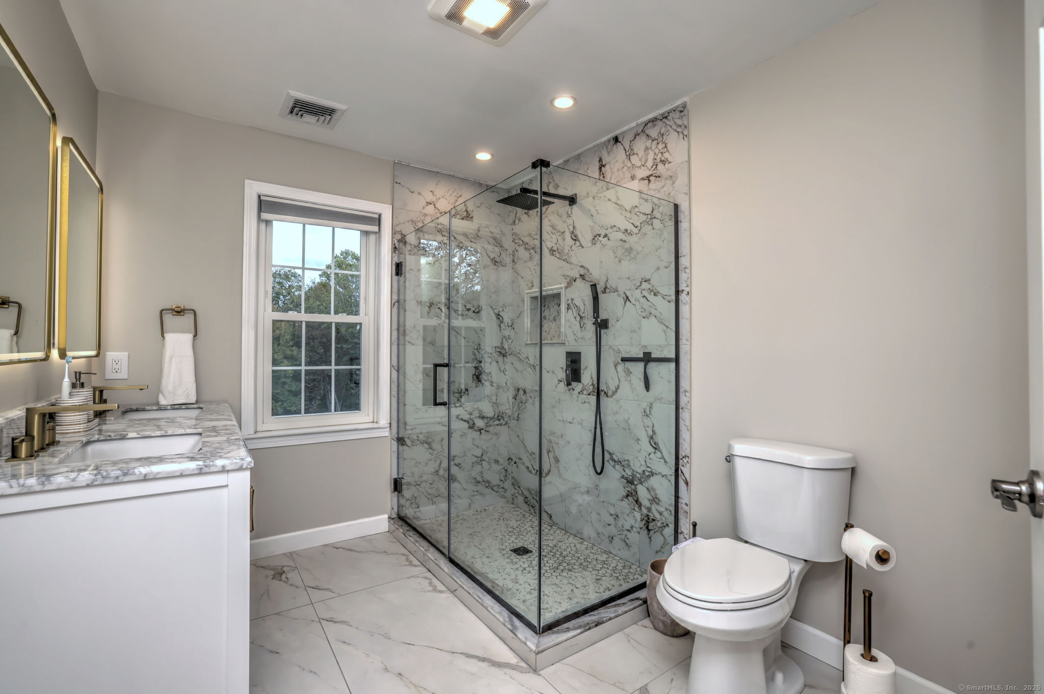 Welcome to 82 Mirey Dam Road, Middlebury, CT, a stunning colonial oasis tucked away on 2.74 acres of mature, peaceful landscaping in one of the area's most sought-after neighborhoods. From the moment you arrive, you'll feel the sense of calm this property conveys. Lush landscaping, mature trees, and careful design grant privacy and serenity. The heated saltwater inground pool and outdoor spaces invite you to relax, entertain, and savor every season in your own personal retreat. Inside, the flow is effortless. The freshly painted interior, upgraded windows, and modern lighting set an elevated tone. The fully renovated bathrooms blend style and practicality. Bedrooms are generous with stunning views and light-filled; common rooms are versatile and ideal for both daily living and special occasions. Every major system and feature of this home has been thoughtfully updated, creating a move in ready property with style and reliability. A detailed list of all upgrades is attached to the listing highlighting the extensive improvements that make this property truly move-in ready.