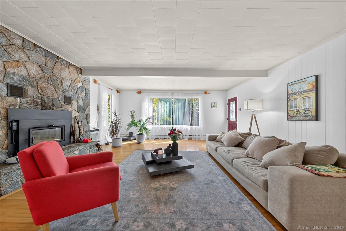 This beautifully maintained New Fairfield home offers comfort, light, and privacy on more than 2 acres of land. The main level features bright living spaces enhanced by skylights and new replacement windows that bring in abundant natural light. The primary bedroom includes its own en-suite bath, complemented by additional bedrooms and a second full bath. The finished lower level adds great flexibility with a half bath, a finished room ideal for a home office, gym, or guest space, and a convenient laundry area. A pull-down attic provides extra storage, and the property includes an attached garage for easy parking. Step outside to enjoy the above-ground pool and peaceful wooded surroundings. Located just over a mile from Squantz Pond State Park and Candlewood Lake, this home combines tranquility, space, and accessibility to local parks, schools, and shopping-a perfect blend of comfort and convenience.
