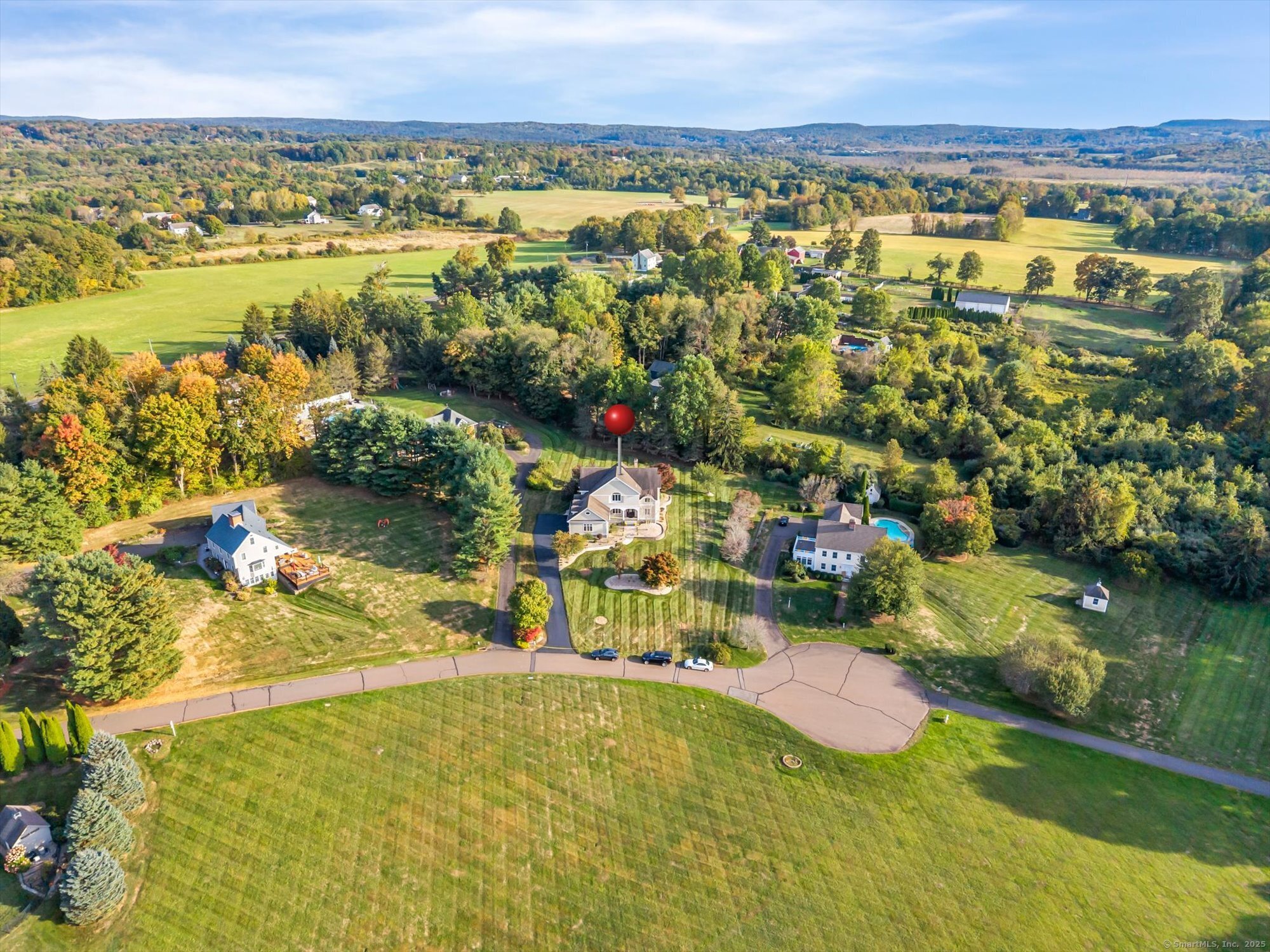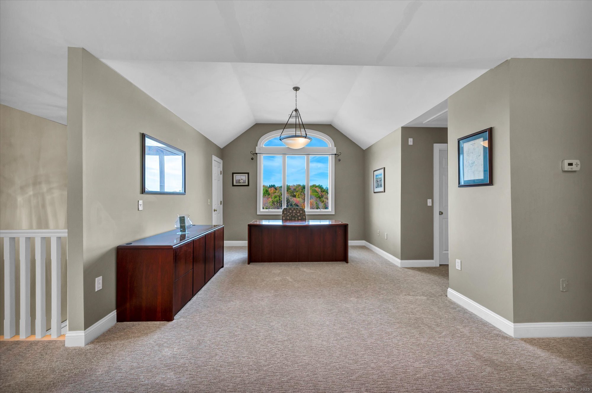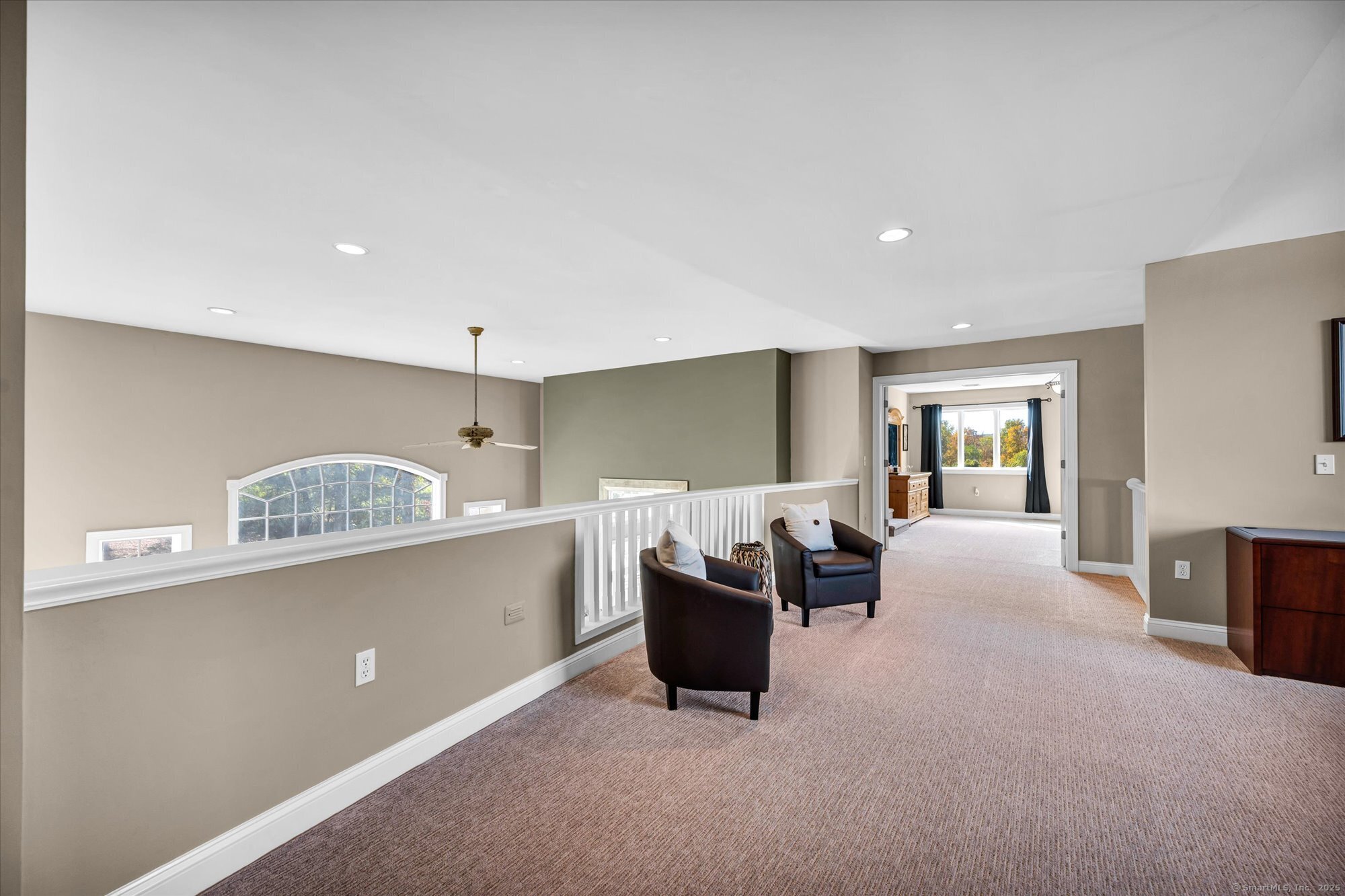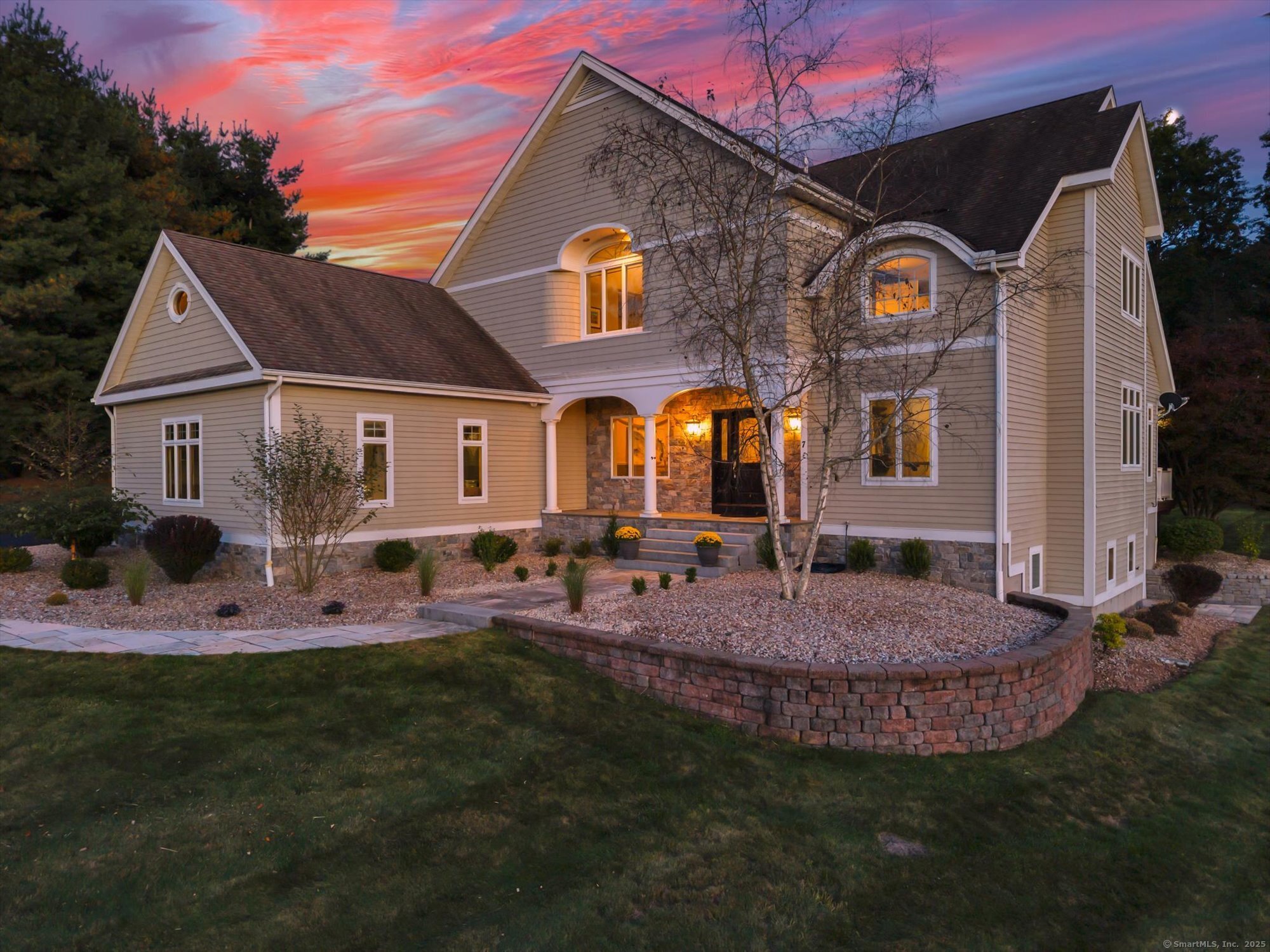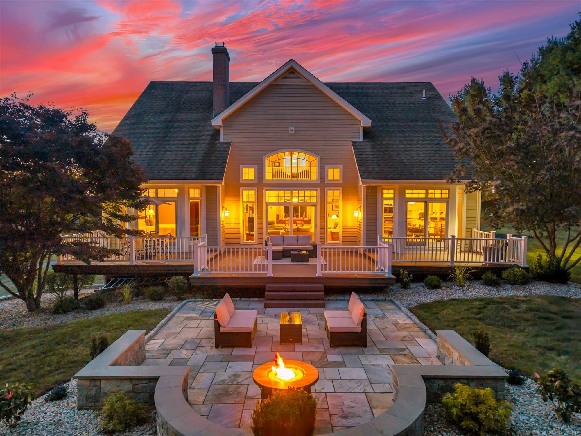 Nestled on a private, picturesque cul-de-sac in Middlefield, this stunning home offers sweeping panoramic views and unforgettable sunsets, creating a serene country retreat. Inside, the great room impresses with soaring 20-foot ceilings, a striking fireplace, and floor-to-ceiling windows that flood the space with natural light. The first-floor primary suite features elegant 11-foot tray ceilings, a romantic fireplace, a luxurious spa-like bathroom with a large walk-in shower, Jacuzzi tub, and a custom walk-in closet. The open floor plan offers abundant light and space throughout, while the eat-in kitchen is a chef's dream - featuring ample cabinetry, a large center island, and stunning new quartz countertops. Upstairs, you'll find three additional bedrooms and an office with spectacular views. The massive finished basement provides endless possibilities, including a potential in-law suite, with a walk-out slider and half bathroom. Step outside to enjoy the 800-square-foot deck leading to a natural stone patio with a charming arch wall - the perfect setting for a cozy fire pit and outdoor entertaining. This peaceful retreat is beautifully designed for comfort, style, and versatility - all conveniently located while offering the serenity of country living.