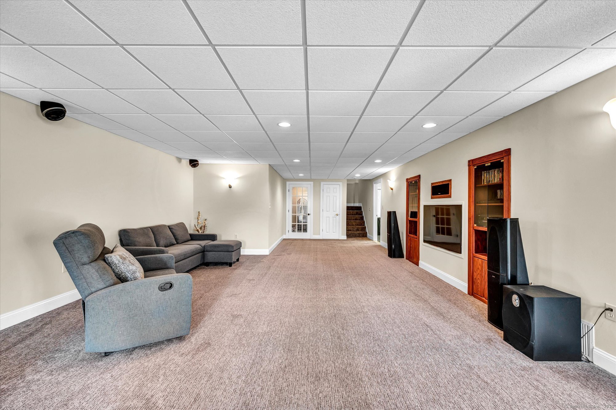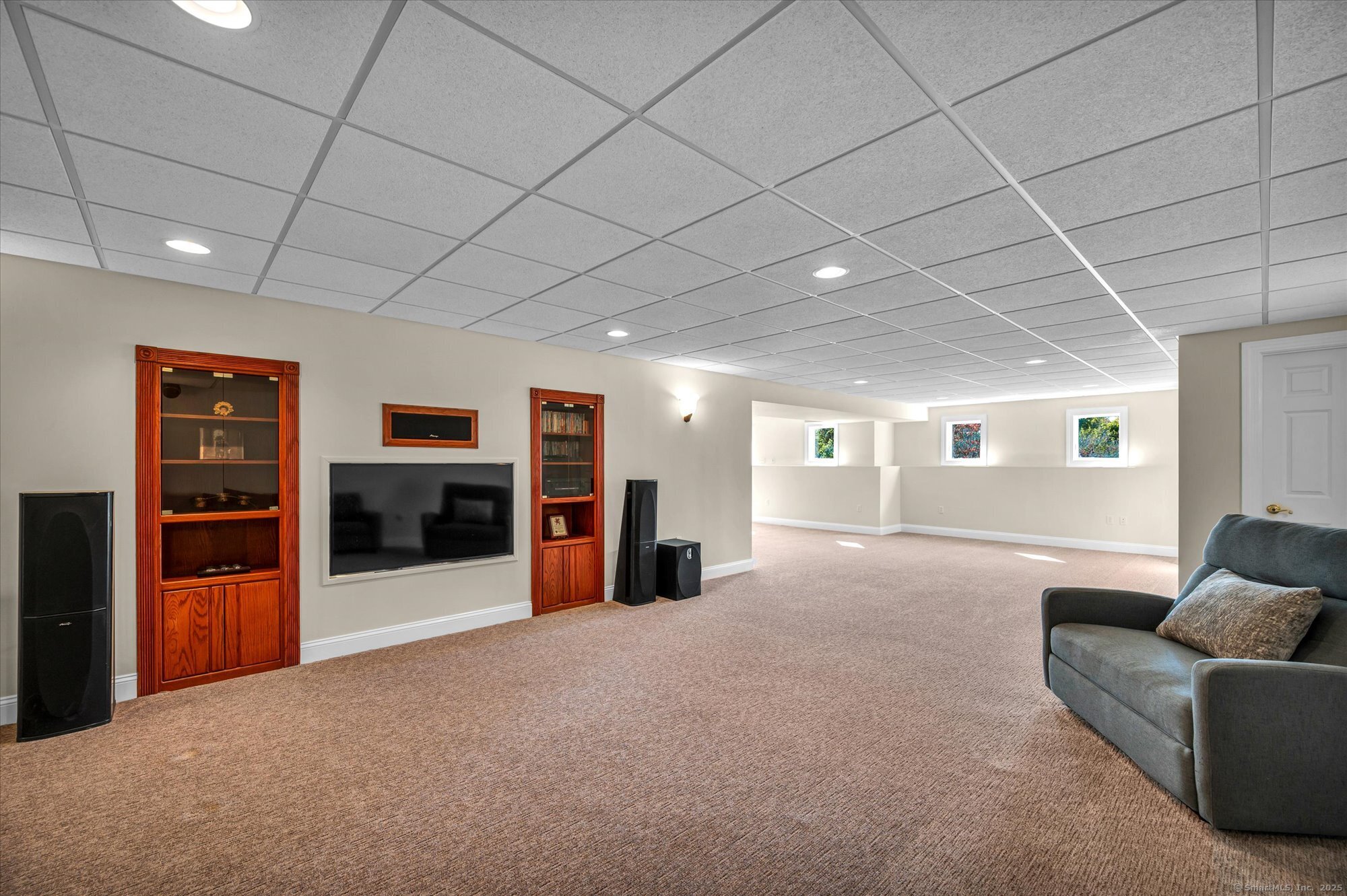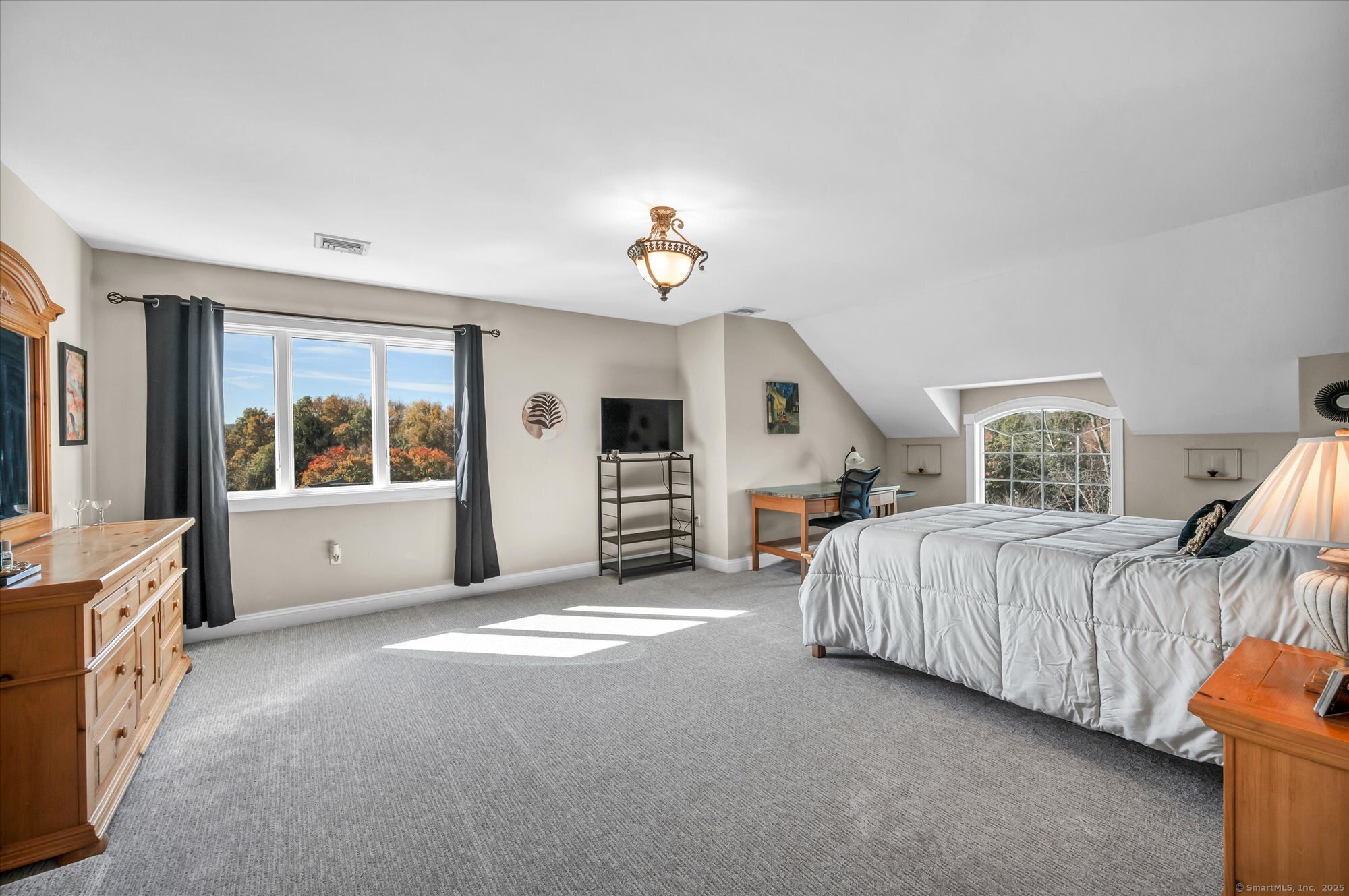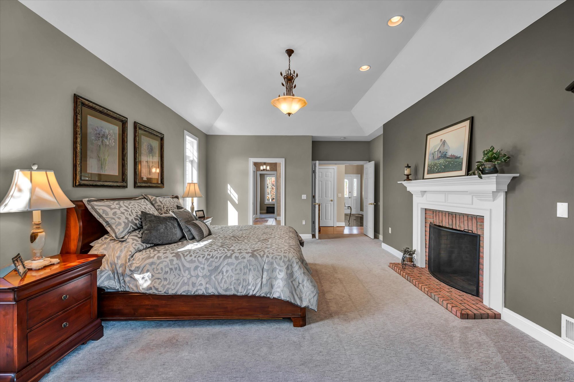 Nestled on a private, picturesque cul-de-sac in Middlefield, this stunning home offers sweeping panoramic views and unforgettable sunsets, creating a serene country retreat. Inside, the great room impresses with soaring 20-foot ceilings, a striking fireplace, and floor-to-ceiling windows that flood the space with natural light. The first-floor primary suite features elegant 11-foot tray ceilings, a romantic fireplace, a luxurious spa-like bathroom with a large walk-in shower, Jacuzzi tub, and a custom walk-in closet. The open floor plan offers abundant light and space throughout, while the eat-in kitchen is a chef's dream - featuring ample cabinetry, a large center island, and stunning new quartz countertops. Upstairs, you'll find three additional bedrooms and an office with spectacular views. The massive finished basement provides endless possibilities, including a potential in-law suite, with a walk-out slider and half bathroom. Step outside to enjoy the 800-square-foot deck leading to a natural stone patio with a charming arch wall - the perfect setting for a cozy fire pit and outdoor entertaining. This peaceful retreat is beautifully designed for comfort, style, and versatility - all conveniently located while offering the serenity of country living.