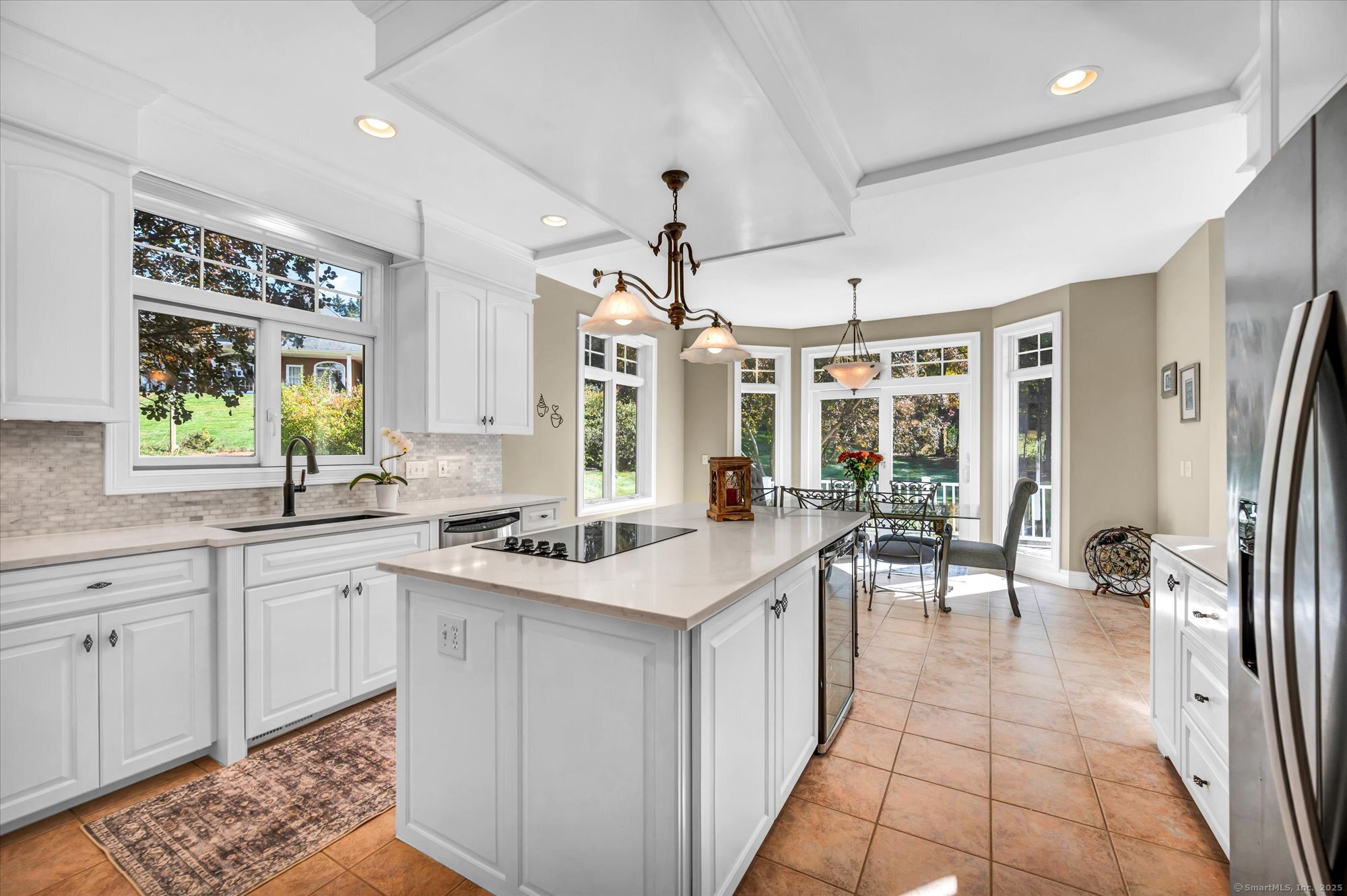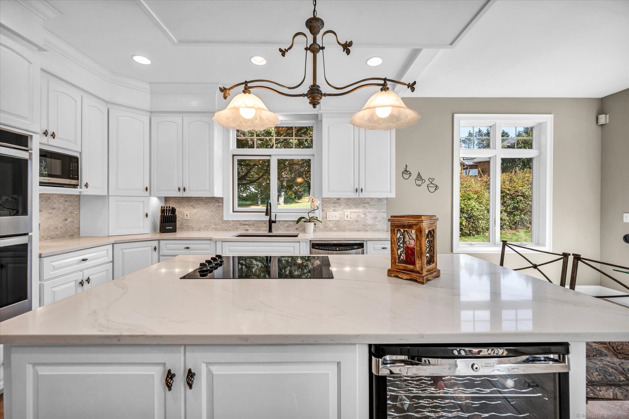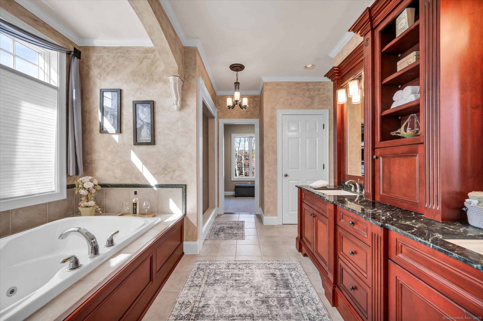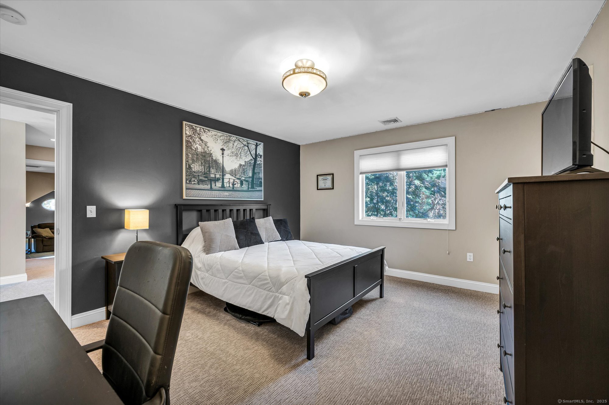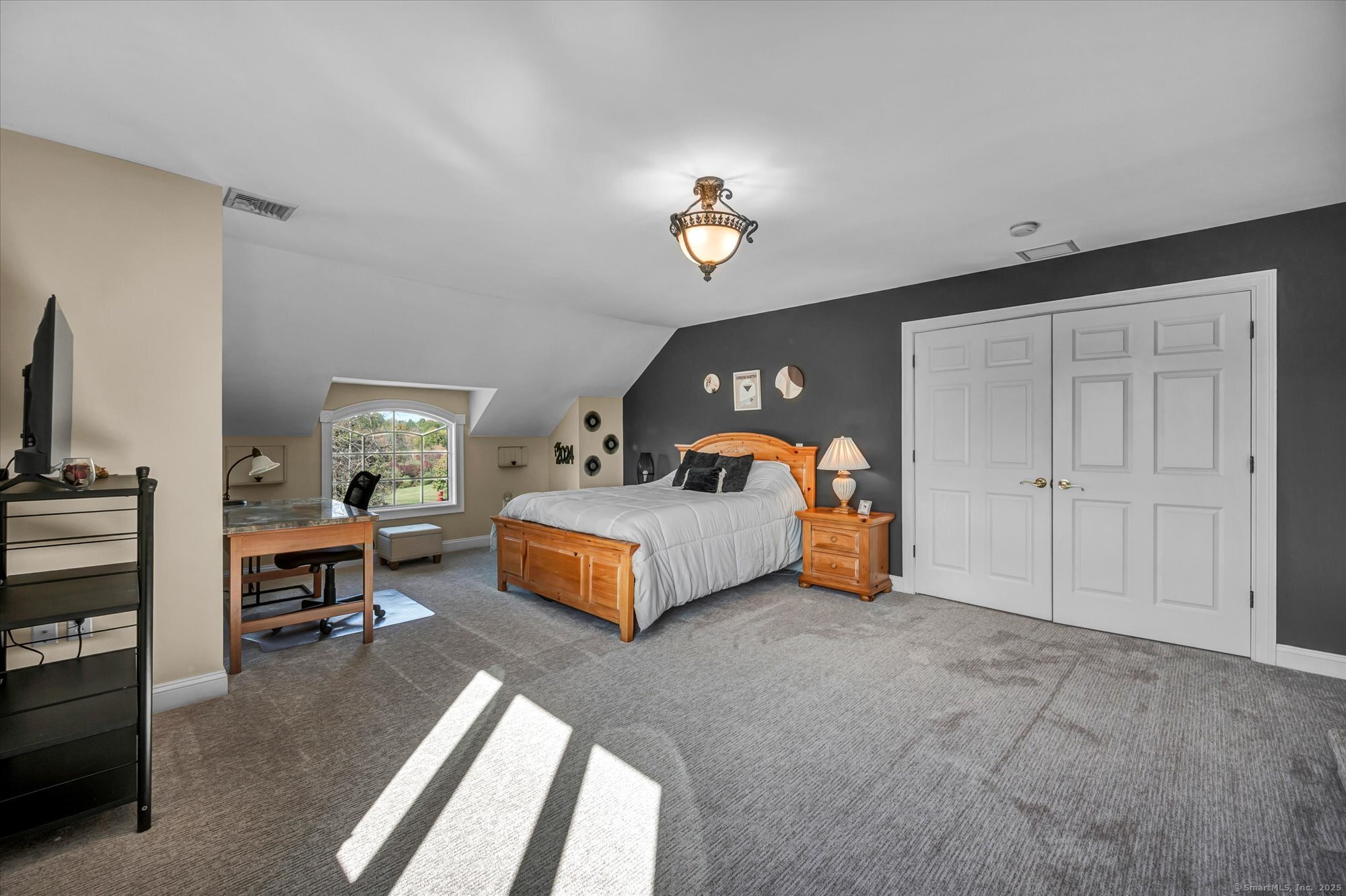 Nestled on a private, picturesque cul-de-sac in Middlefield, this stunning home offers sweeping panoramic views and unforgettable sunsets, creating a serene country retreat. Inside, the great room impresses with soaring 20-foot ceilings, a striking fireplace, and floor-to-ceiling windows that flood the space with natural light. The first-floor primary suite features elegant 11-foot tray ceilings, a romantic fireplace, a luxurious spa-like bathroom with a large walk-in shower, Jacuzzi tub, and a custom walk-in closet. The open floor plan offers abundant light and space throughout, while the eat-in kitchen is a chef's dream - featuring ample cabinetry, a large center island, and stunning new quartz countertops. Upstairs, you'll find three additional bedrooms and an office with spectacular views. The massive finished basement provides endless possibilities, including a potential in-law suite, with a walk-out slider and half bathroom. Step outside to enjoy the 800-square-foot deck leading to a natural stone patio with a charming arch wall - the perfect setting for a cozy fire pit and outdoor entertaining. This peaceful retreat is beautifully designed for comfort, style, and versatility - all conveniently located while offering the serenity of country living.