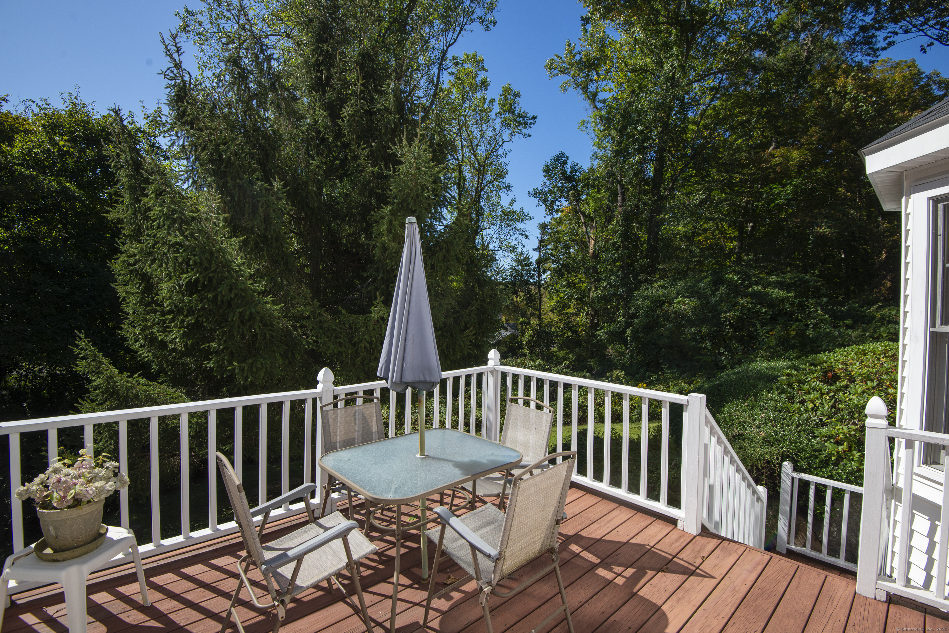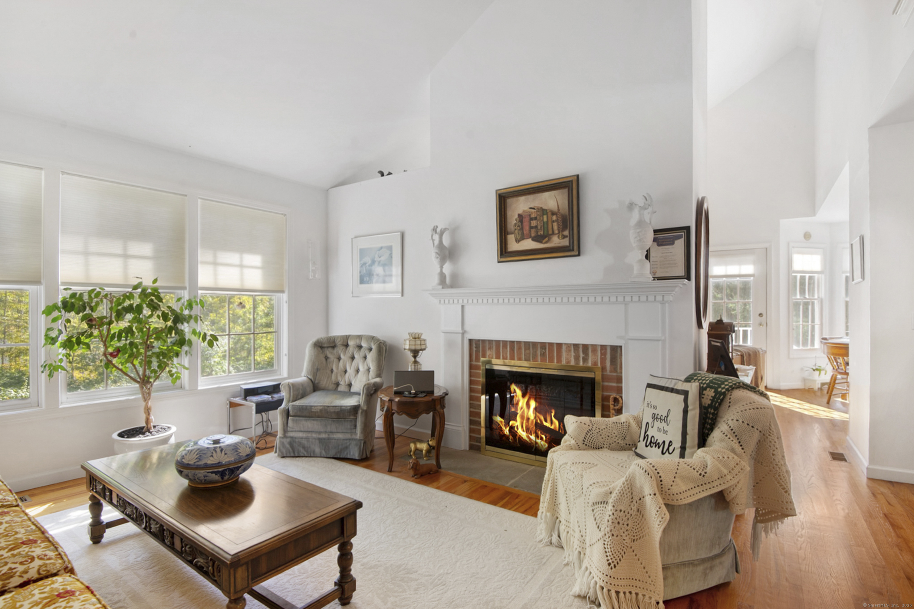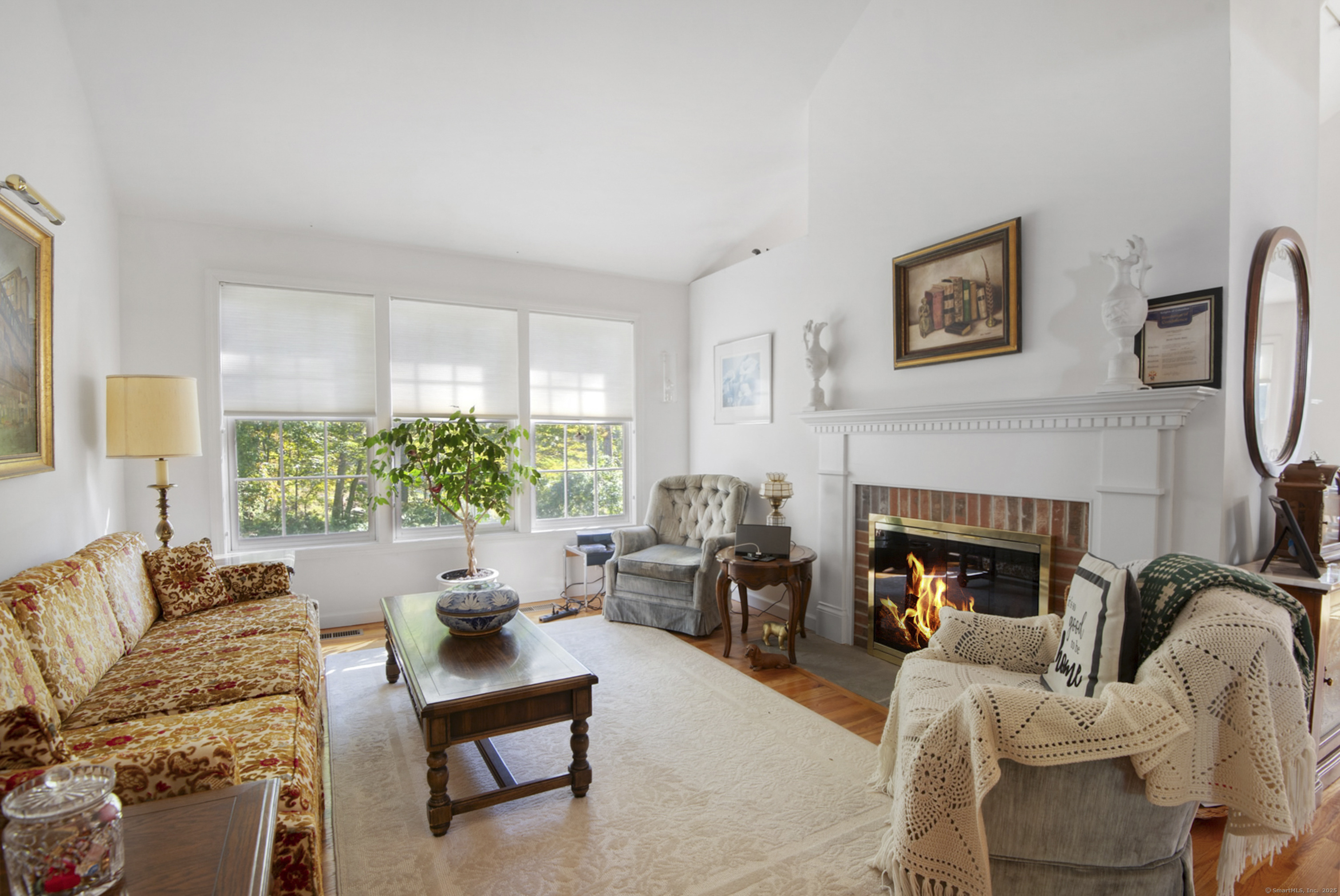 Nestled within the five-home enclave of Queen's Gate, this beautifully maintained Colonial offers the perfect balance of privacy and convenience-just 200 yards from the charm of downtown Ivoryton, yet tucked away on a peaceful cul-de-sac. The home features a first-floor primary suite, along with two additional bedrooms and a full bath upstairs. A spacious room at the heart of the second floor makes an ideal home office, studio, or media room. The main level has two inviting living spaces, separated by a striking double-sided fireplace that brings warmth and ambiance to both rooms. The eat-in kitchen opens to a deck overlooking the backyard-an ideal spot for morning coffee. The partially finished walk-out basement expands your living space with a substantial office, den or exercise area, and a pool table that conveys with the home. Outside, a low-maintenance shed provides convenient storage for lawn and garden equipment. This property combines timeless Colonial style living with thoughtful modern amenities, --- a rare opportunity to enjoy both tranquility and walkable access to historic Ivoryton with restaurants, a library, and the famous Ivoryton Playhouse, a theater listed in the National Register of Historic Places. The theatre is believed to be the first continuously operating summer theatre in the United States.