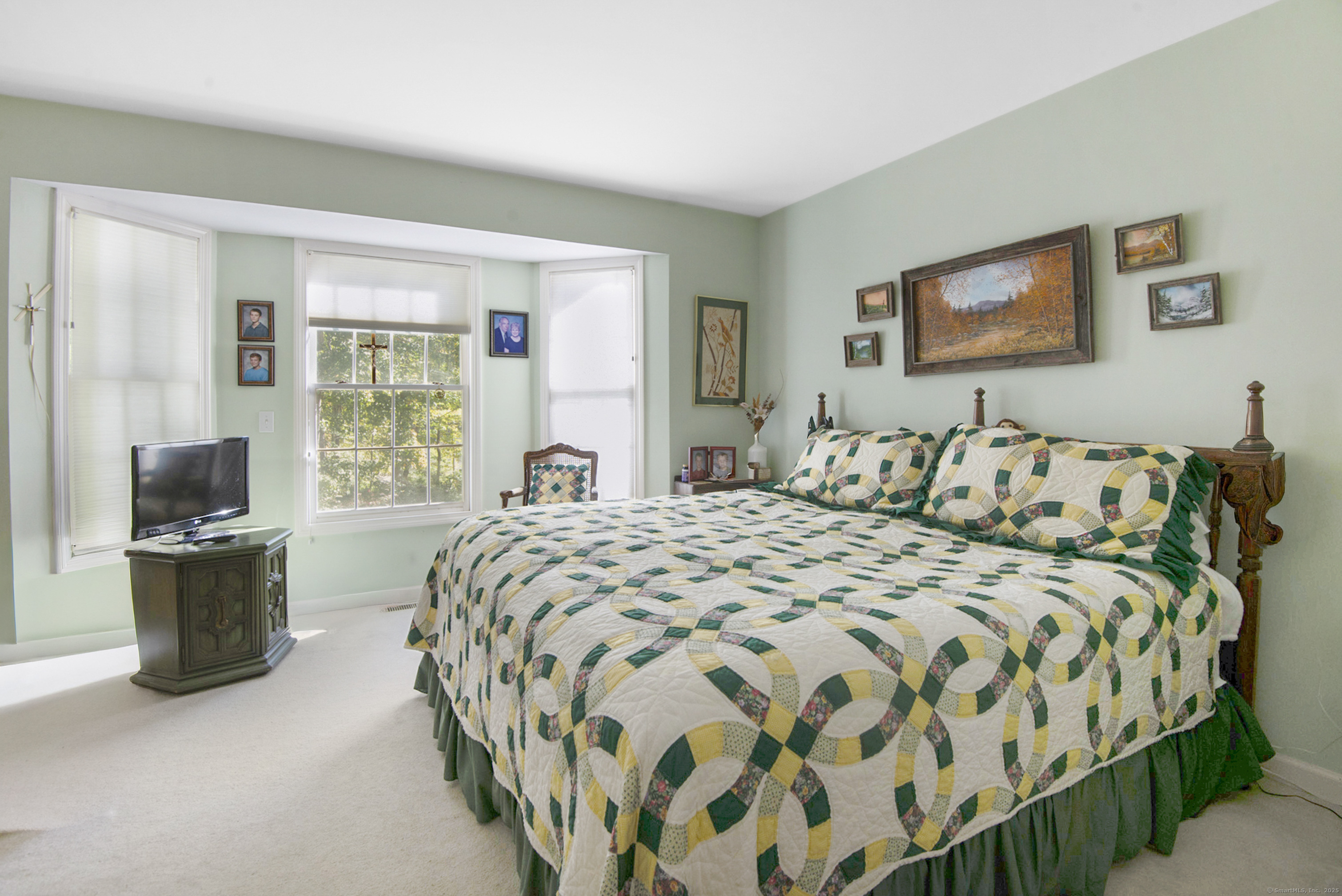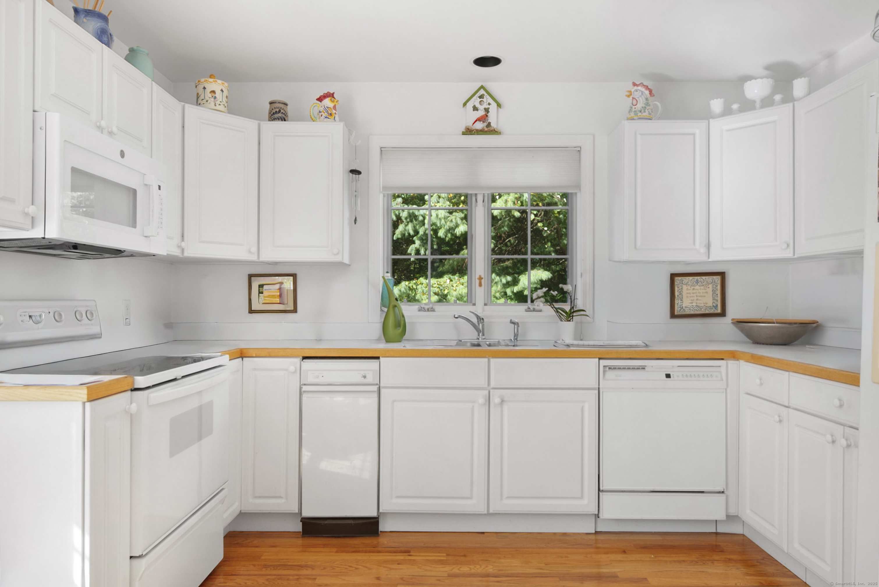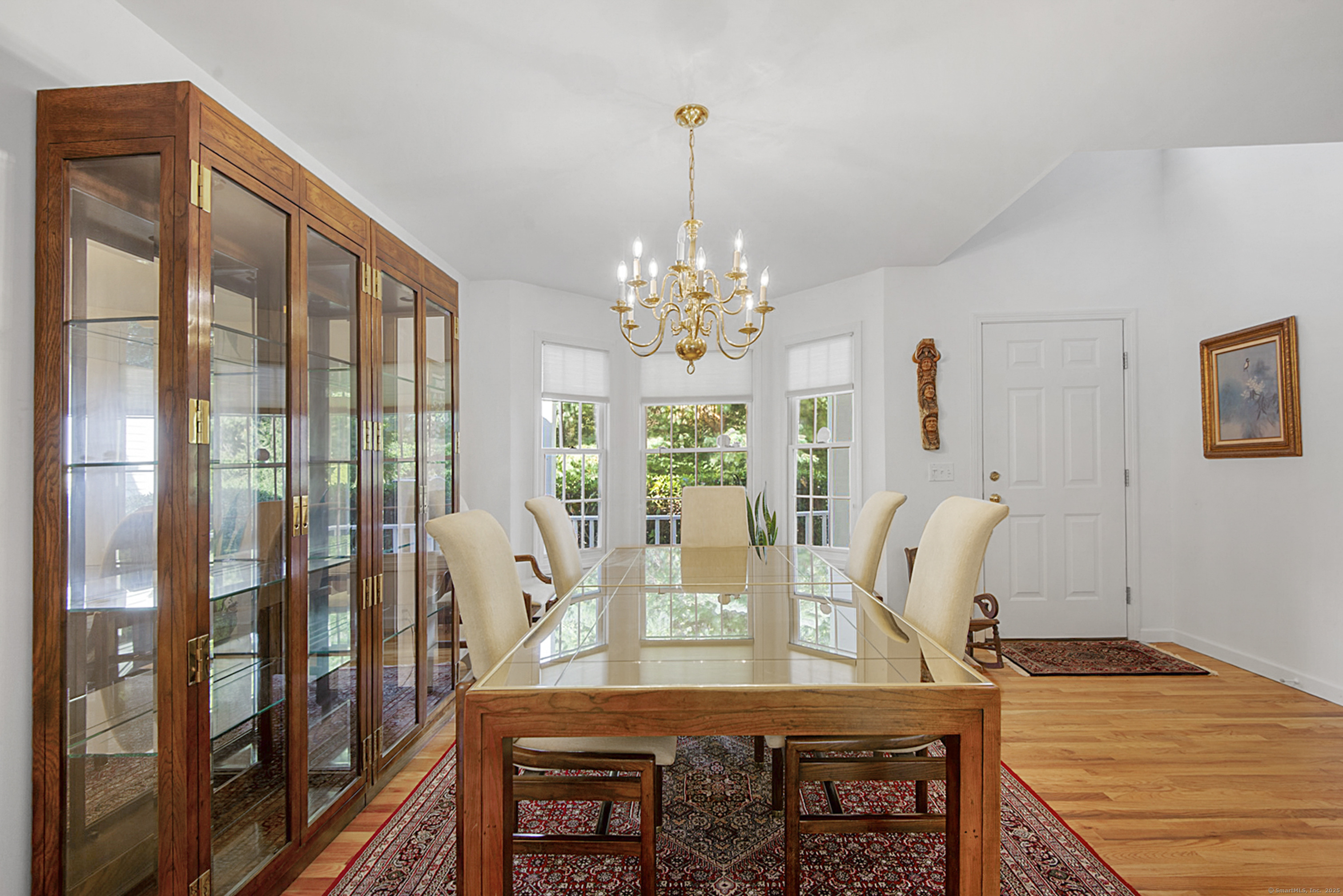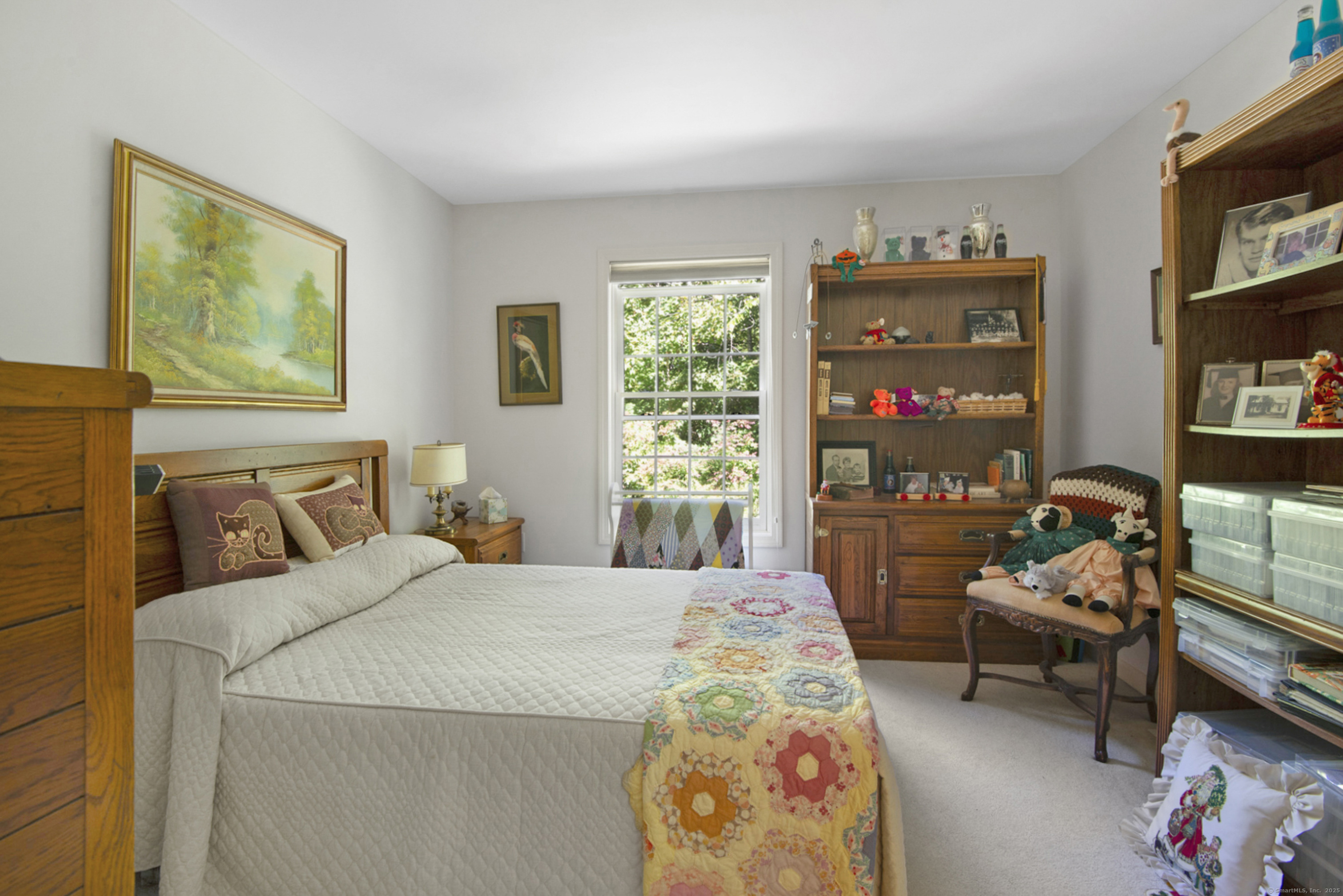 Nestled within the five-home enclave of Queen's Gate, this beautifully maintained Colonial offers the perfect balance of privacy and convenience-just 200 yards from the charm of downtown Ivoryton, yet tucked away on a peaceful cul-de-sac. The home features a first-floor primary suite, along with two additional bedrooms and a full bath upstairs. A spacious room at the heart of the second floor makes an ideal home office, studio, or media room. The main level has two inviting living spaces, separated by a striking double-sided fireplace that brings warmth and ambiance to both rooms. The eat-in kitchen opens to a deck overlooking the backyard-an ideal spot for morning coffee. The partially finished walk-out basement expands your living space with a substantial office, den or exercise area, and a pool table that conveys with the home. Outside, a low-maintenance shed provides convenient storage for lawn and garden equipment. This property combines timeless Colonial style living with thoughtful modern amenities, --- a rare opportunity to enjoy both tranquility and walkable access to historic Ivoryton with restaurants, a library, and the famous Ivoryton Playhouse, a theater listed in the National Register of Historic Places. The theatre is believed to be the first continuously operating summer theatre in the United States.