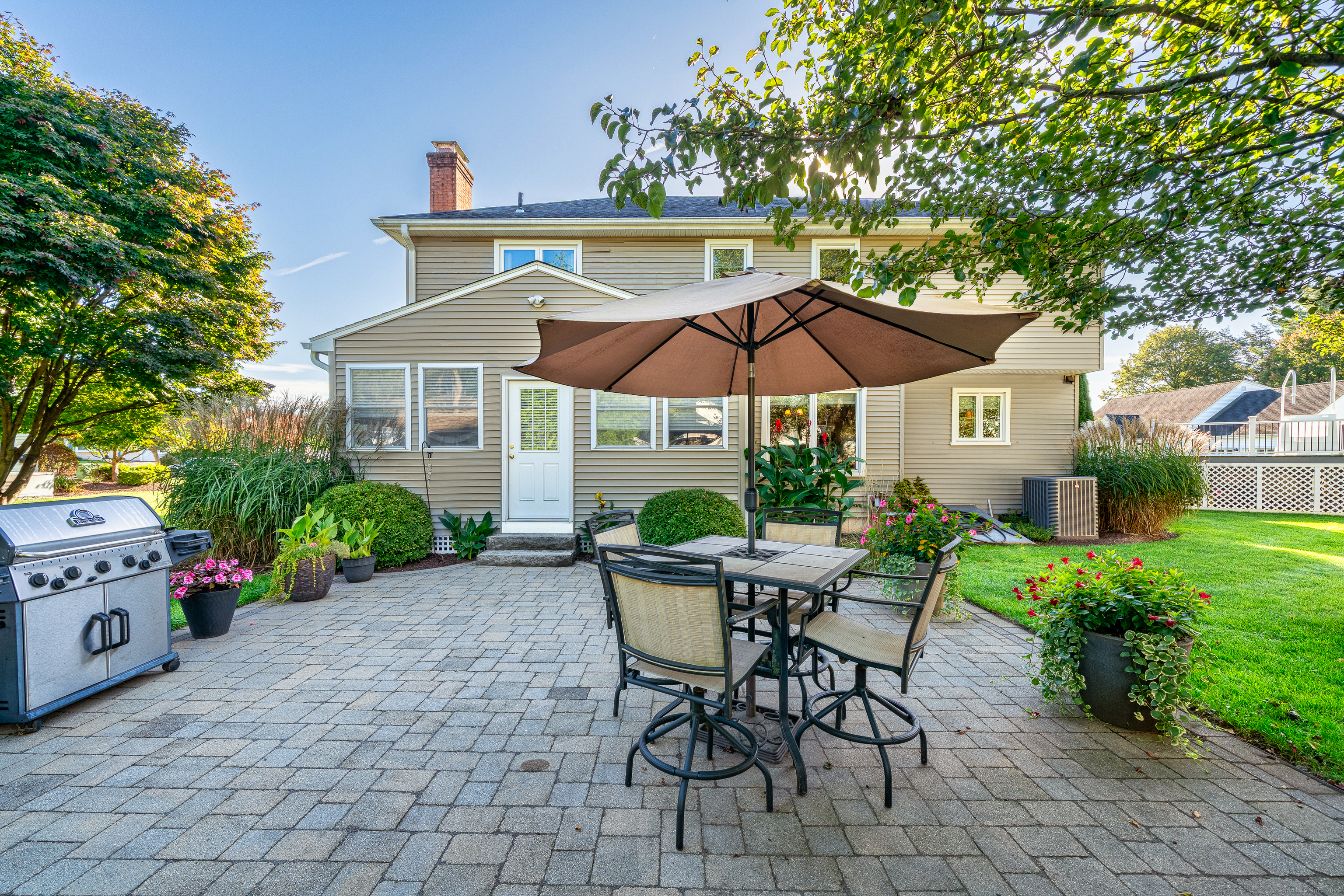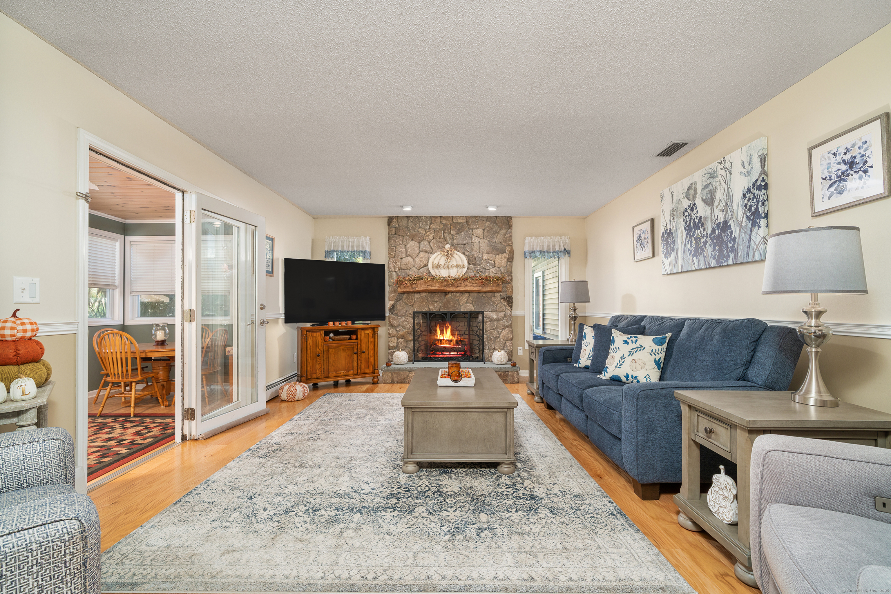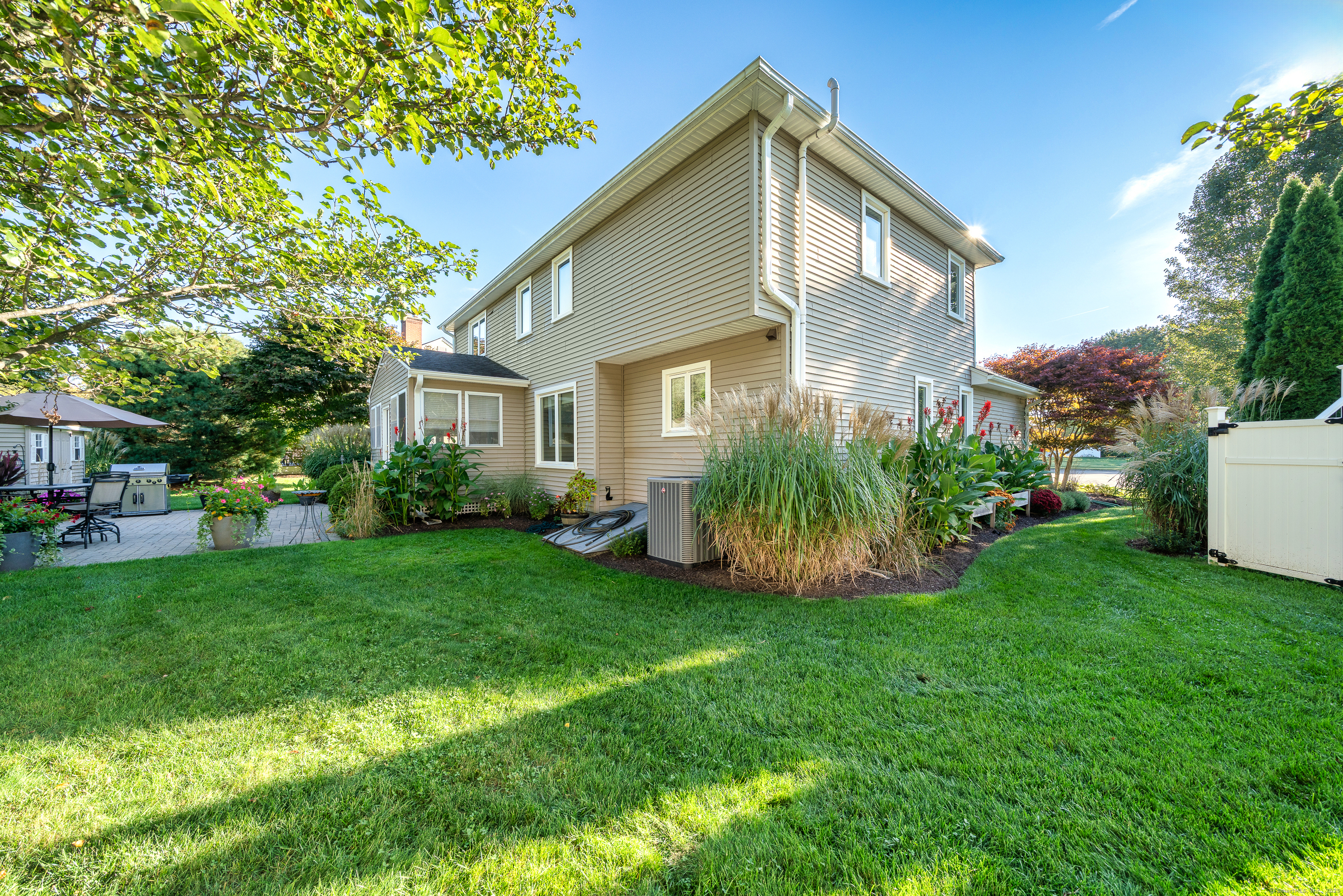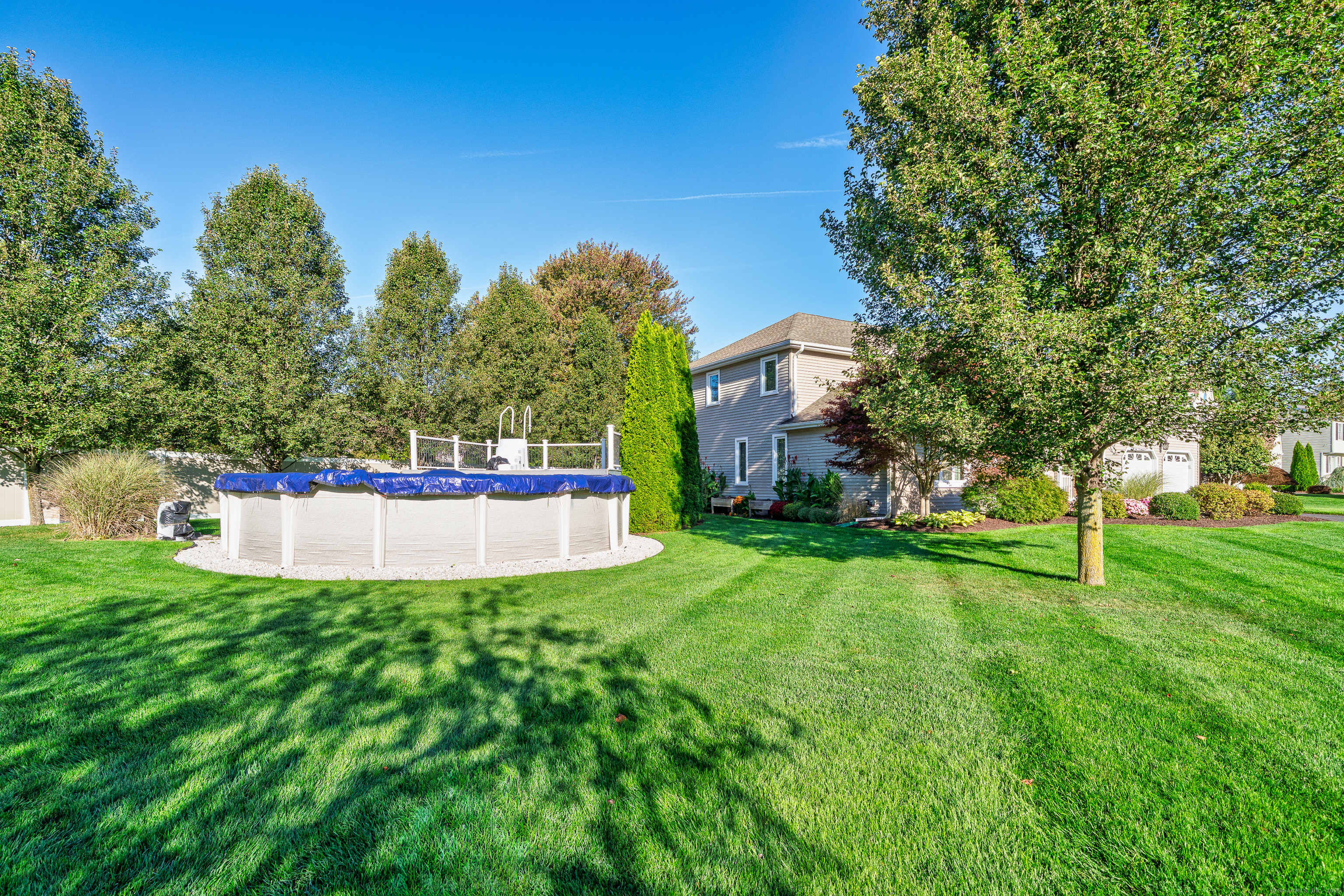 ABSOLUTELY STUNNING HOME! Nothing to do but drop your bags in this immaculate 4-bedroom, 3 full bath Colonial tucked away on a quiet cul-de-sac. Step into the beautiful, sunlit living room with soaring cathedral ceilings, open to the dining room for effortless entertaining. The large, remodeled eat-in kitchen features stainless steel appliances, granite counters, pantry, and a cozy breakfast nook. Gleaming hardwood floors run throughout the main level. A spacious family room with a striking gas fireplace is the perfect gathering spot. The three-season room offers peaceful views of the phenomenal backyard-ideal for morning coffee. The main floor bedroom (currently used as an office), includes a walk-in closet and Jack & Jill full bath. Upstairs, the primary suite boasts a walk-in closet and a beautifully remodeled full bath. Two additional generously sized bedrooms, another full bath, and a convenient laundry room complete the upper level. The basement, with 8-foot ceilings, offers easy finishing potential for additional living space. Outside, the grounds are simply exceptional, featuring a patio with seating area, fire pit, above-ground pool, partially fenced yard, shed, and irrigation system. Other highlights include central vac and an oversized, spotless two-car garage. Additional updates include new windows, roof, central air and hot water heater. This home is meticulously maintained! Floor plans, video tour and list of updates available.