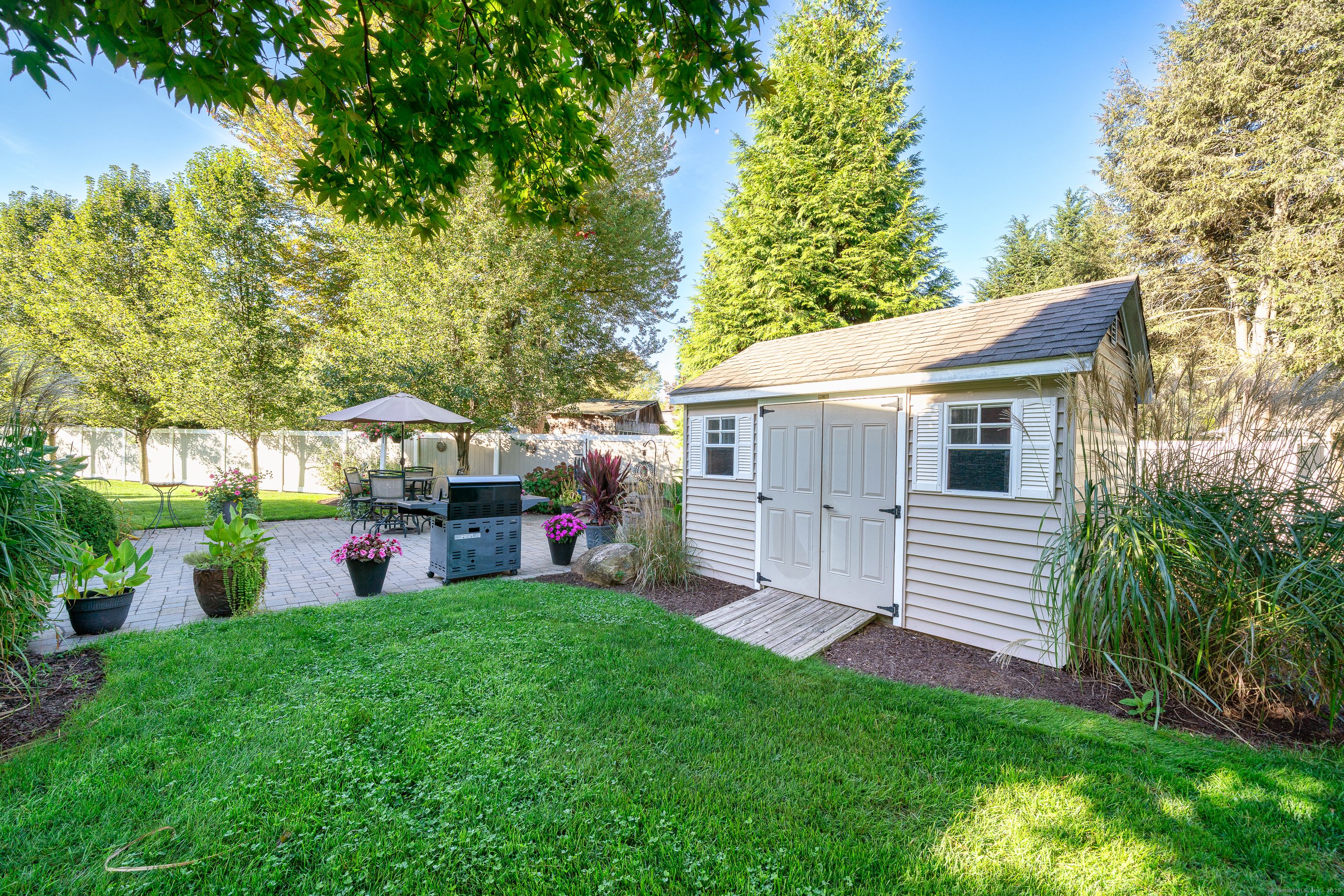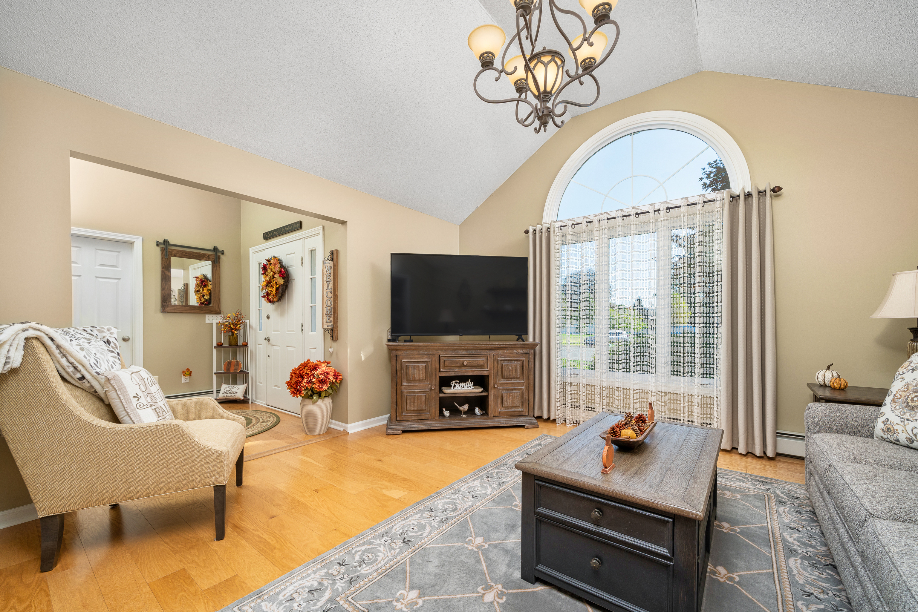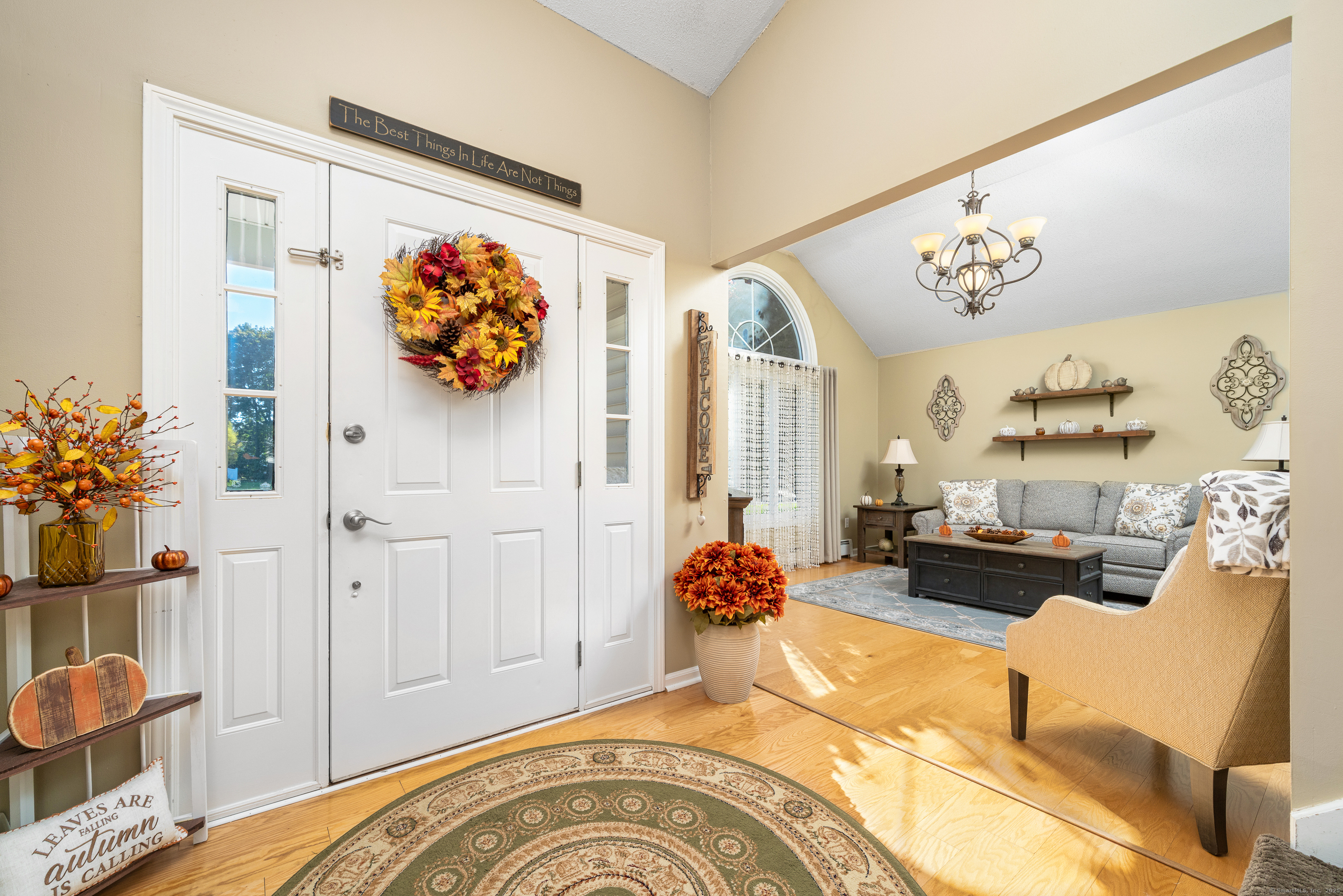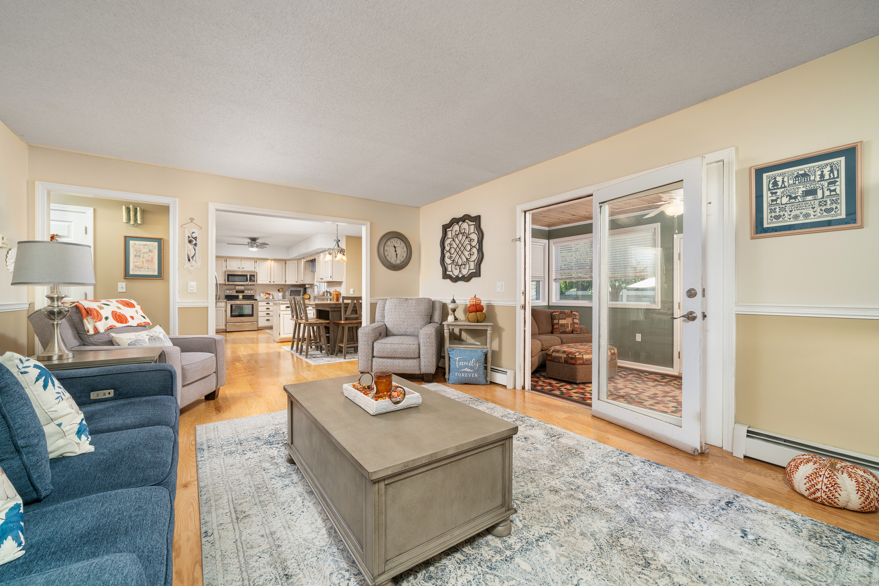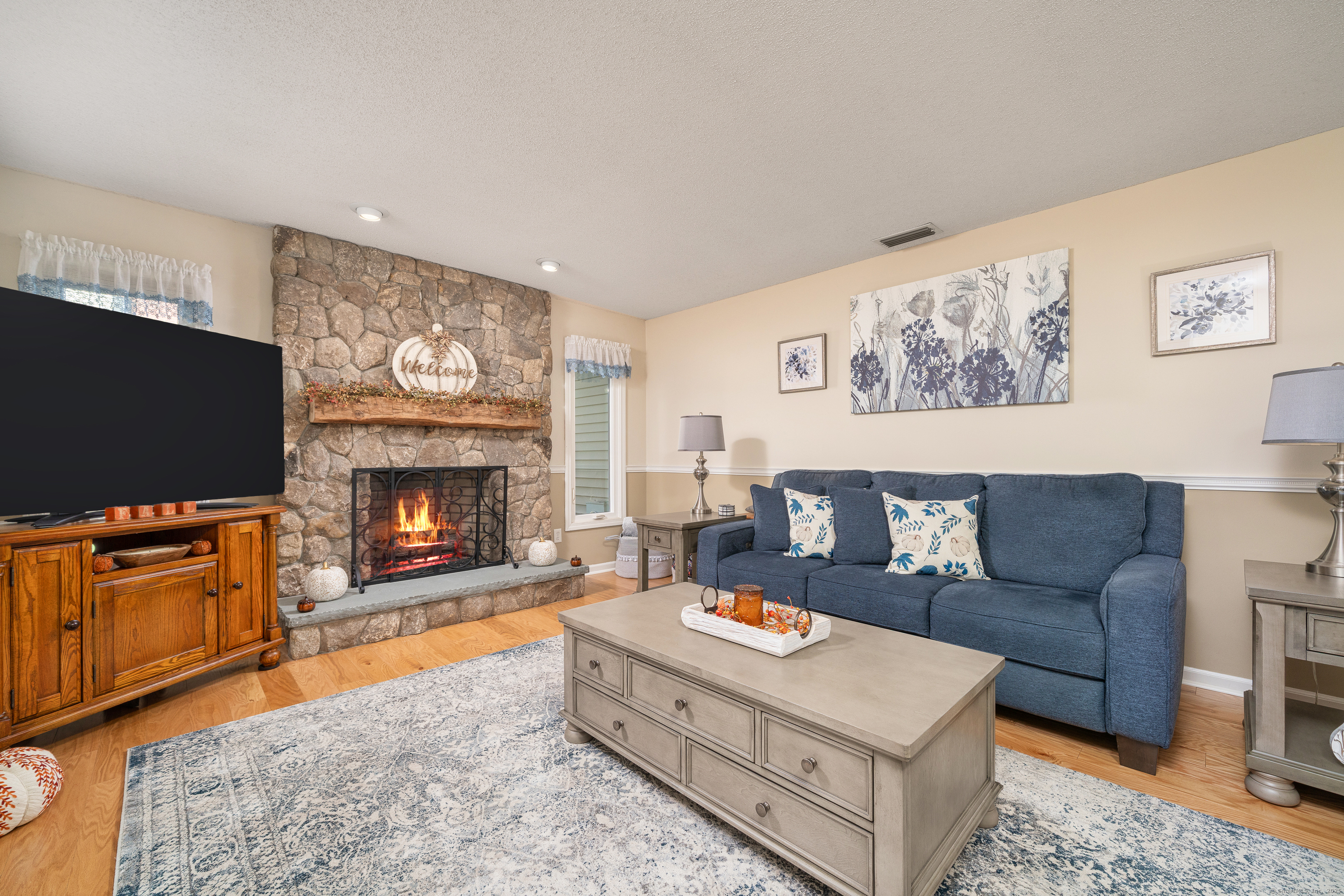 ABSOLUTELY STUNNING HOME! Nothing to do but drop your bags in this immaculate 4-bedroom, 3 full bath Colonial tucked away on a quiet cul-de-sac. Step into the beautiful, sunlit living room with soaring cathedral ceilings, open to the dining room for effortless entertaining. The large, remodeled eat-in kitchen features stainless steel appliances, granite counters, pantry, and a cozy breakfast nook. Gleaming hardwood floors run throughout the main level. A spacious family room with a striking gas fireplace is the perfect gathering spot. The three-season room offers peaceful views of the phenomenal backyard-ideal for morning coffee. The main floor bedroom (currently used as an office), includes a walk-in closet and Jack & Jill full bath. Upstairs, the primary suite boasts a walk-in closet and a beautifully remodeled full bath. Two additional generously sized bedrooms, another full bath, and a convenient laundry room complete the upper level. The basement, with 8-foot ceilings, offers easy finishing potential for additional living space. Outside, the grounds are simply exceptional, featuring a patio with seating area, fire pit, above-ground pool, partially fenced yard, shed, and irrigation system. Other highlights include central vac and an oversized, spotless two-car garage. Additional updates include new windows, roof, central air and hot water heater. This home is meticulously maintained! Floor plans, video tour and list of updates available.