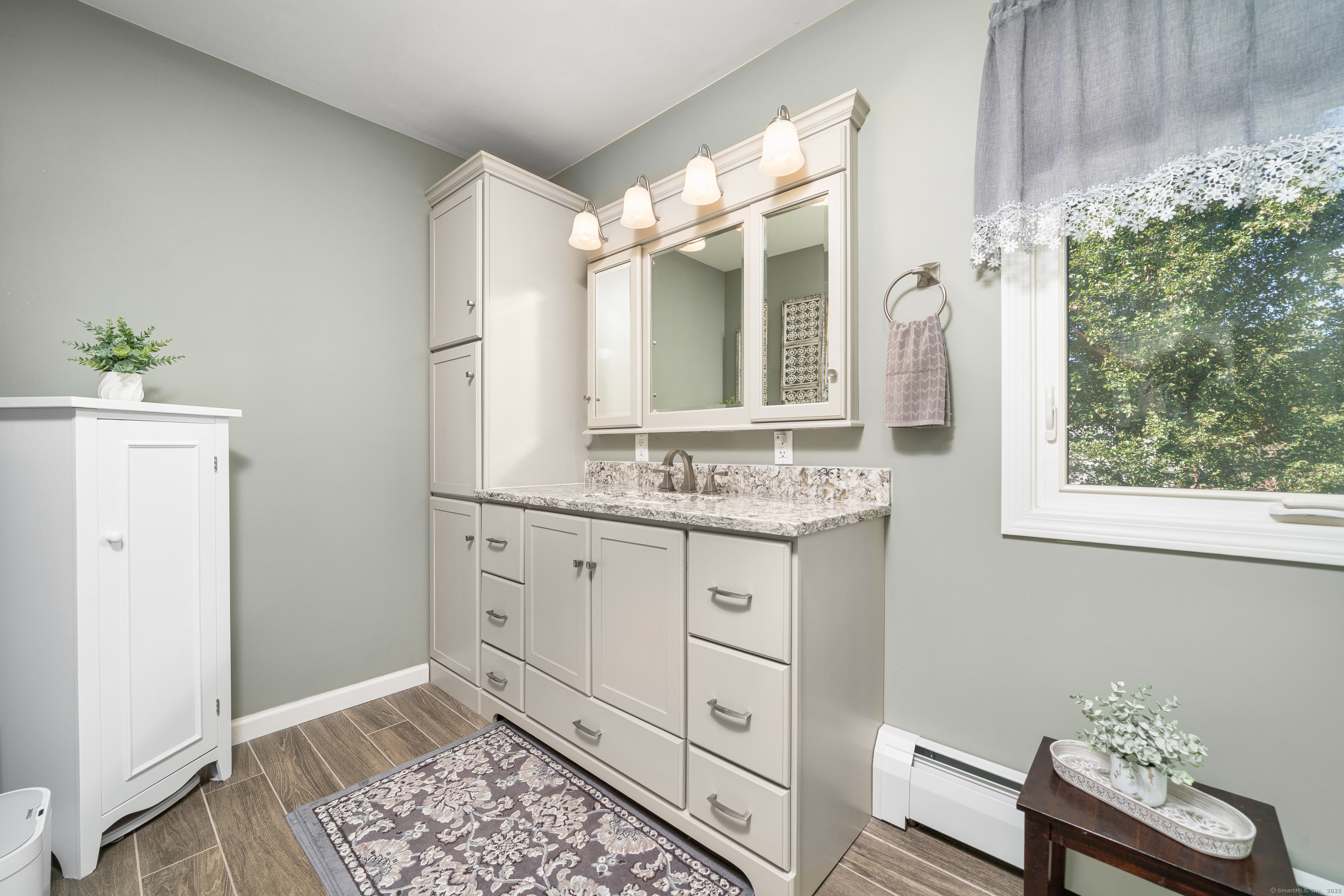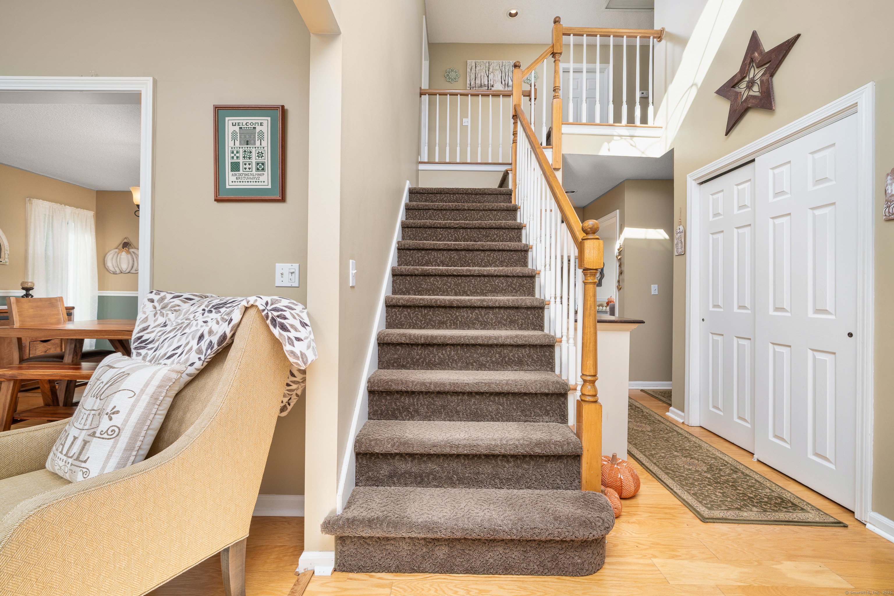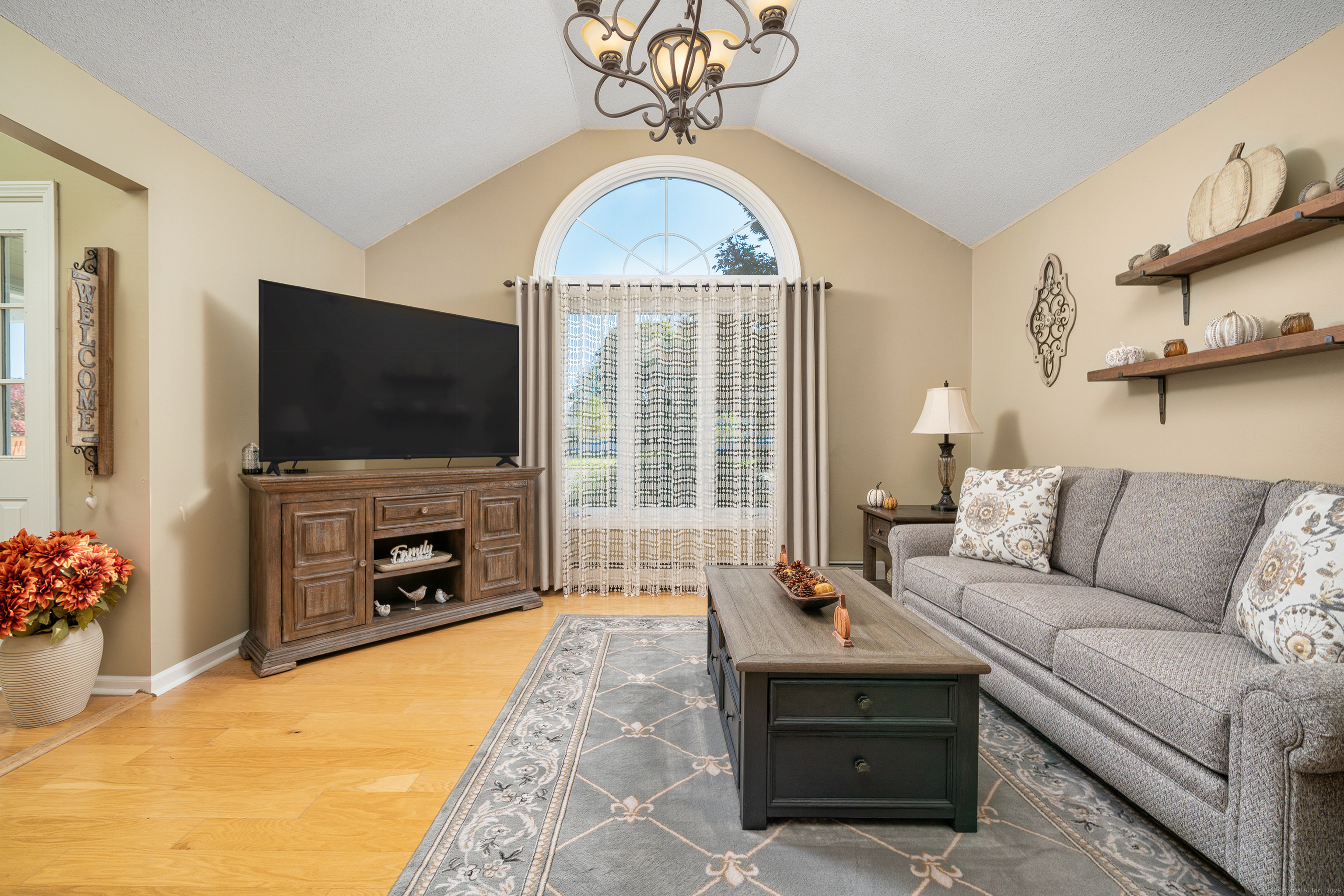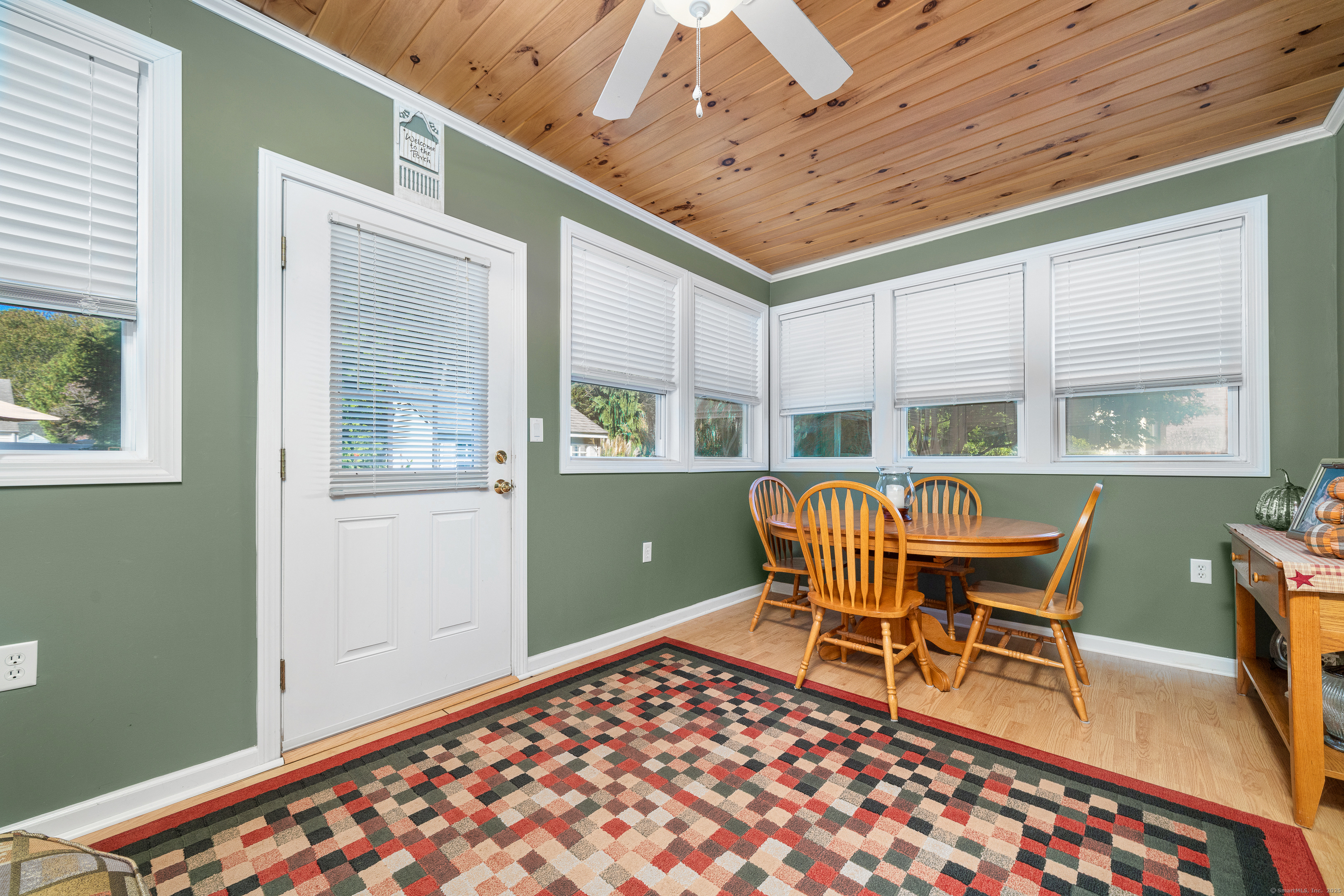 ABSOLUTELY STUNNING HOME! Nothing to do but drop your bags in this immaculate 4-bedroom, 3 full bath Colonial tucked away on a quiet cul-de-sac. Step into the beautiful, sunlit living room with soaring cathedral ceilings, open to the dining room for effortless entertaining. The large, remodeled eat-in kitchen features stainless steel appliances, granite counters, pantry, and a cozy breakfast nook. Gleaming hardwood floors run throughout the main level. A spacious family room with a striking gas fireplace is the perfect gathering spot. The three-season room offers peaceful views of the phenomenal backyard-ideal for morning coffee. The main floor bedroom (currently used as an office), includes a walk-in closet and Jack & Jill full bath. Upstairs, the primary suite boasts a walk-in closet and a beautifully remodeled full bath. Two additional generously sized bedrooms, another full bath, and a convenient laundry room complete the upper level. The basement, with 8-foot ceilings, offers easy finishing potential for additional living space. Outside, the grounds are simply exceptional, featuring a patio with seating area, fire pit, above-ground pool, partially fenced yard, shed, and irrigation system. Other highlights include central vac and an oversized, spotless two-car garage. Additional updates include new windows, roof, central air and hot water heater. This home is meticulously maintained! Floor plans, video tour and list of updates available.