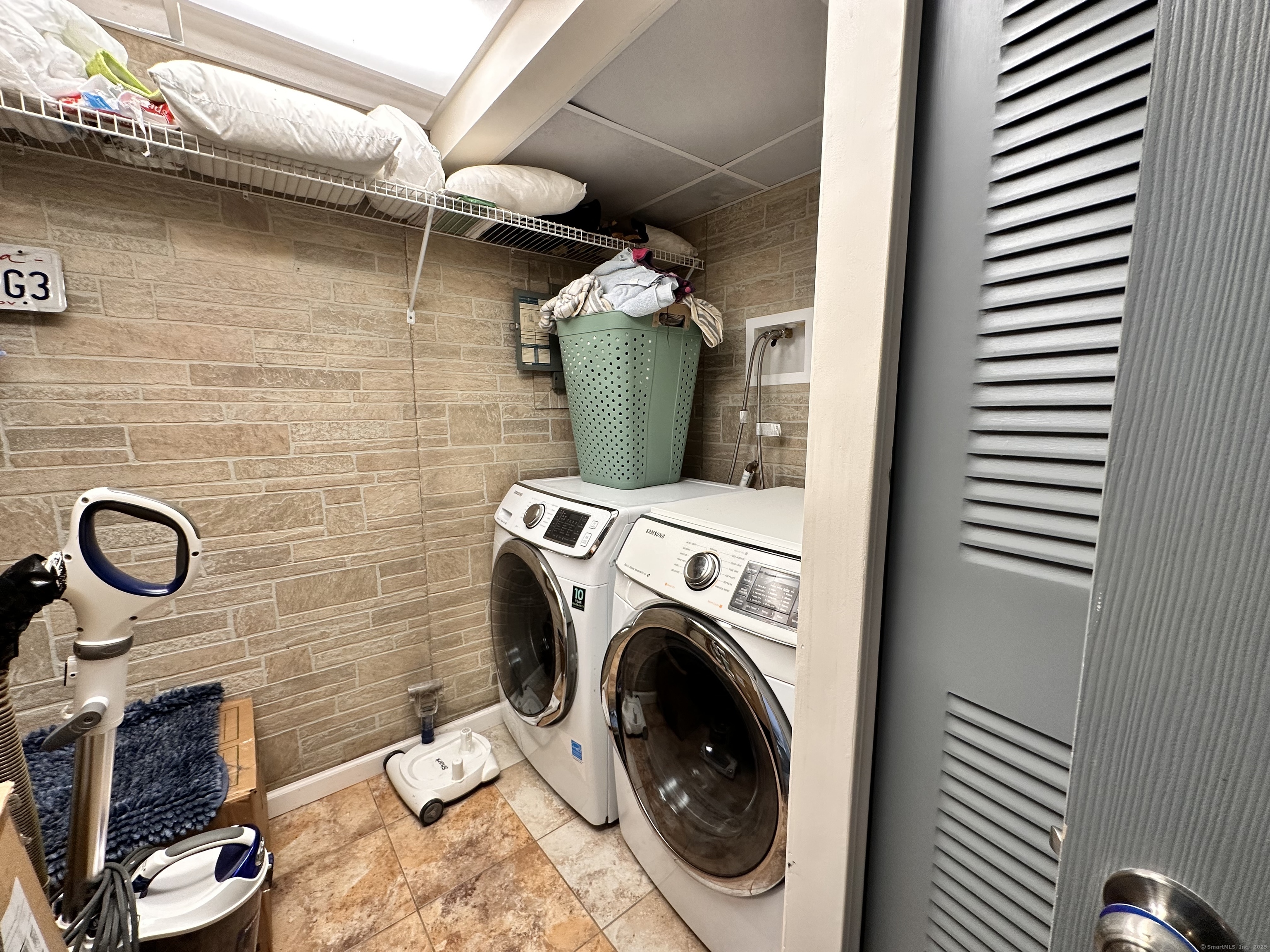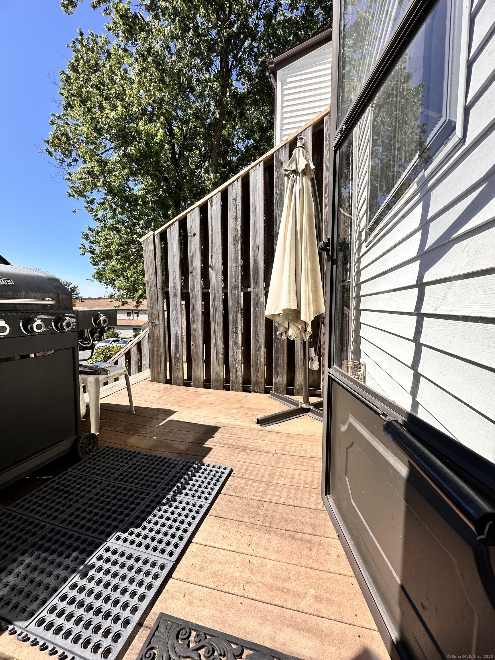Welcome to Queen Terrace, Southington. Beautiful 2 bedroom, 1.5 bathroom and 1 car garage condominium, conveniently located near shopping, dining and highway. Large living room, formal dining area that leads to a kitchen with quartz countertops and stainless steel appliances. Enjoy the luxury of a deck that leads to private back yard and balcony from the living room that overlooks the front. Primary bedroom features a walk-in closet, as well as an additional regular closet. Large size second bedroom with built-in cabinets. The lower level includes an extra room, laundry and storage area. Small complex with a pool, picnic area and a playground. Don't miss out on the opportunity to move to this gorgeous place!!!